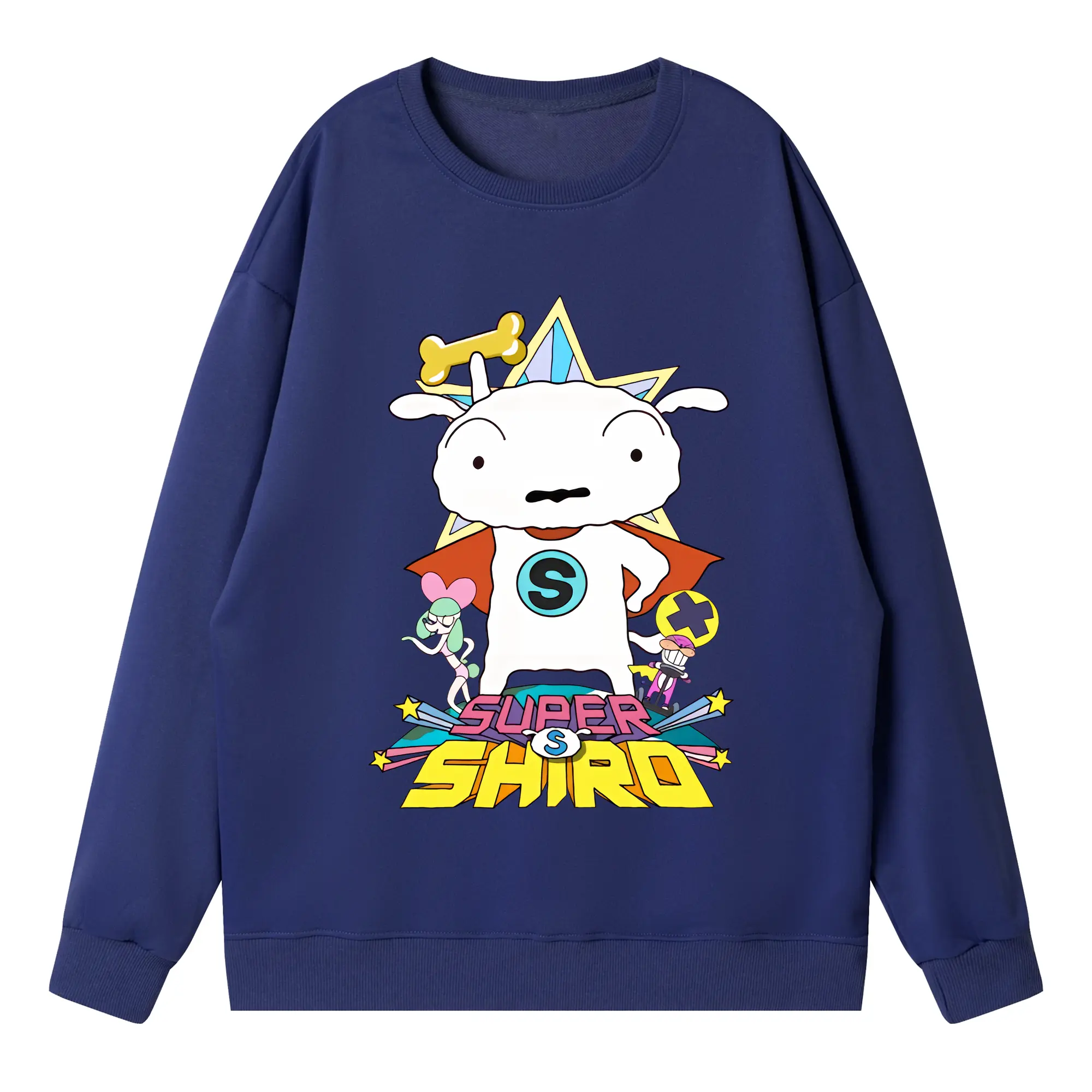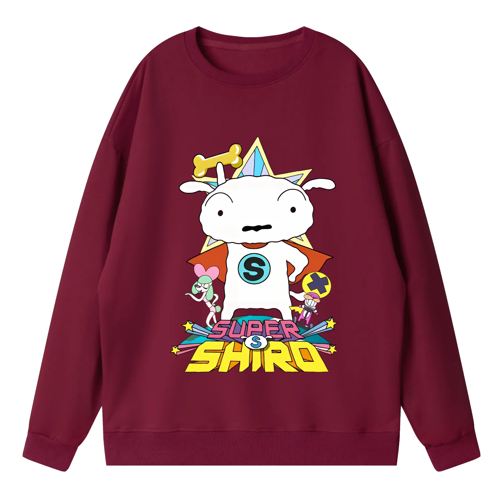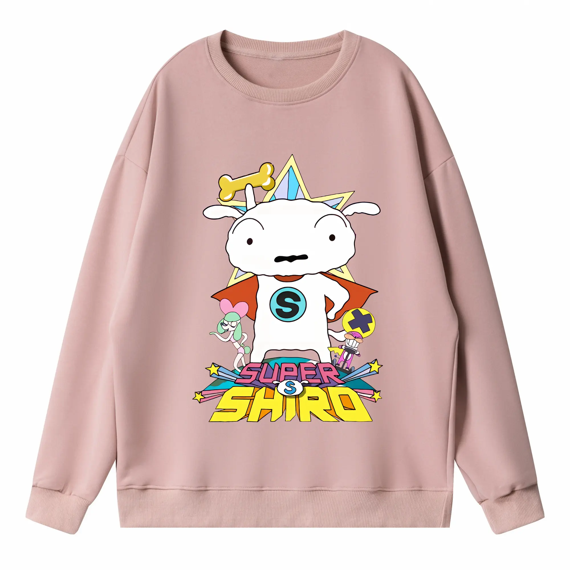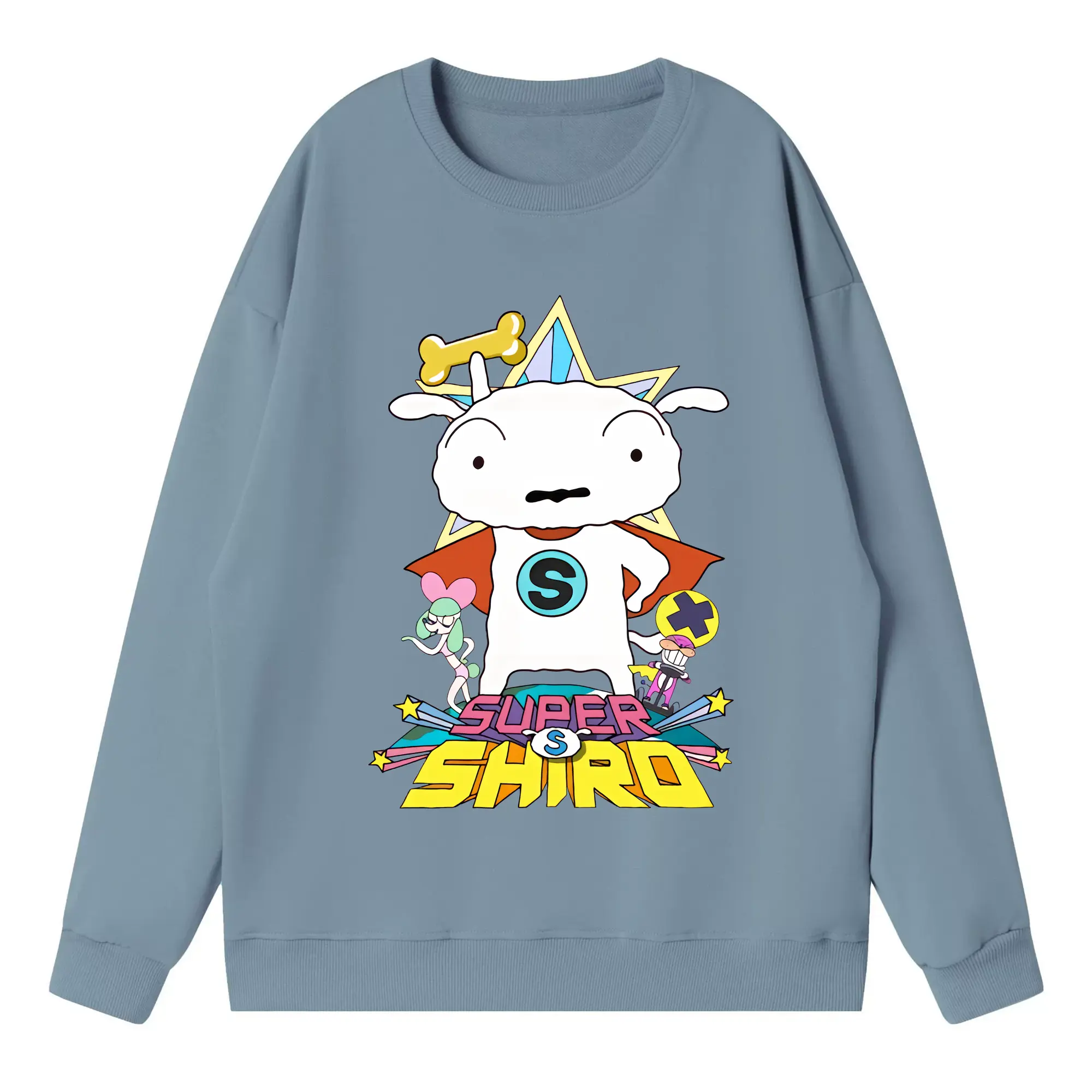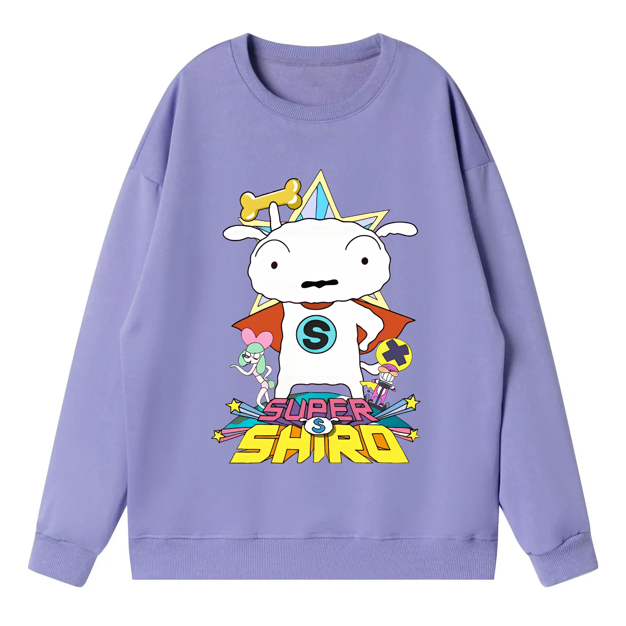 クレヨンしんちゃん グッズ シロ - 高品質 クルーネック スウェット ・ コットン59% ポリエステル41% ・ ユニセックス 長袖 トレーナー ・ カジュアル デイリー スポーツ 散歩用