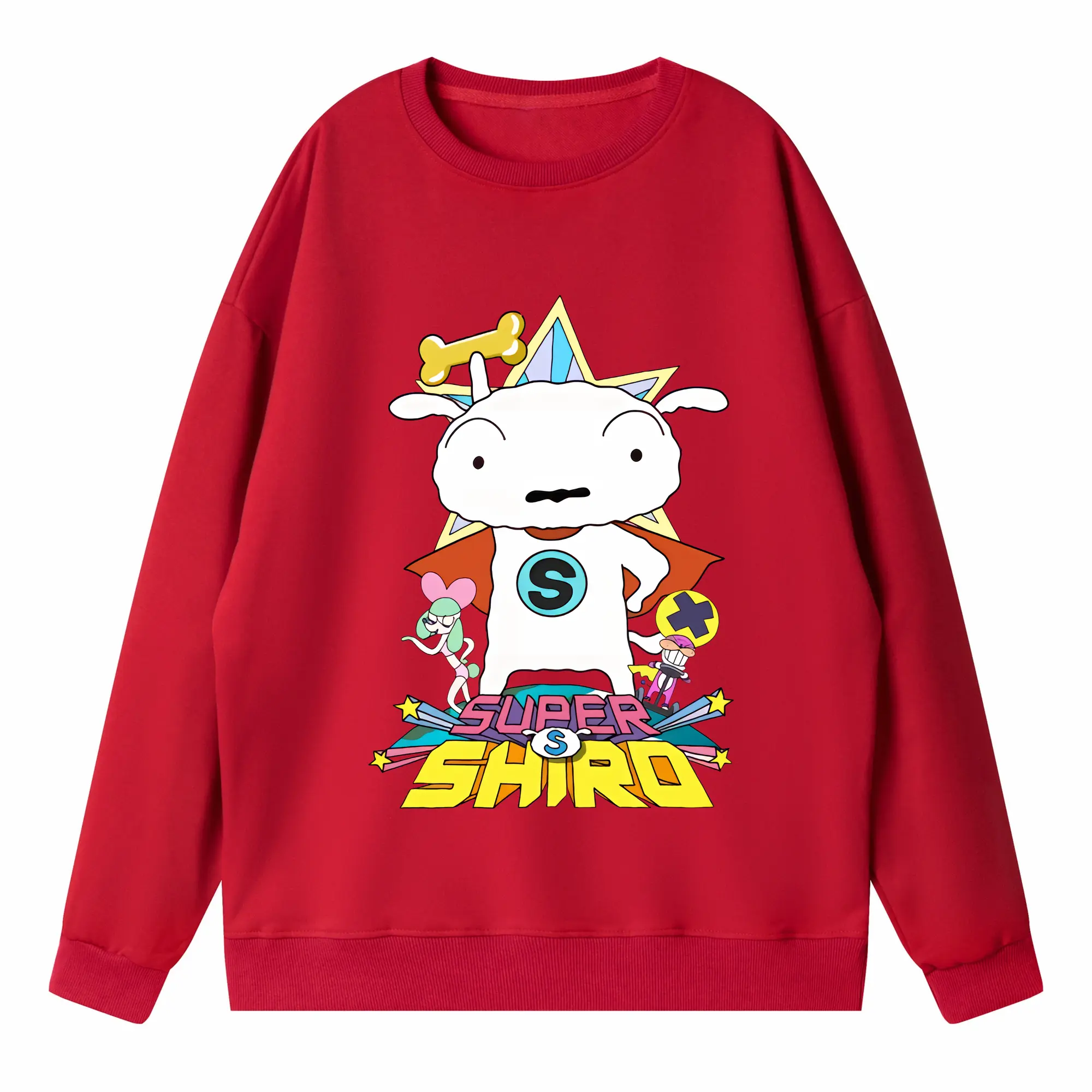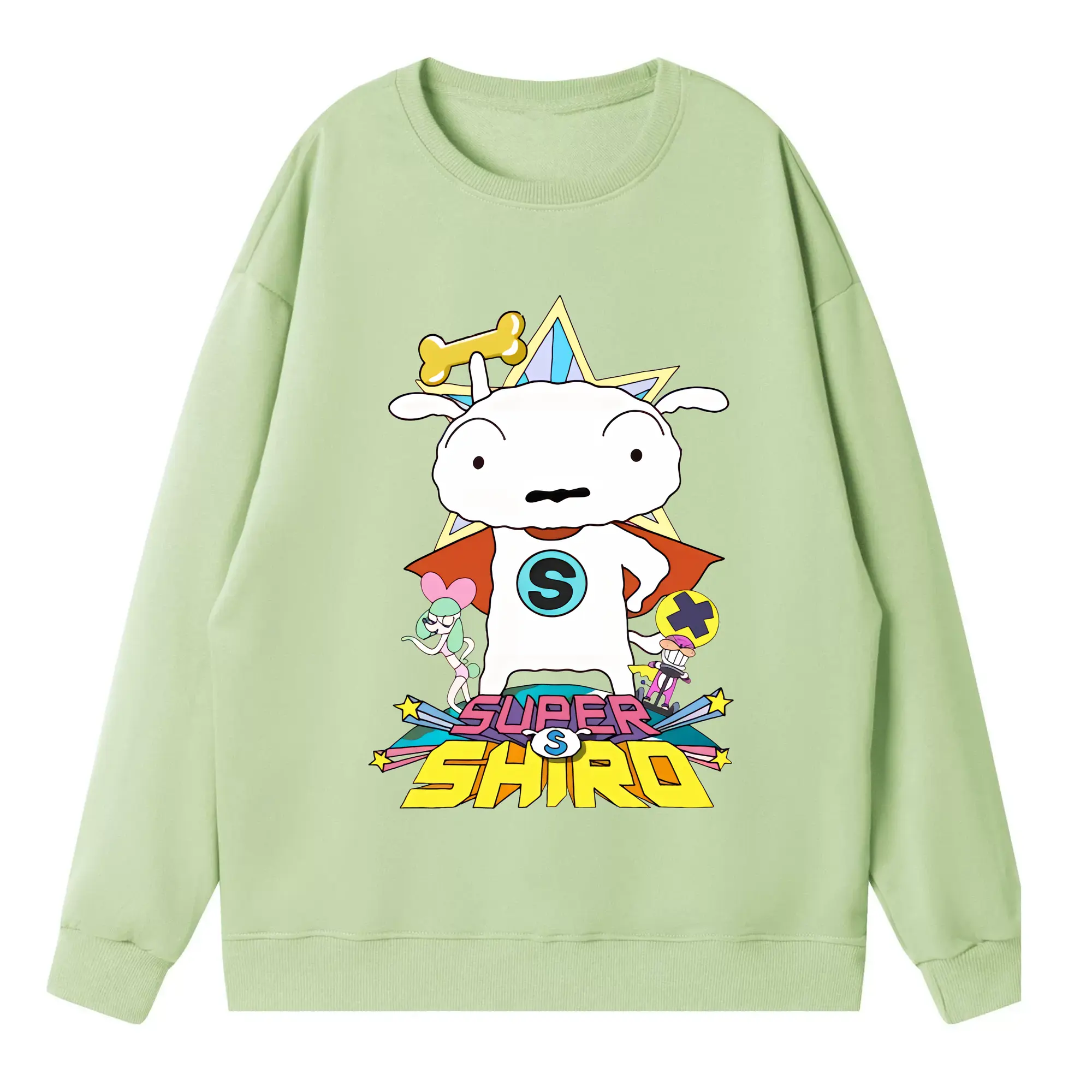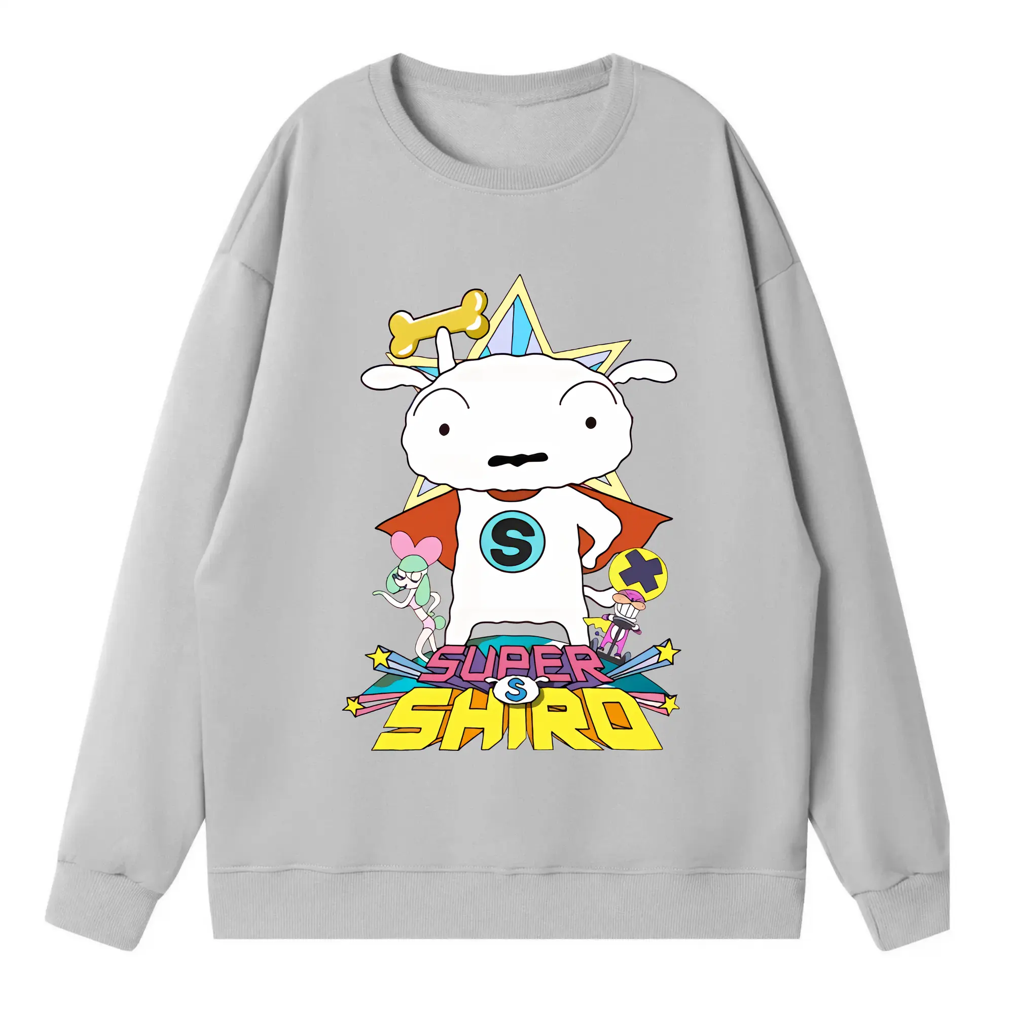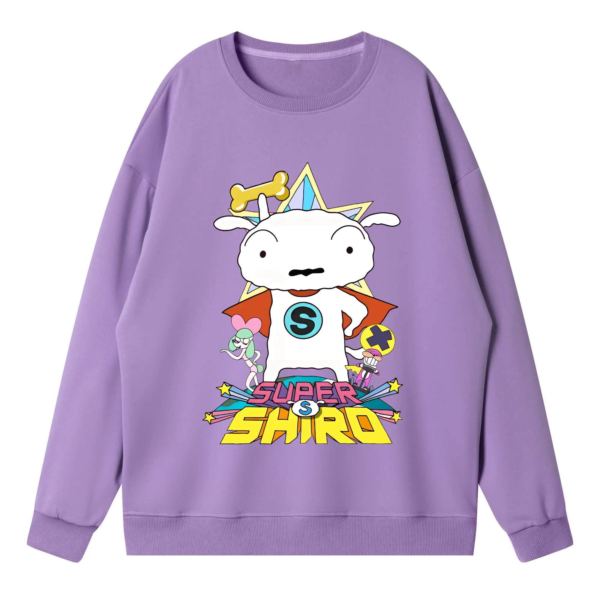 クレヨンしんちゃん グッズ シロ - 高品質 クルーネック スウェット ・ コットン59% ポリエステル41% ・ ユニセックス 長袖 トレーナー ・ カジュアル デイリー スポーツ 散歩用