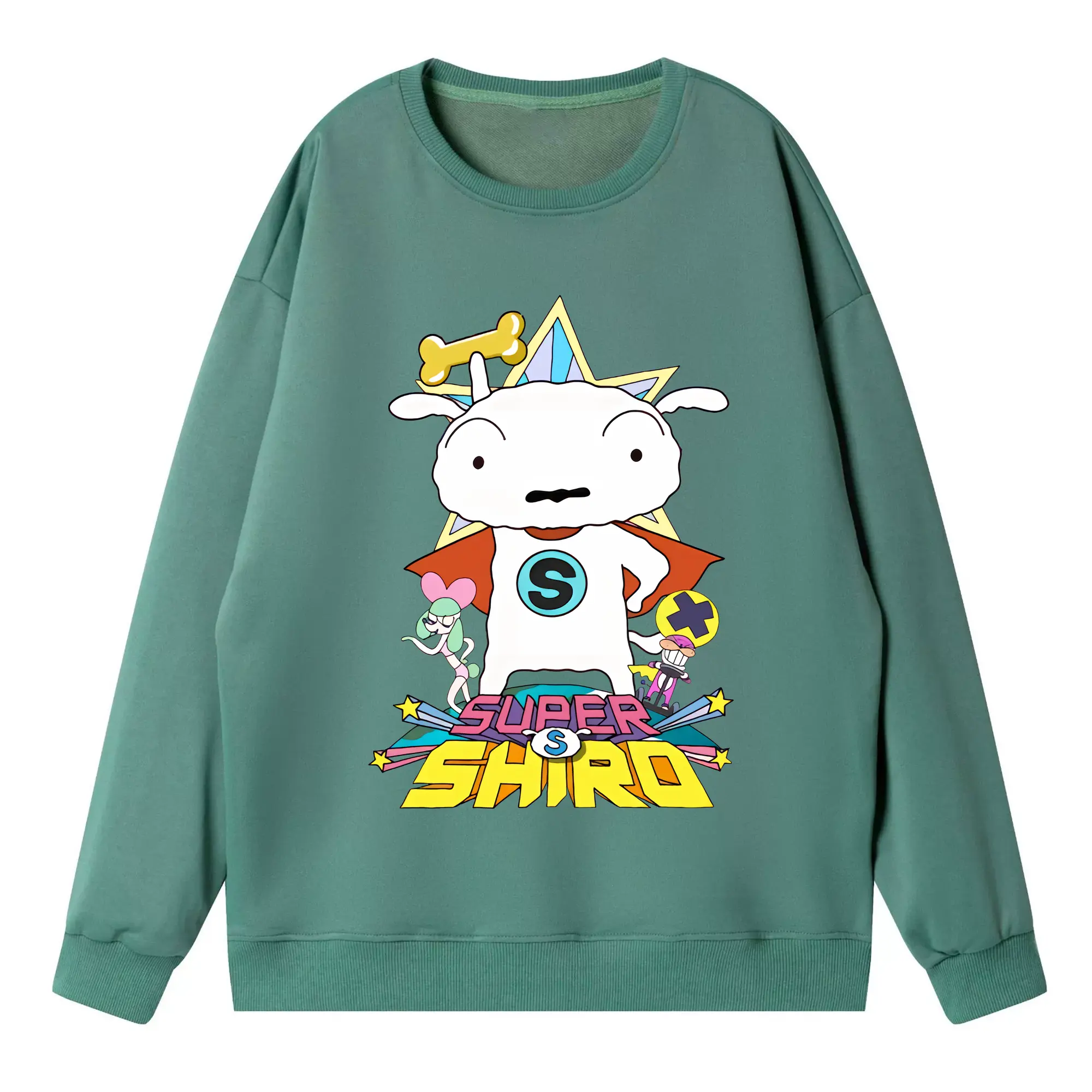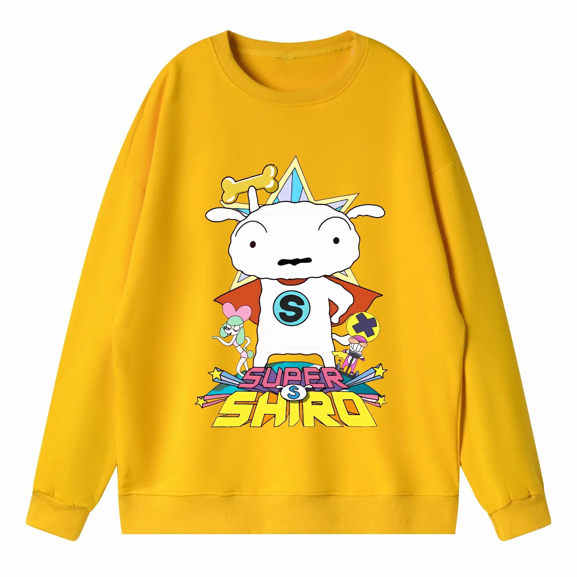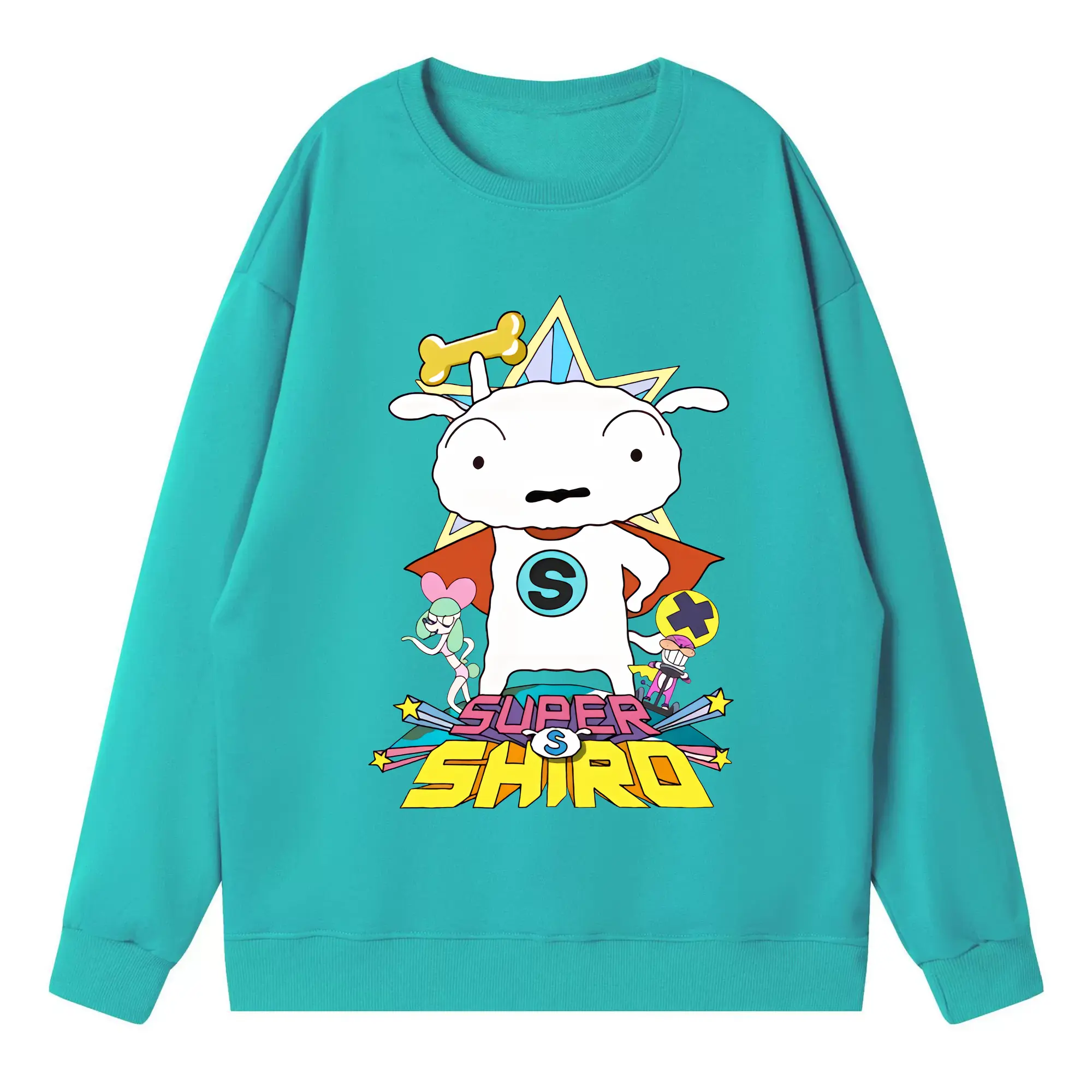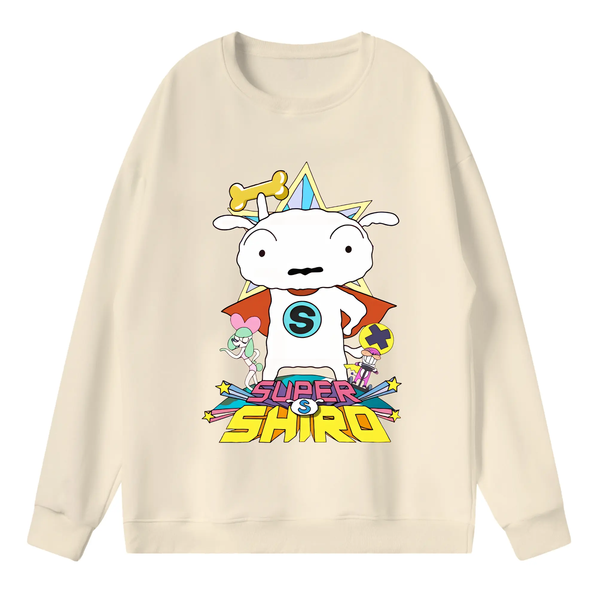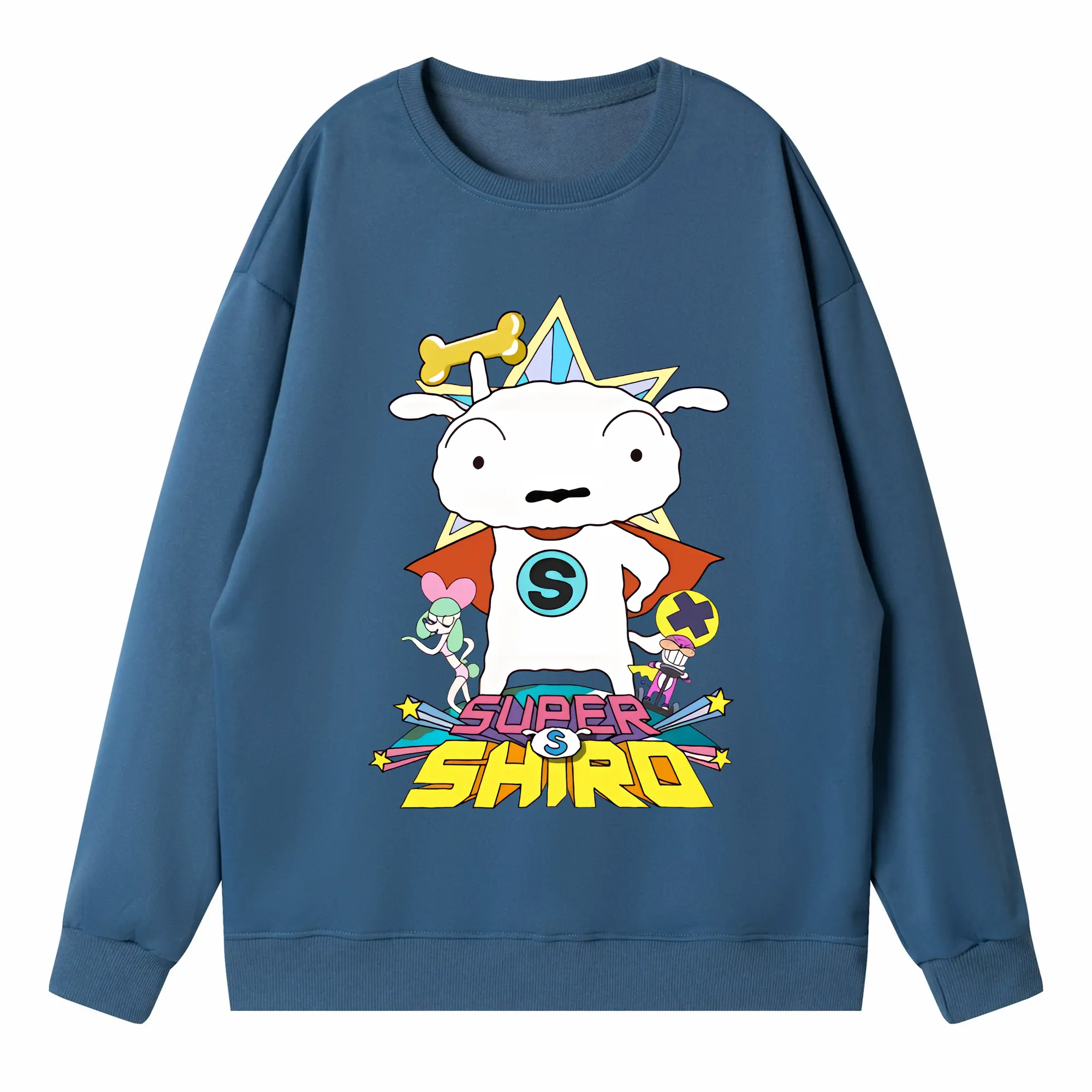 クレヨンしんちゃん グッズ シロ - 高品質 クルーネック スウェット ・ コットン59% ポリエステル41% ・ ユニセックス 長袖 トレーナー ・ カジュアル デイリー スポーツ 散歩用