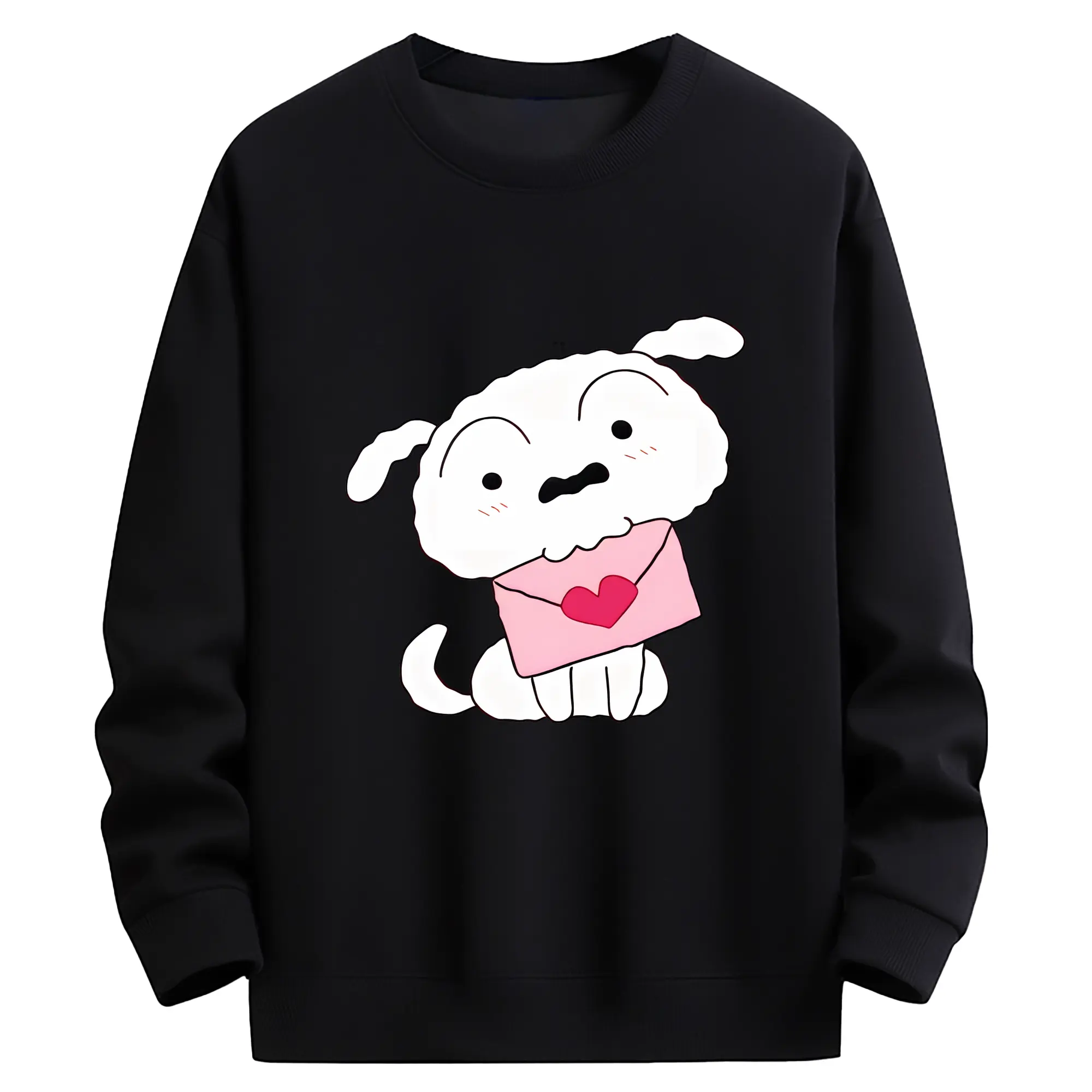 クレヨンしんちゃん グッズ シロ - 高品質 クルーネック スウェット ・ コットン59% ポリエステル41% ・ ユニセックス 長袖 トレーナー ・ カジュアル デイリー スポーツ 散歩用