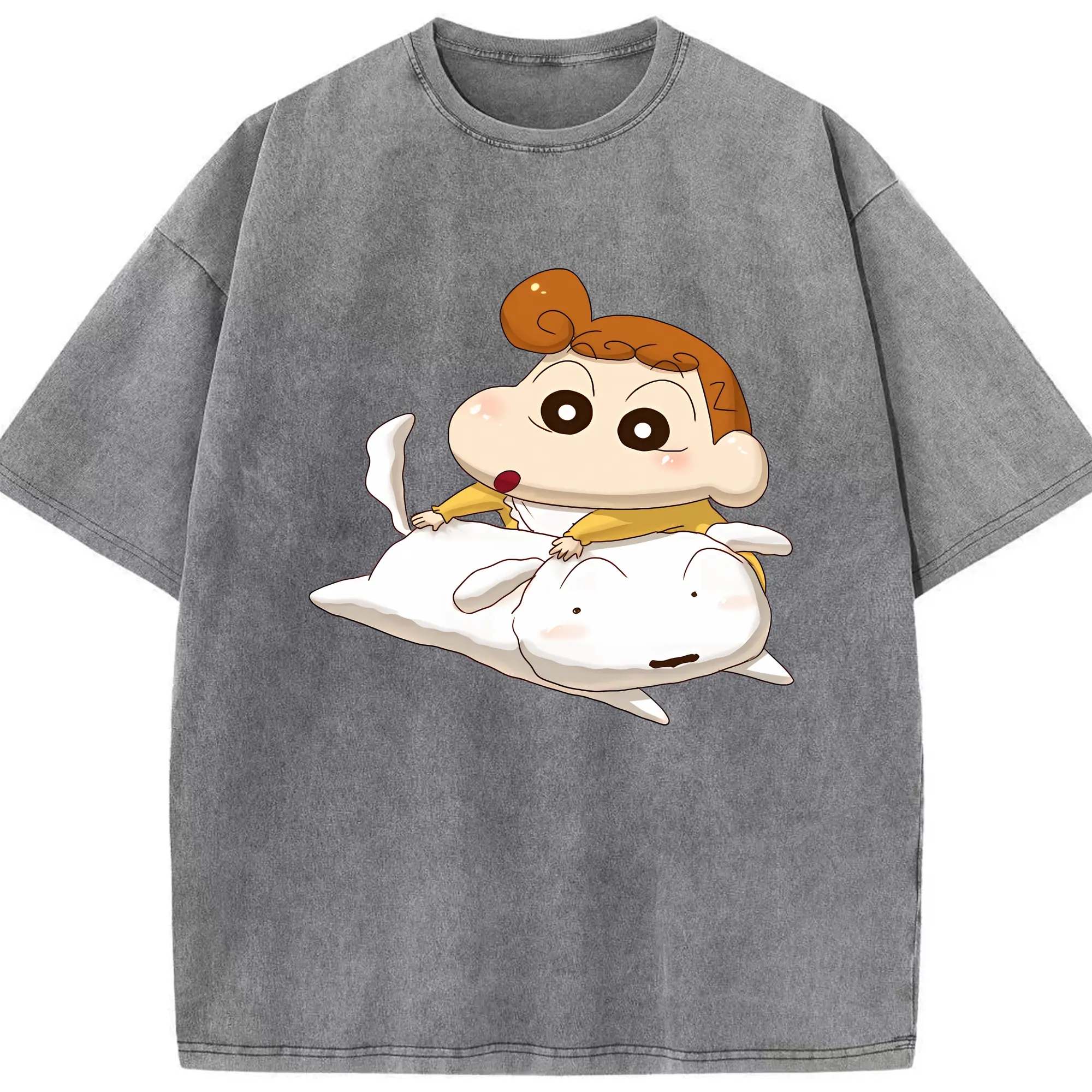 クレヨンしんちゃん グッズ シロ - 綿100% ヴィンテージ風 半袖Tシャツ ・ 背面プリント ・ 柔らか肌触り ・ 通気性 快適 ・ スポーツ カジュアル 外出用