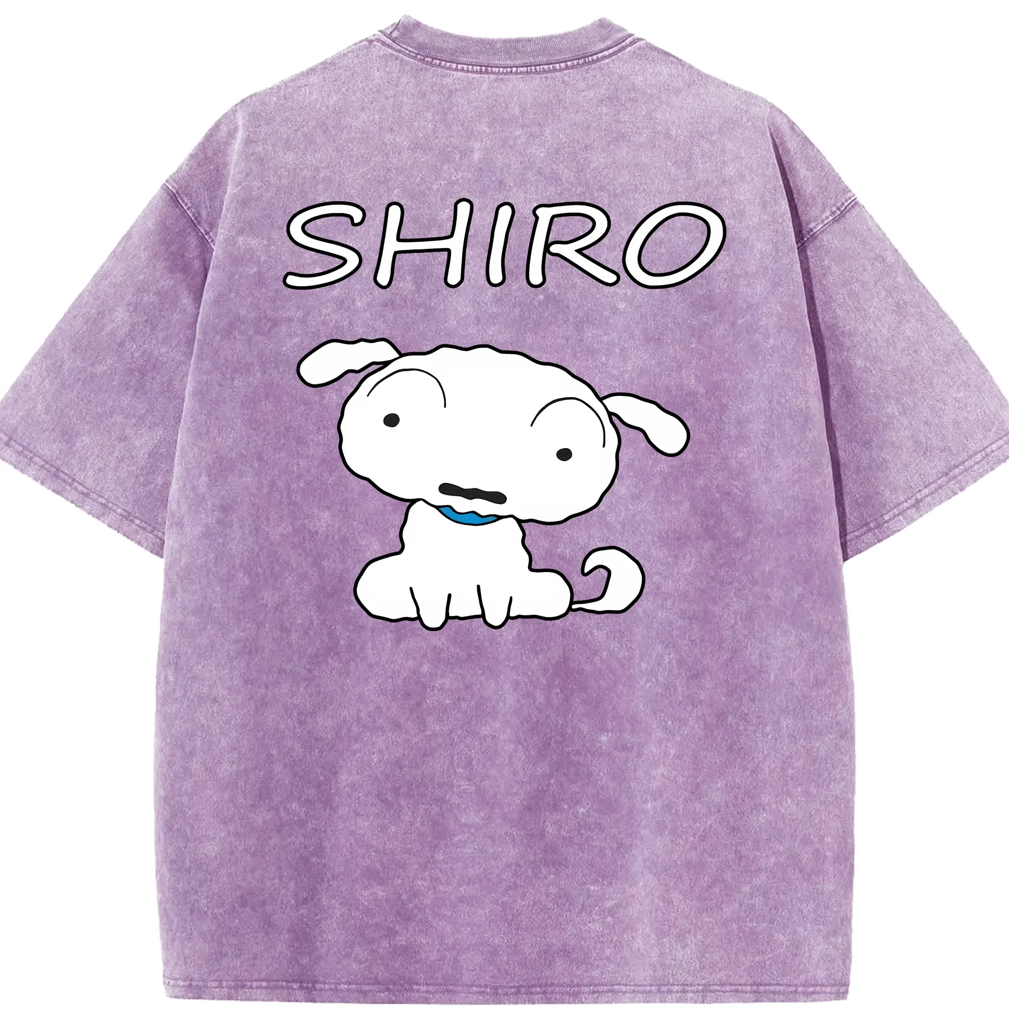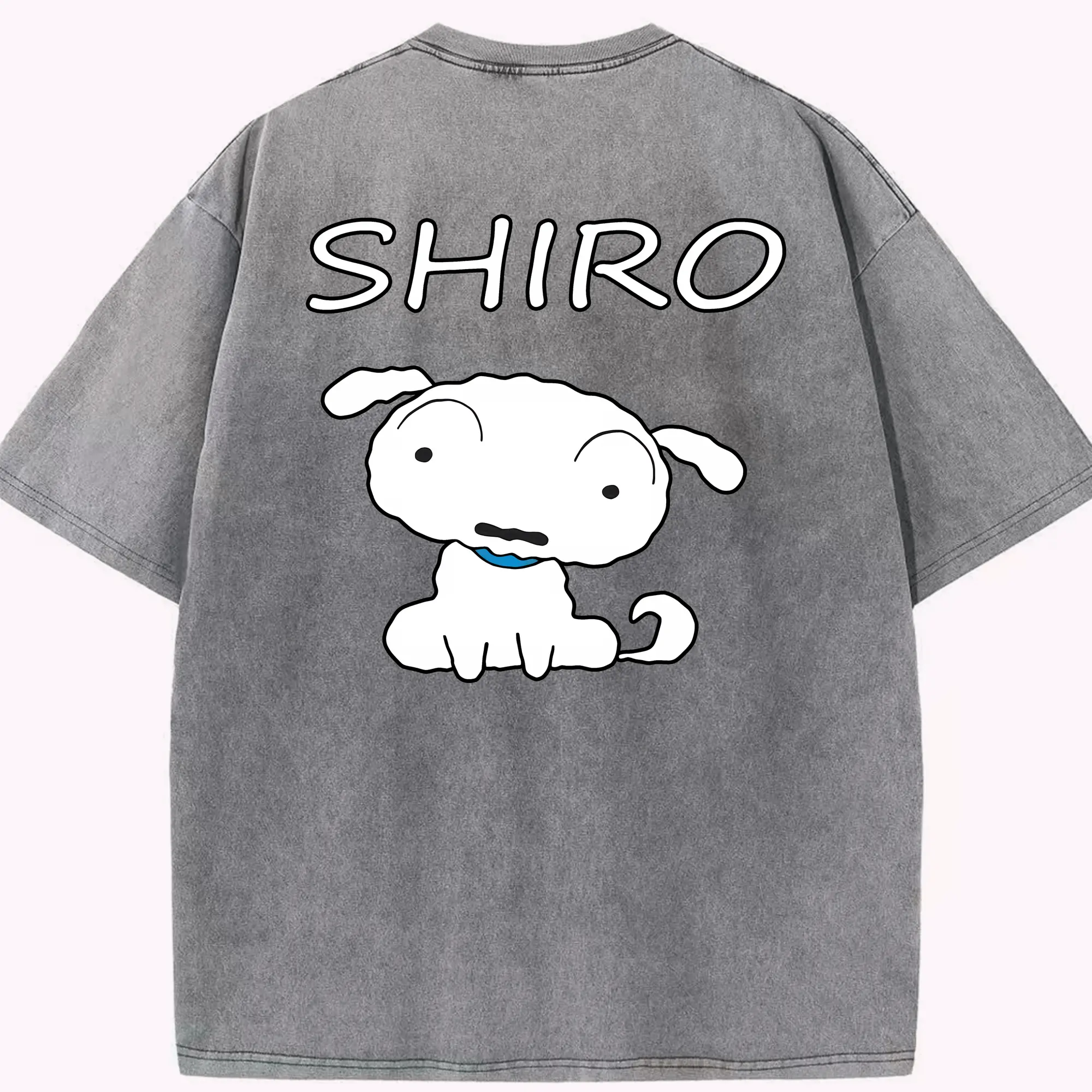 クレヨンしんちゃん グッズ シロ - 綿100% ヴィンテージ風 半袖Tシャツ ・ フロントプリント ・ 柔らか肌触り ・ 通気性 快適 ・ スポーツ カジュアル 外出用