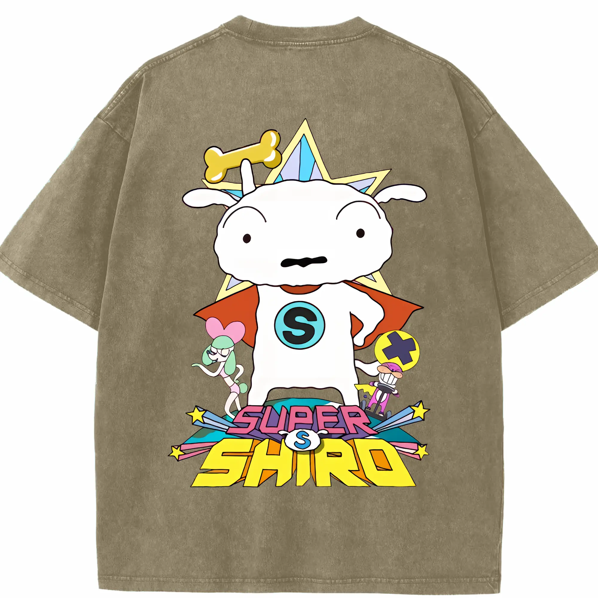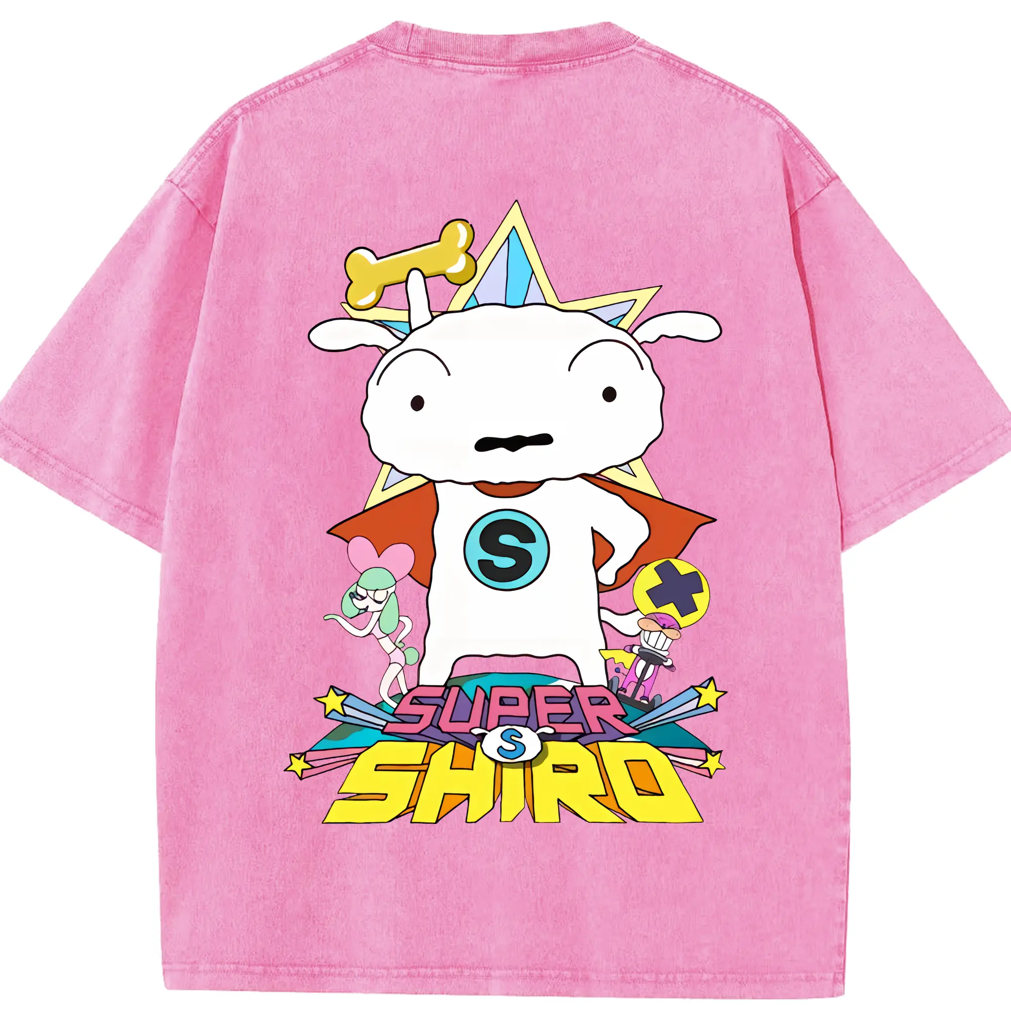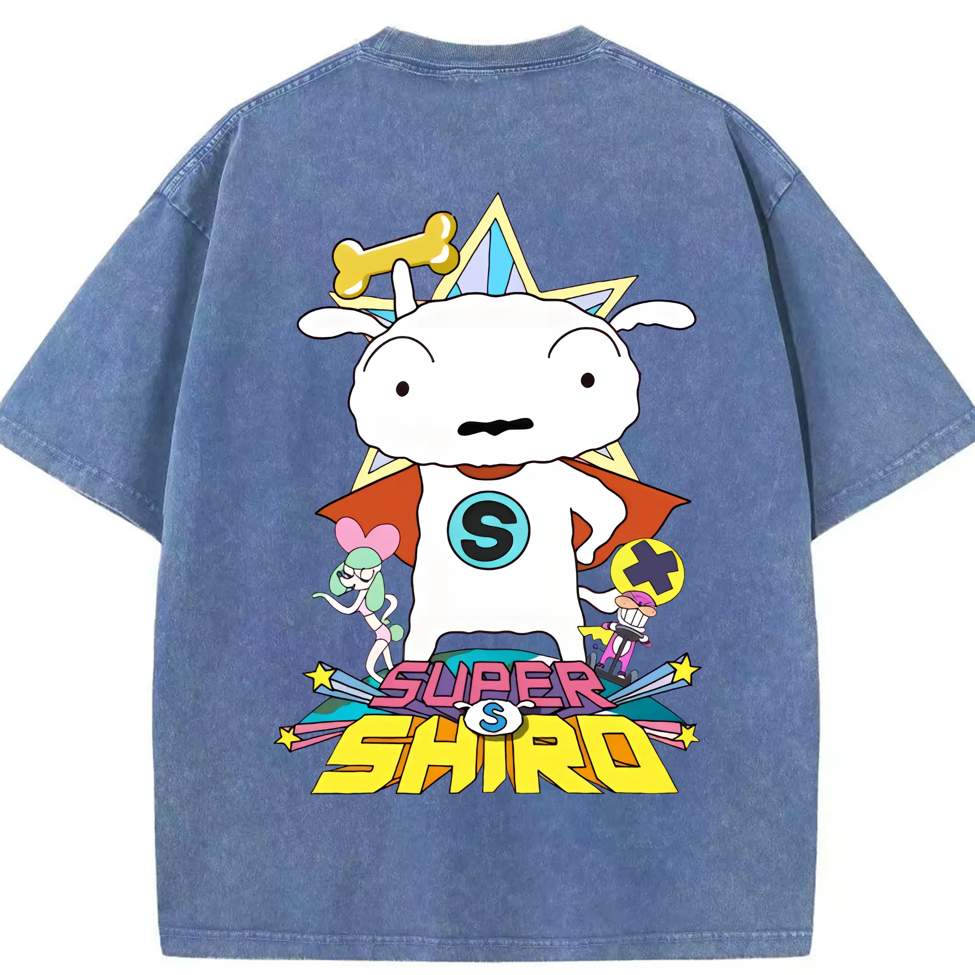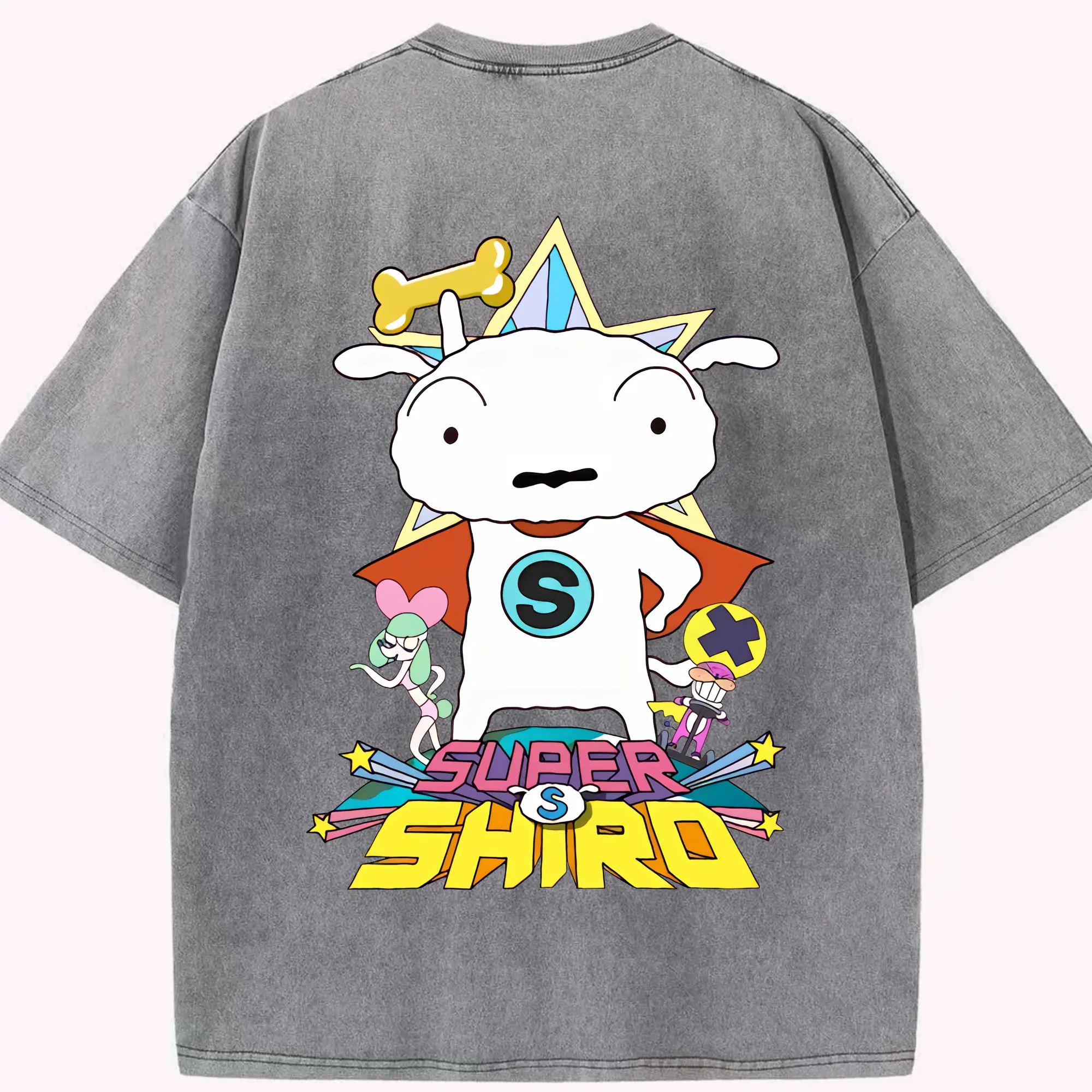クレヨンしんちゃん グッズ シロ - 綿100% ヴィンテージ風 半袖Tシャツ ・ フロントプリント ・ 柔らか肌触り ・ 通気性 快適 ・ スポーツ カジュアル 外出用
