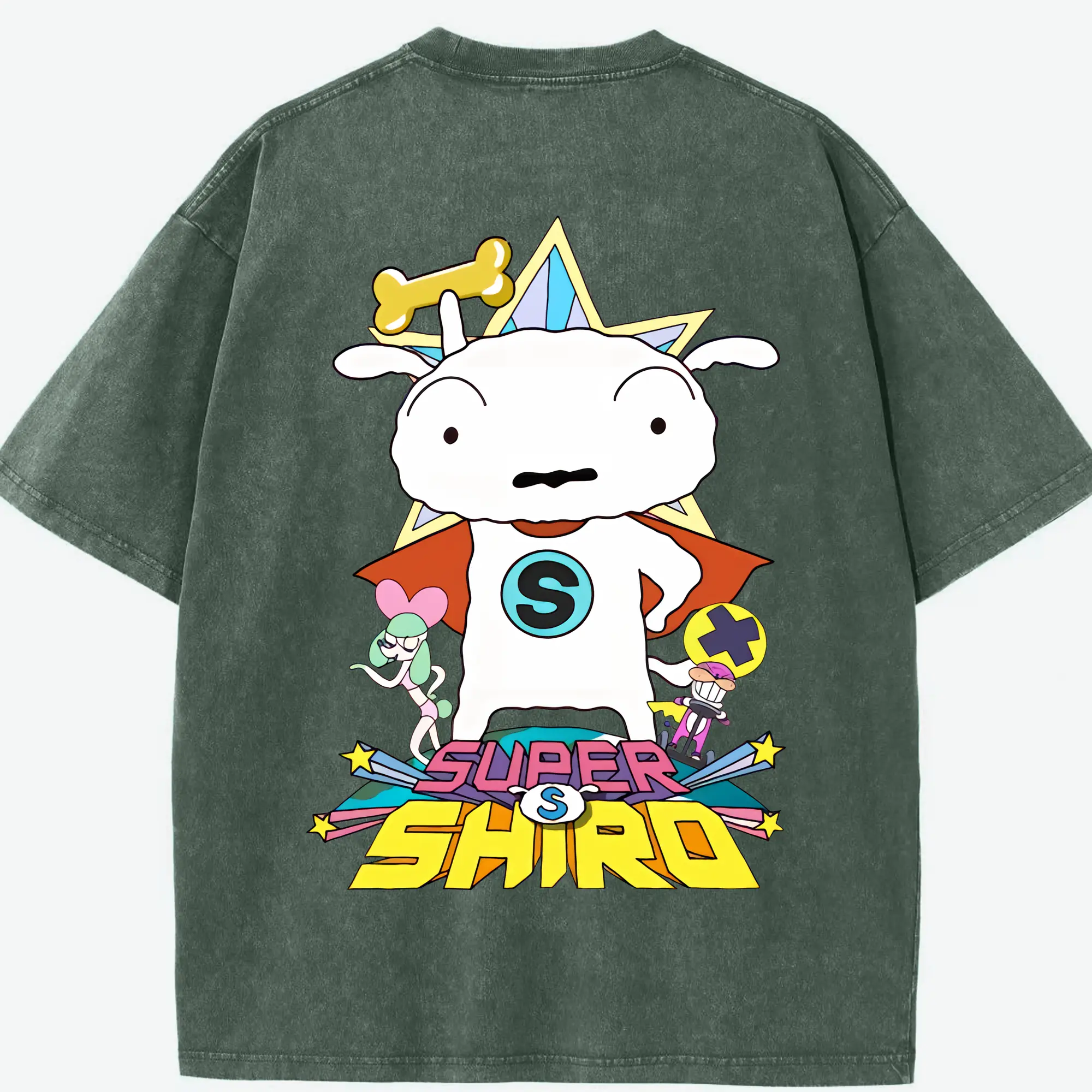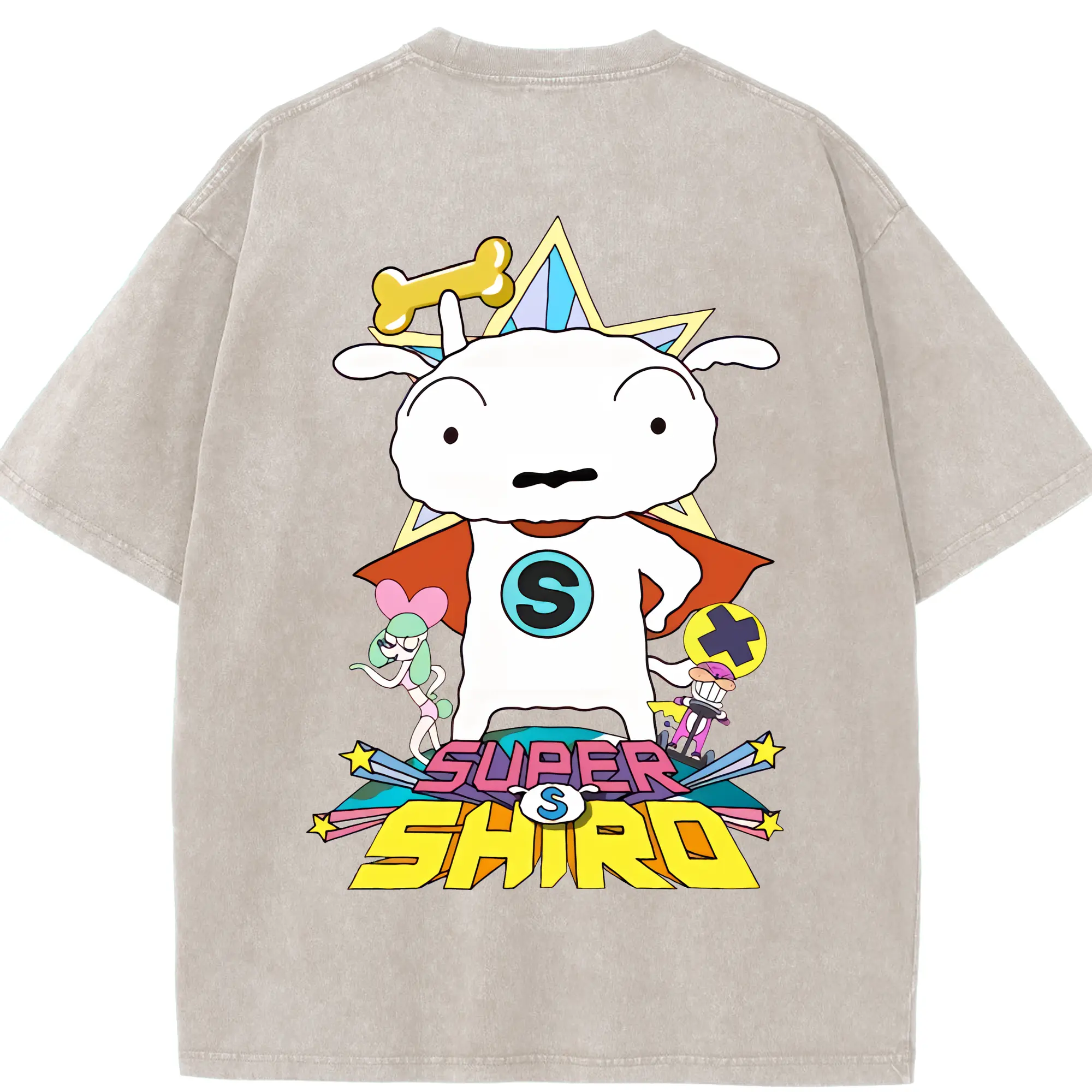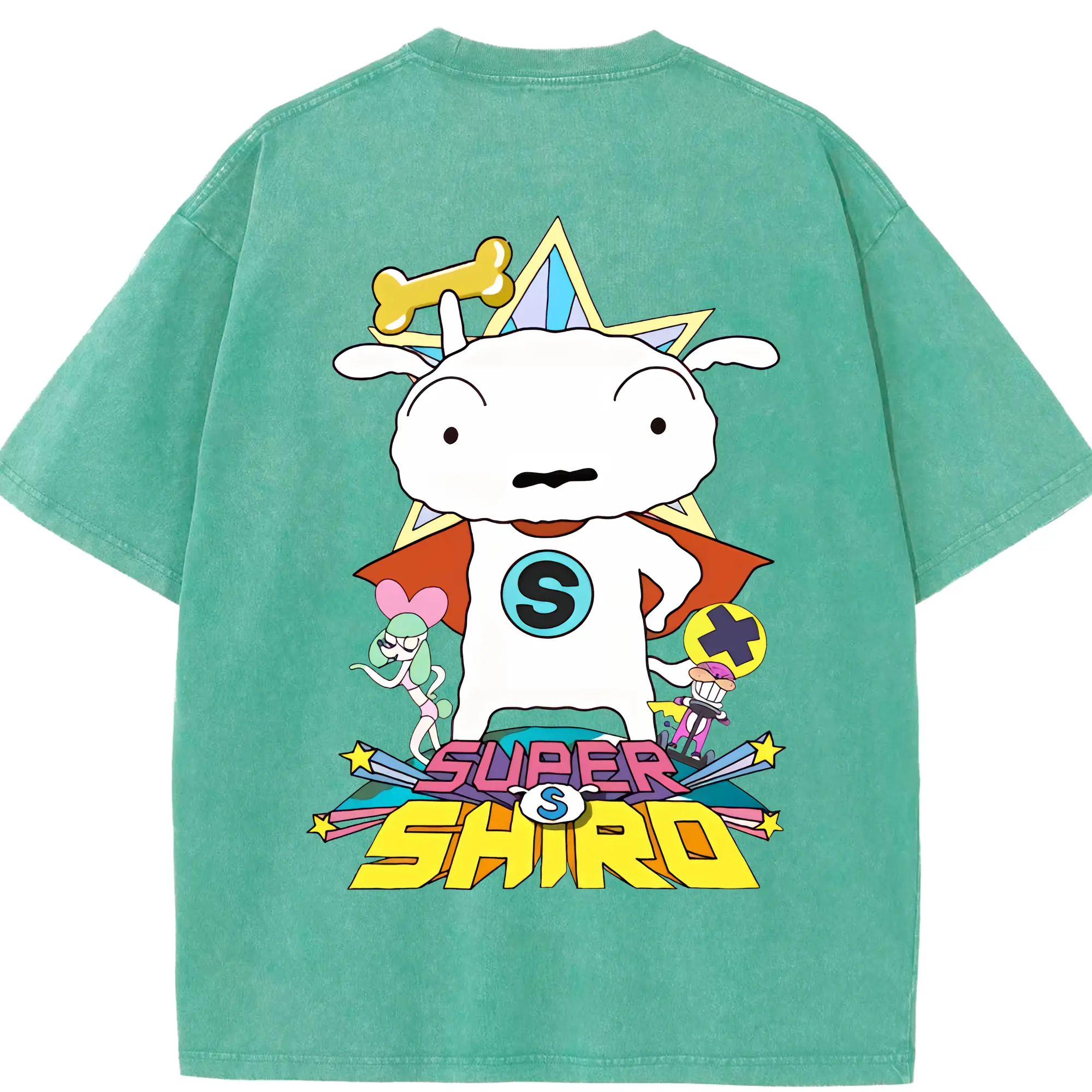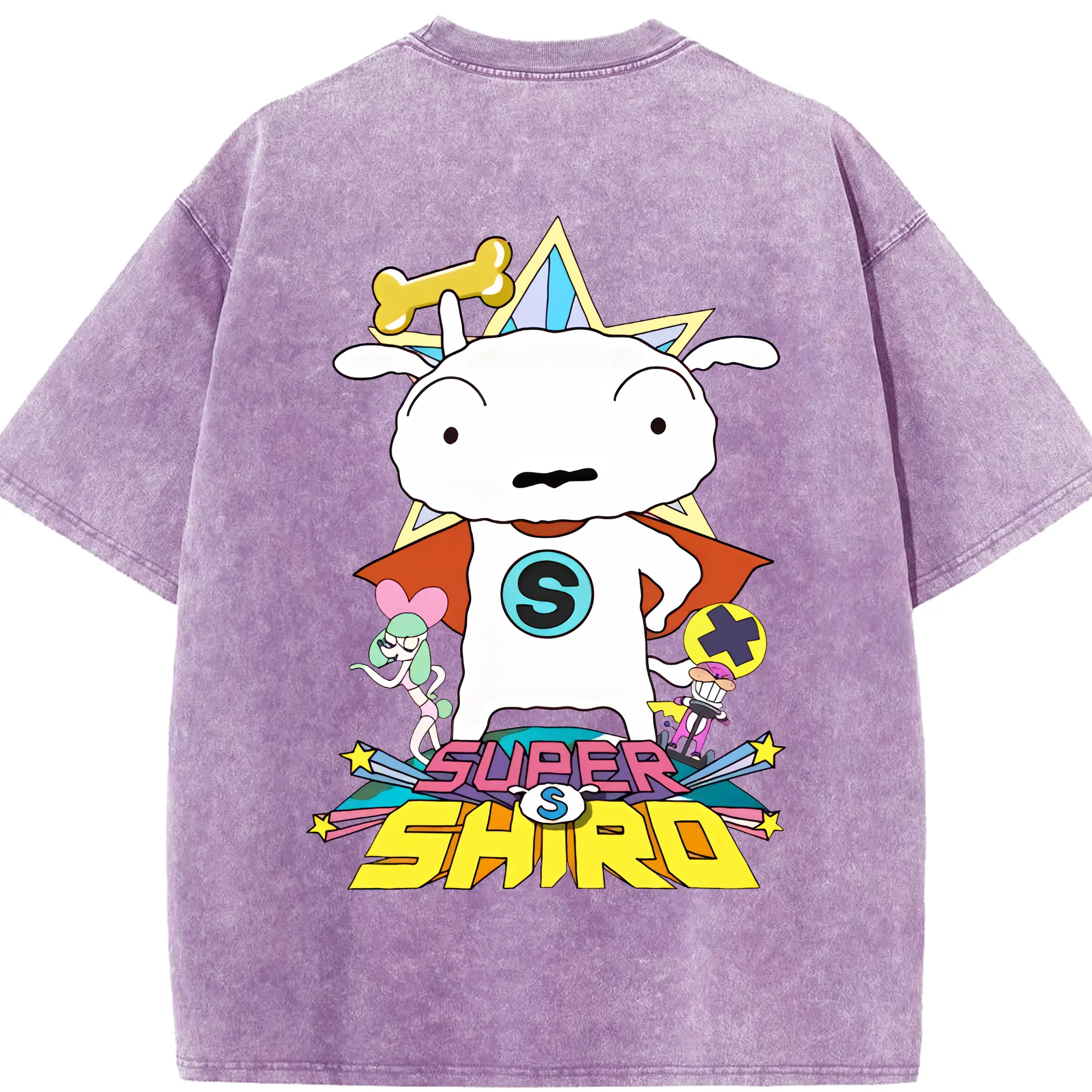 クレヨンしんちゃん グッズ シロ - 綿100% ヴィンテージ風 半袖Tシャツ ・ フロントプリント ・ 柔らか肌触り ・ 通気性 快適 ・ スポーツ カジュアル 外出用