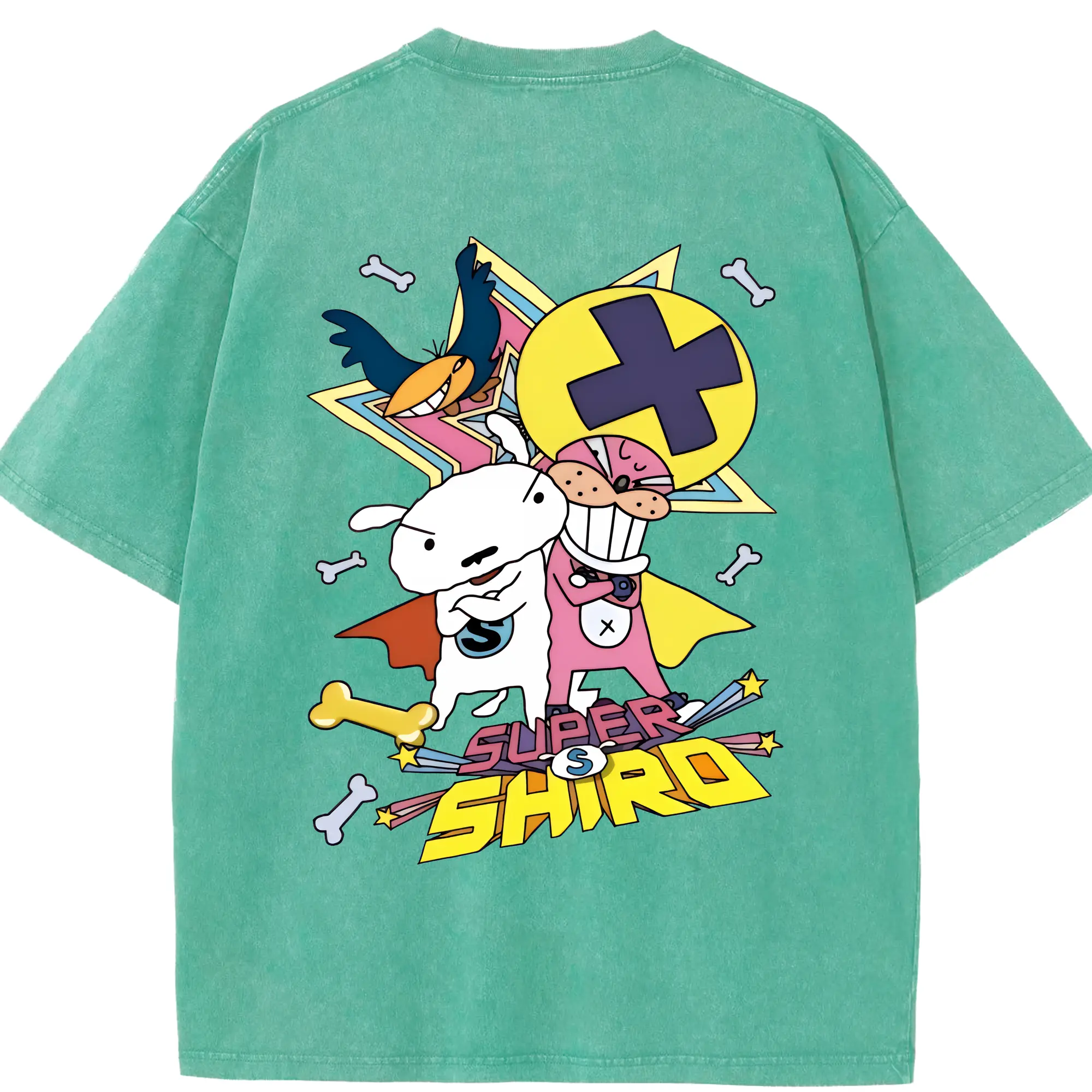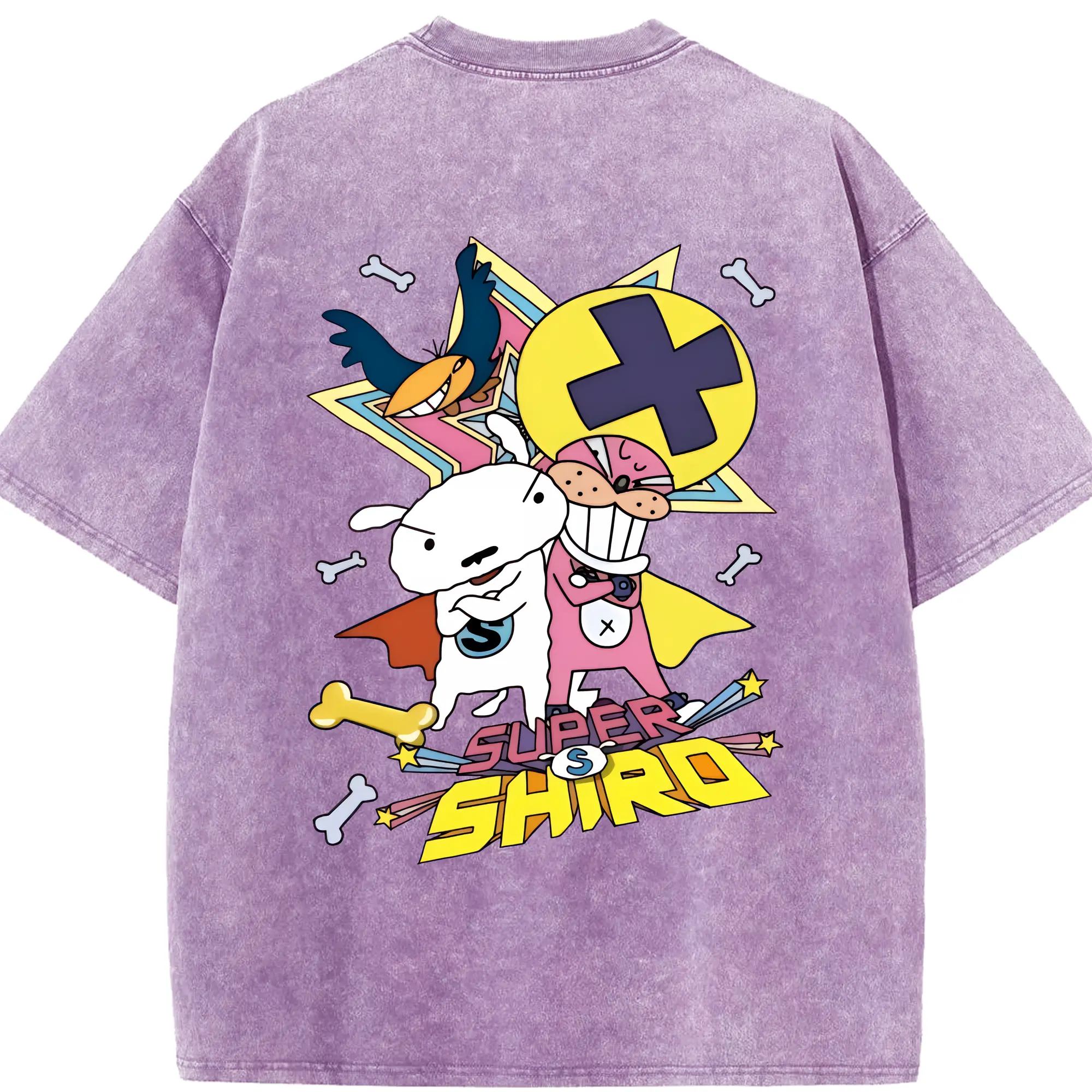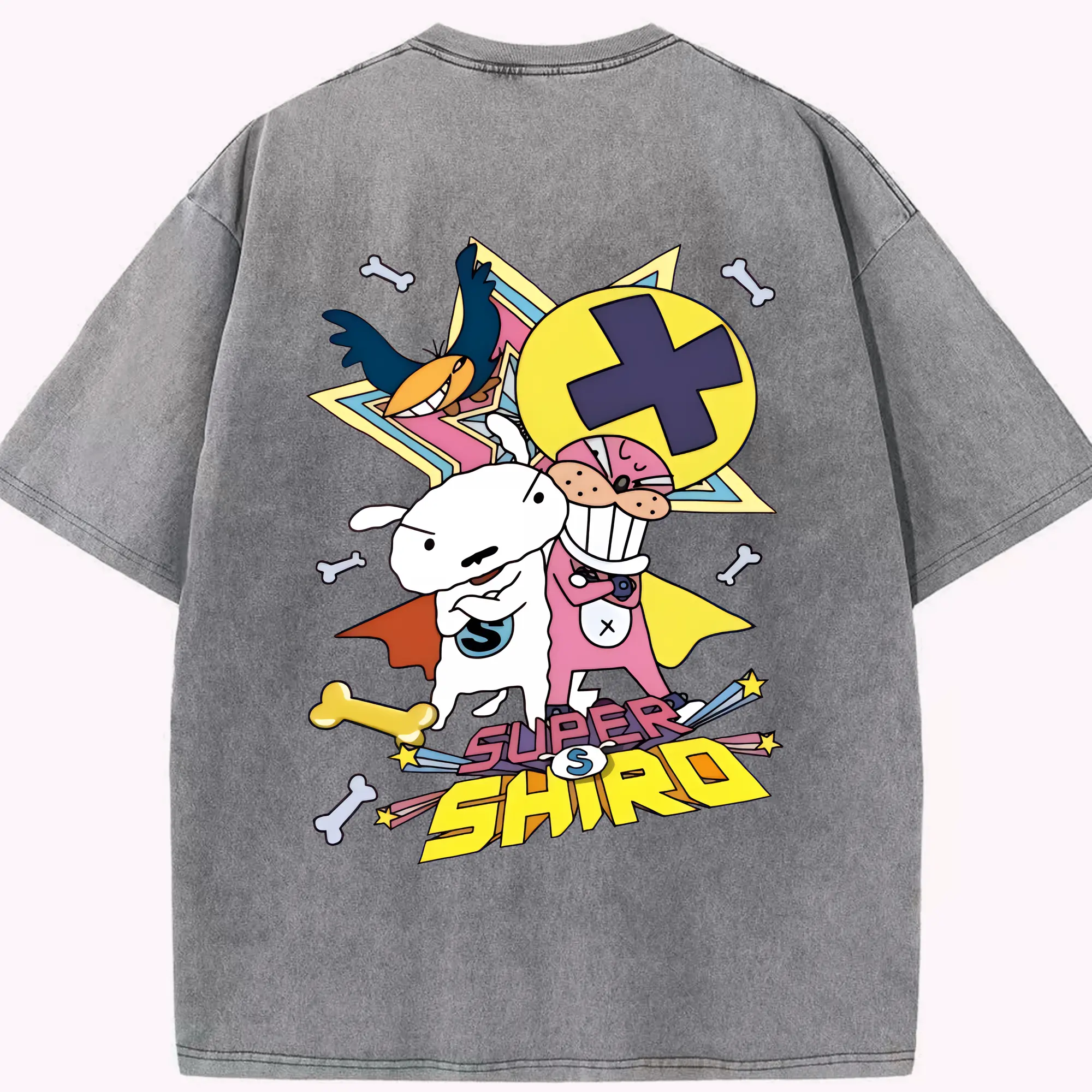 クレヨンしんちゃん グッズ シロ - 綿100% ヴィンテージ風 半袖Tシャツ ・ フロントプリント ・ 柔らか肌触り ・ 通気性 快適 ・ スポーツ カジュアル 外出用