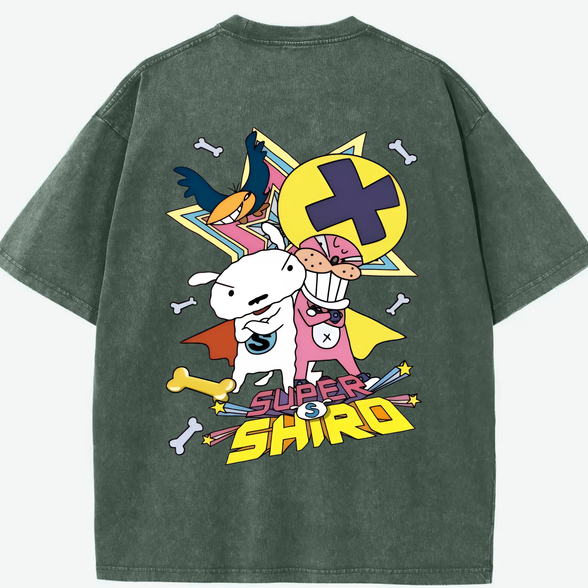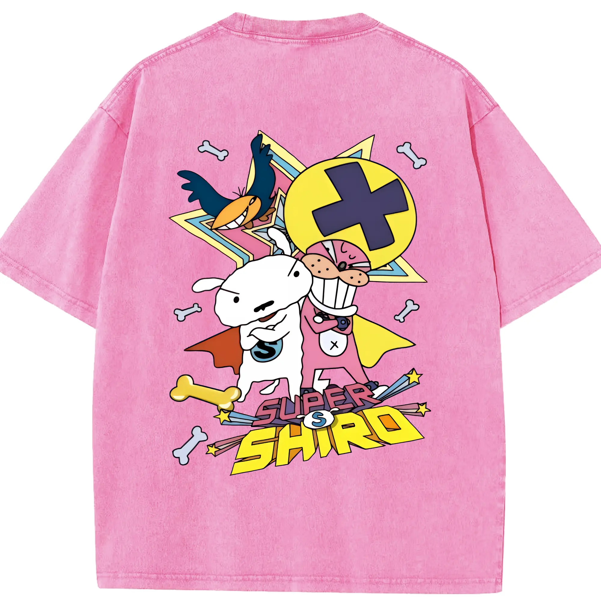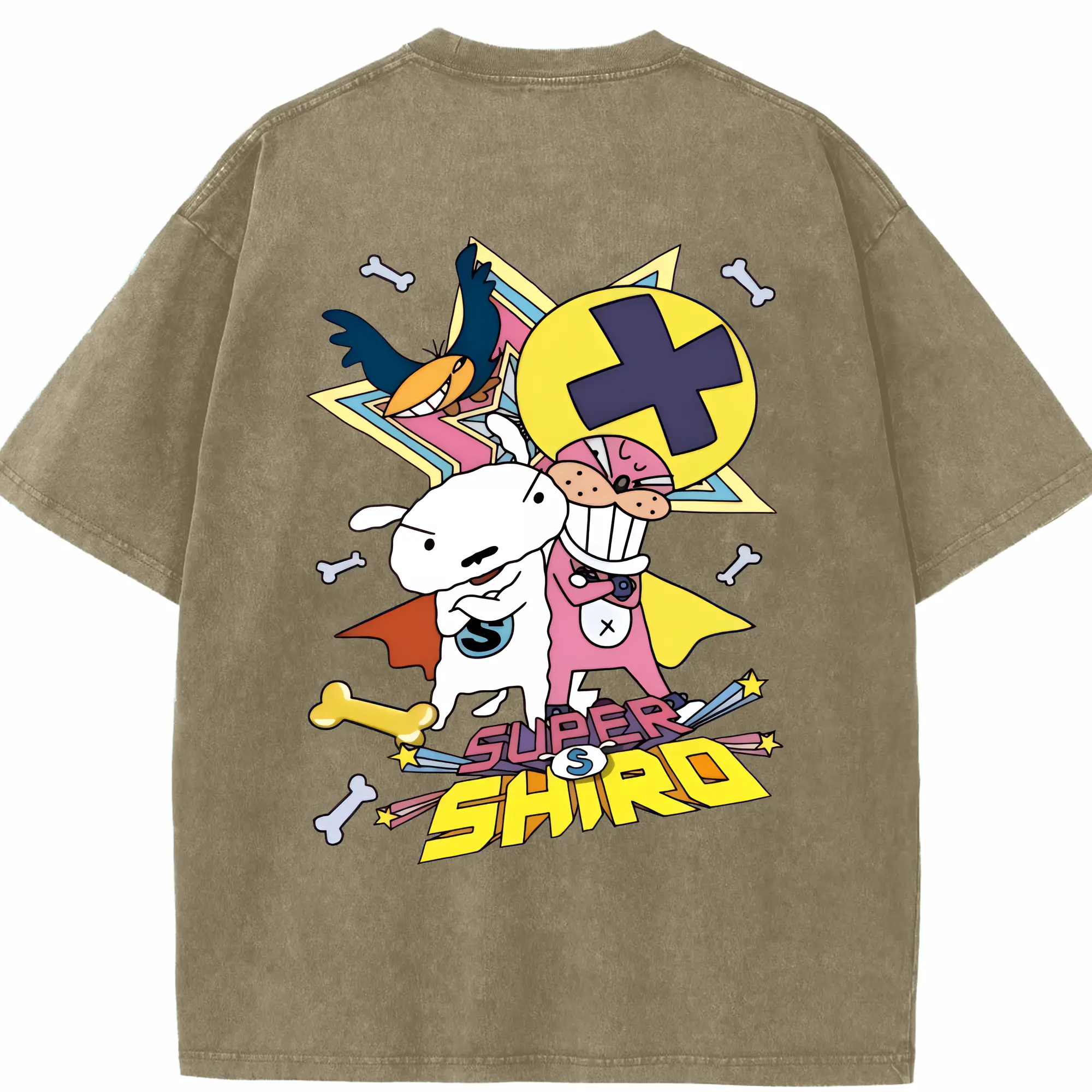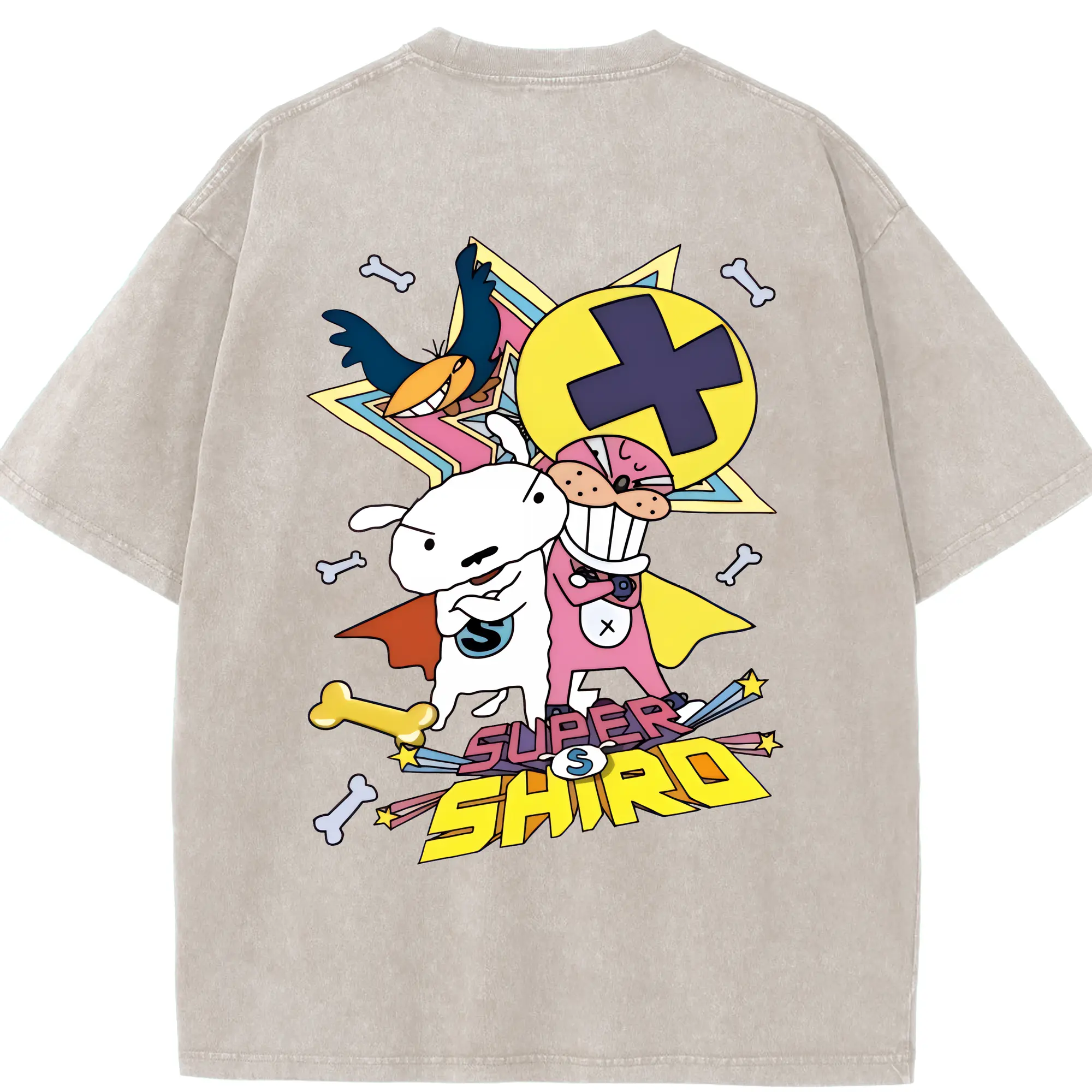 クレヨンしんちゃん グッズ シロ - 綿100% ヴィンテージ風 半袖Tシャツ ・ フロントプリント ・ 柔らか肌触り ・ 通気性 快適 ・ スポーツ カジュアル 外出用