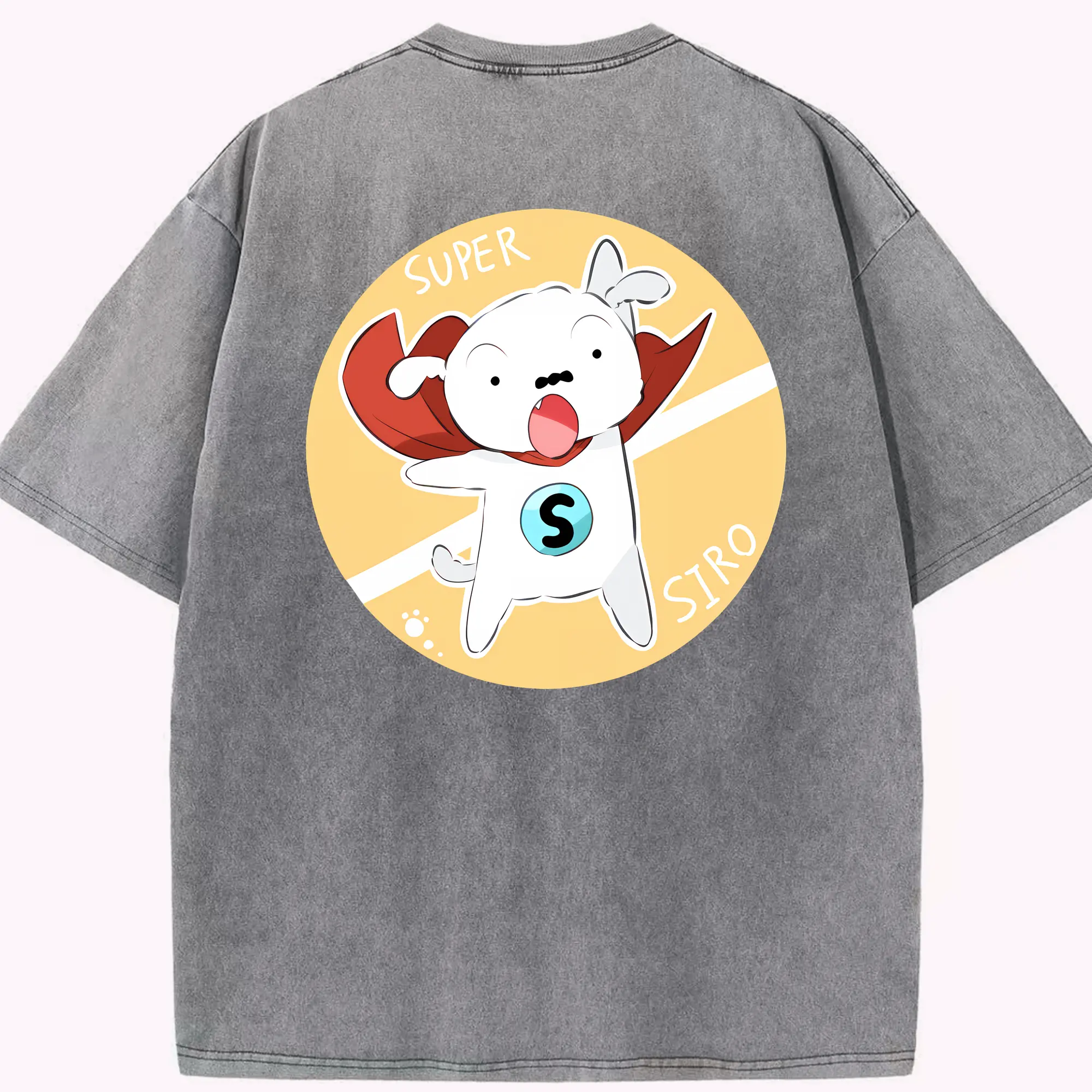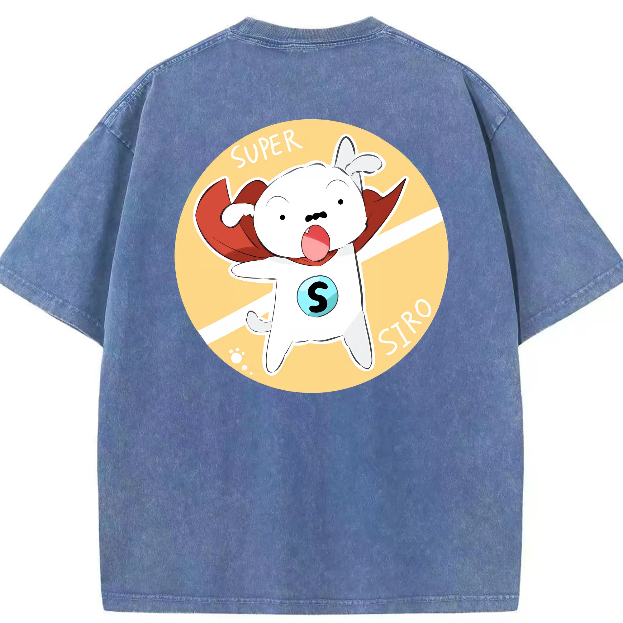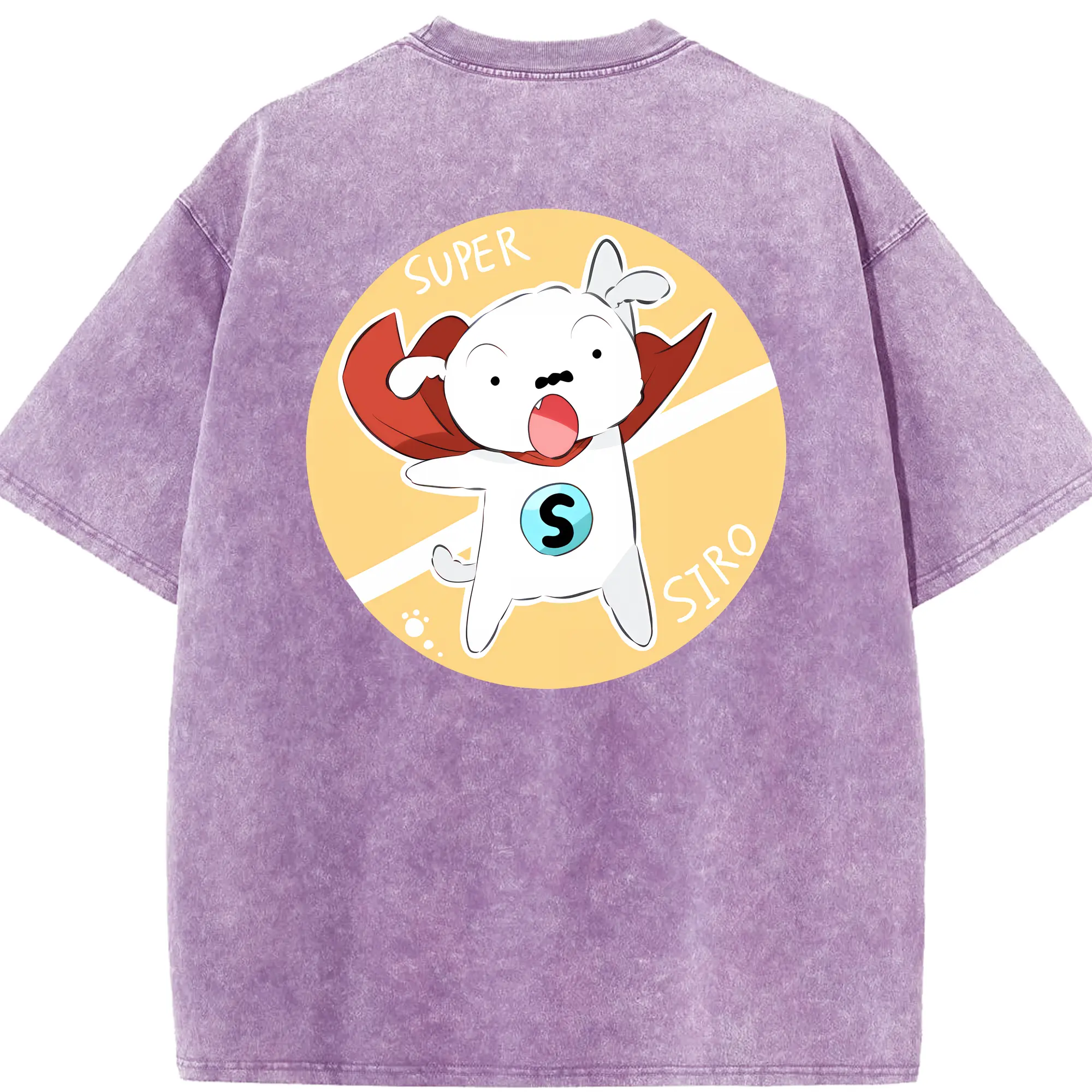 クレヨンしんちゃん グッズ シロ - 綿100% ヴィンテージ風 半袖Tシャツ ・ フロントプリント ・ 柔らか肌触り ・ 通気性 快適 ・ スポーツ カジュアル 外出用