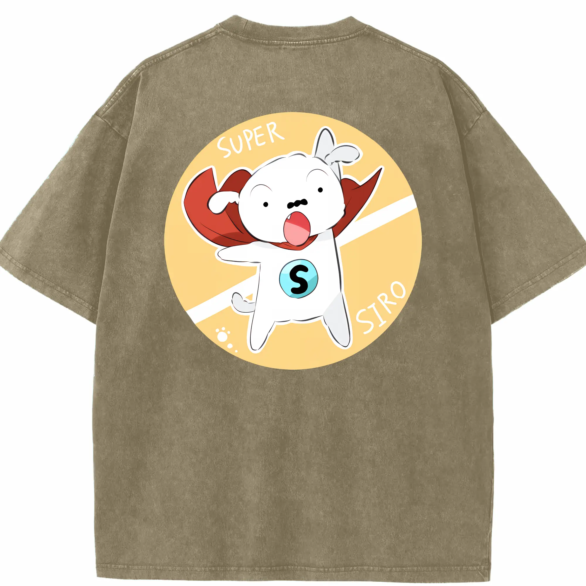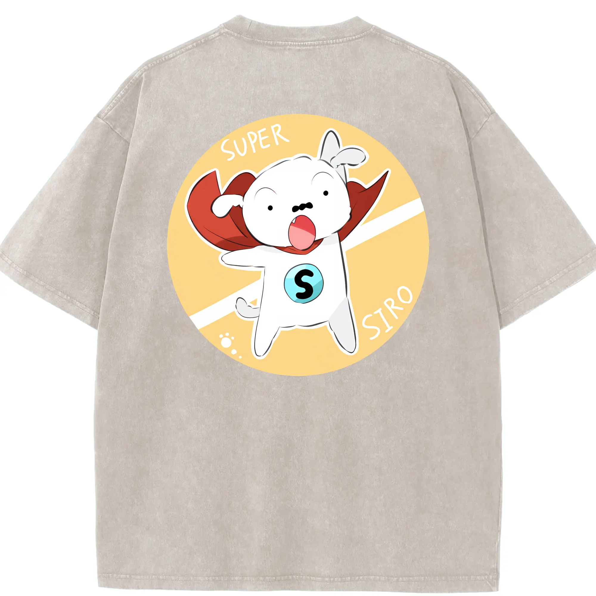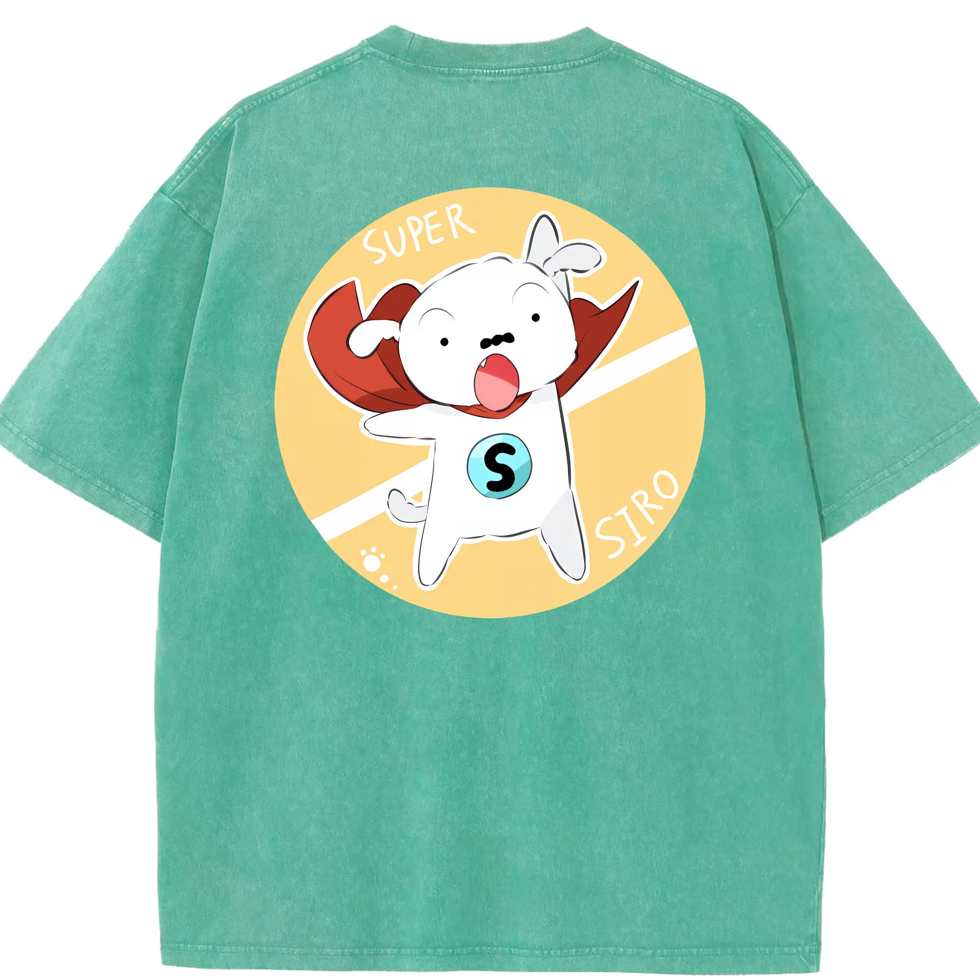 クレヨンしんちゃん グッズ シロ - 綿100% ヴィンテージ風 半袖Tシャツ ・ フロントプリント ・ 柔らか肌触り ・ 通気性 快適 ・ スポーツ カジュアル 外出用
