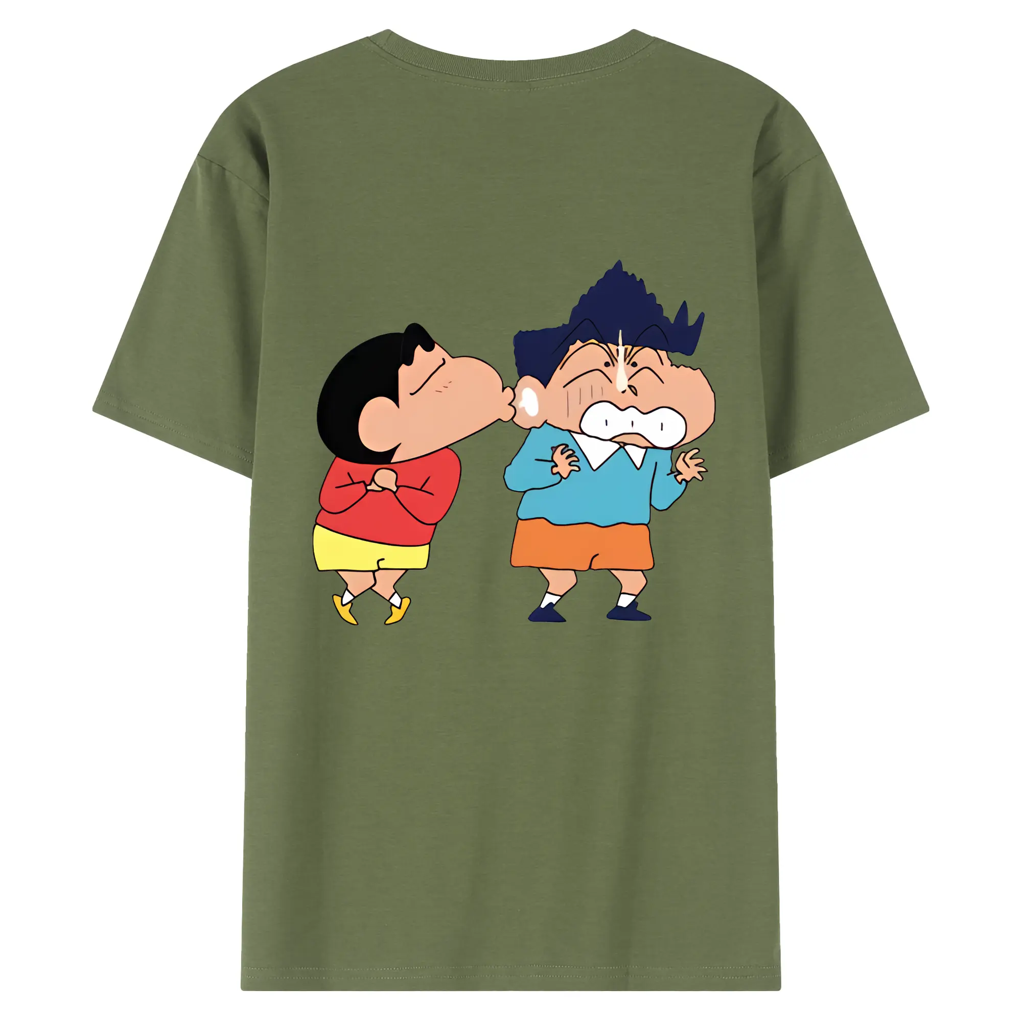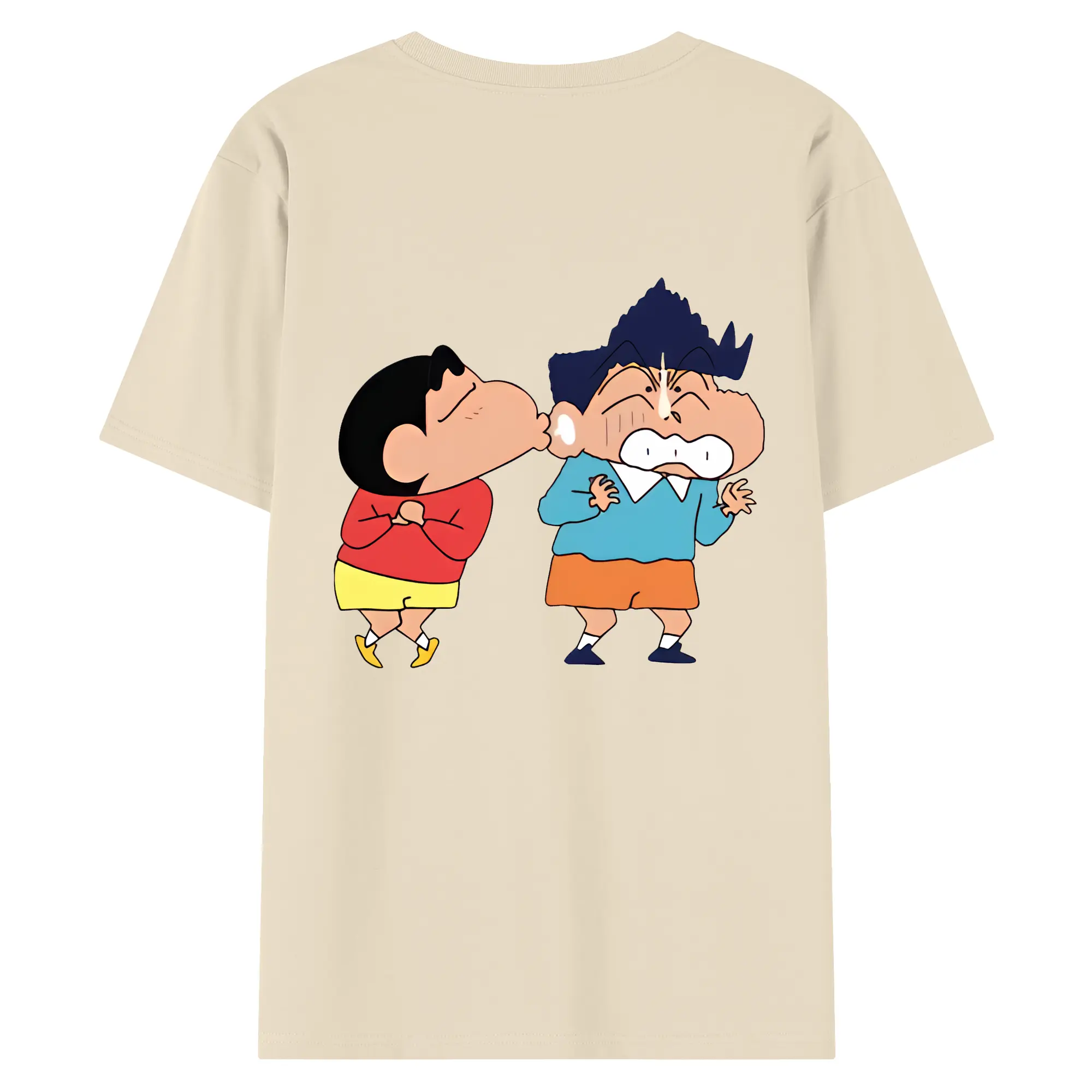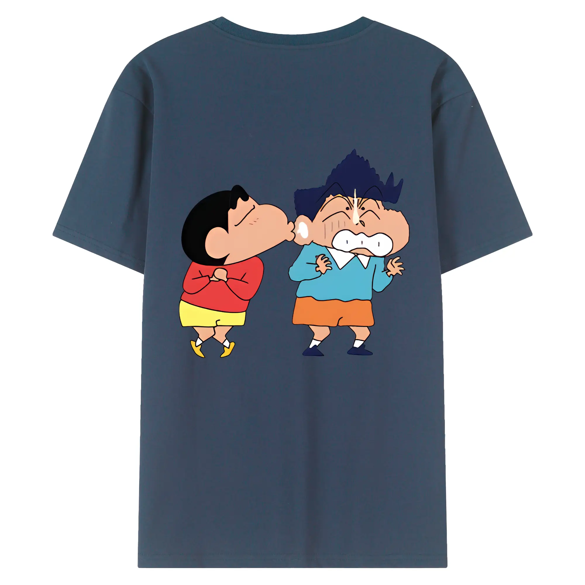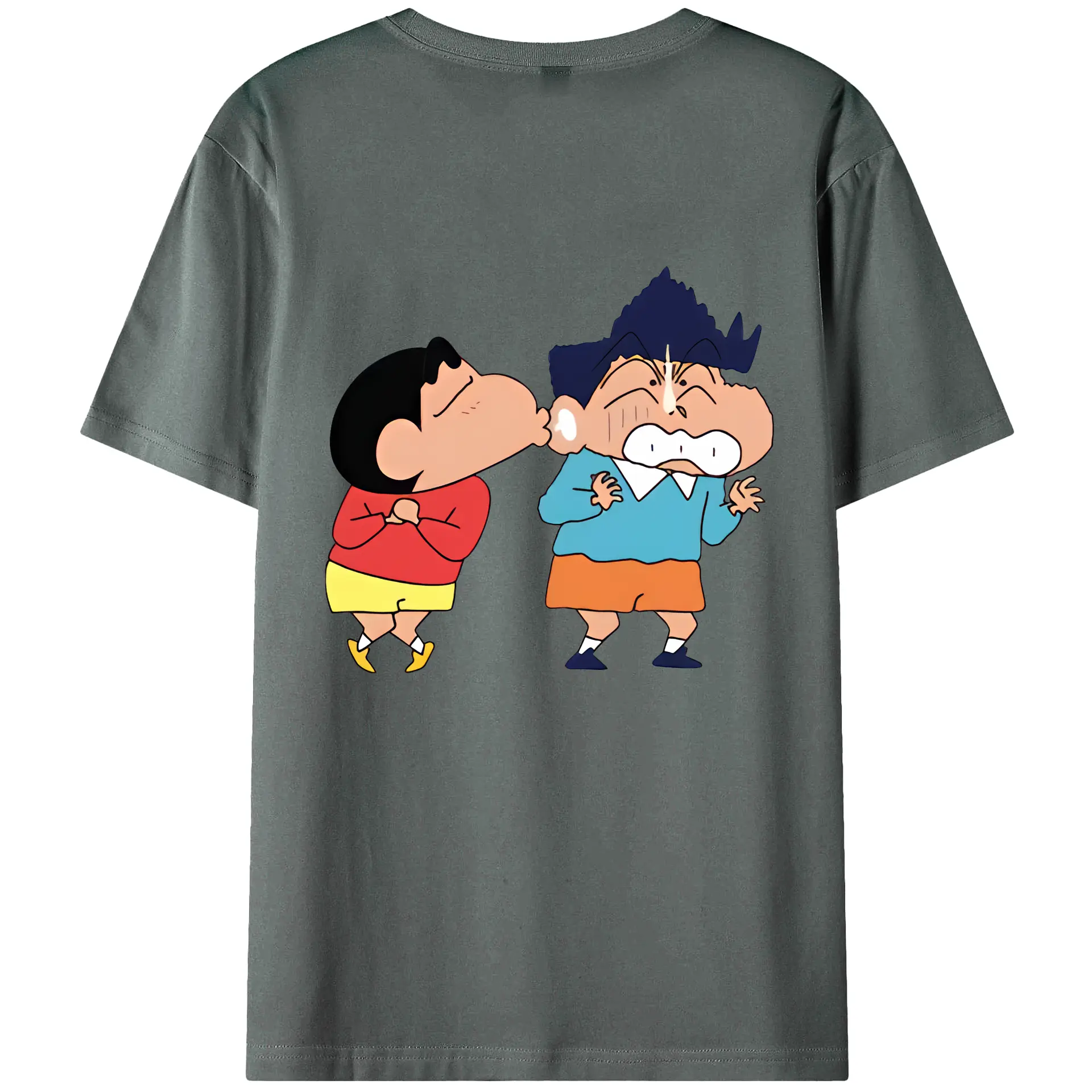 クレヨンしんちゃん グッズ 風間 とおる - 綿100% ヴィンテージ風 半袖Tシャツ ・ 背面プリント ・ 柔らか肌触り ・ 通気性 快適 ・ スポーツ カジュアル 外出用