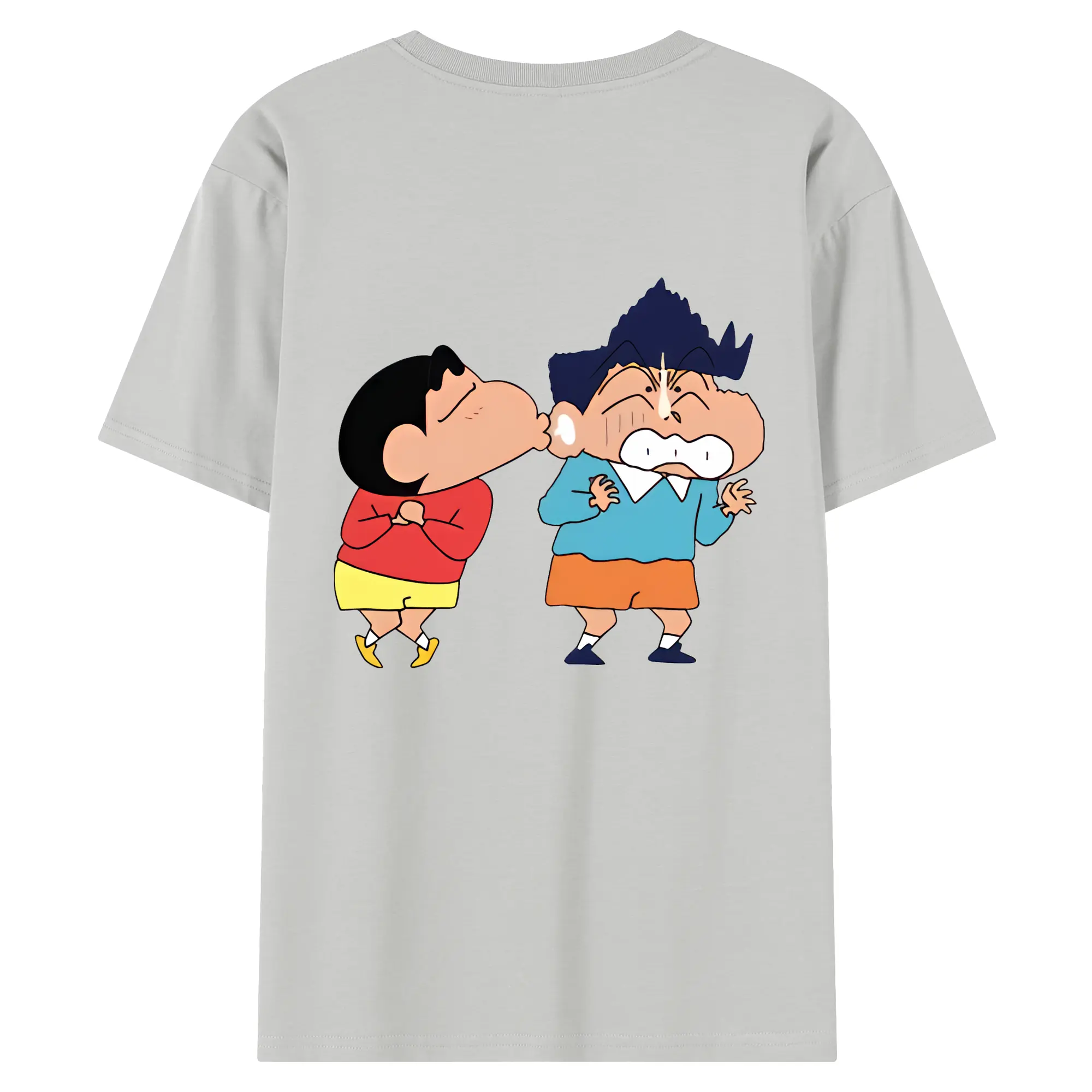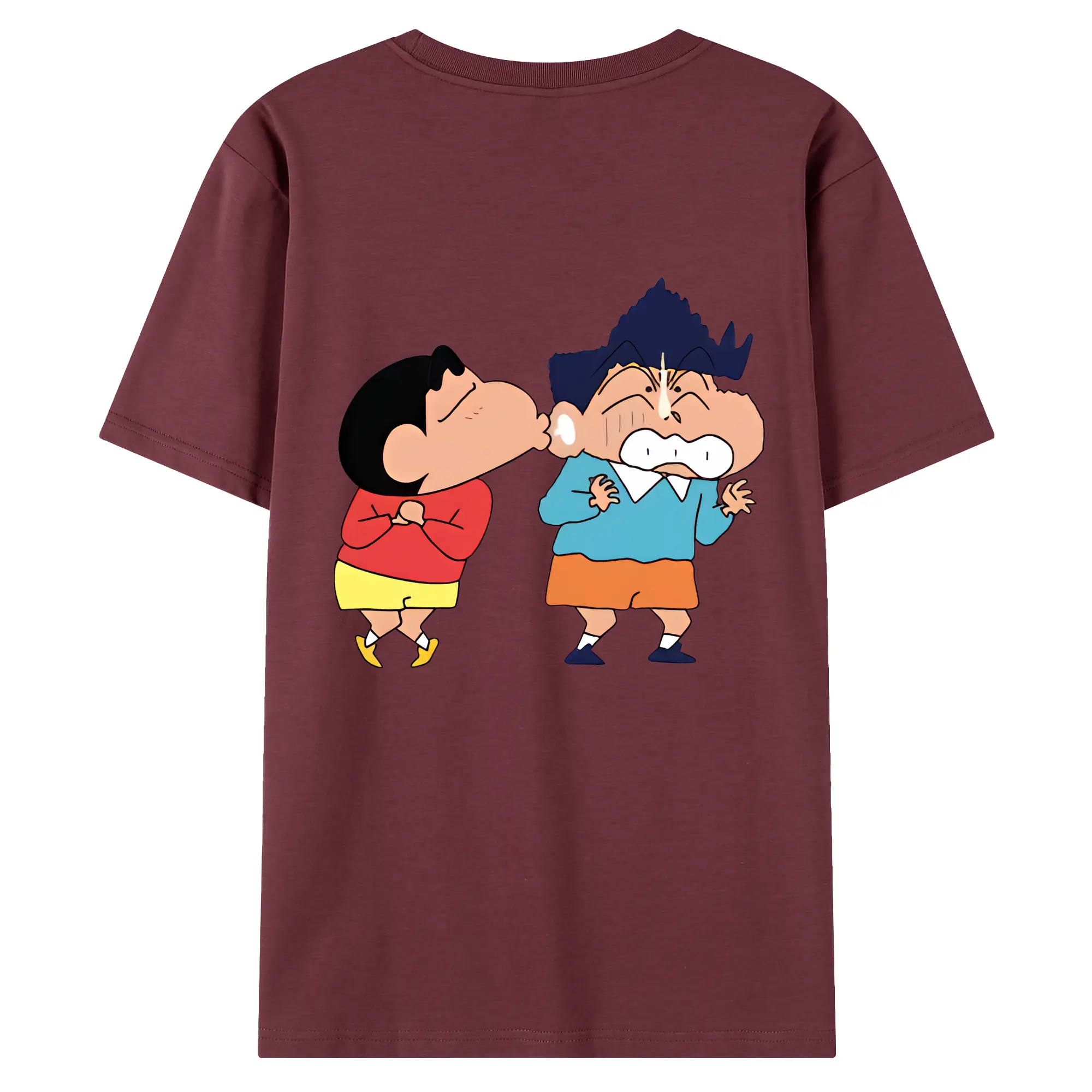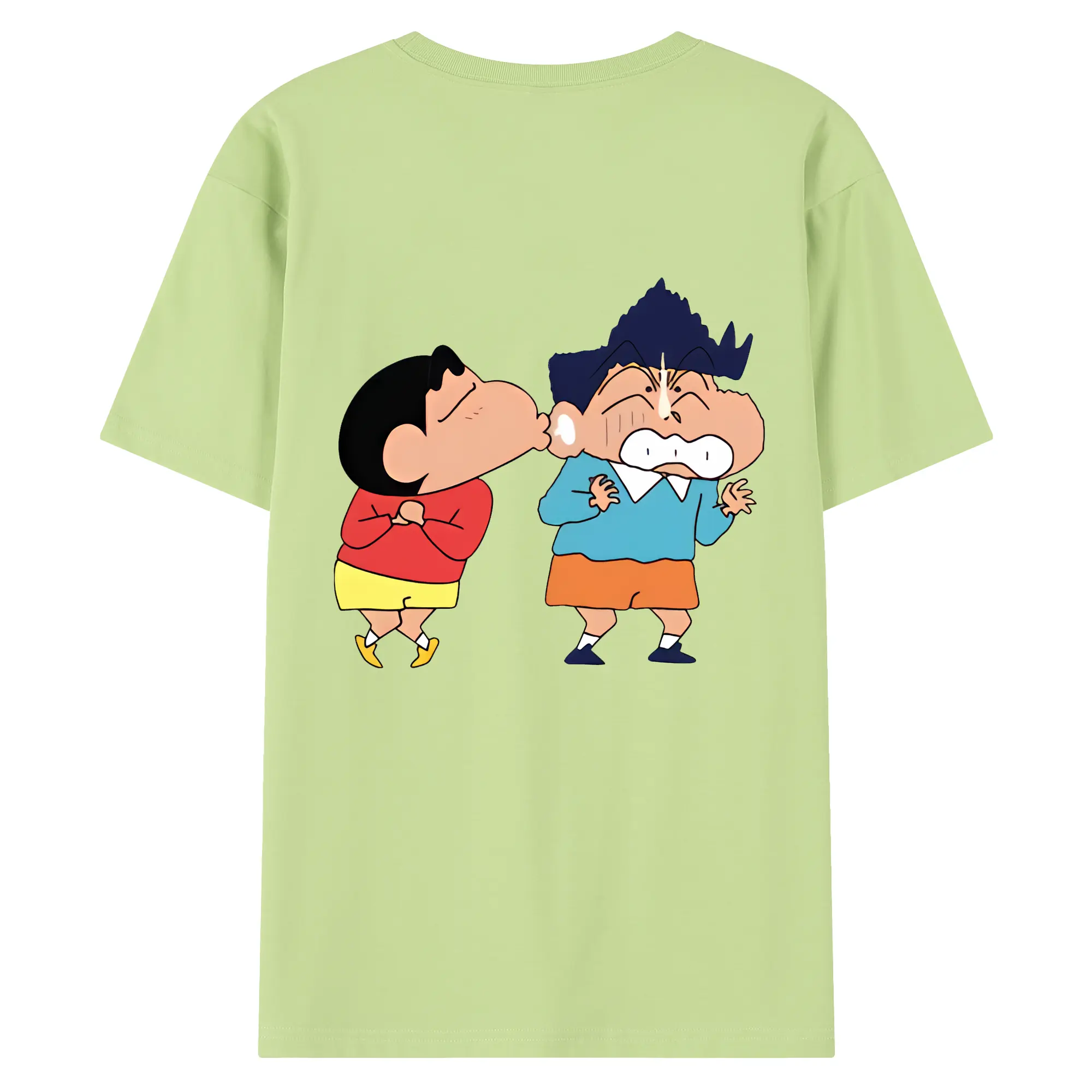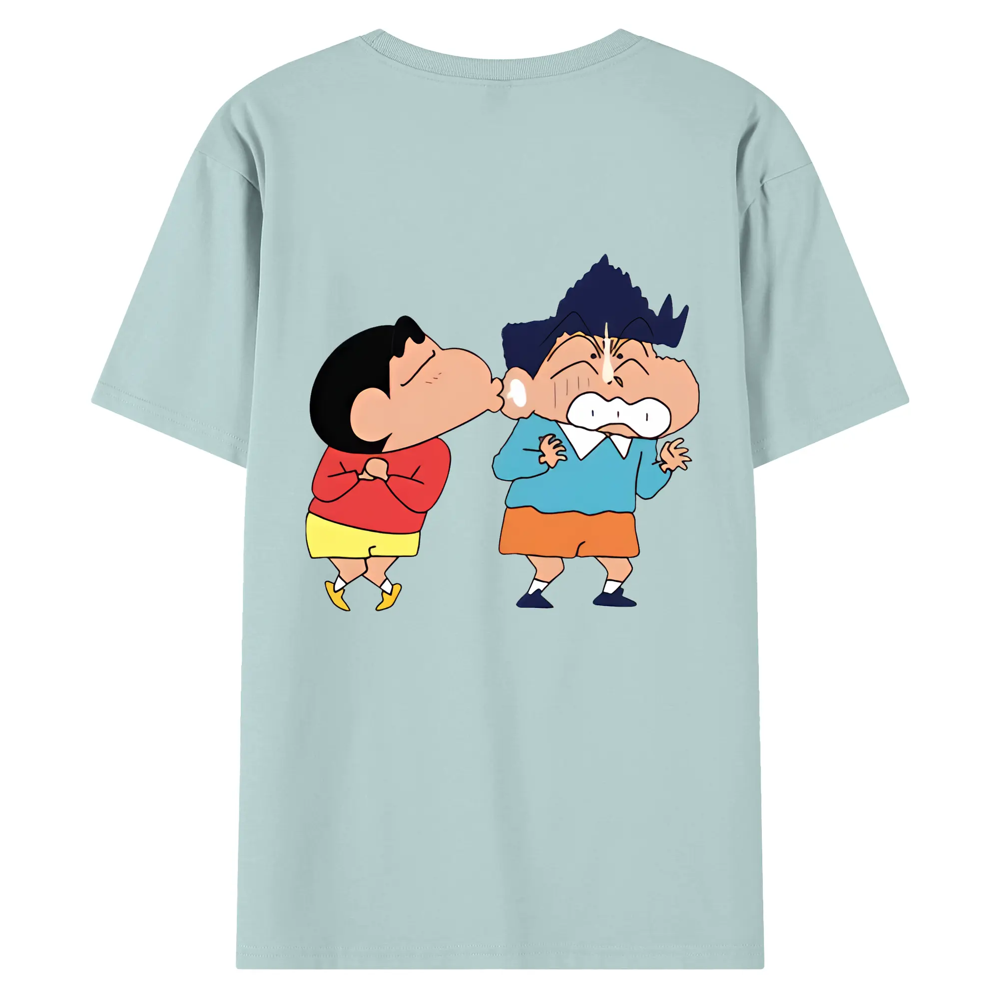 クレヨンしんちゃん グッズ 風間 とおる - 綿100% ヴィンテージ風 半袖Tシャツ ・ 背面プリント ・ 柔らか肌触り ・ 通気性 快適 ・ スポーツ カジュアル 外出用
