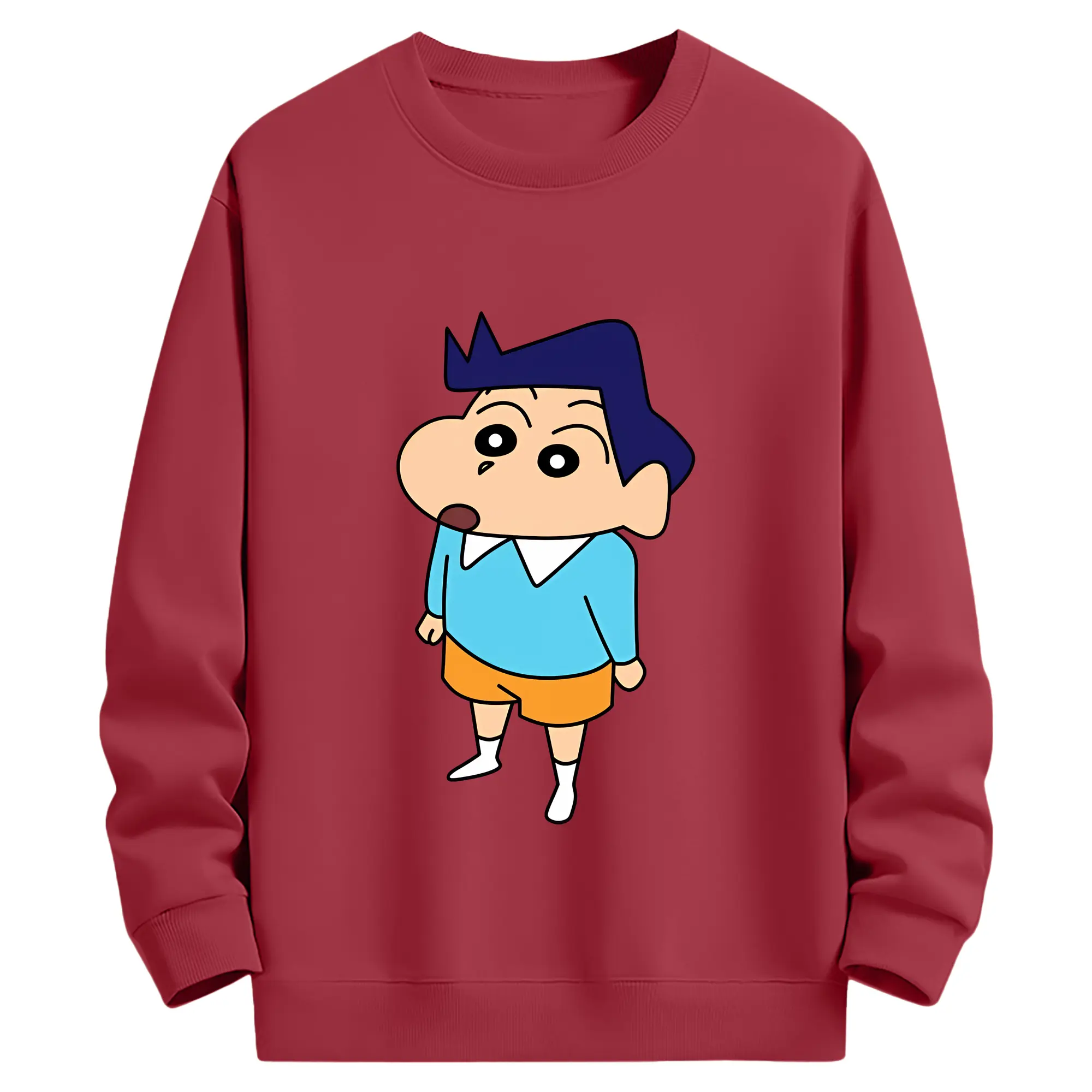 クレヨンしんちゃん グッズ 野原 しんのすけ - 高品質 クルーネック スウェット ・ コットン59% ポリエステル41% ・ ユニセックス 長袖 トレーナー ・ カジュアル デイリー スポーツ 散歩用