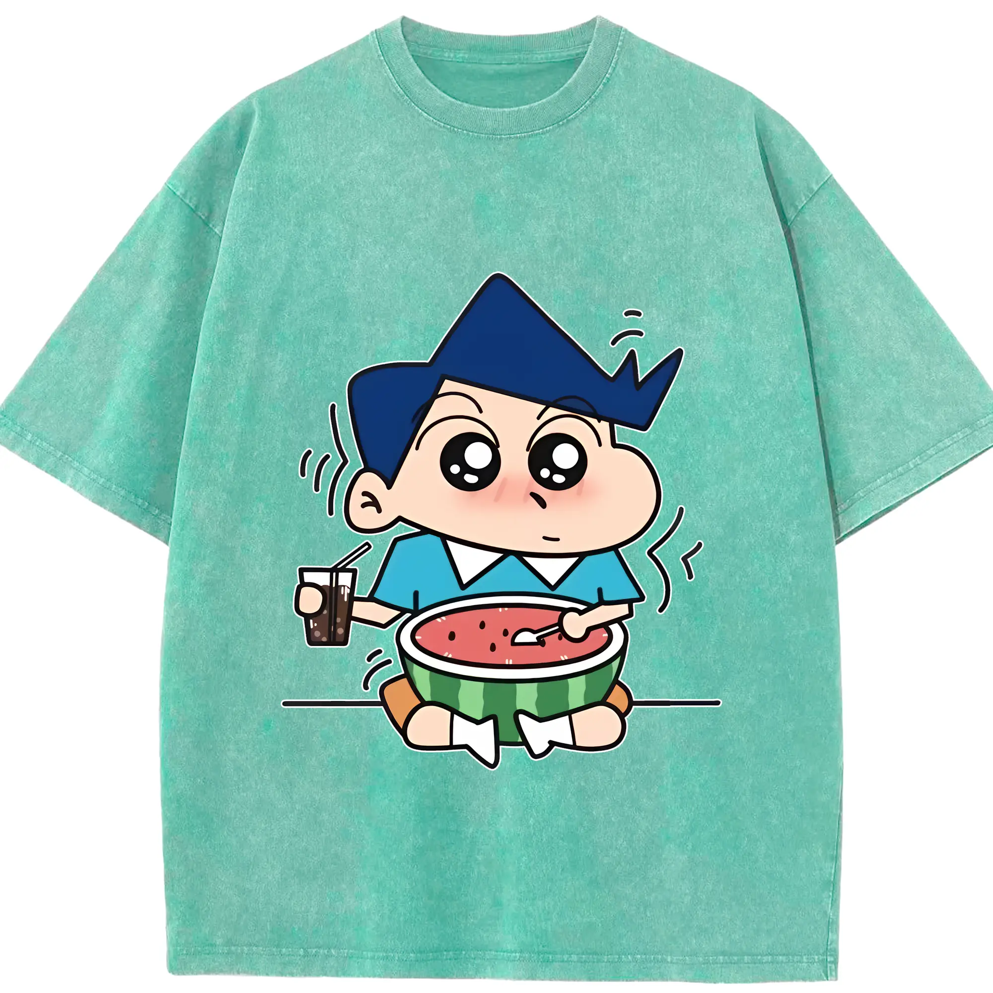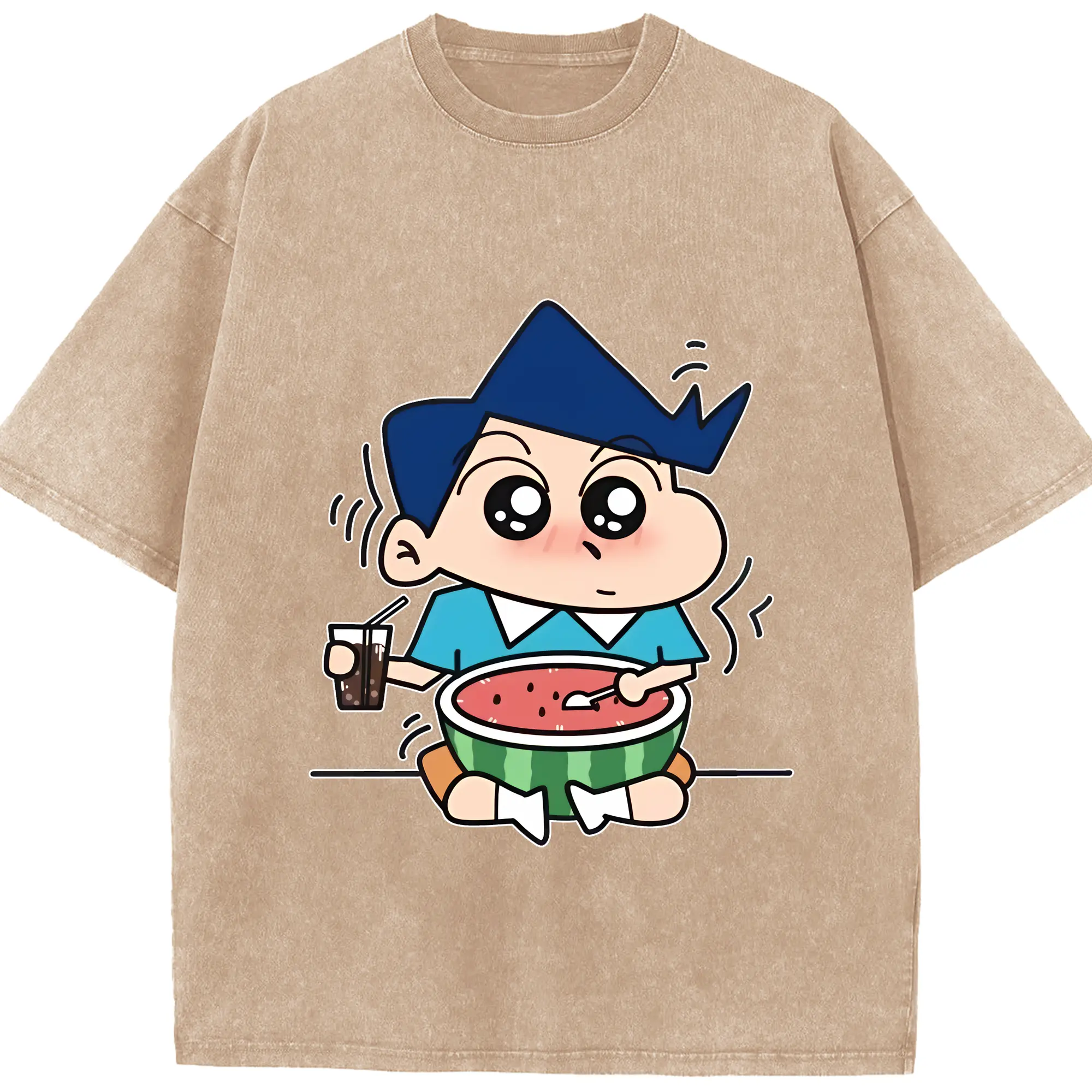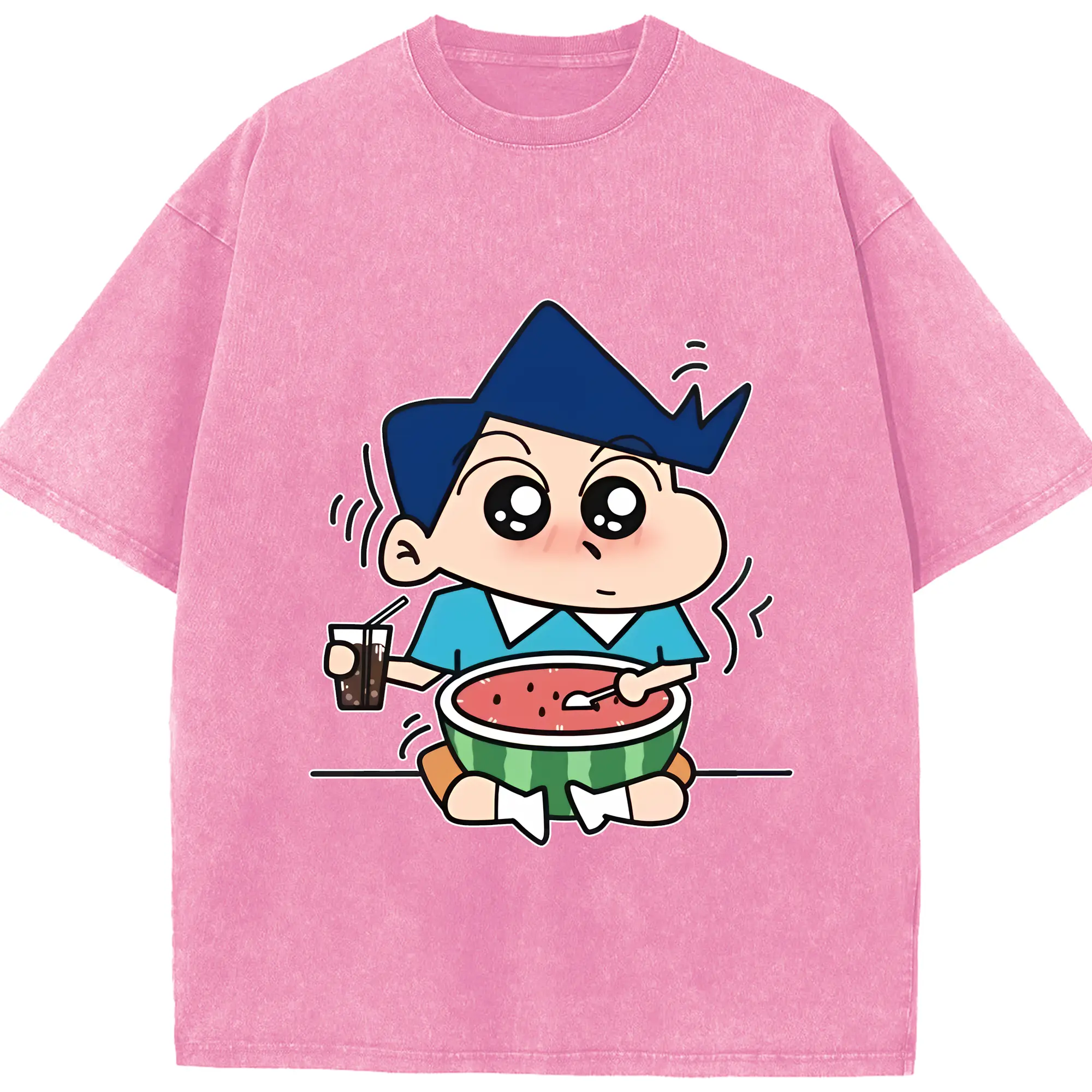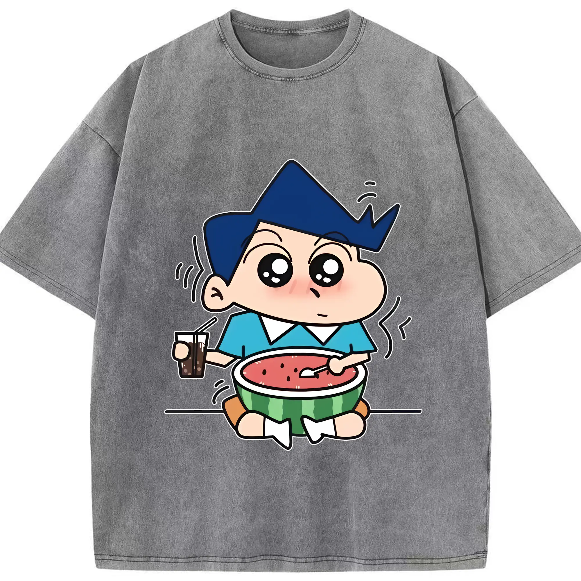 クレヨンしんちゃん グッズ 風間 とおる - 綿100% ヴィンテージ風 半袖Tシャツ ・ 背面プリント ・ 柔らか肌触り ・ 通気性 快適 ・ スポーツ カジュアル 外出用