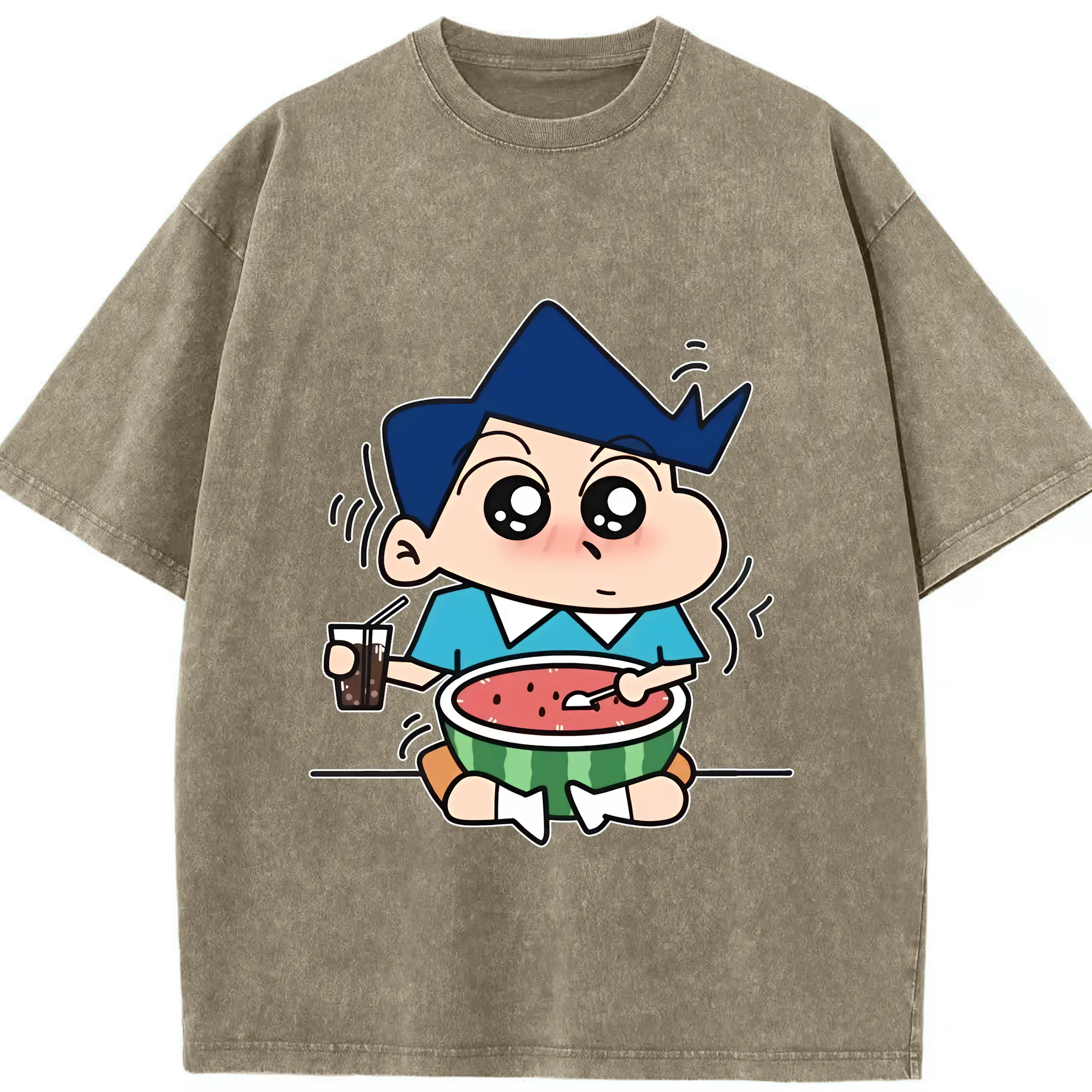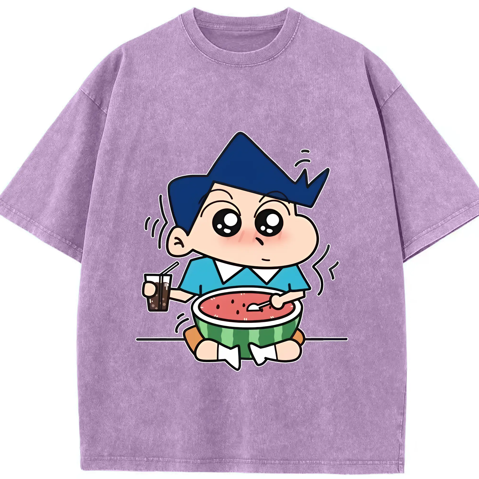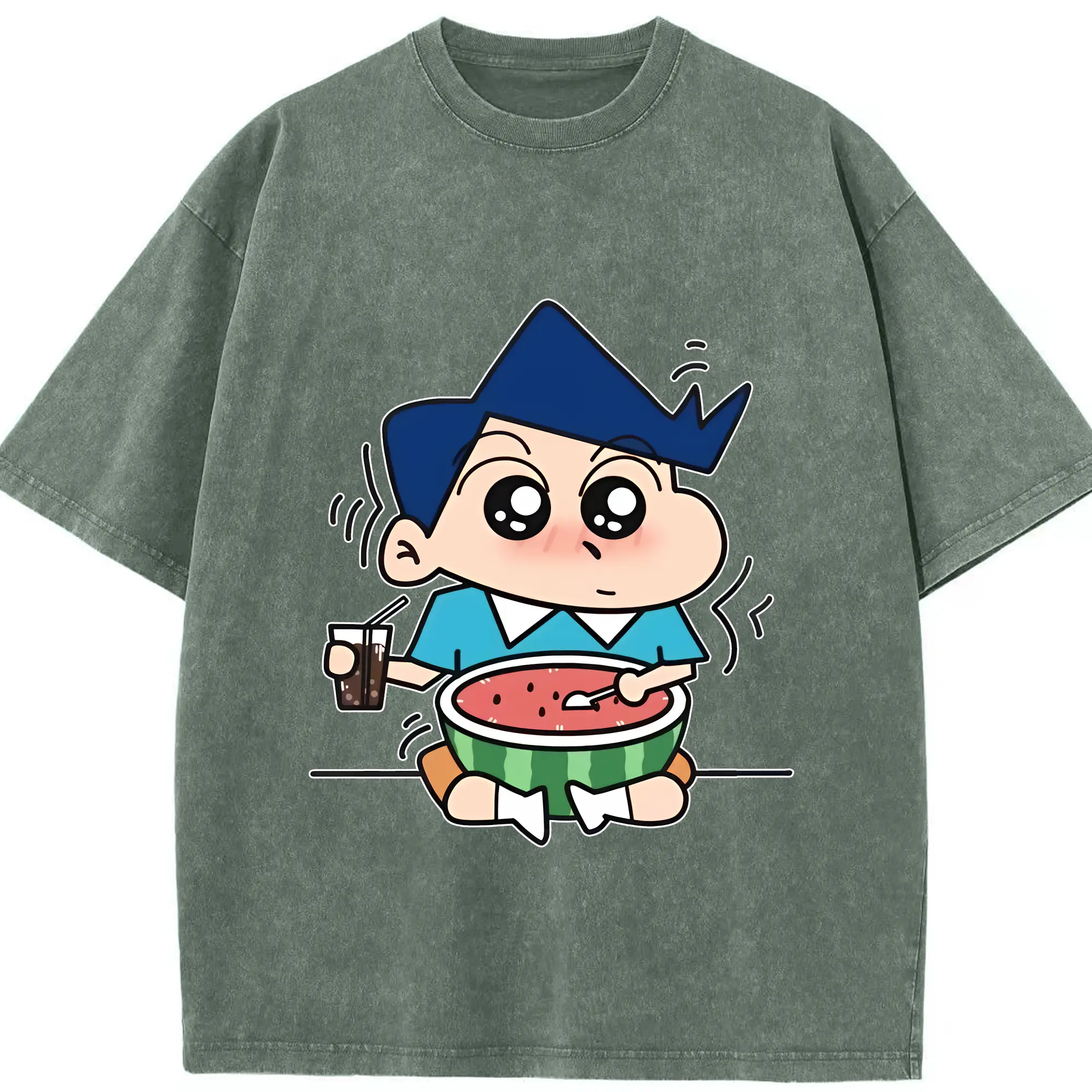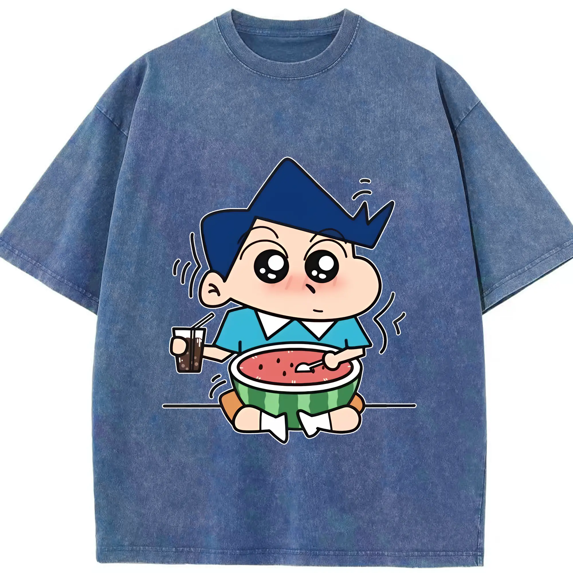 クレヨンしんちゃん グッズ 風間 とおる - 綿100% ヴィンテージ風 半袖Tシャツ ・ 背面プリント ・ 柔らか肌触り ・ 通気性 快適 ・ スポーツ カジュアル 外出用
