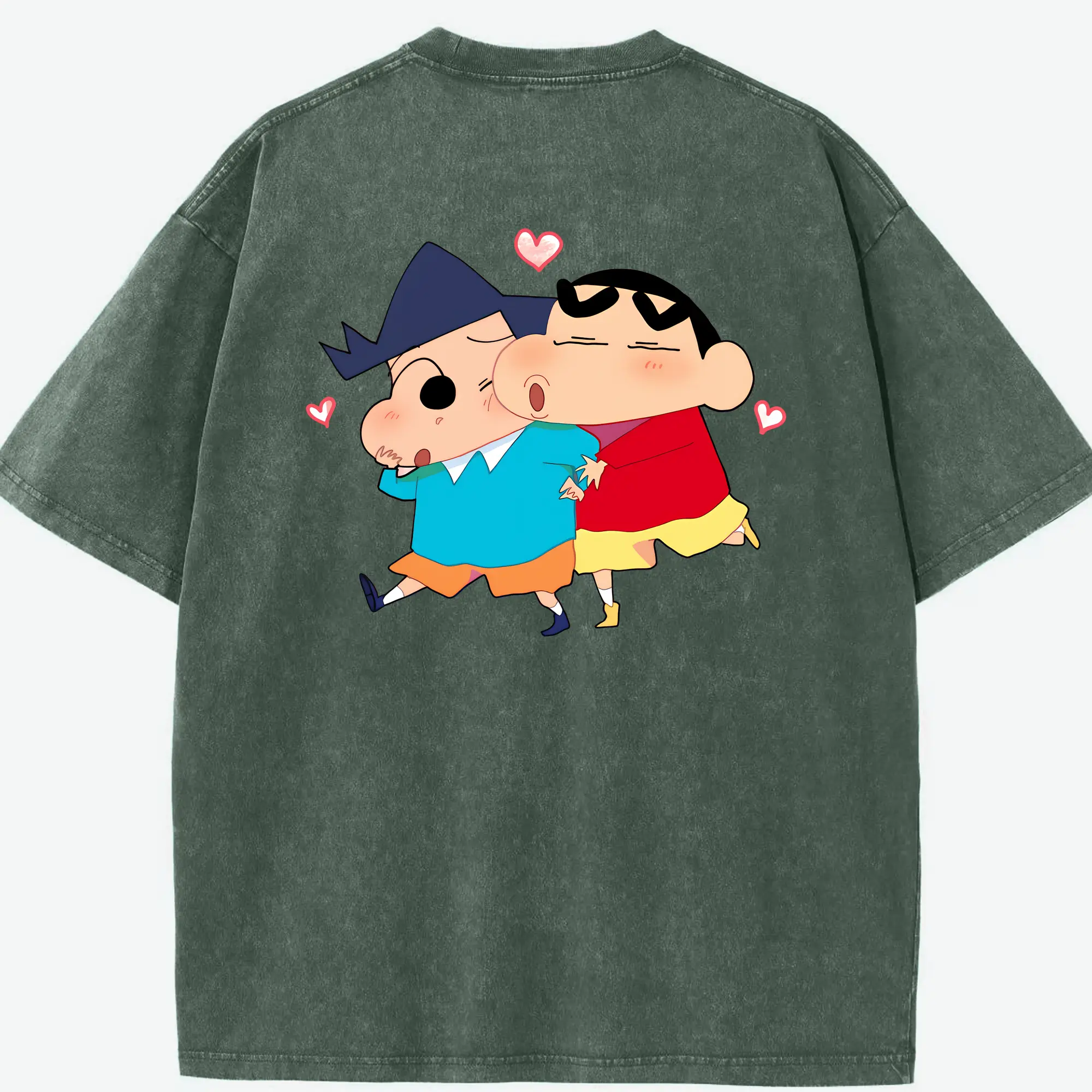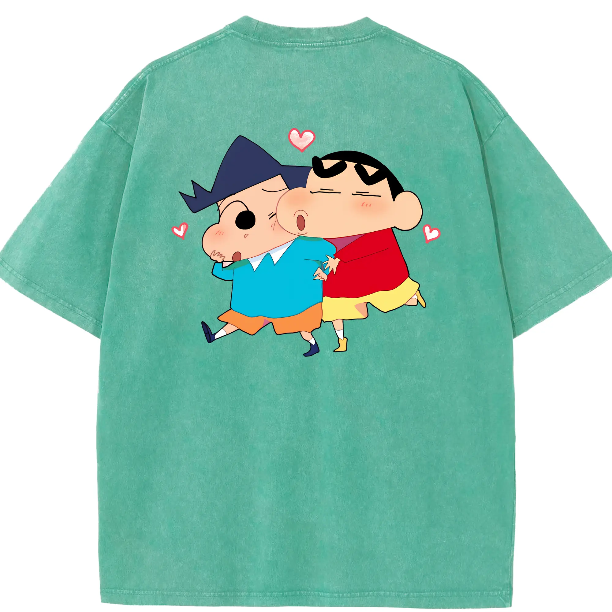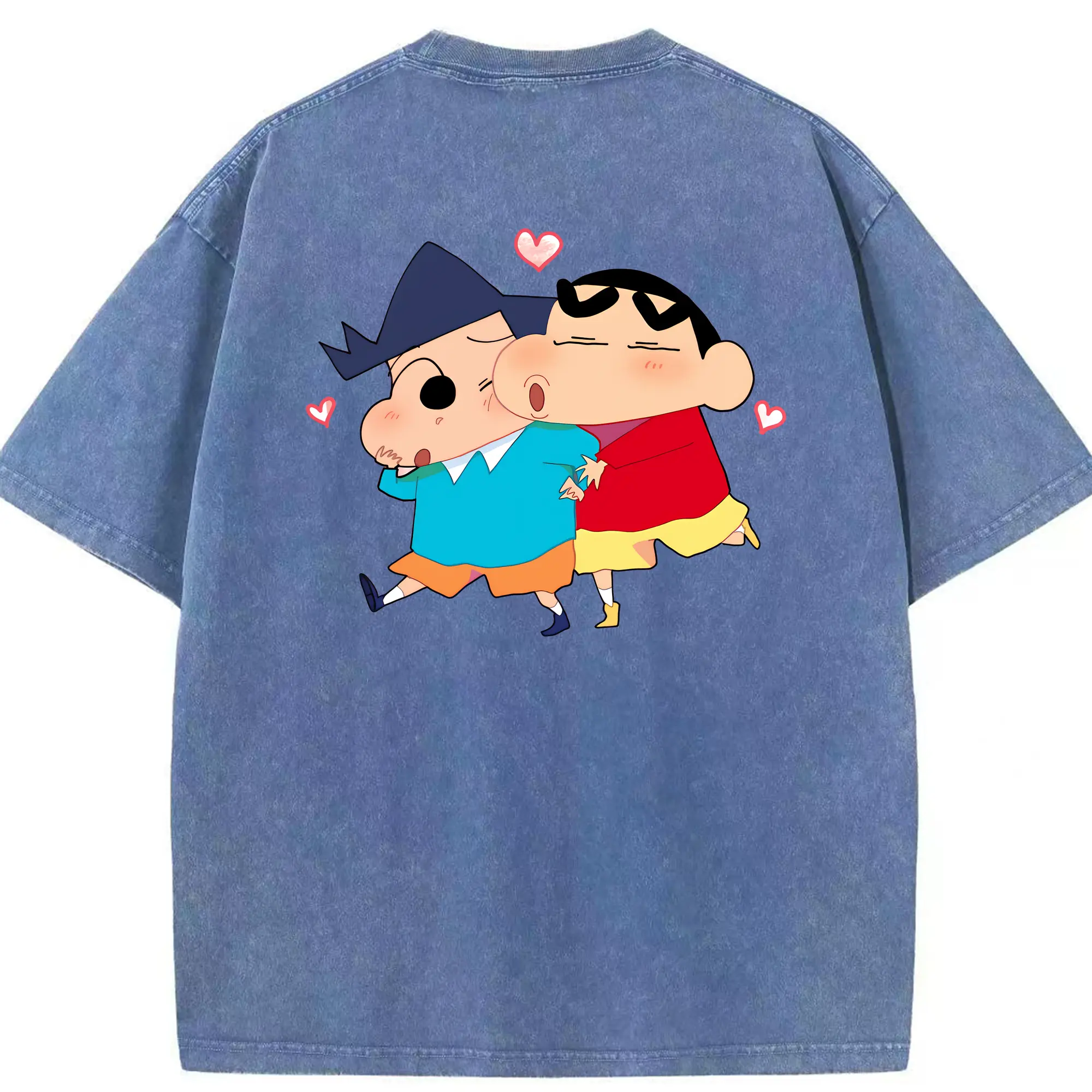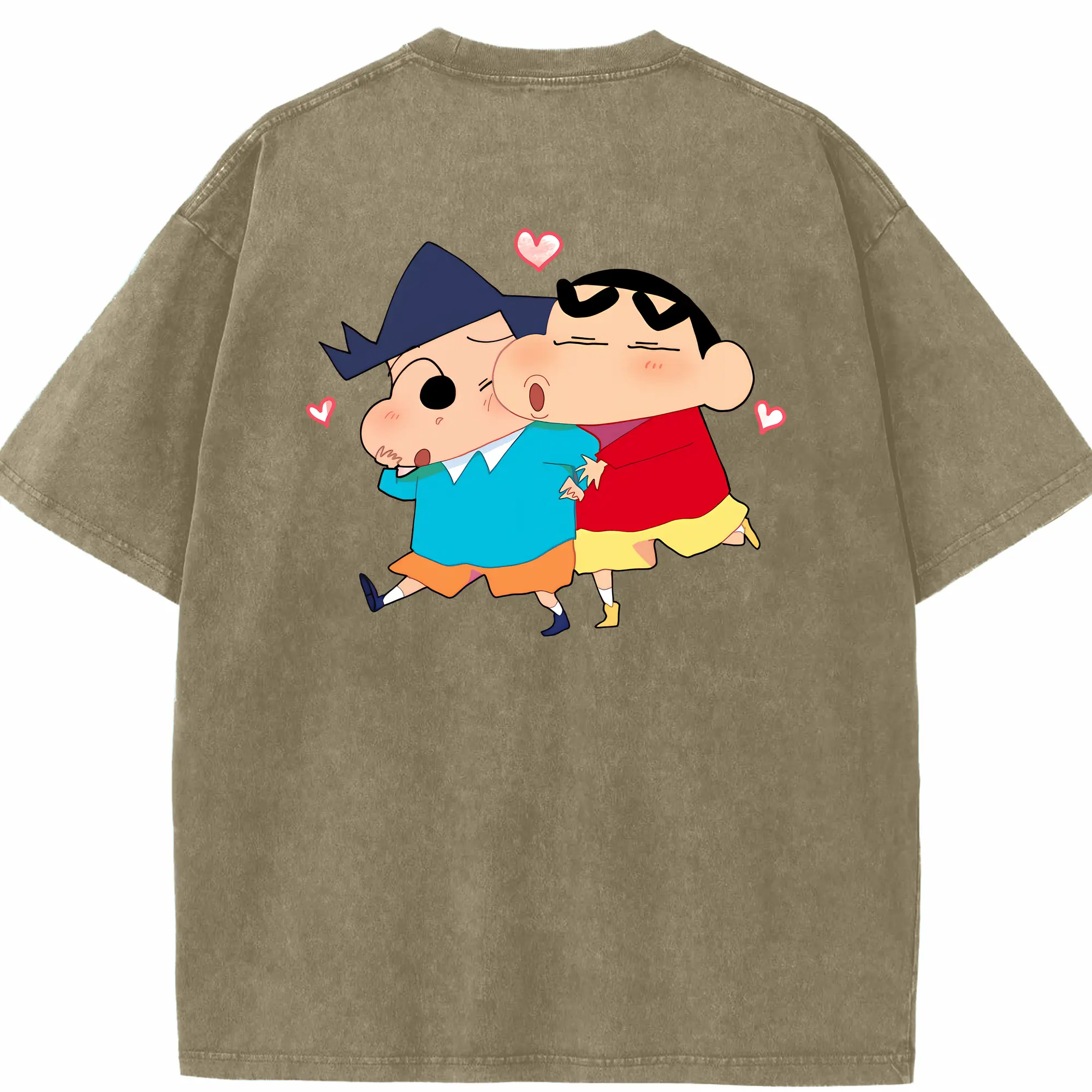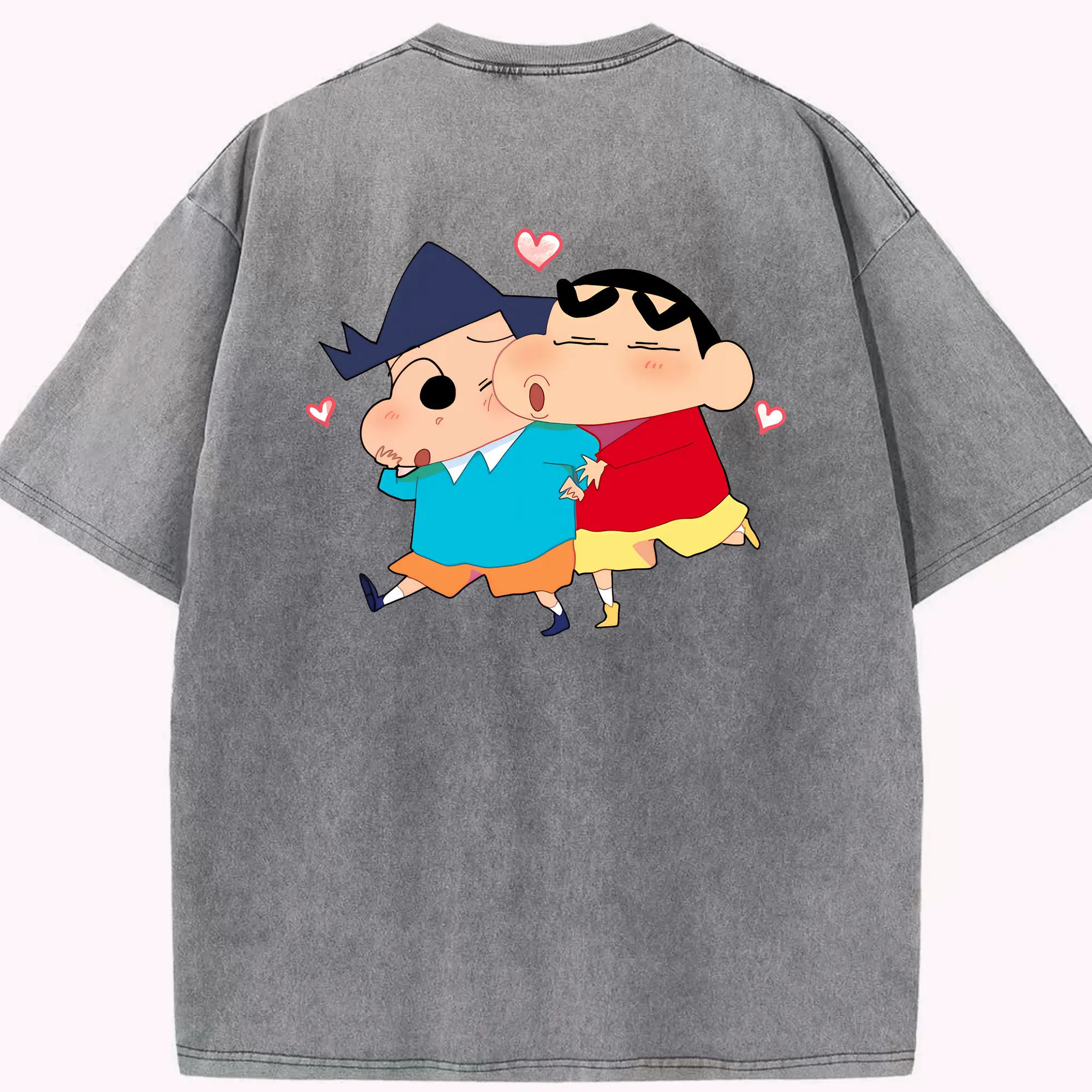 クレヨンしんちゃん グッズ 風間 とおる - 綿100% ヴィンテージ風 半袖Tシャツ ・ フロントプリント ・ 柔らか肌触り ・ 通気性 快適 ・ スポーツ カジュアル 外出用