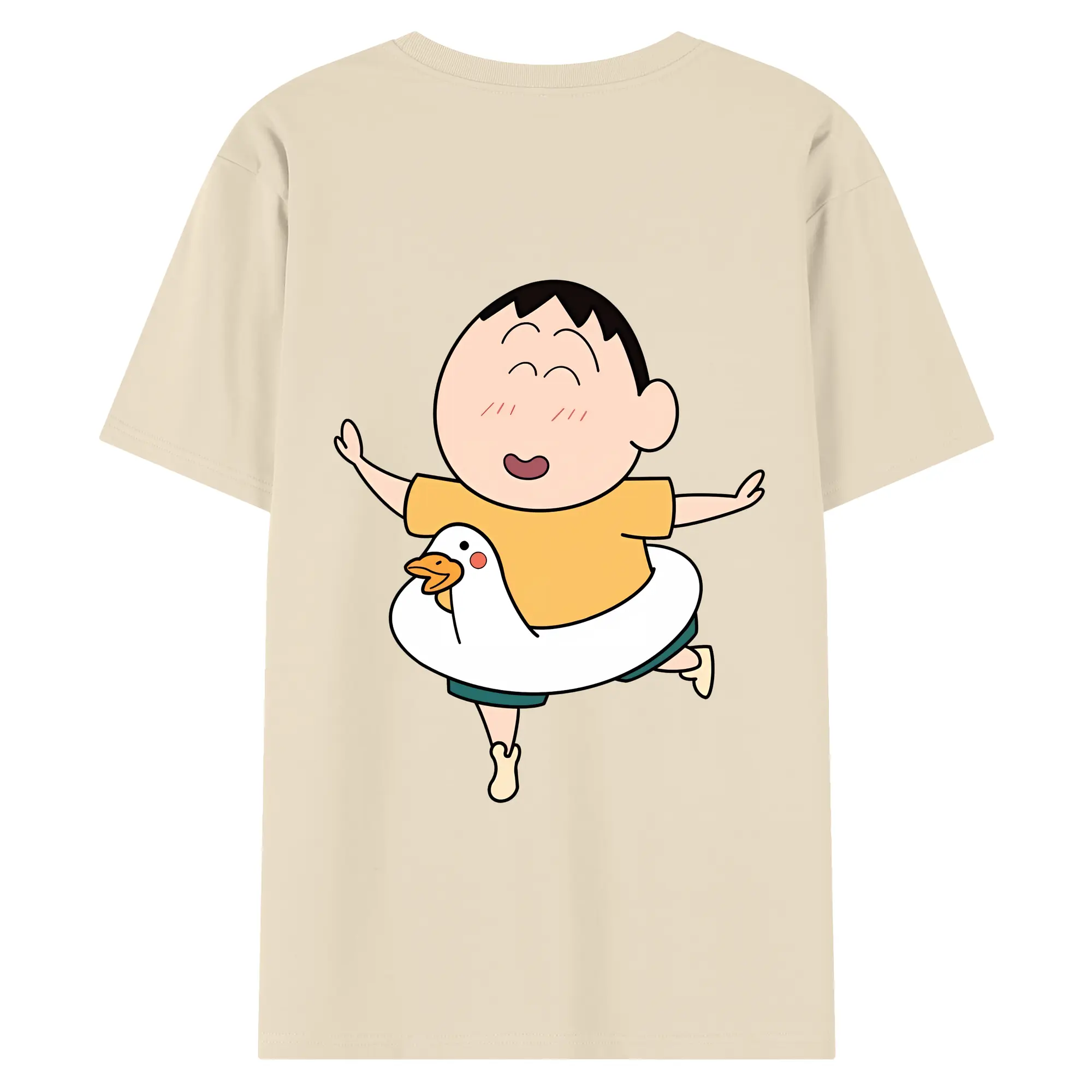 クレヨンしんちゃん グッズ ボーちゃん - 綿100% ヴィンテージ風 半袖Tシャツ ・ 背面プリント ・ 柔らか肌触り ・ 通気性 快適 ・ スポーツ カジュアル 外出用