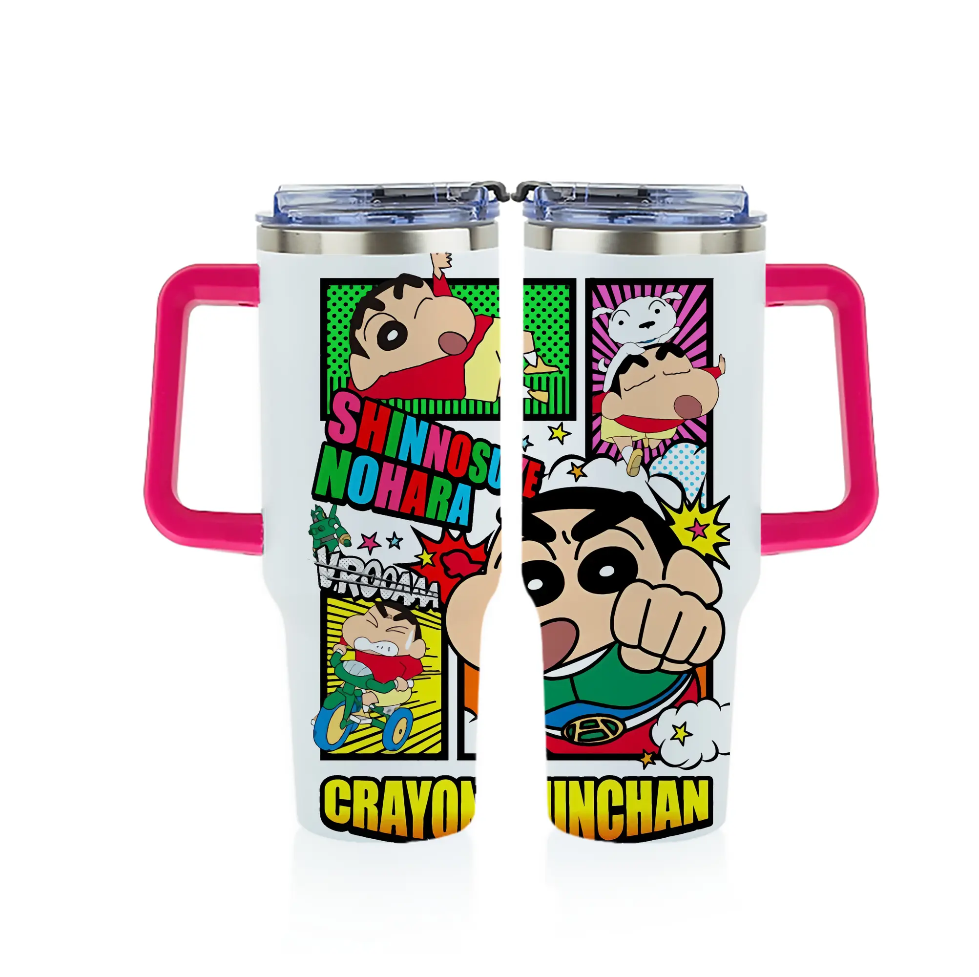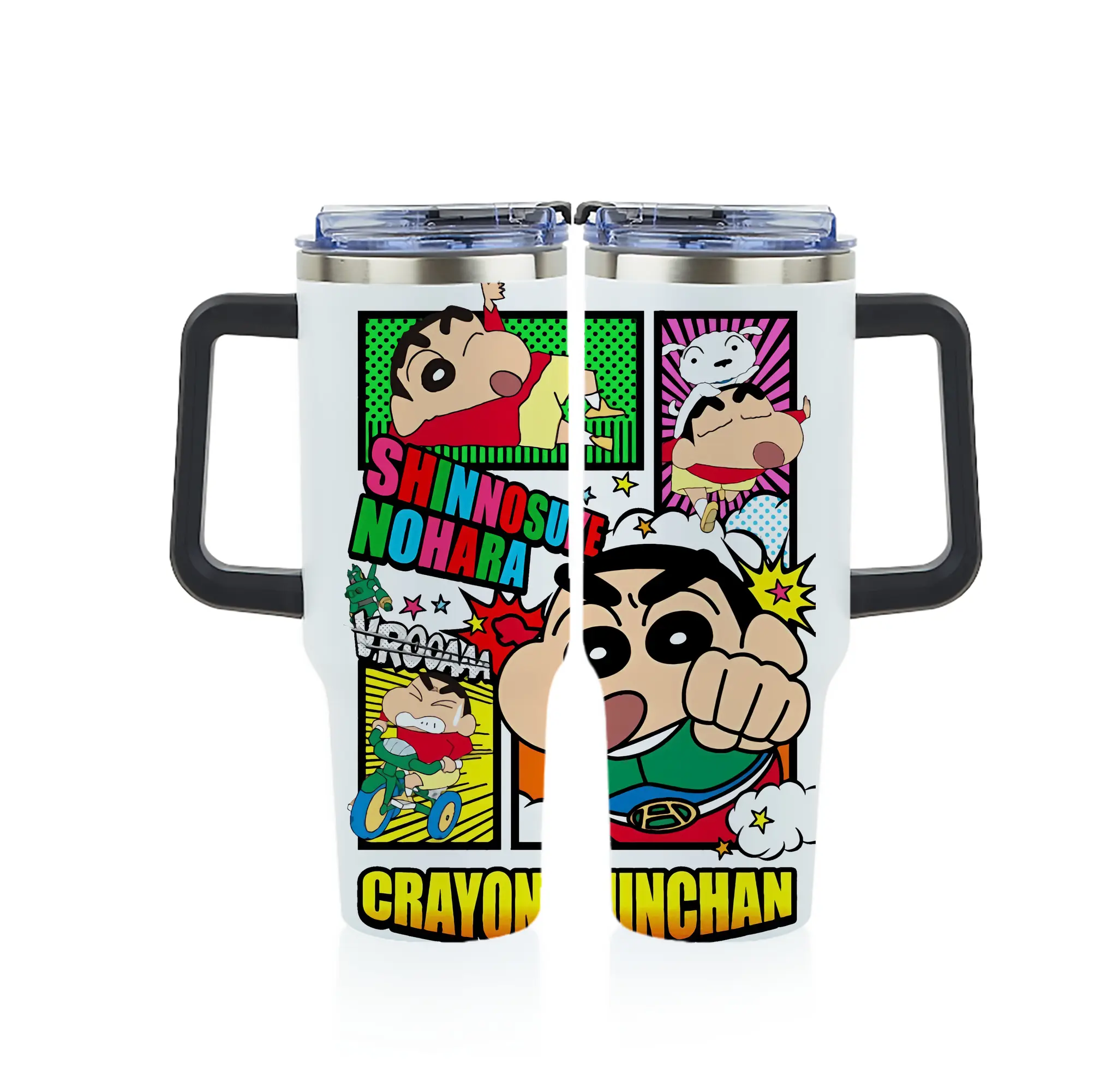 クレヨンしんちゃん グッズ アクション仮面 - 1200mL フルプリント車用タンブラー ・ 304ステンレス 内側 ・ 201ステンレス 外側 ・ 保温 保冷 ・ 通勤 ドライブ アウトドア用