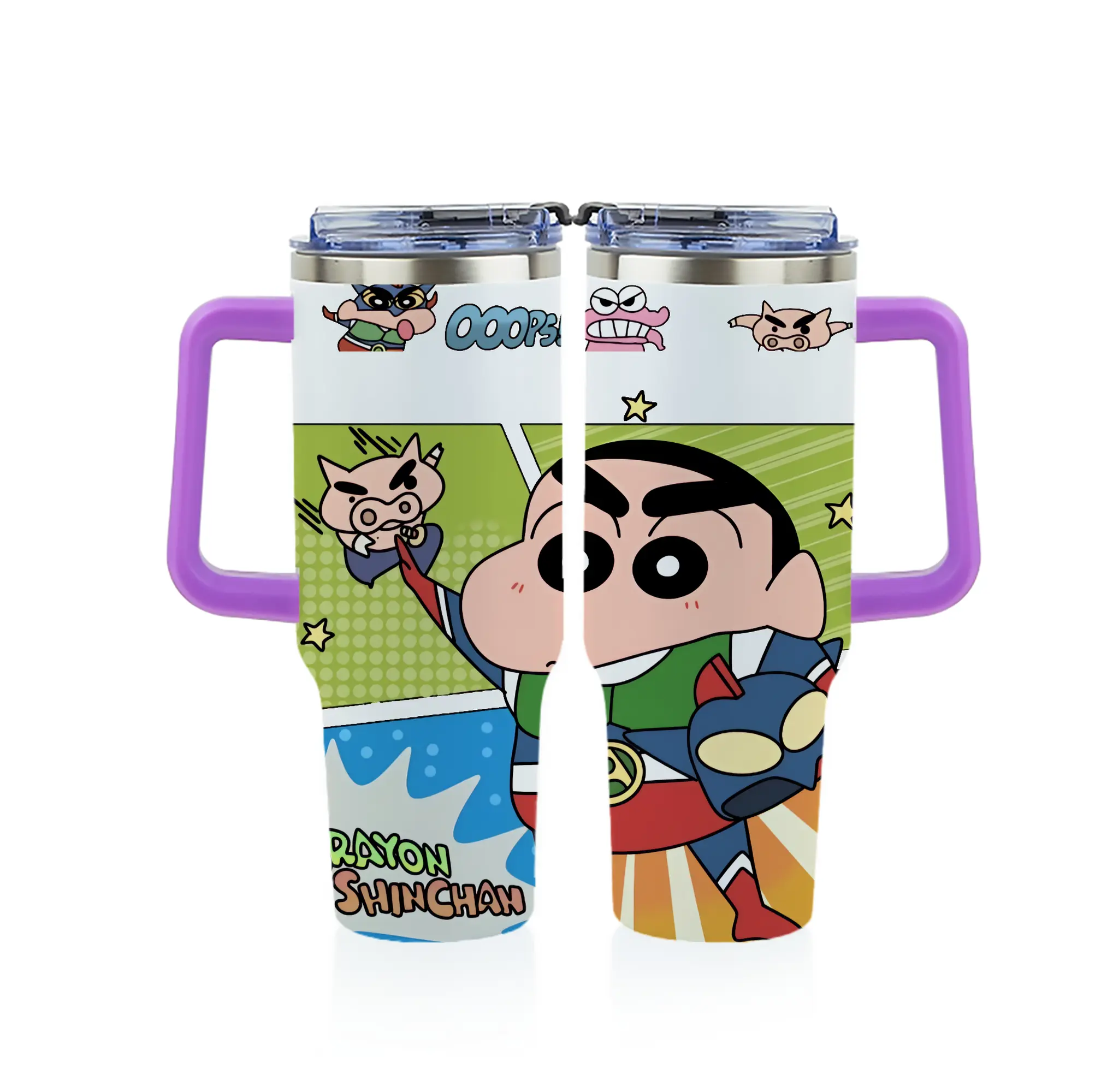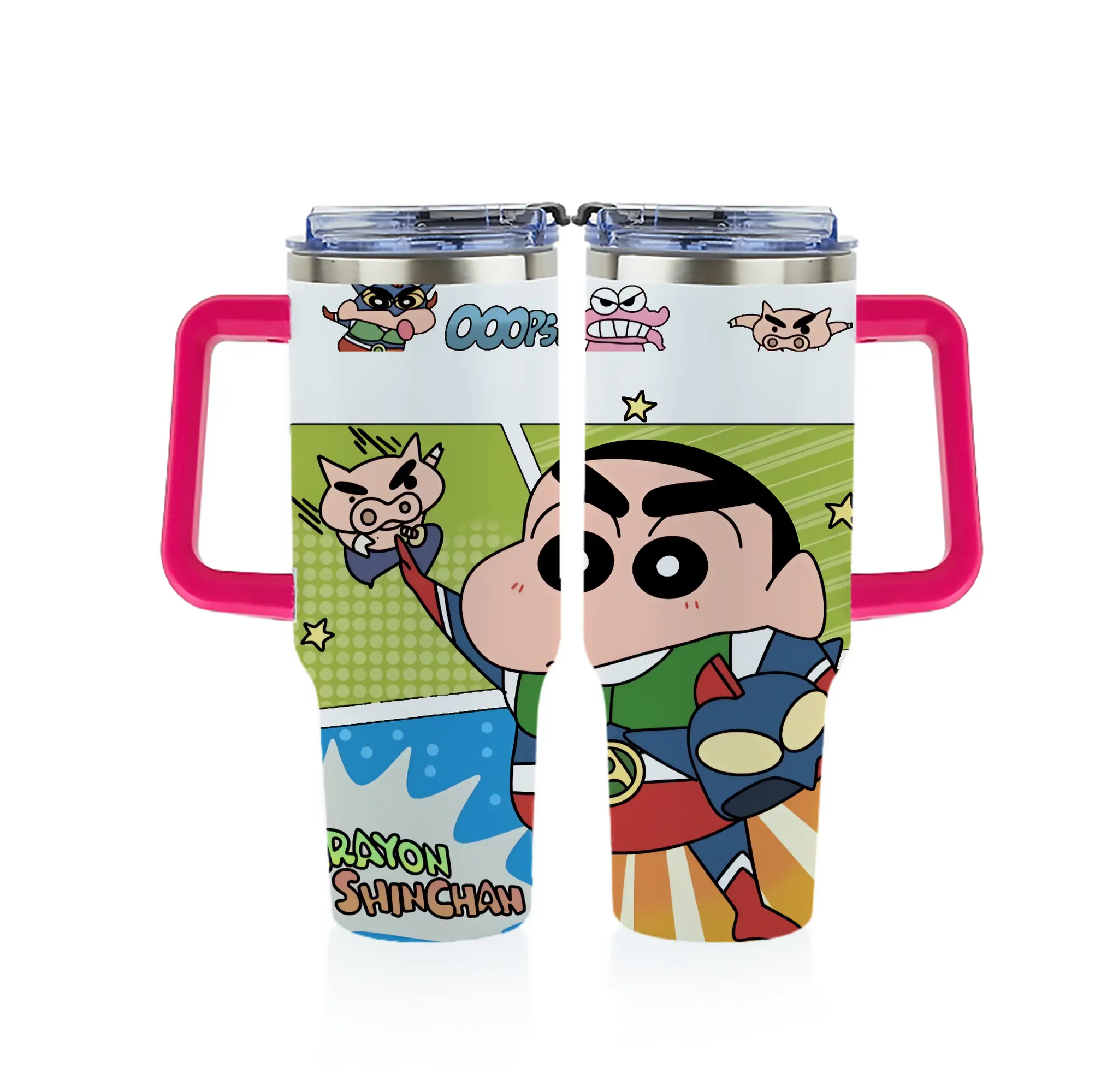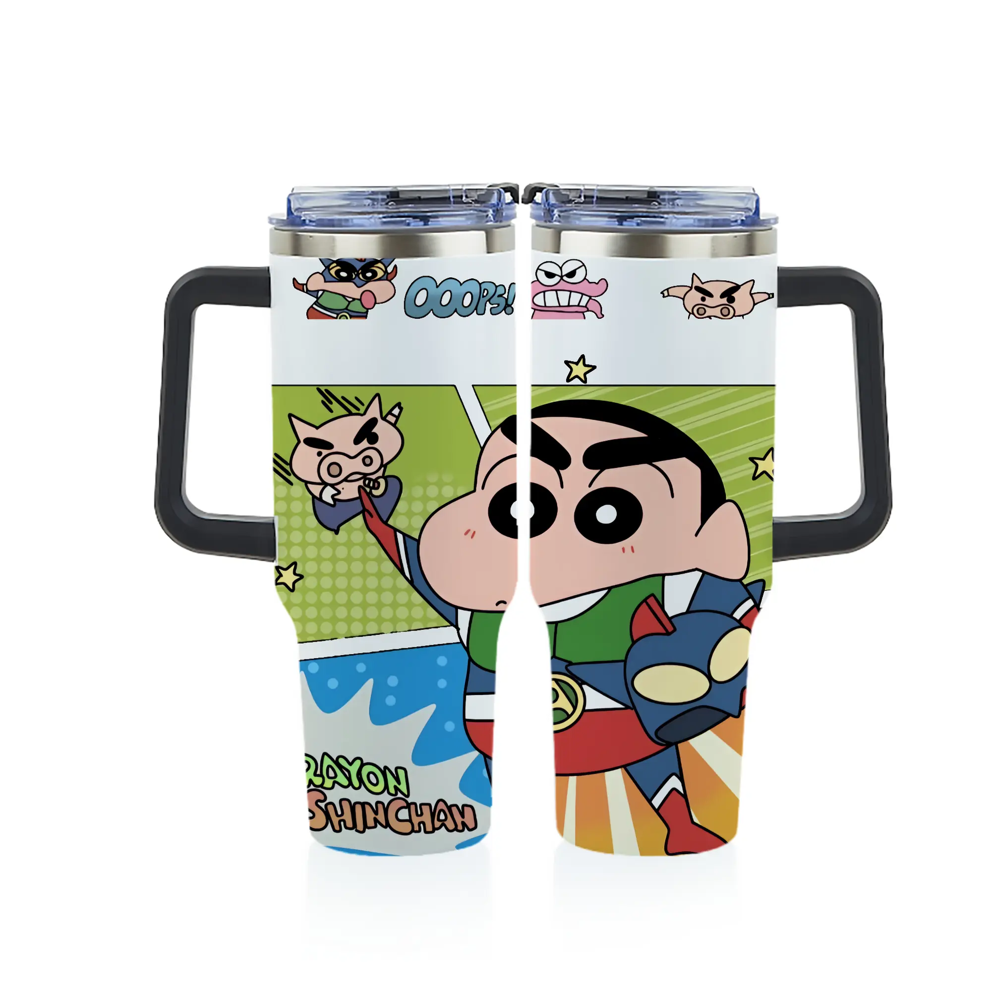 クレヨンしんちゃん グッズ アクション仮面 - 1200mL フルプリント車用タンブラー ・ 304ステンレス 内側 ・ 201ステンレス 外側 ・ 保温 保冷 ・ 通勤 ドライブ アウトドア用