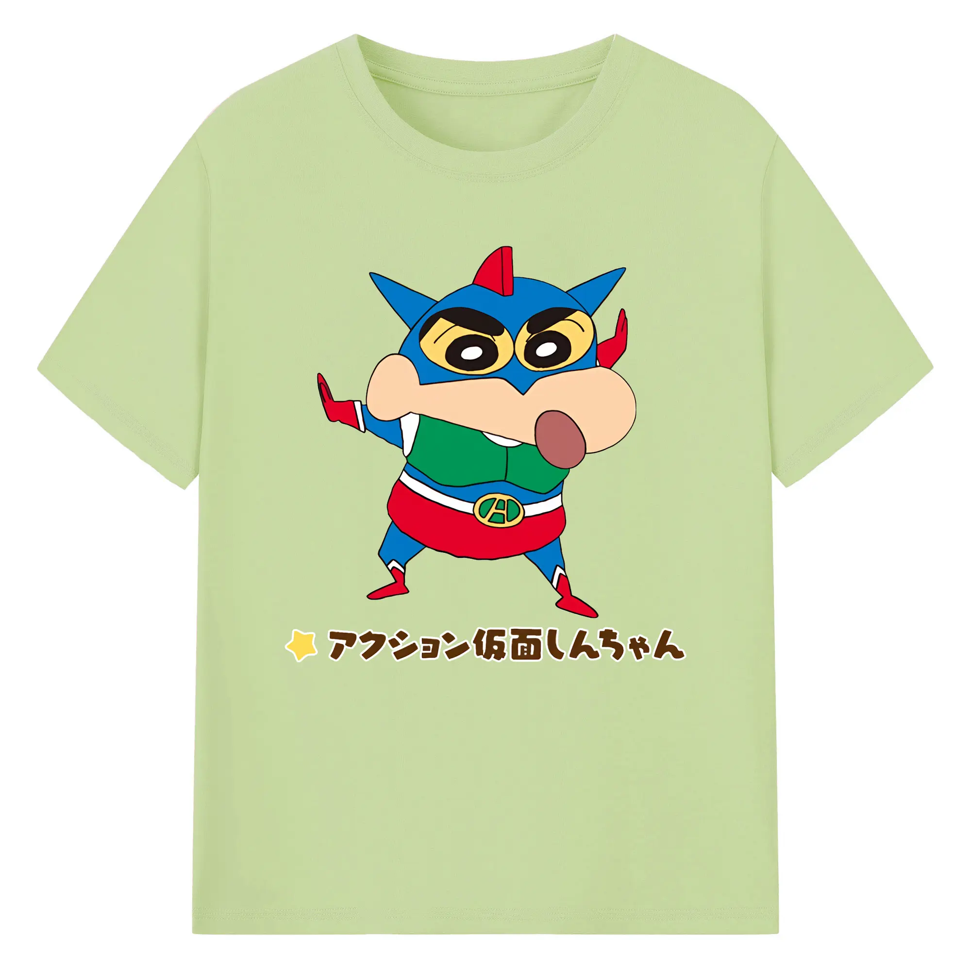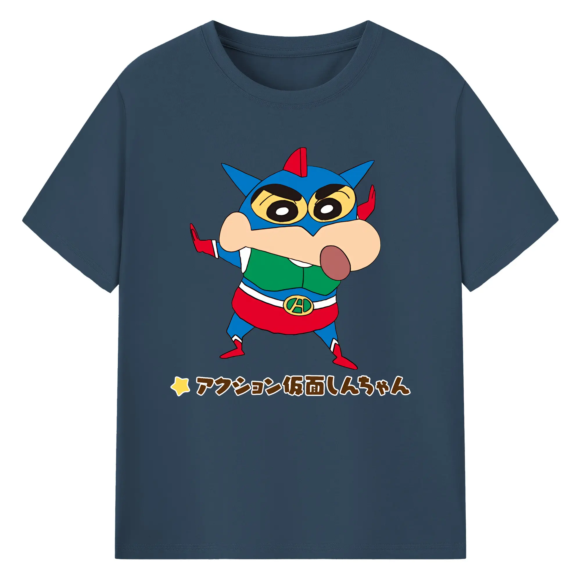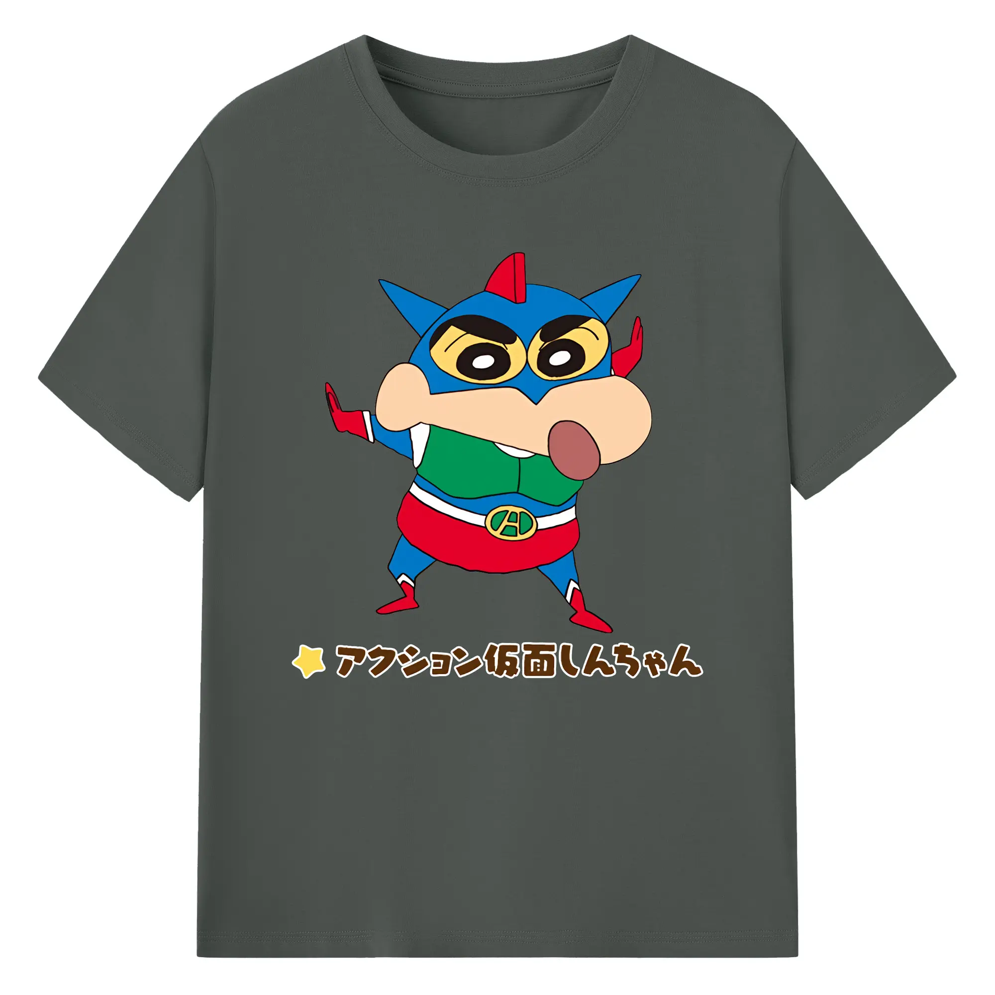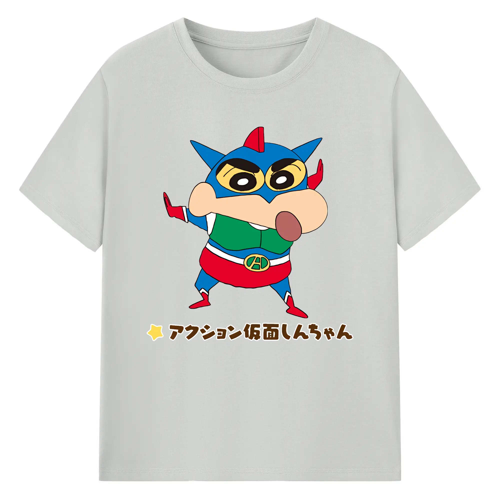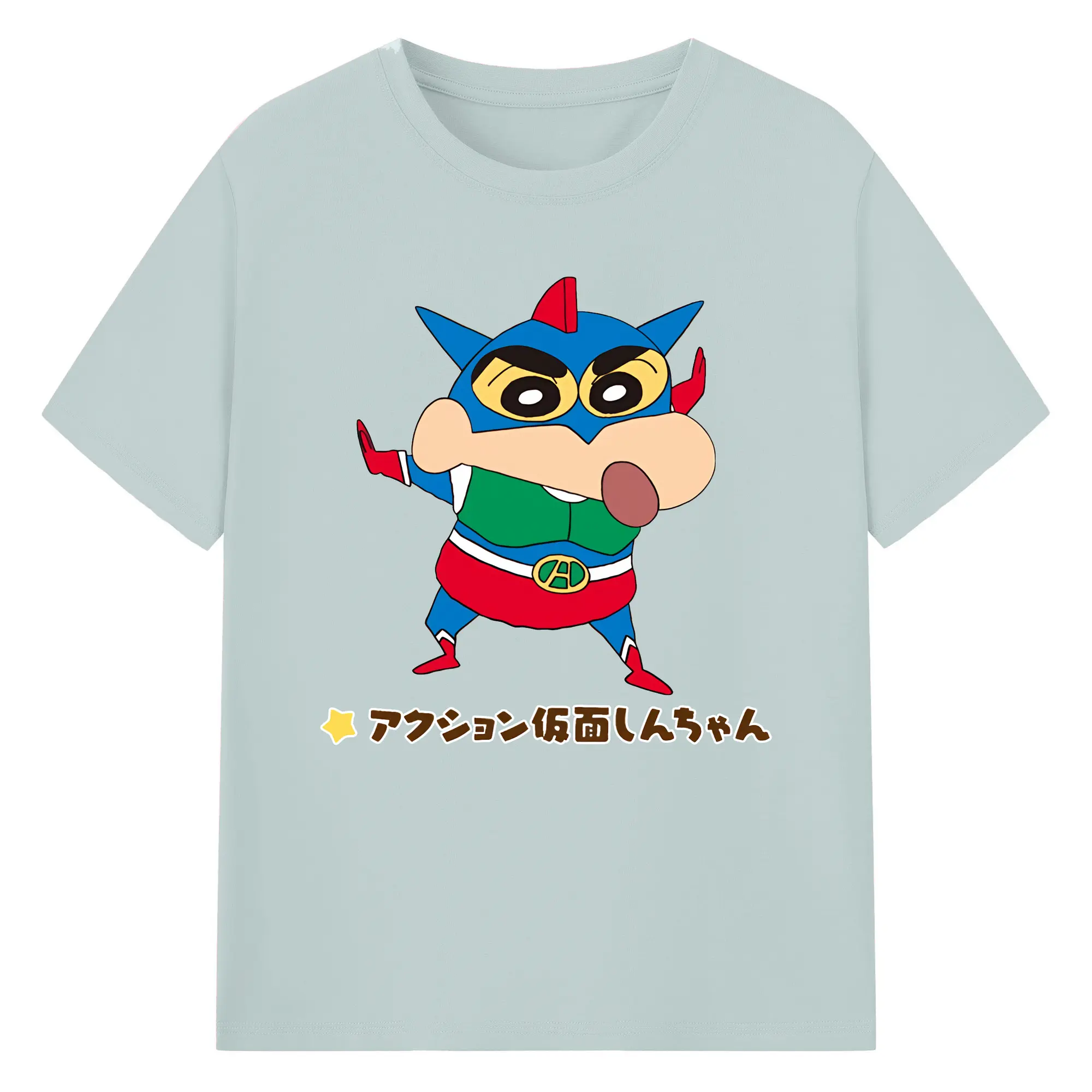 クレヨンしんちゃん グッズ アクション仮面 - 綿100% 半袖Tシャツ ・ バックプリント ・ 快適 通気性 ・ 日常使い 散歩 スポーツ用