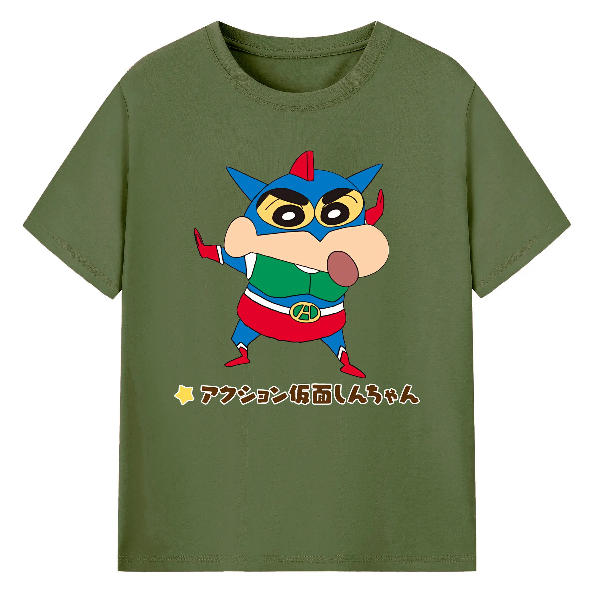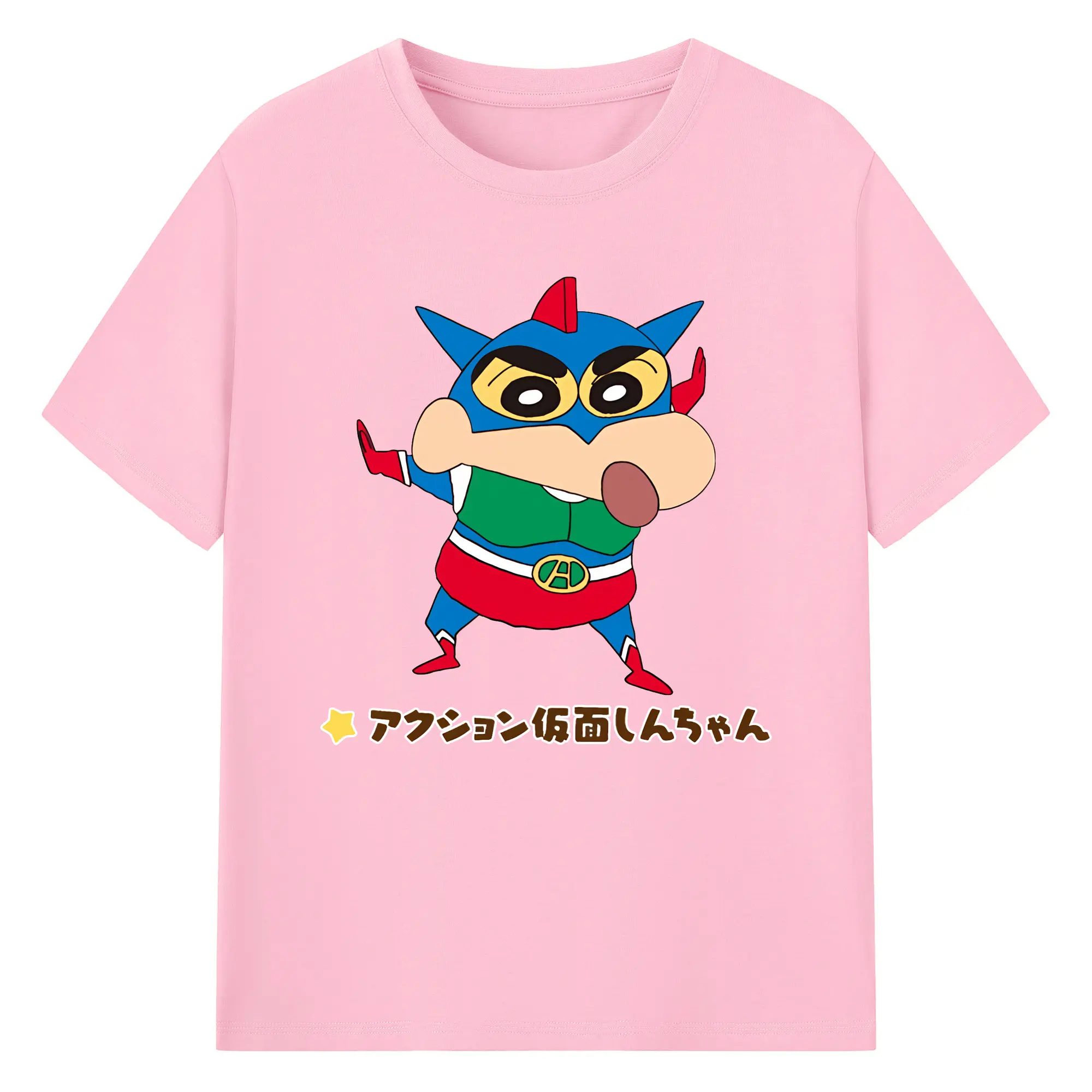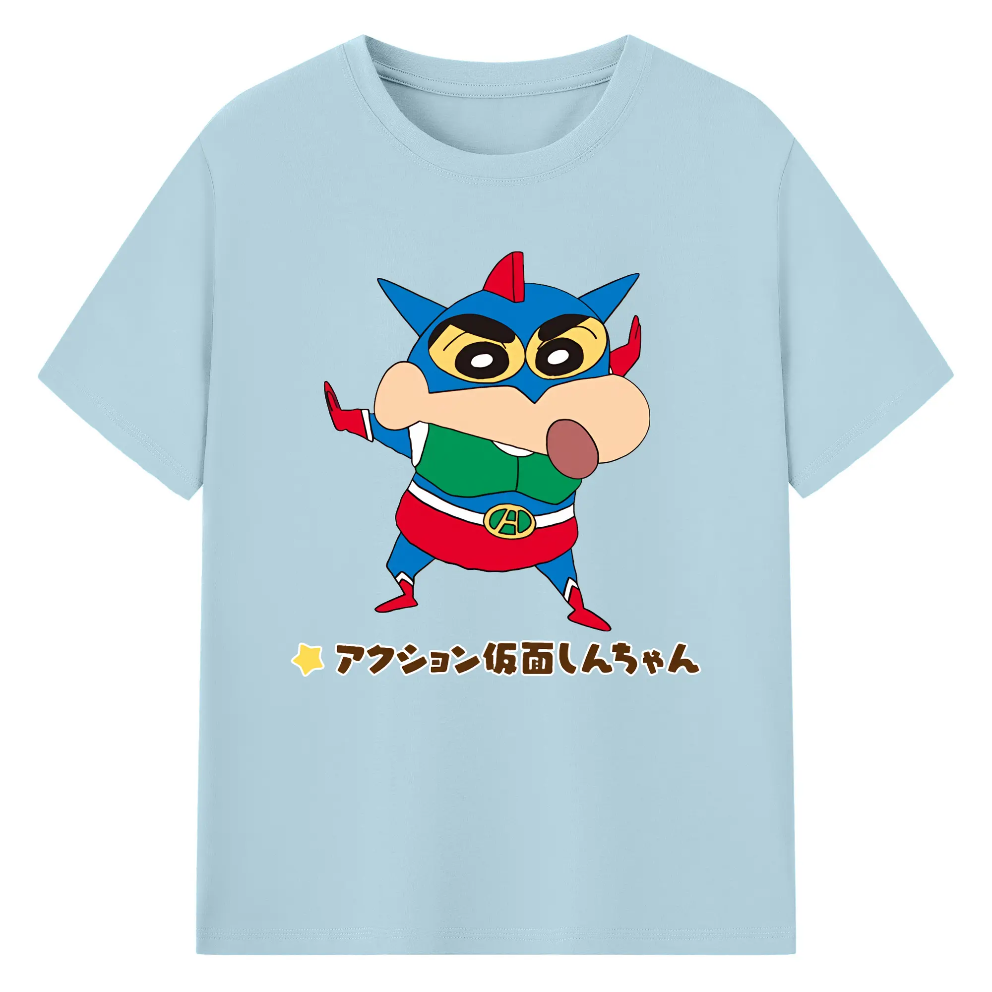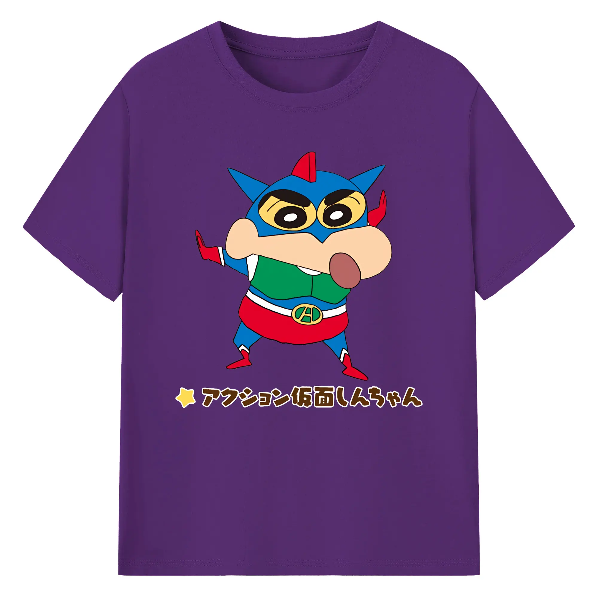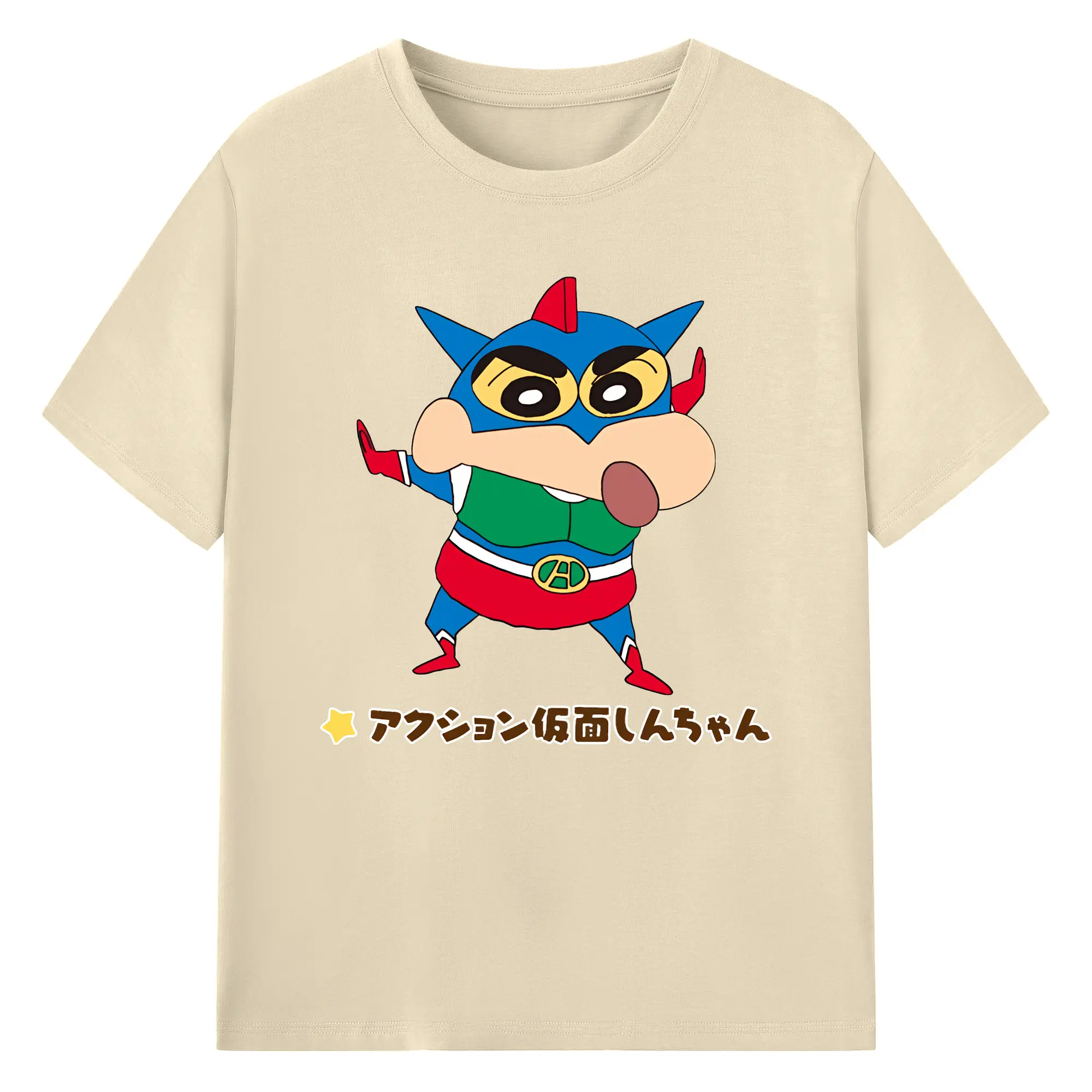 クレヨンしんちゃん グッズ アクション仮面 - 綿100% 半袖Tシャツ ・ バックプリント ・ 快適 通気性 ・ 日常使い 散歩 スポーツ用