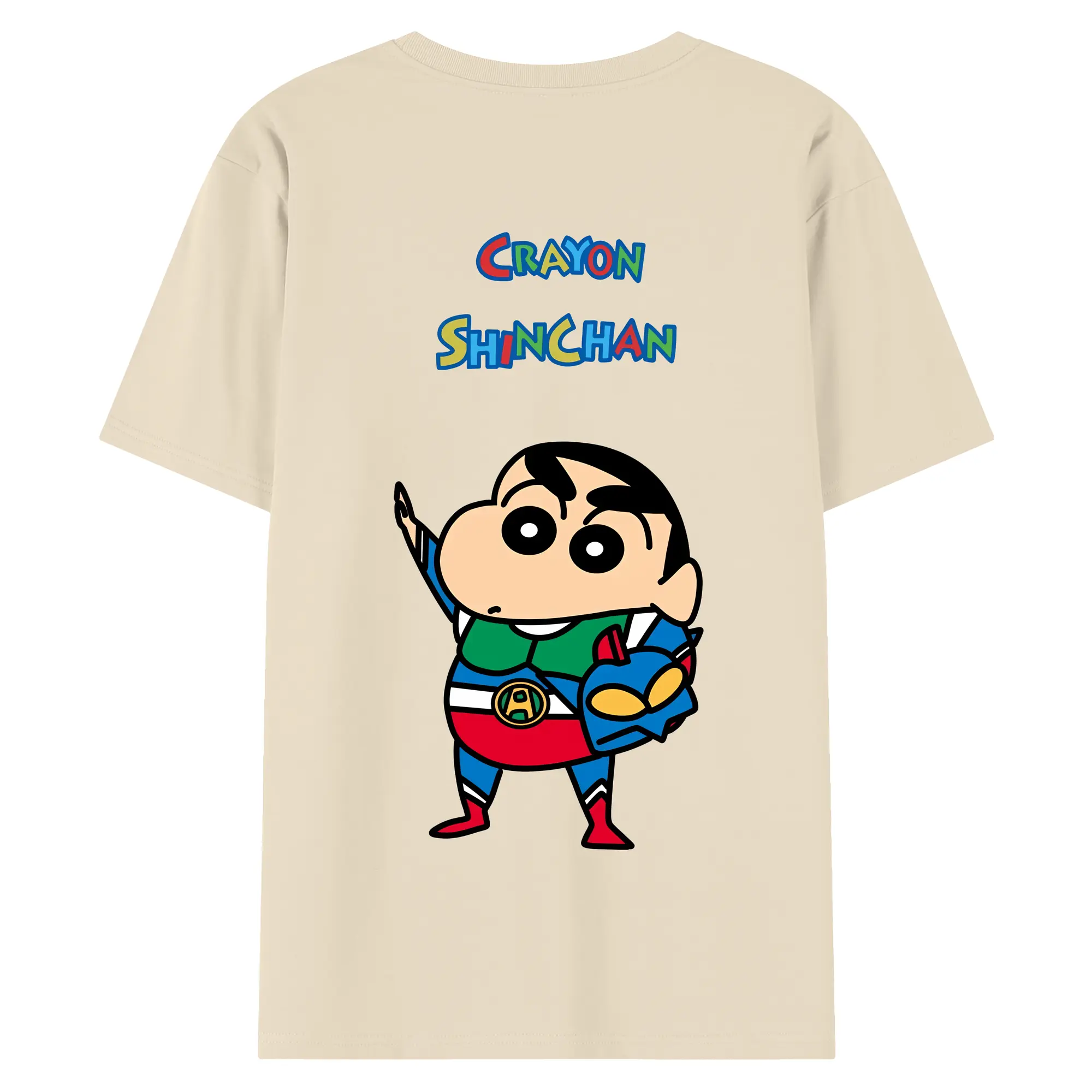 クレヨンしんちゃん グッズ アクション仮面 - 綿100% ヴィンテージ風 半袖Tシャツ ・ 背面プリント ・ 柔らか肌触り ・ 通気性 快適 ・ スポーツ カジュアル 外出用
