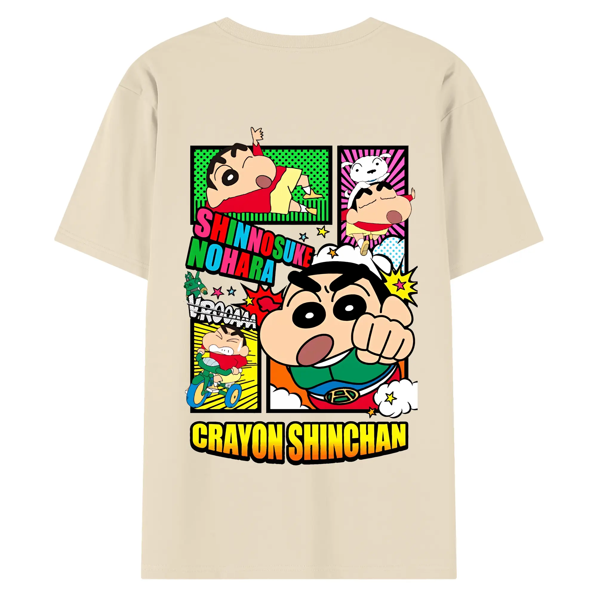 クレヨンしんちゃん グッズ アクション仮面 - 綿100% ヴィンテージ風 半袖Tシャツ ・ 背面プリント ・ 柔らか肌触り ・ 通気性 快適 ・ スポーツ カジュアル 外出用