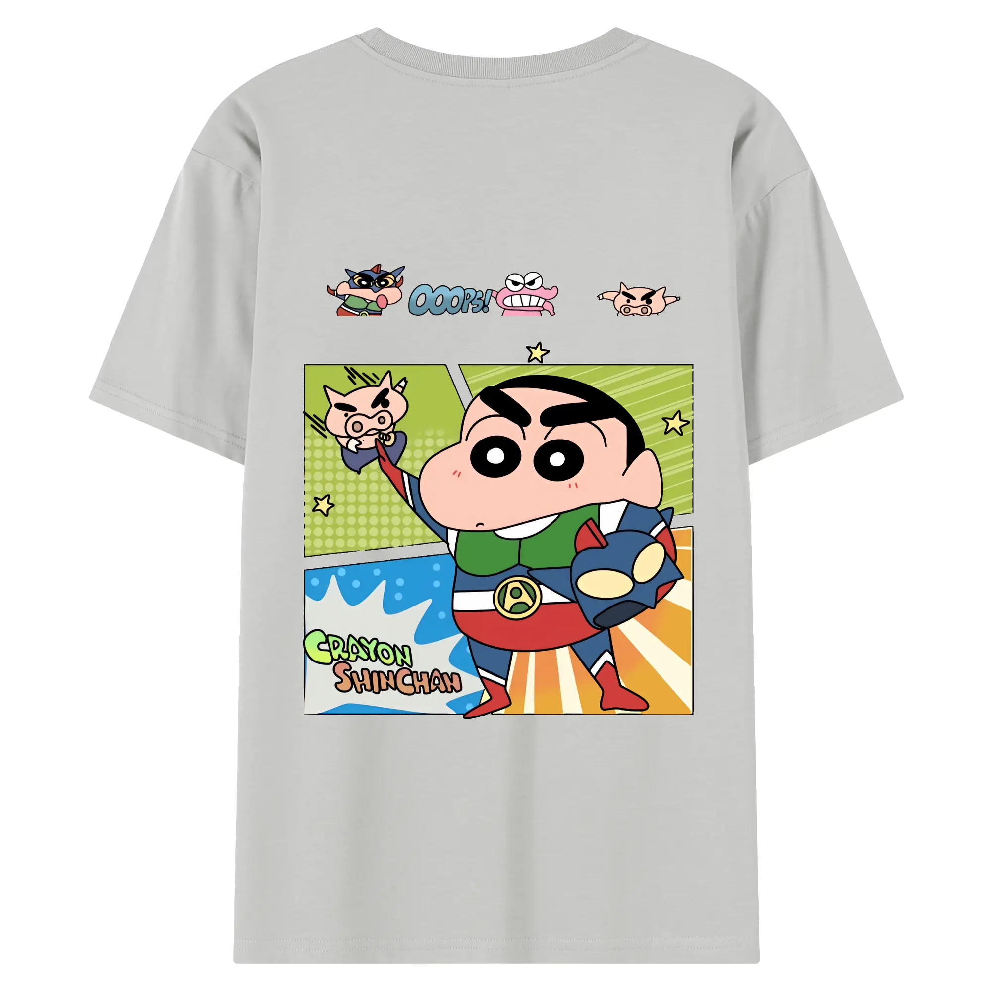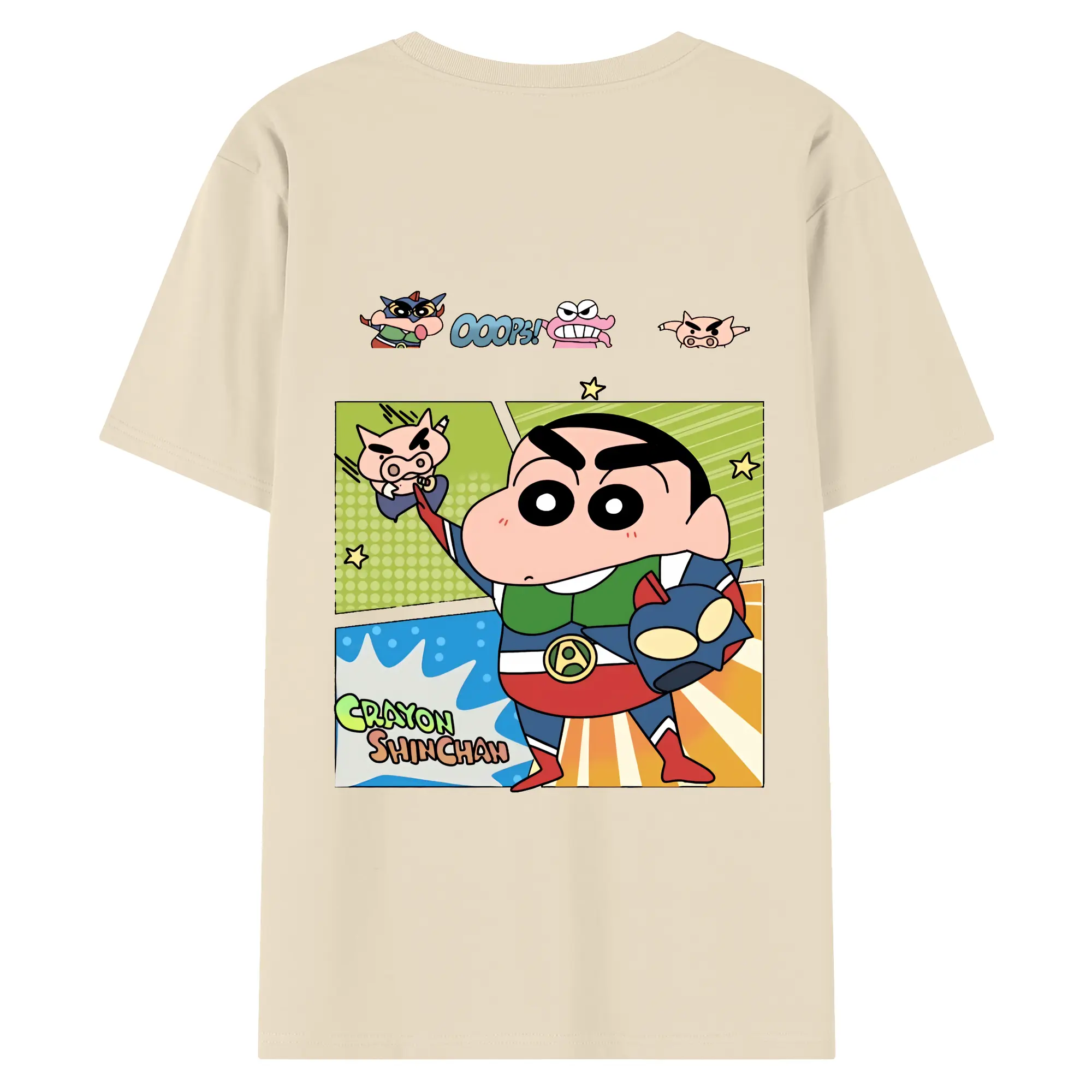 クレヨンしんちゃん グッズ アクション仮面 - 綿100% ヴィンテージ風 半袖Tシャツ ・ 背面プリント ・ 柔らか肌触り ・ 通気性 快適 ・ スポーツ カジュアル 外出用