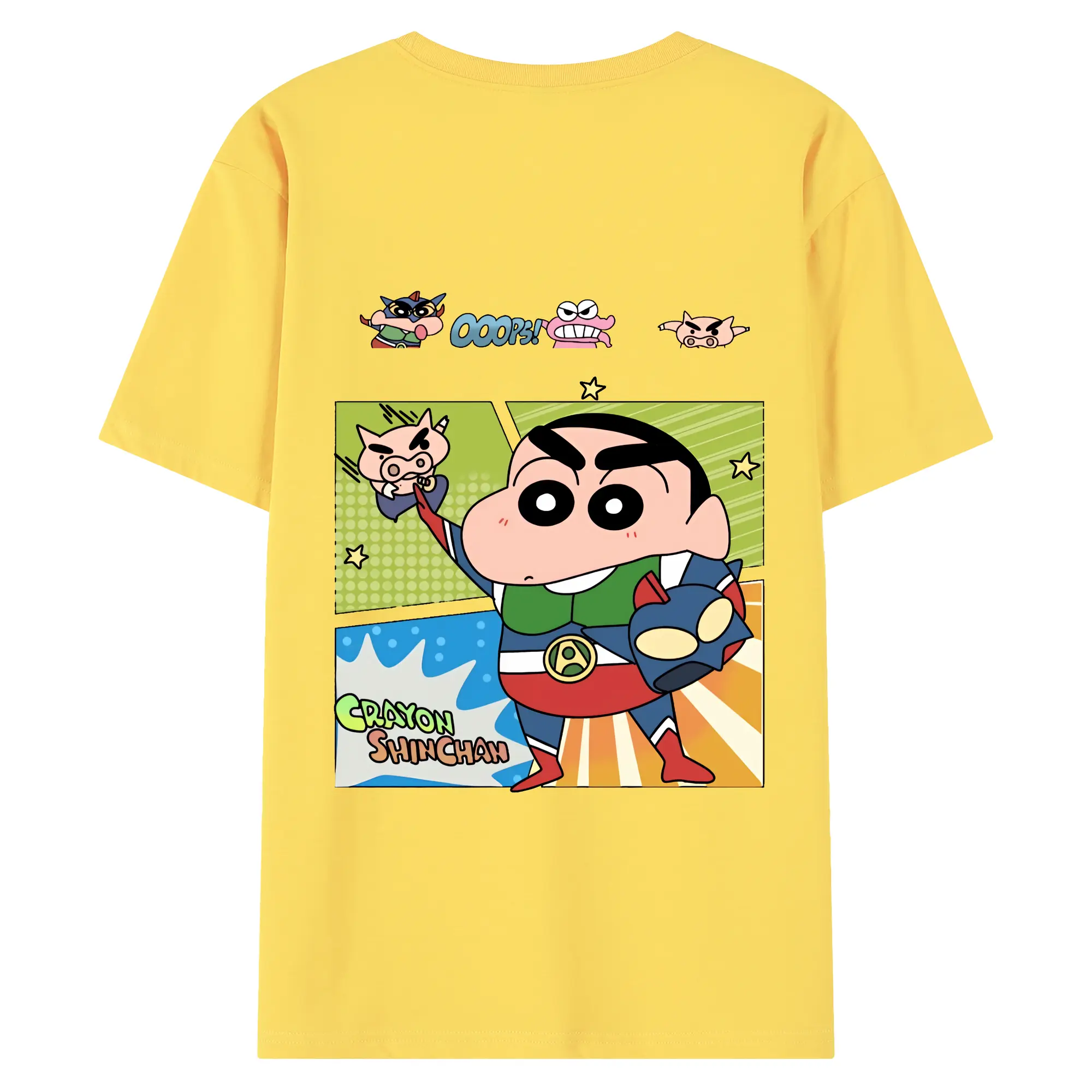 クレヨンしんちゃん グッズ アクション仮面 - 綿100% 半袖Tシャツ ・ フロントプリント ・ 快適 通気性 ・ 日常使い 散歩 スポーツ用