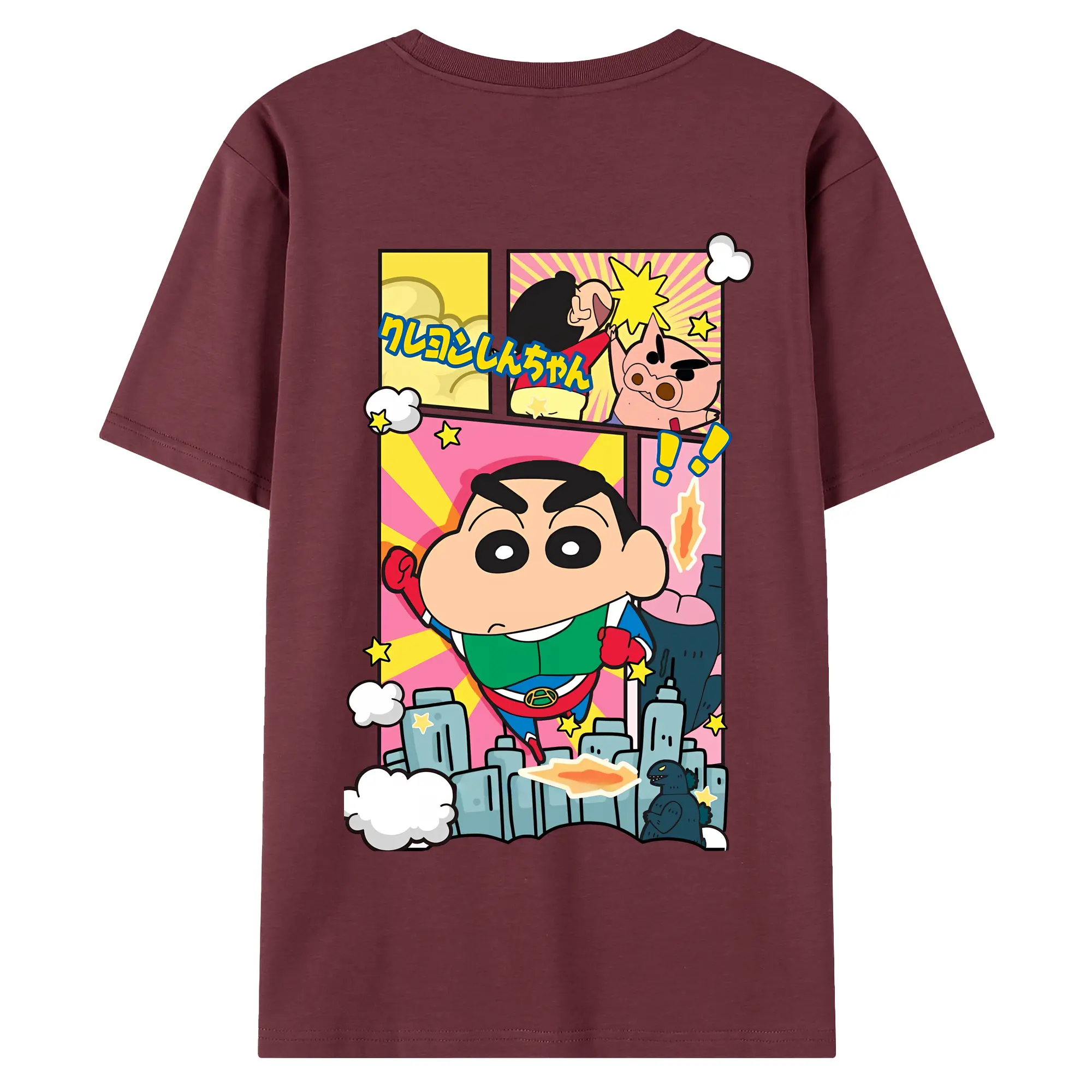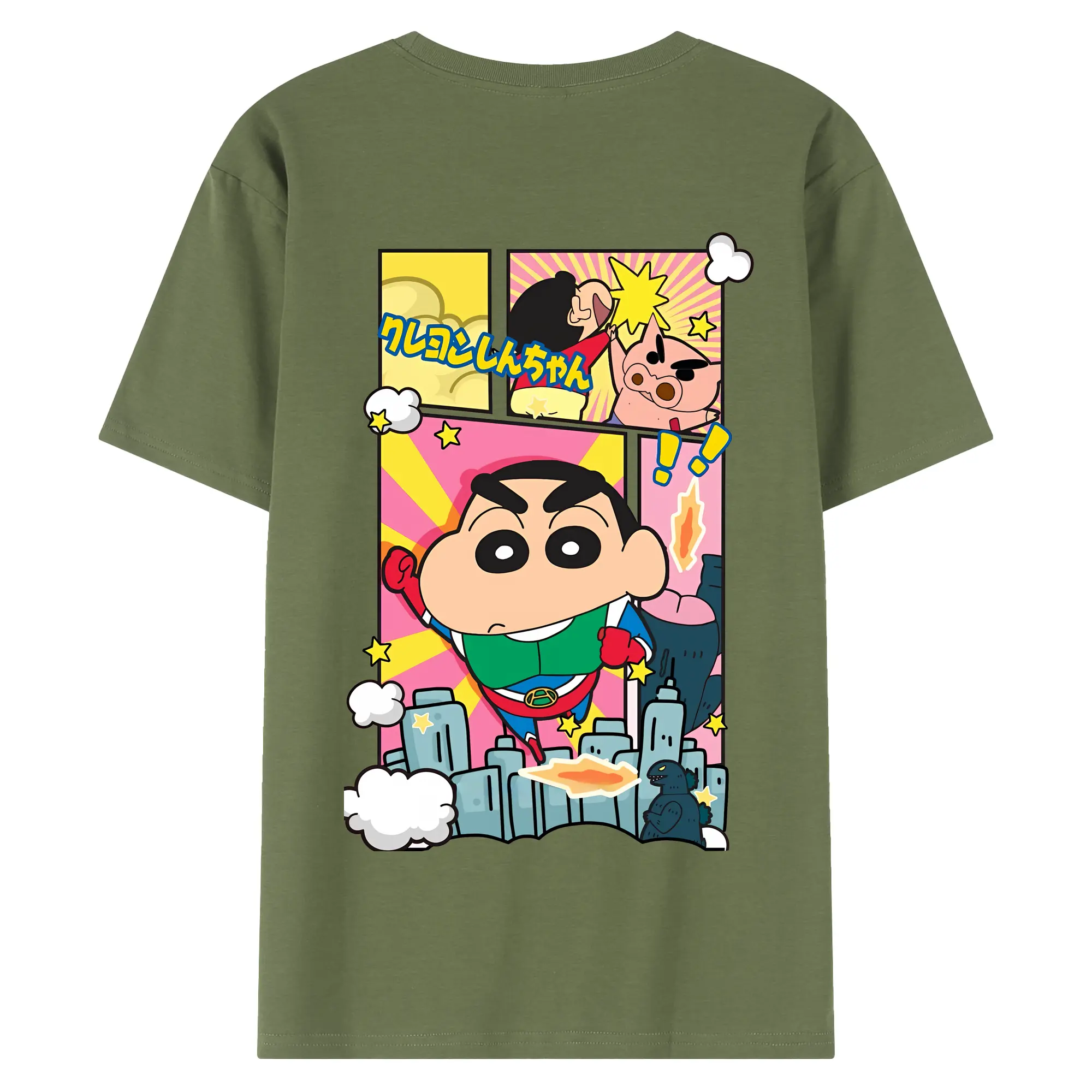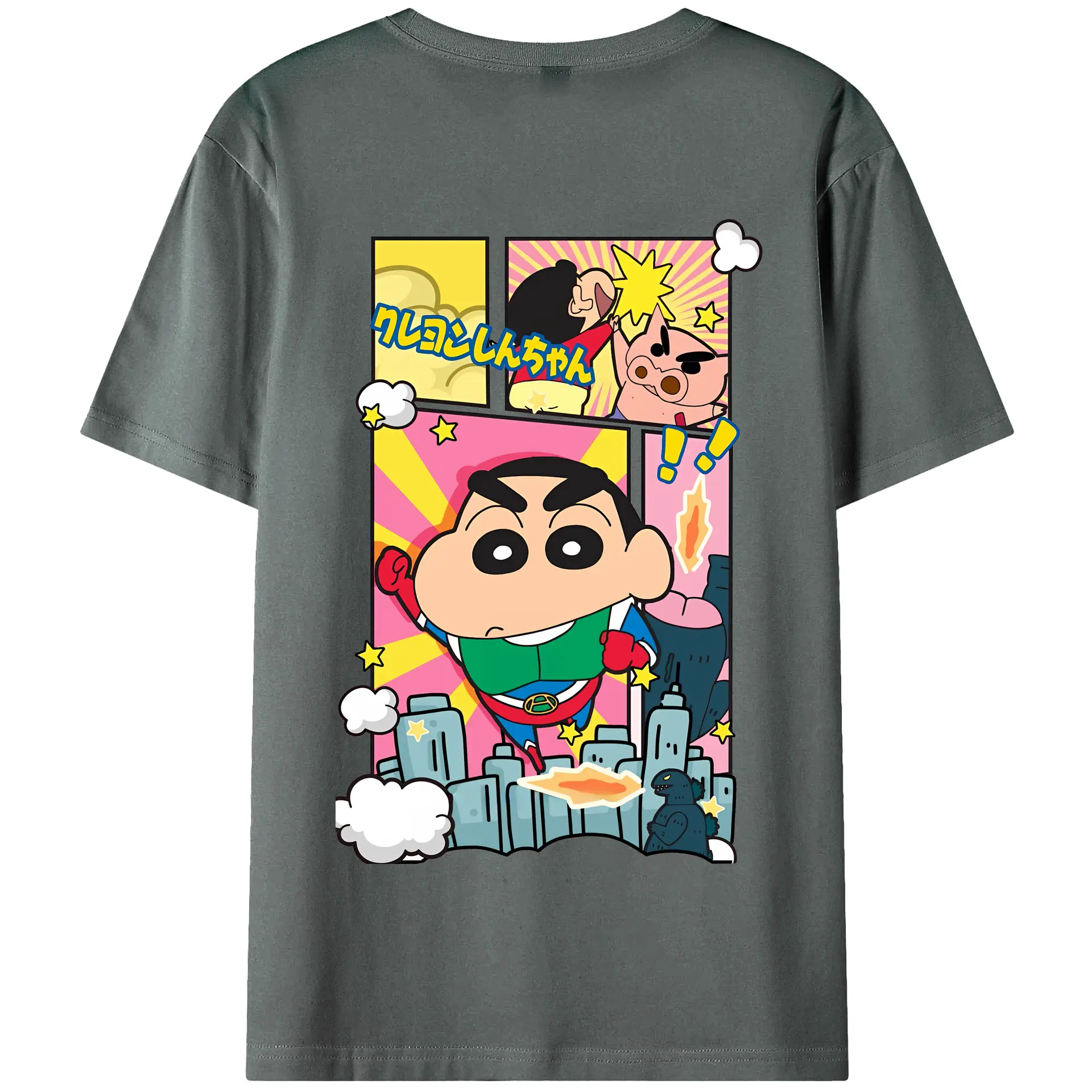 クレヨンしんちゃん グッズ アクション仮面 - 綿100% ヴィンテージ風 半袖Tシャツ ・ 背面プリント ・ 柔らか肌触り ・ 通気性 快適 ・ スポーツ カジュアル 外出用