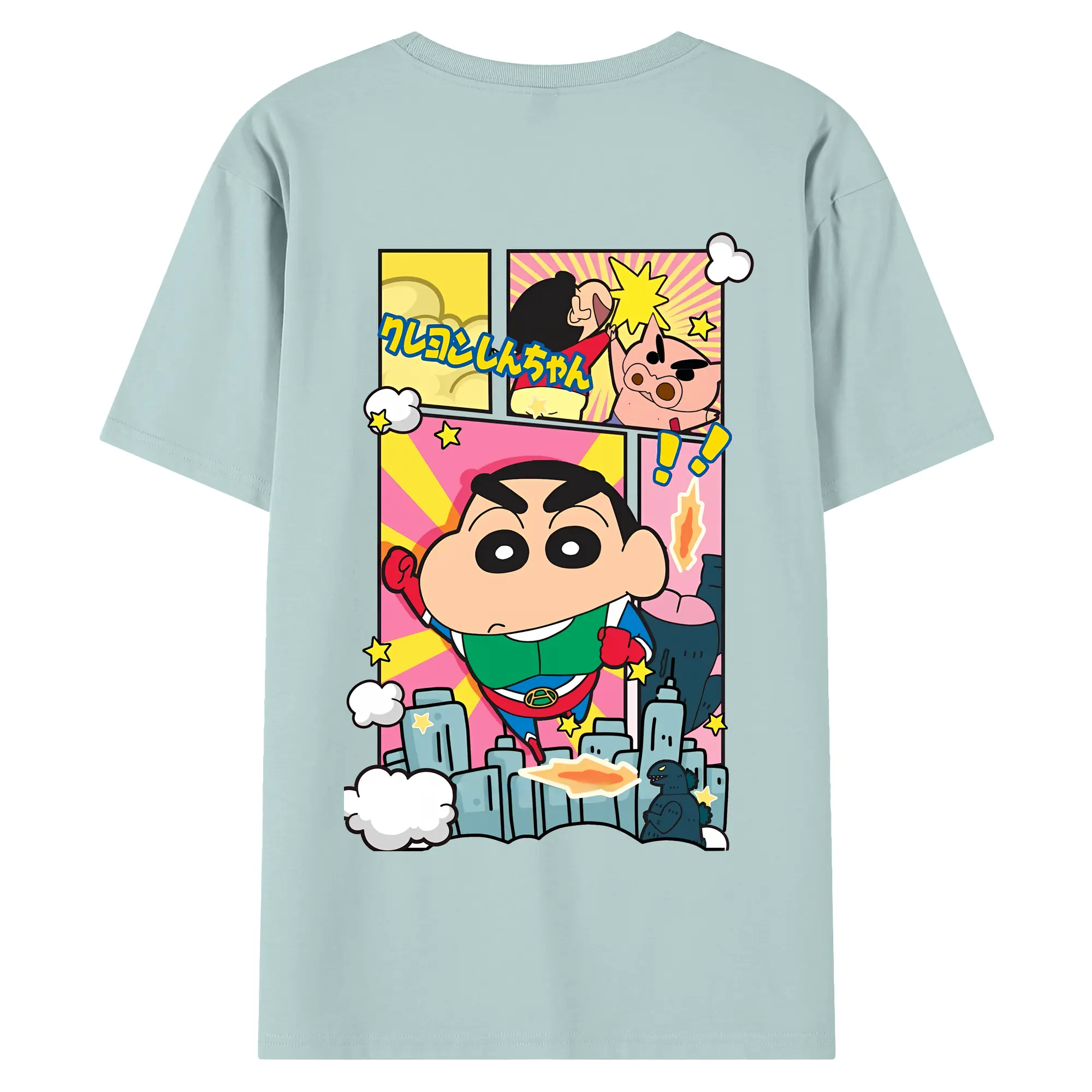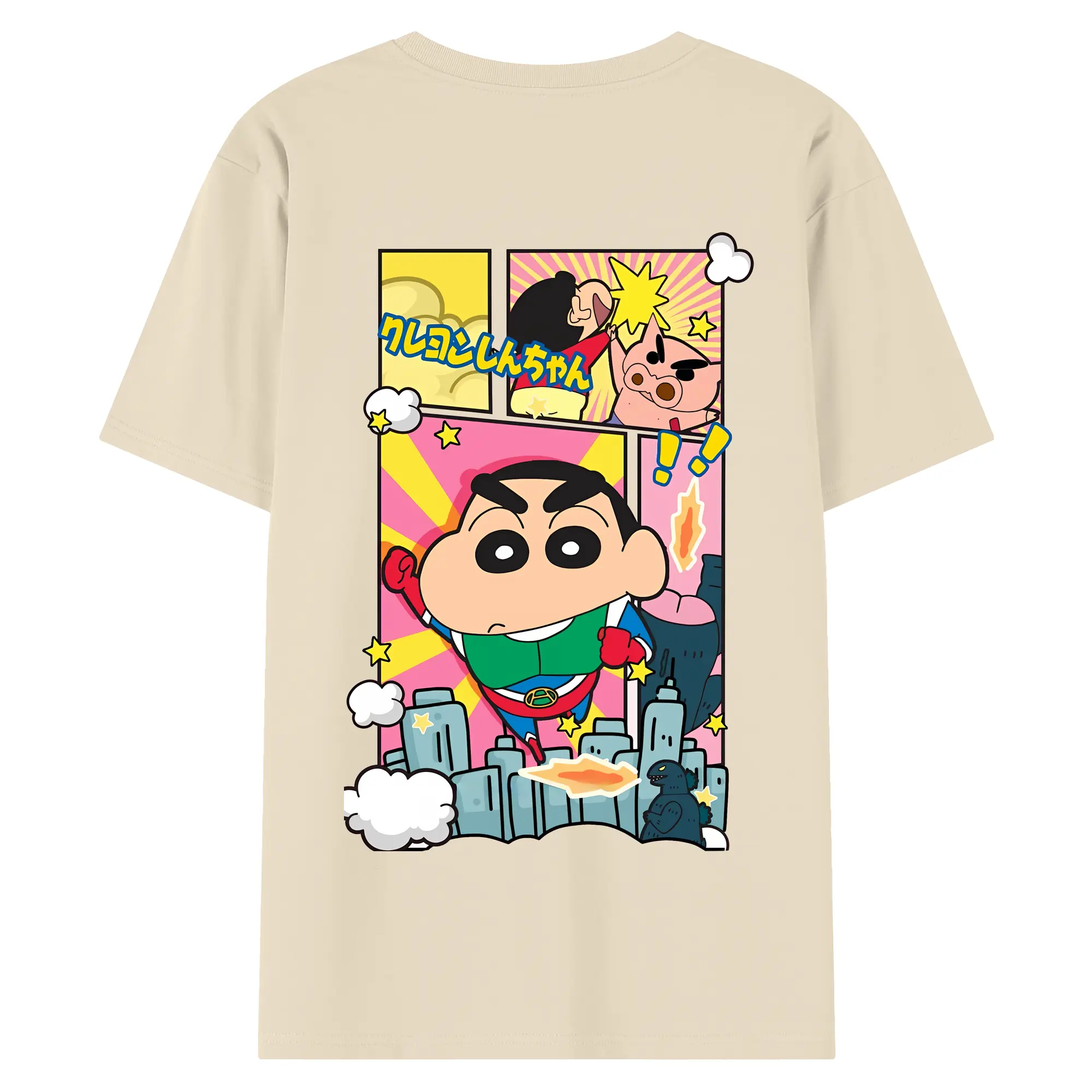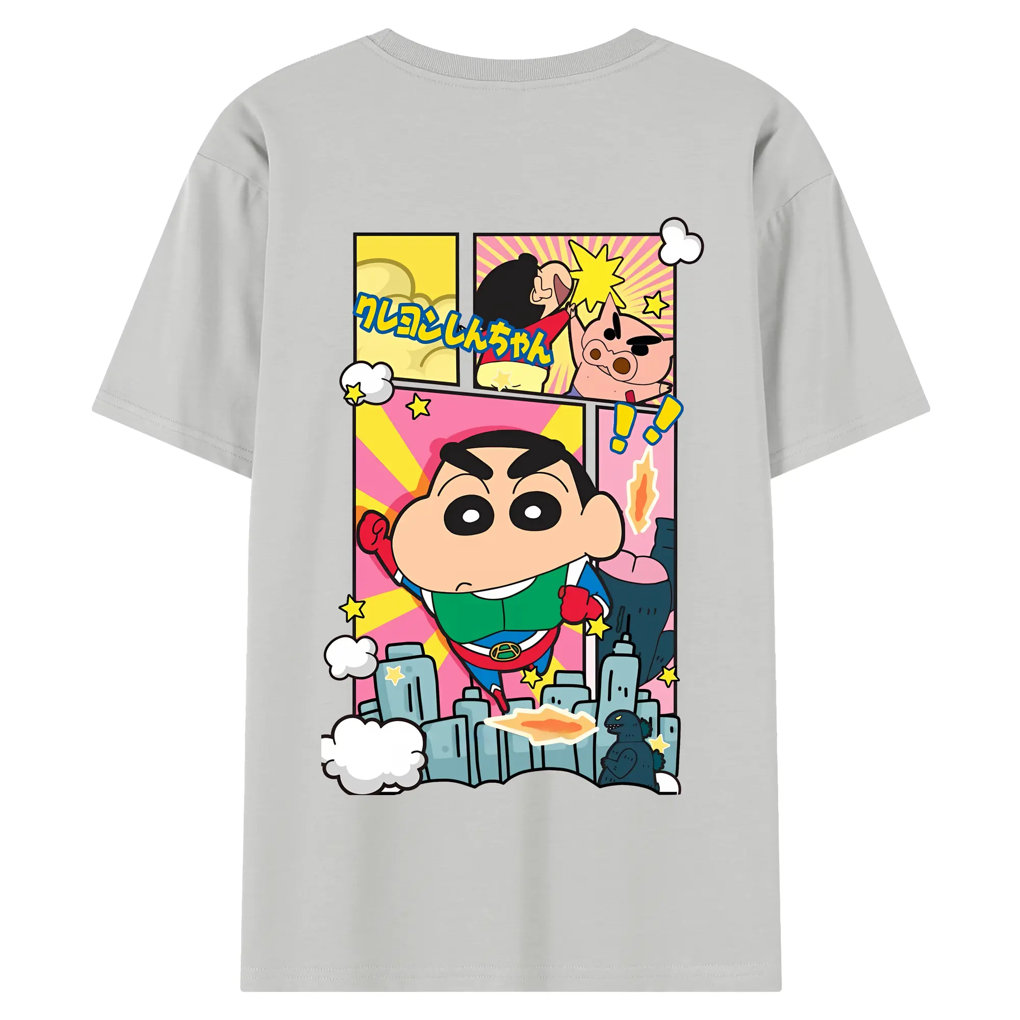 クレヨンしんちゃん グッズ アクション仮面 - 綿100% ヴィンテージ風 半袖Tシャツ ・ 背面プリント ・ 柔らか肌触り ・ 通気性 快適 ・ スポーツ カジュアル 外出用