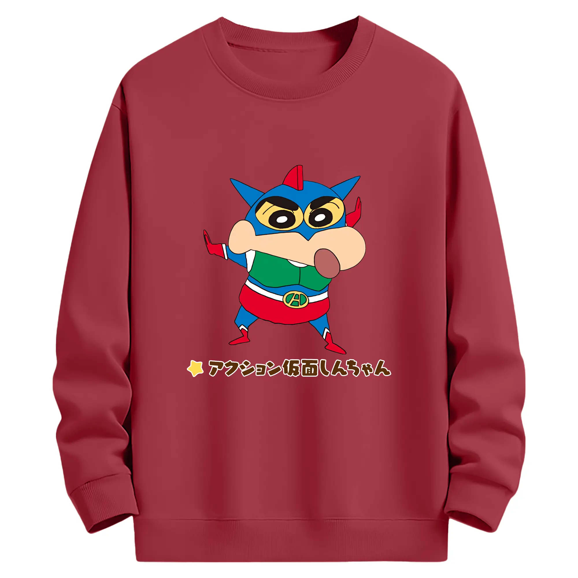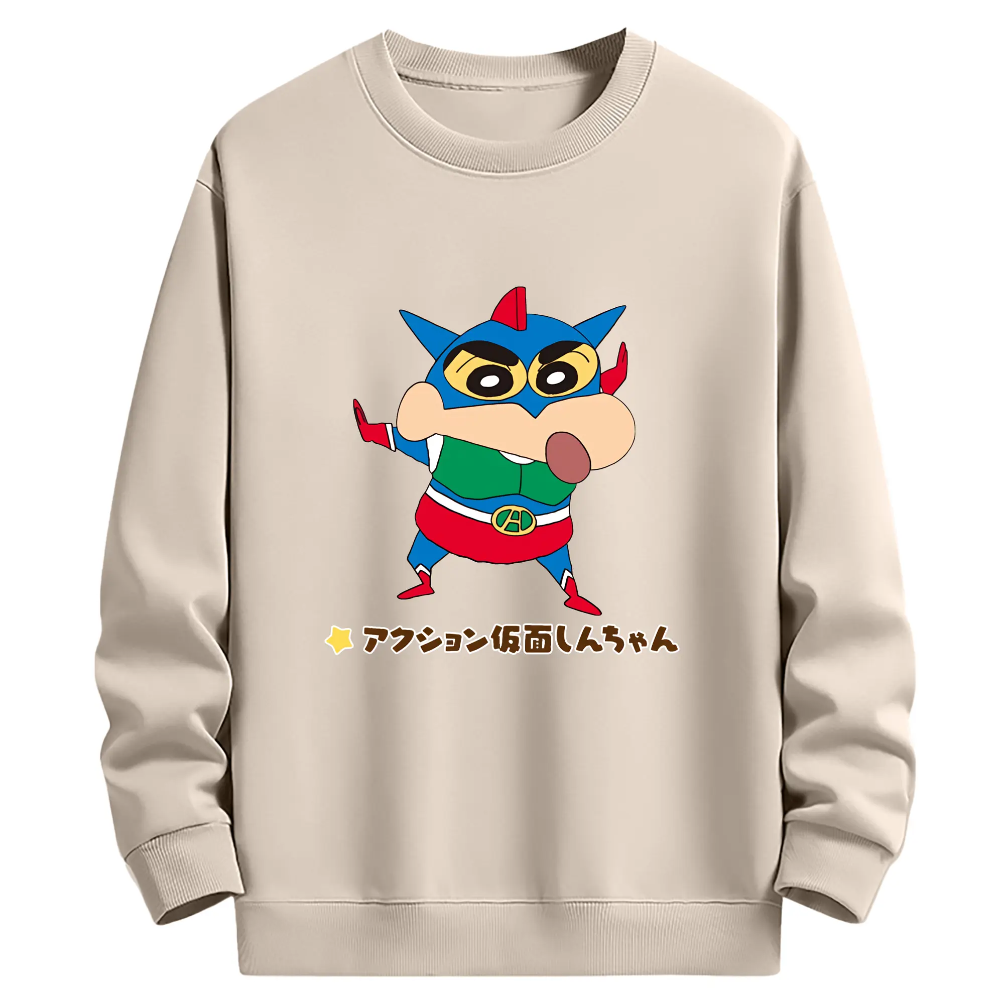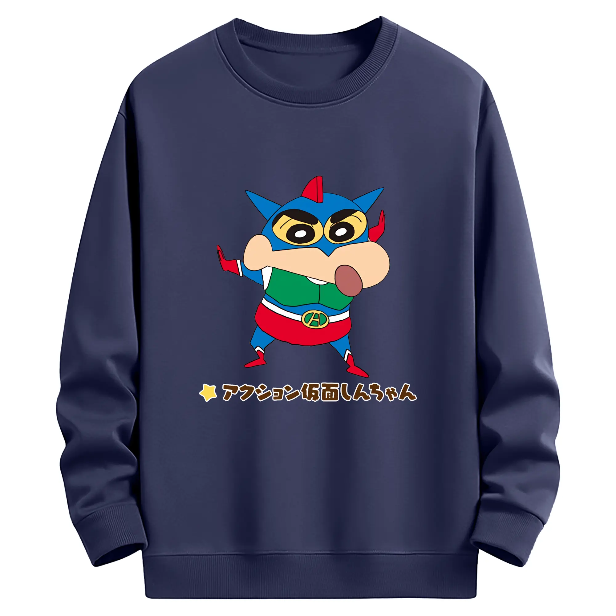 クレヨンしんちゃん グッズ アクション仮面 - 薄手 クルーネック スウェット 裏毛260g · ポリエステル 春秋向け カジュアル 男女兼用 · トレーナー デイリー スポーツ 散歩に最適