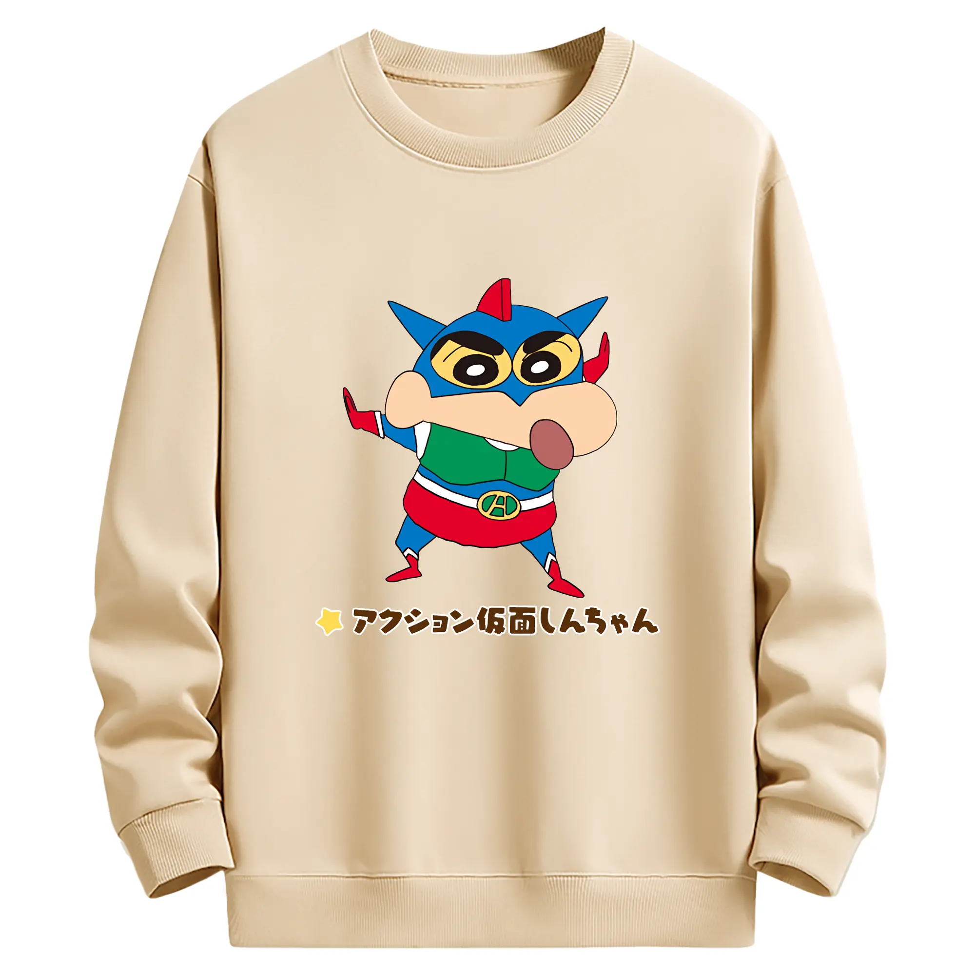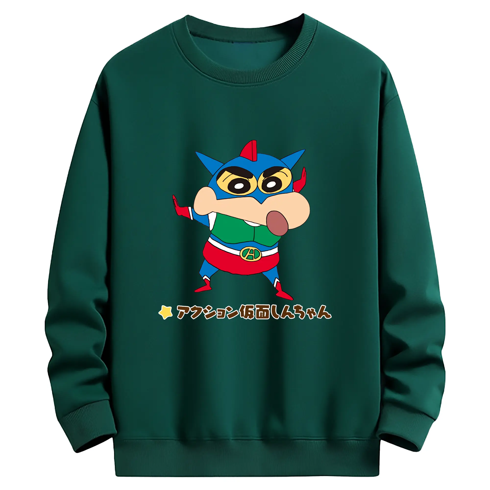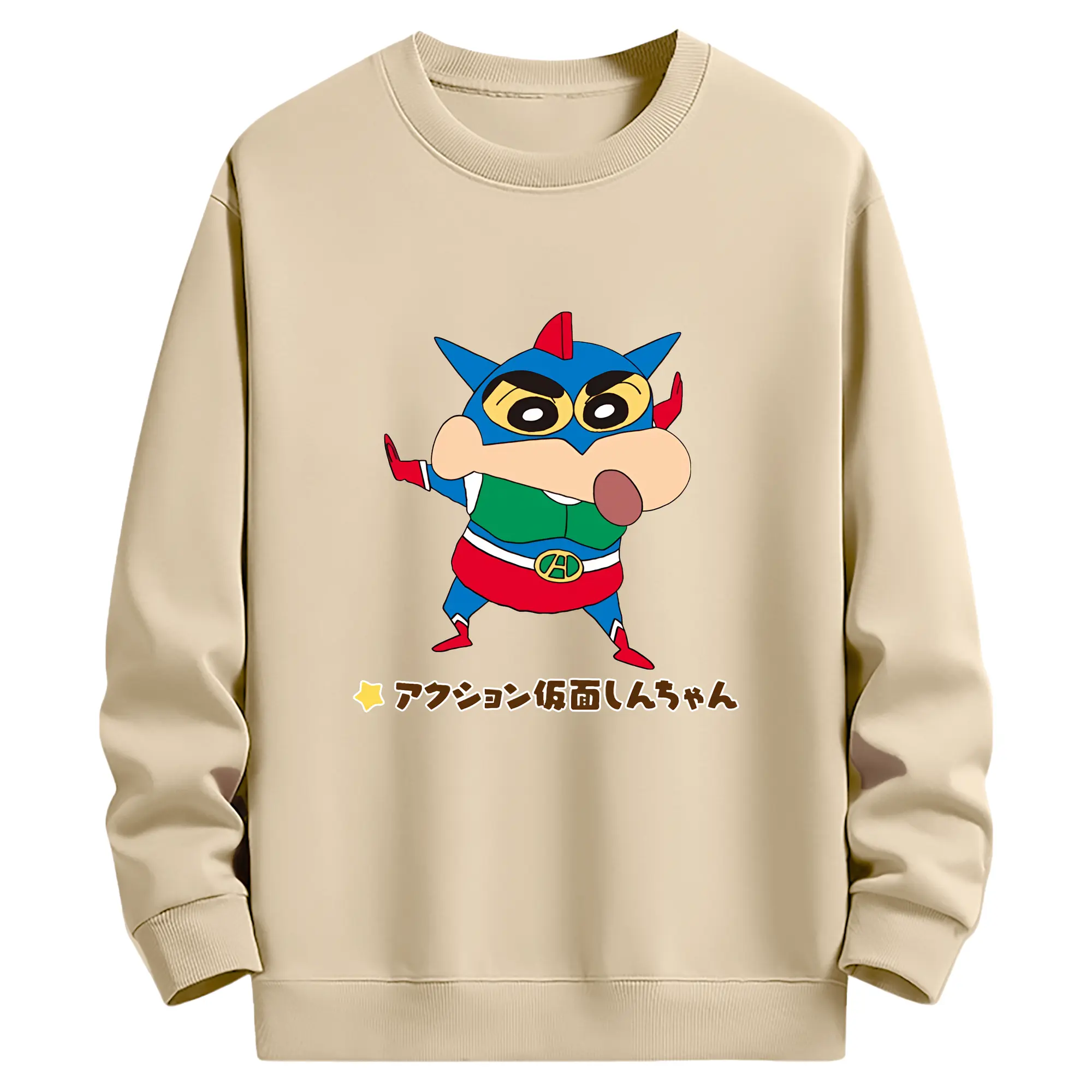 クレヨンしんちゃん グッズ アクション仮面 - 薄手 クルーネック スウェット 裏毛260g · ポリエステル 春秋向け カジュアル 男女兼用 · トレーナー デイリー スポーツ 散歩に最適