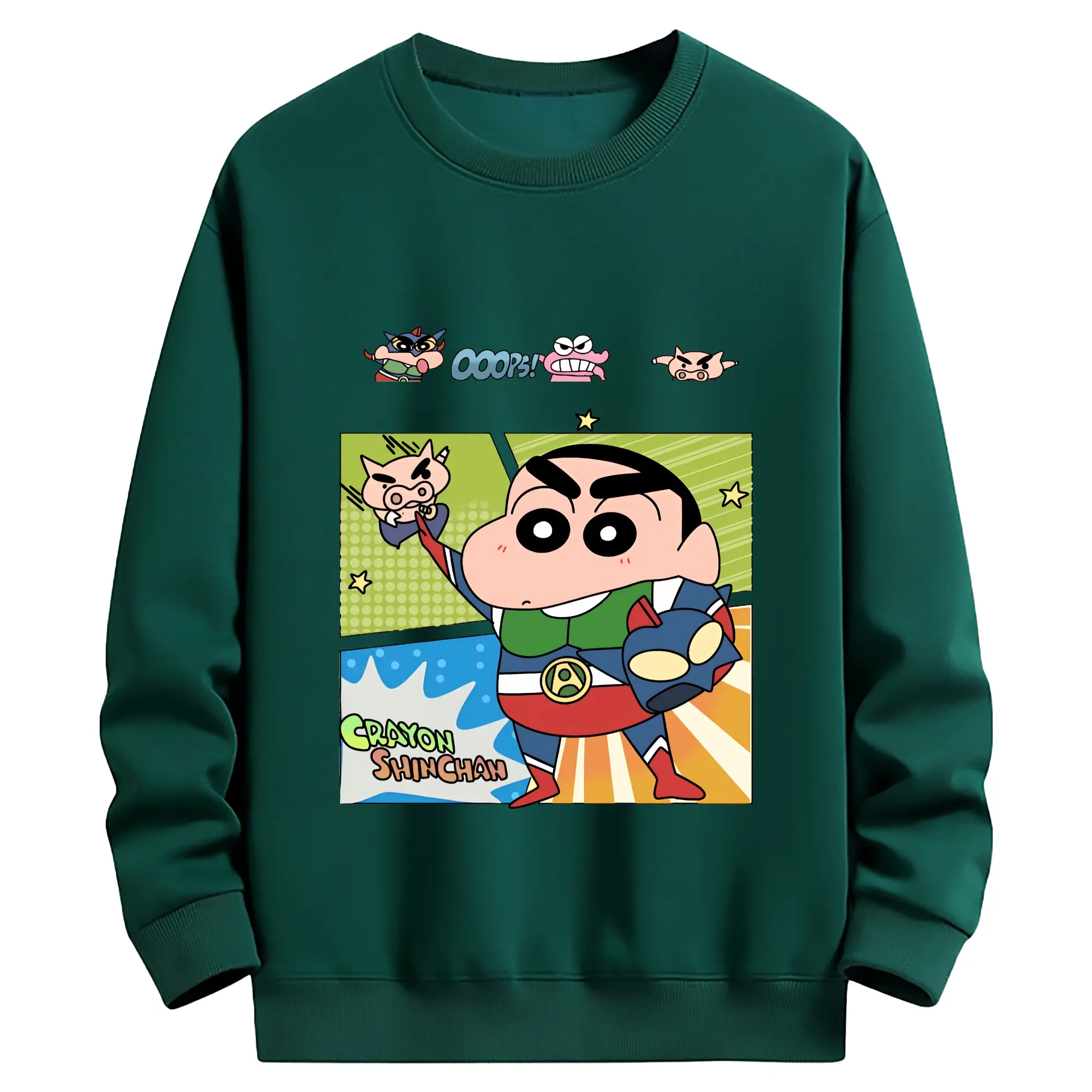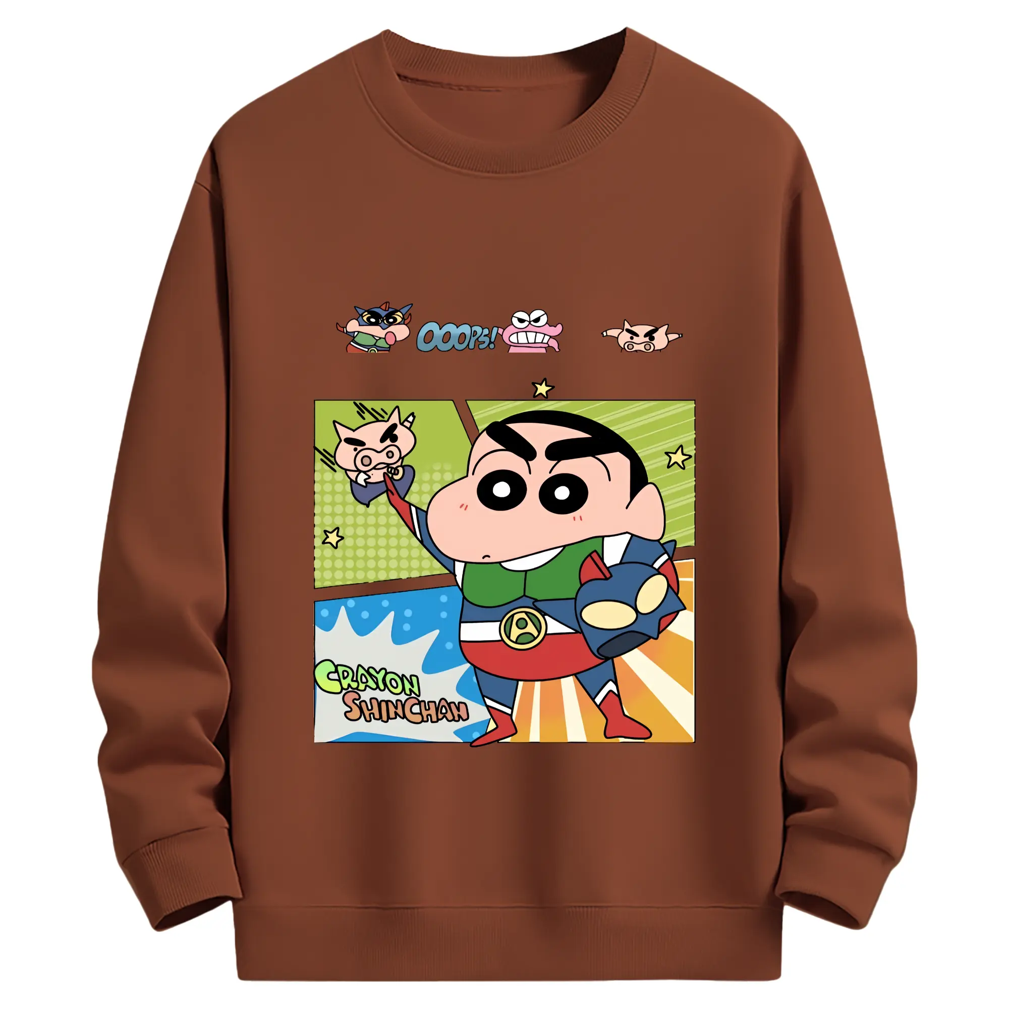 クレヨンしんちゃん グッズ アクション仮面 - 薄手 クルーネック スウェット 裏毛260g · ポリエステル 春秋向け カジュアル 男女兼用 · トレーナー デイリー スポーツ 散歩に最適