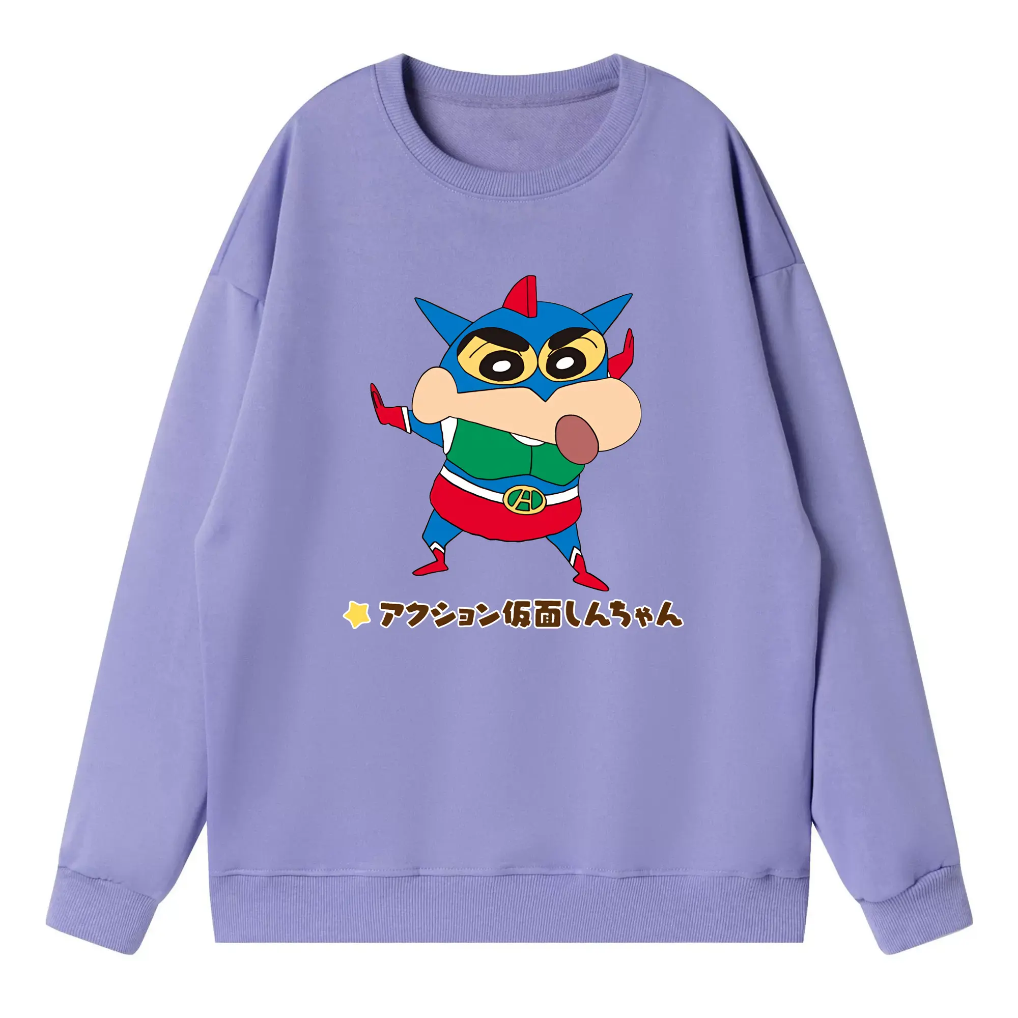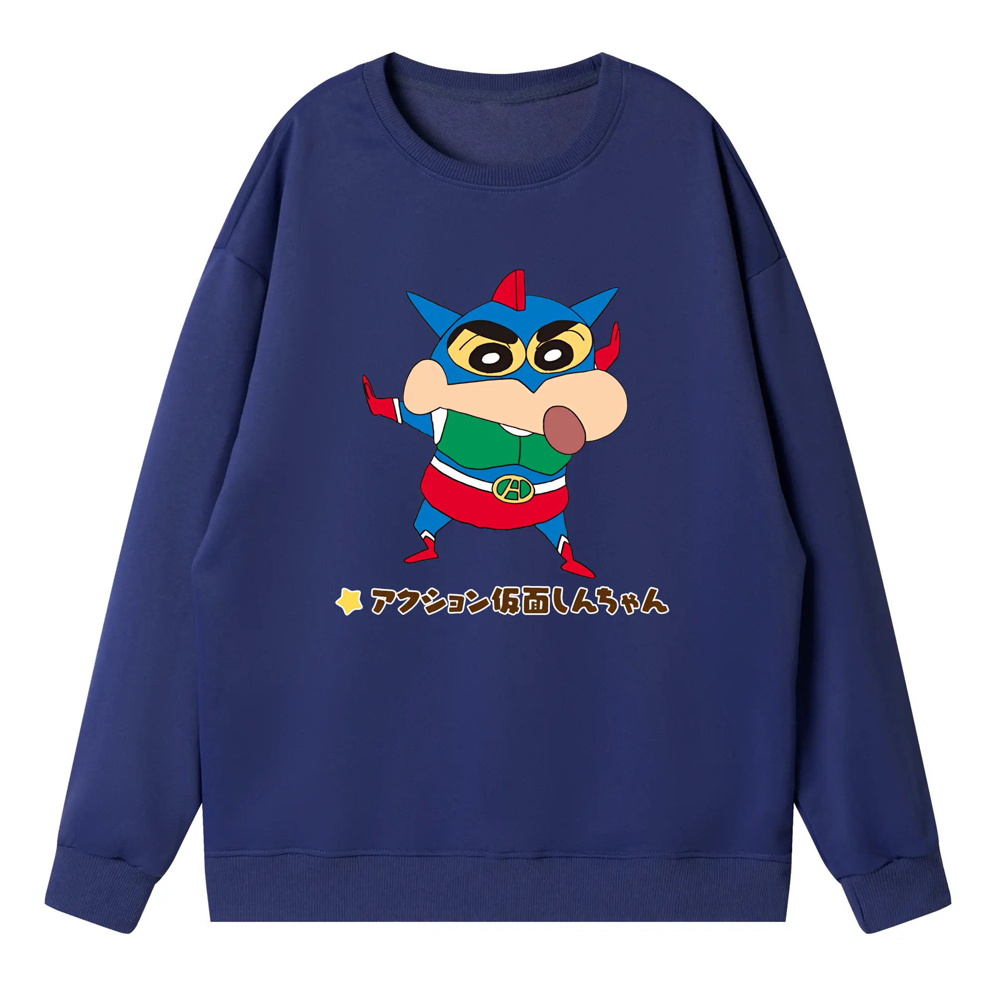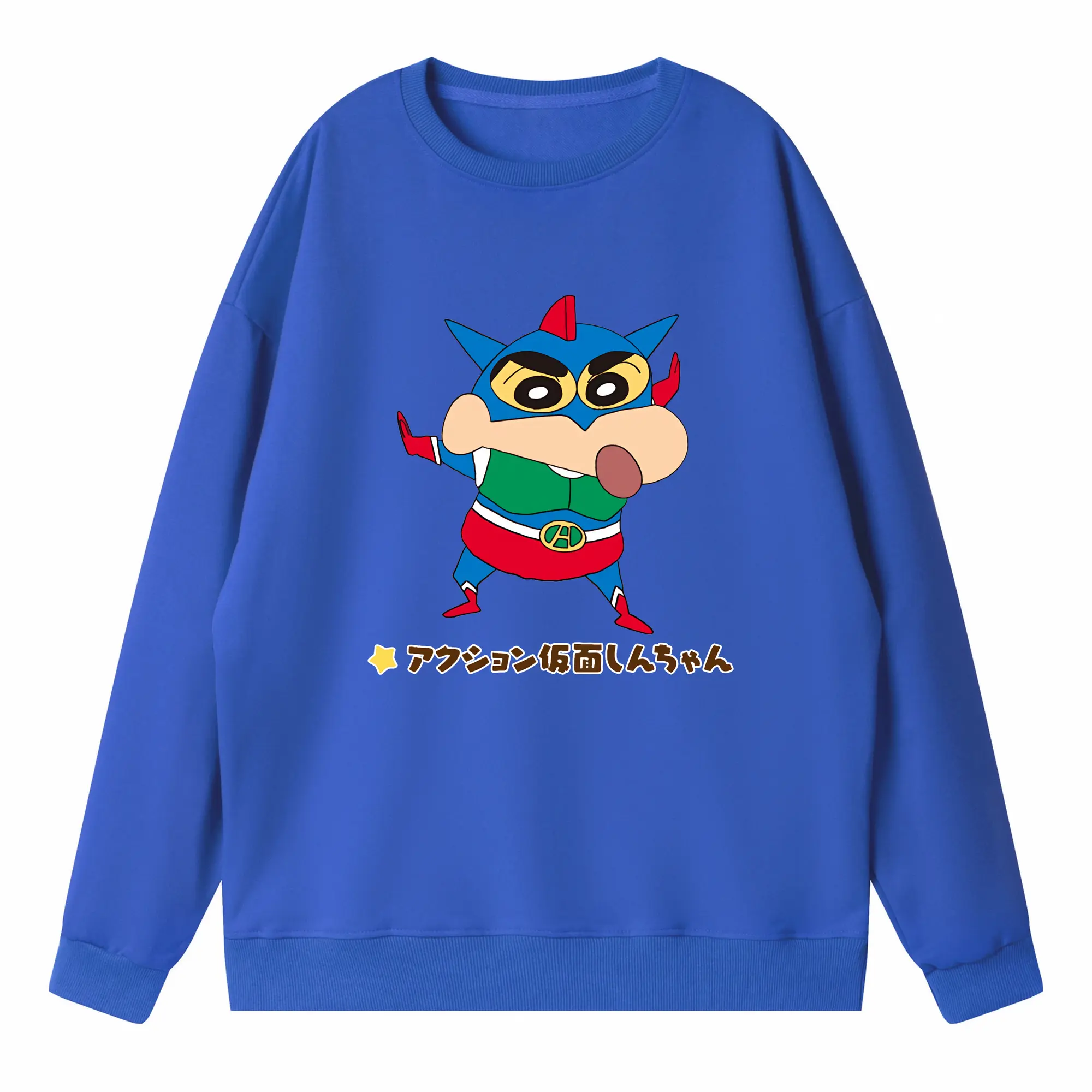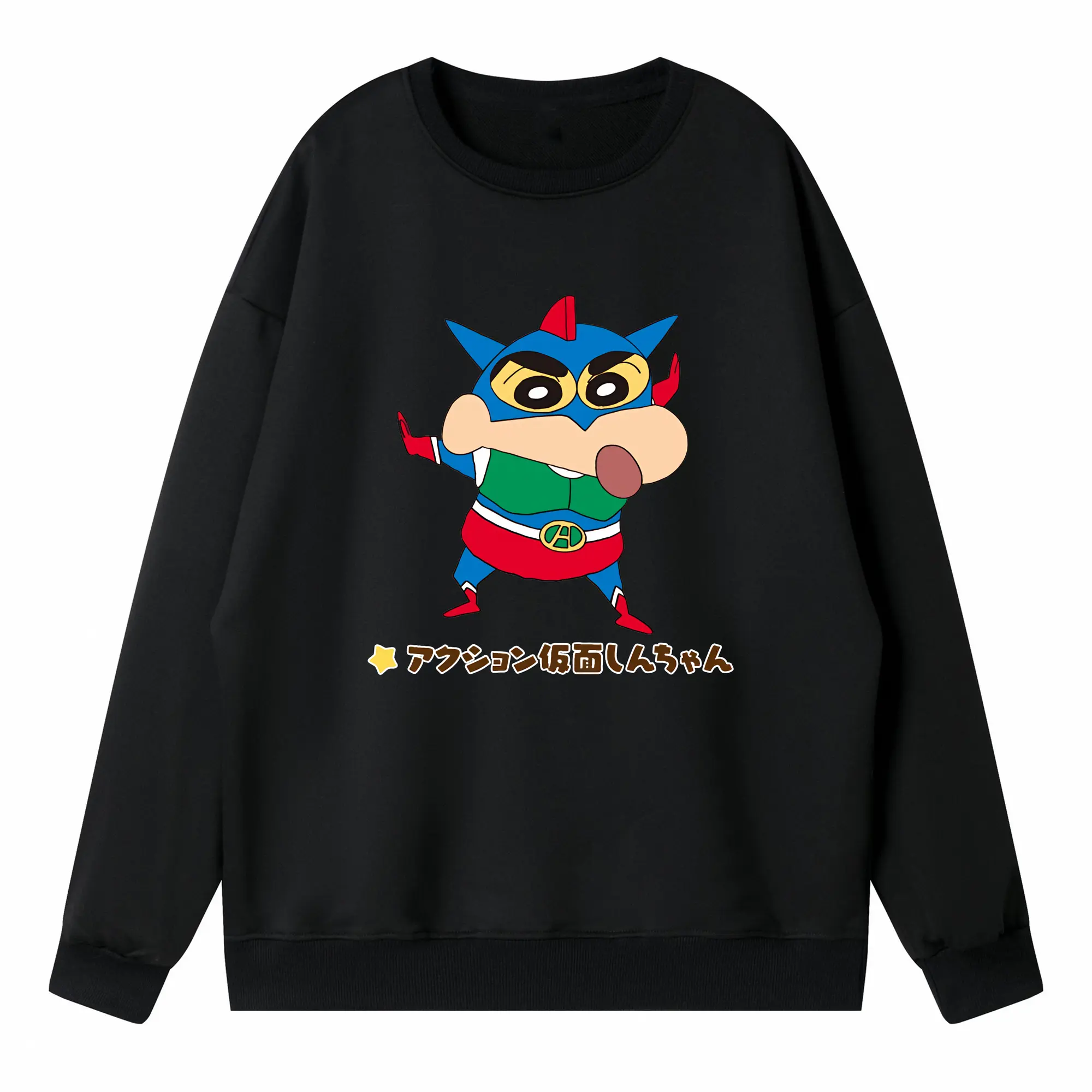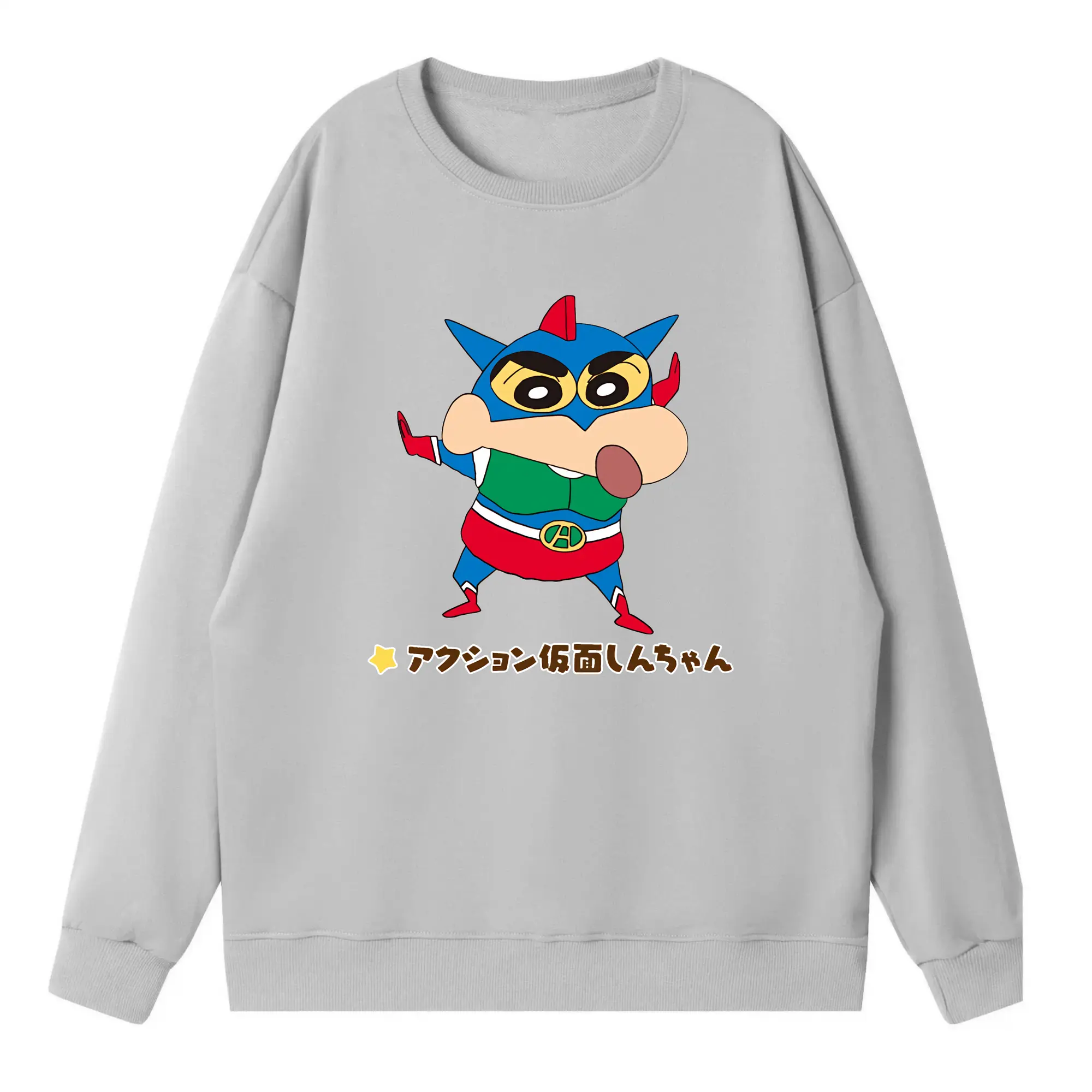 クレヨンしんちゃん グッズ アクション仮面 - 高品質 クルーネック スウェット ・ コットン59% ポリエステル41% ・ ユニセックス 長袖 トレーナー ・ カジュアル デイリー スポーツ 散歩用