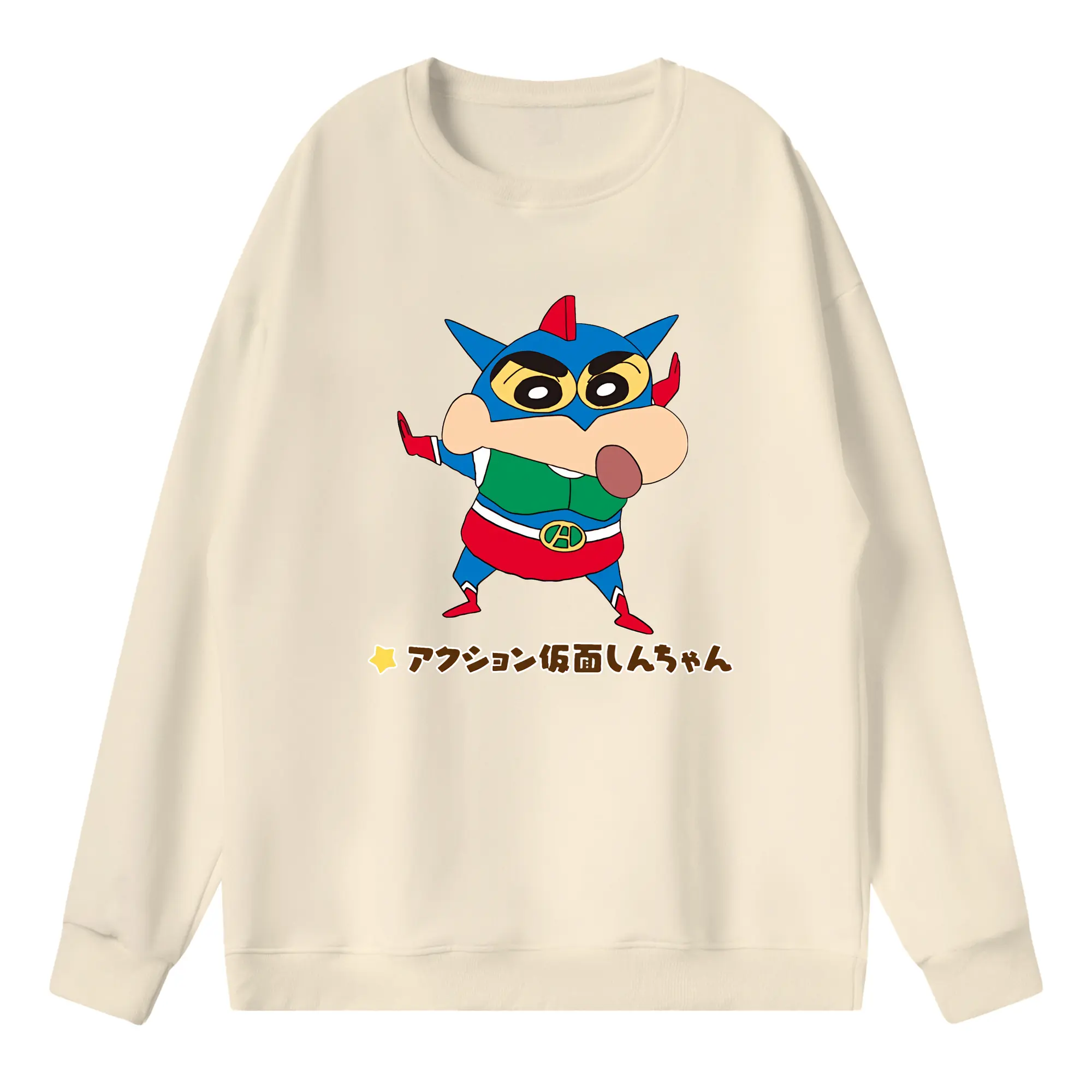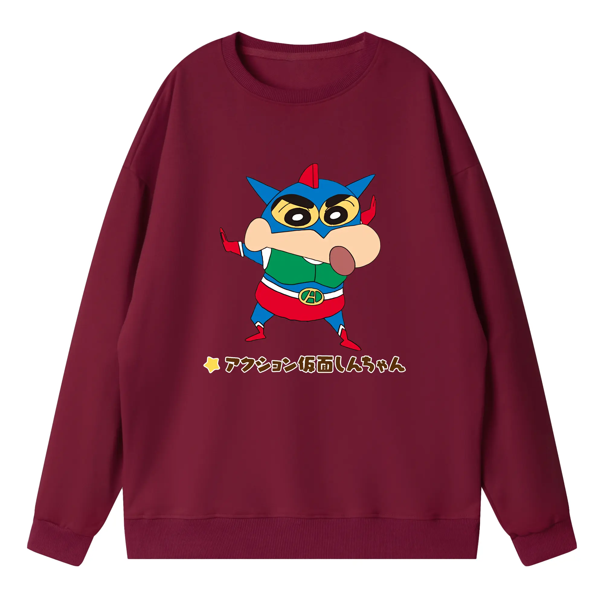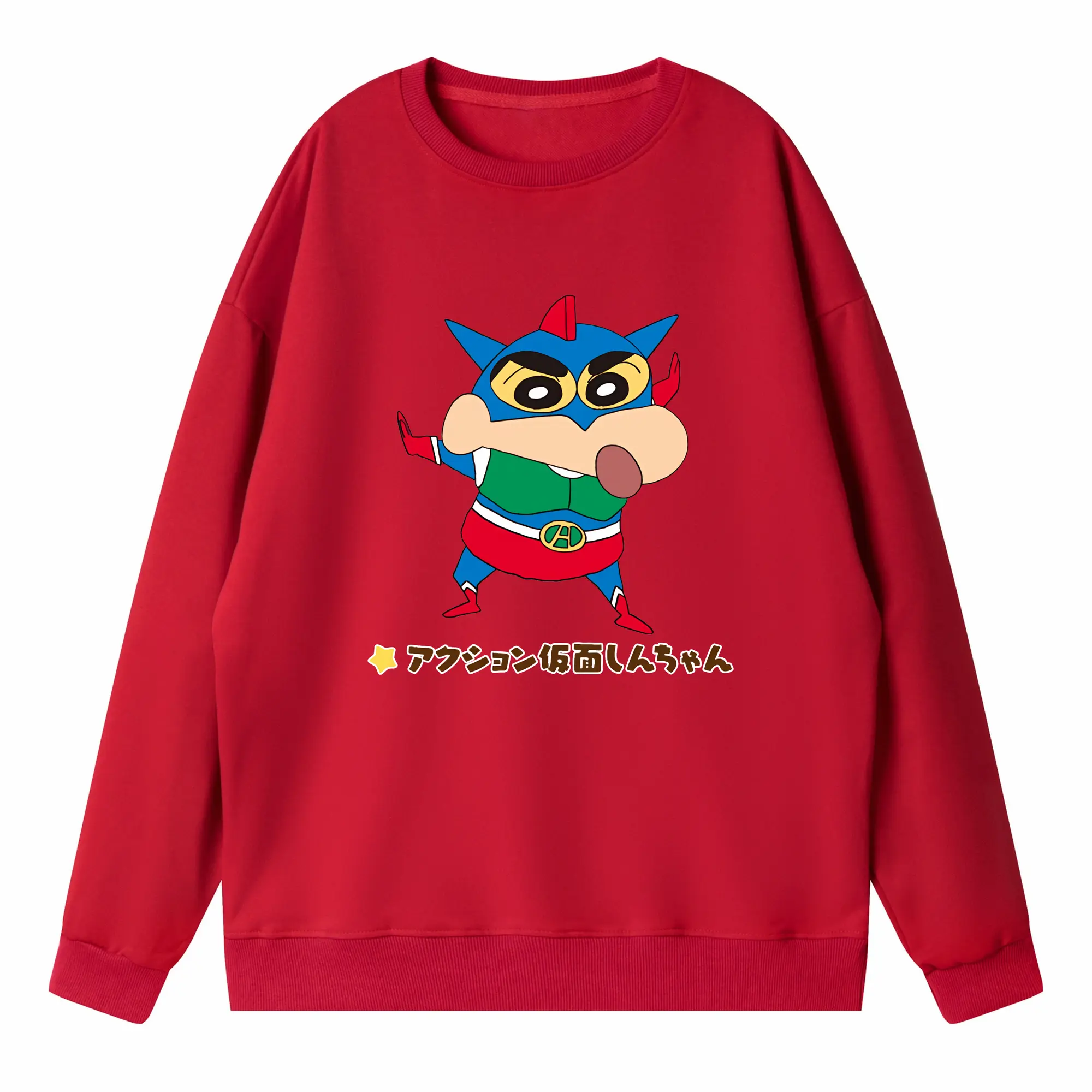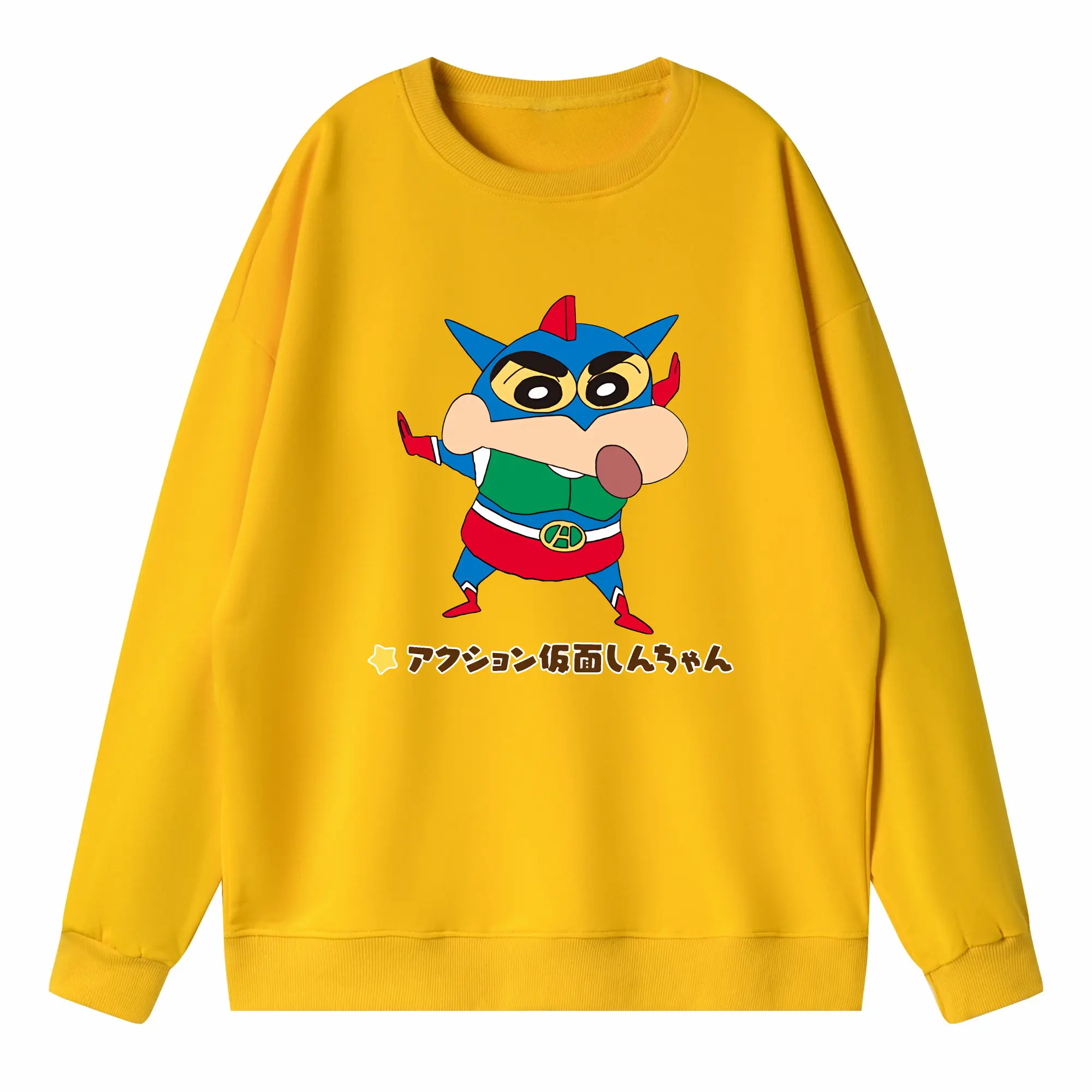 クレヨンしんちゃん グッズ アクション仮面 - 高品質 クルーネック スウェット ・ コットン59% ポリエステル41% ・ ユニセックス 長袖 トレーナー ・ カジュアル デイリー スポーツ 散歩用