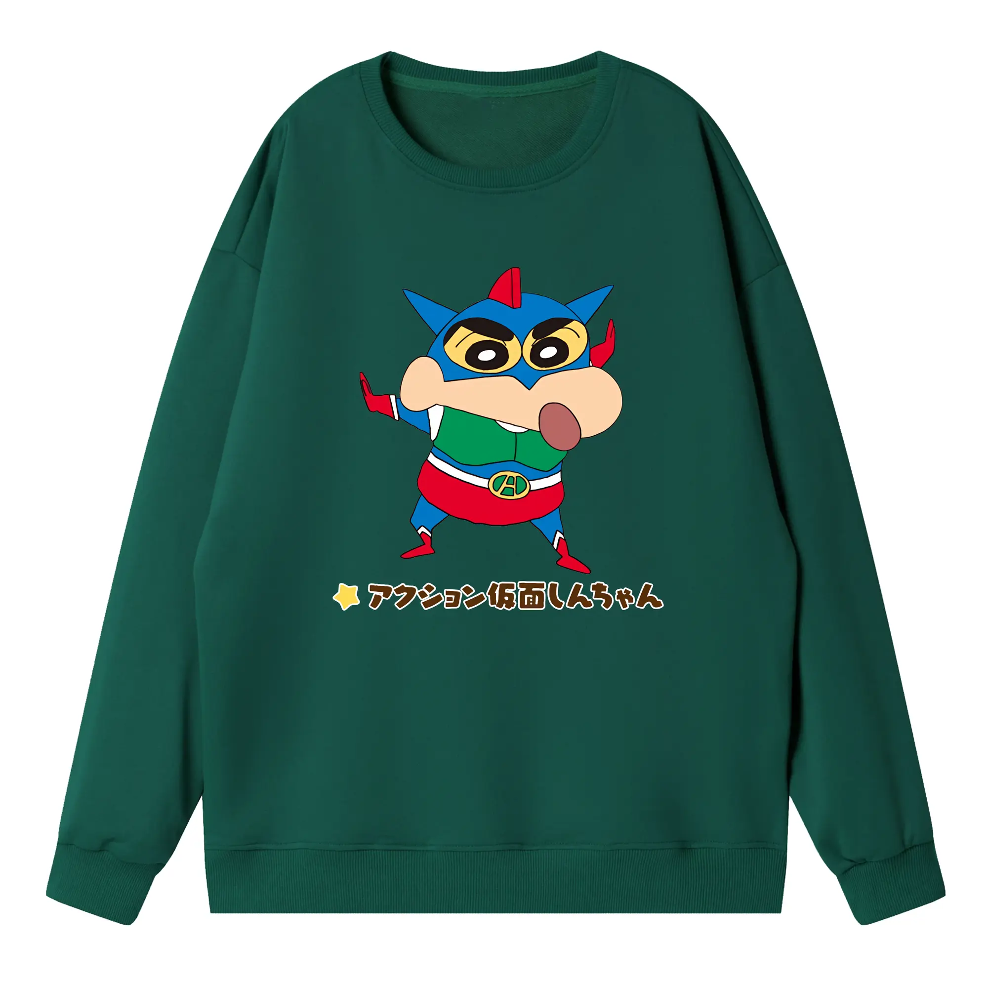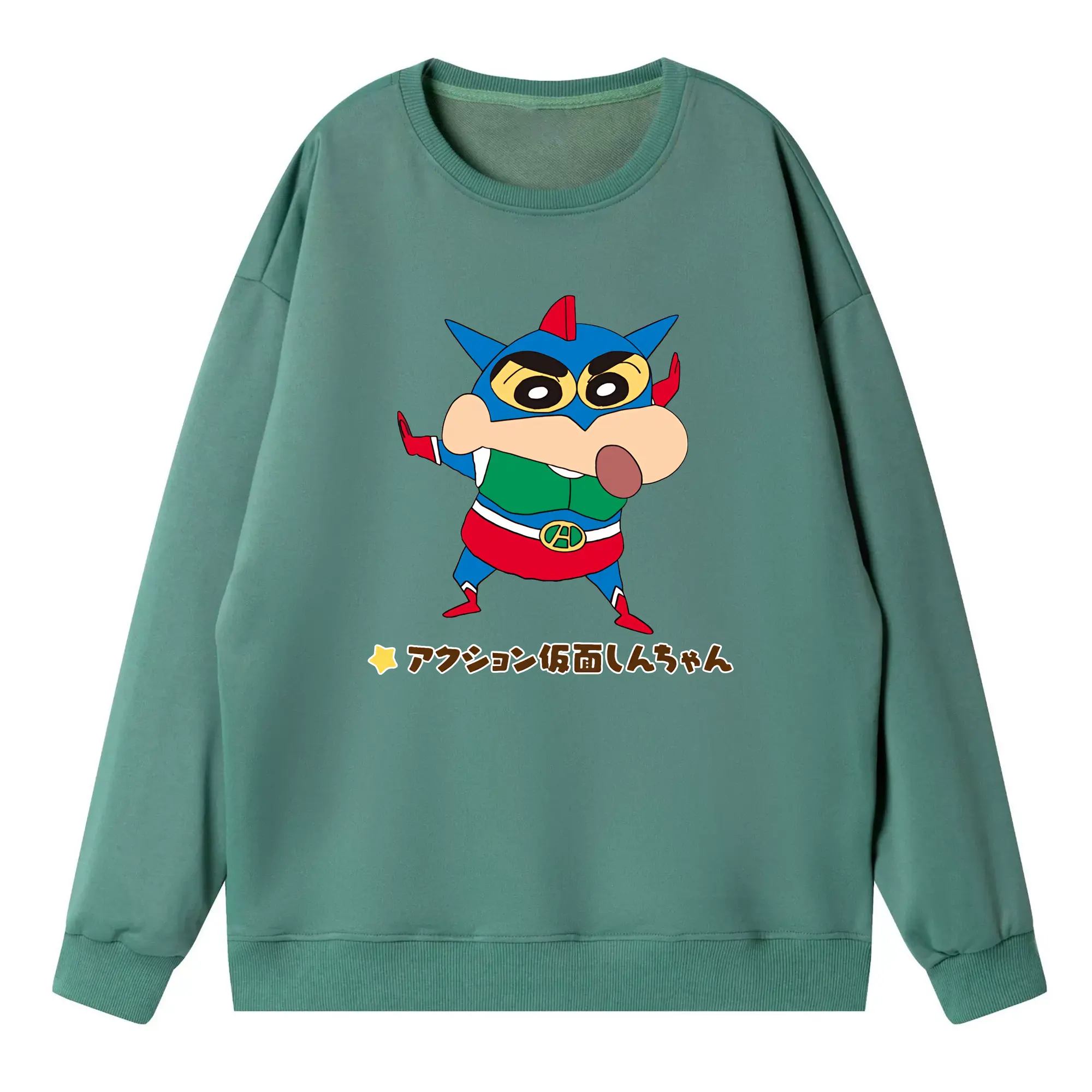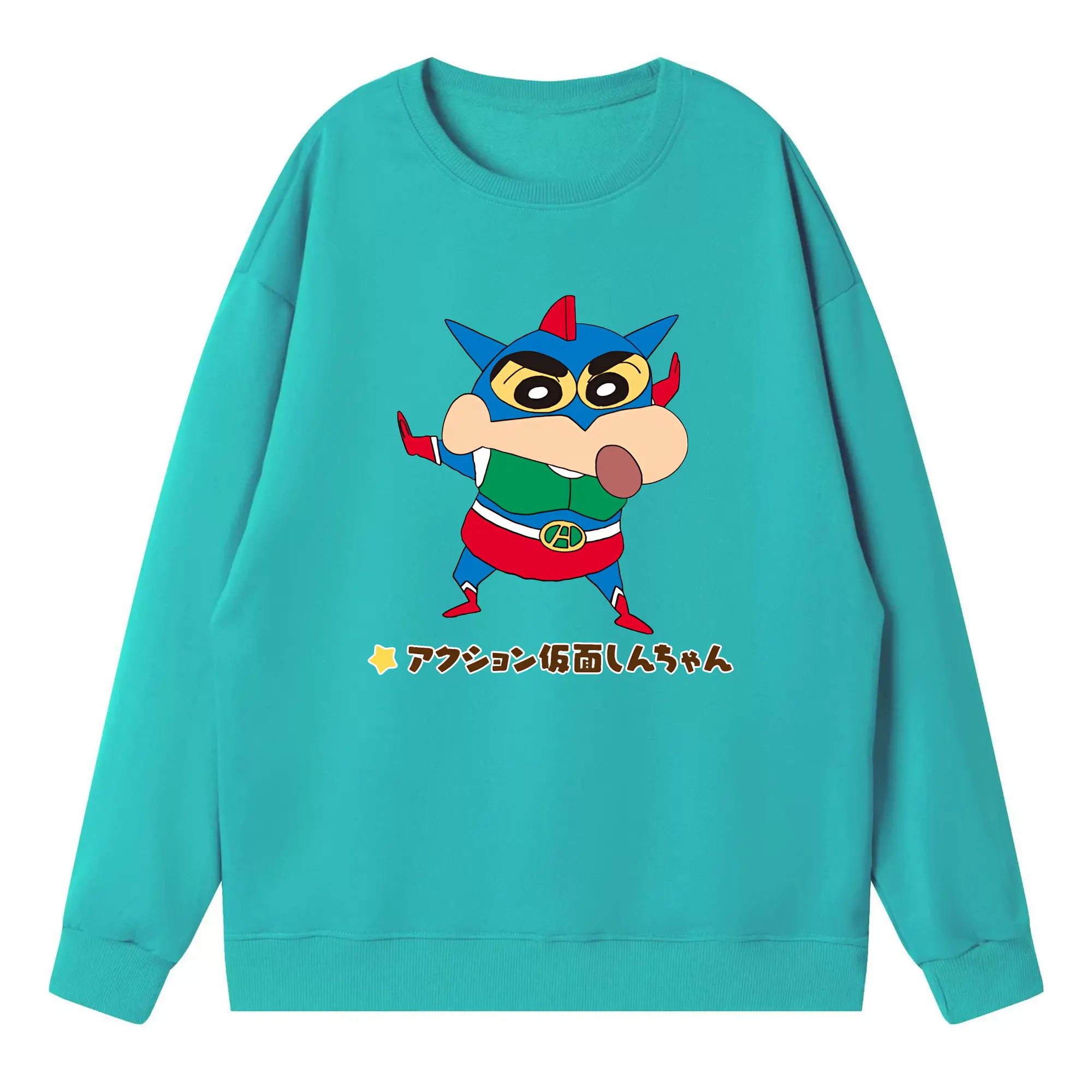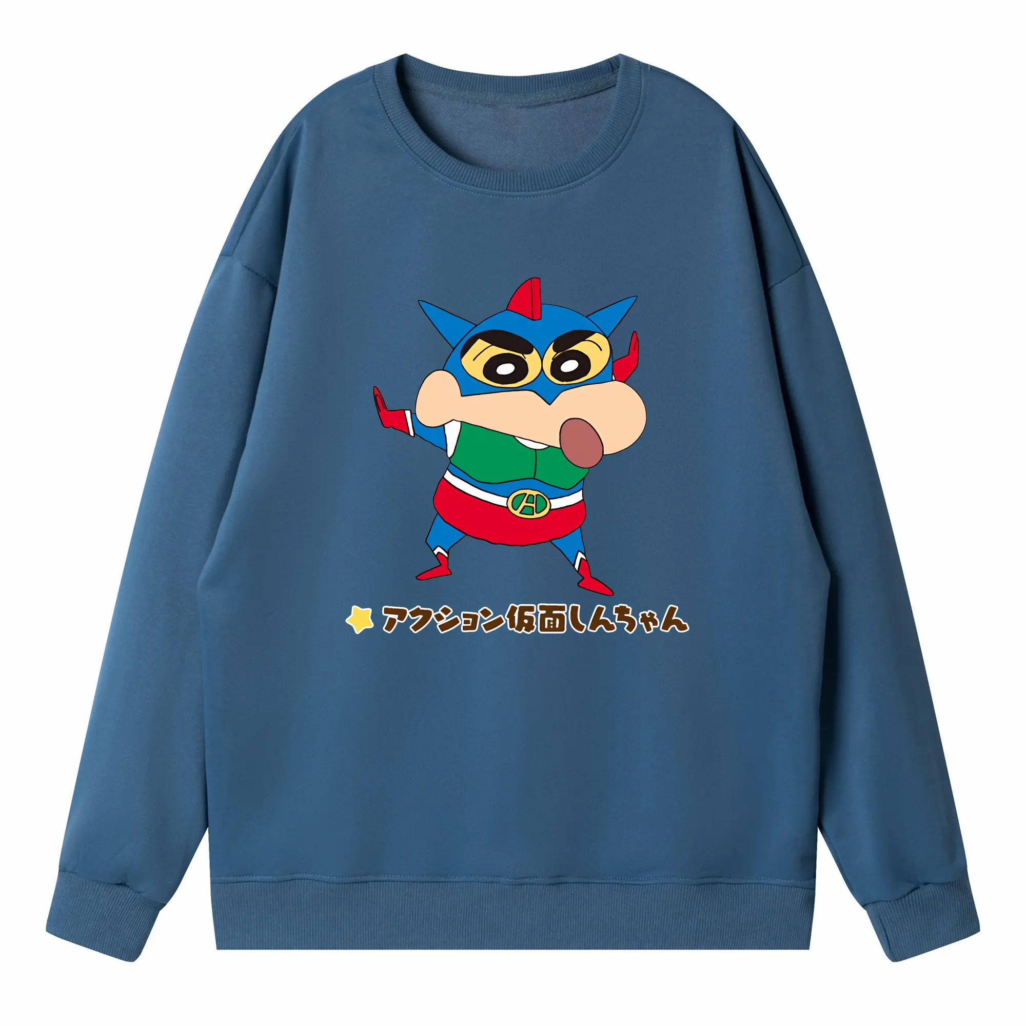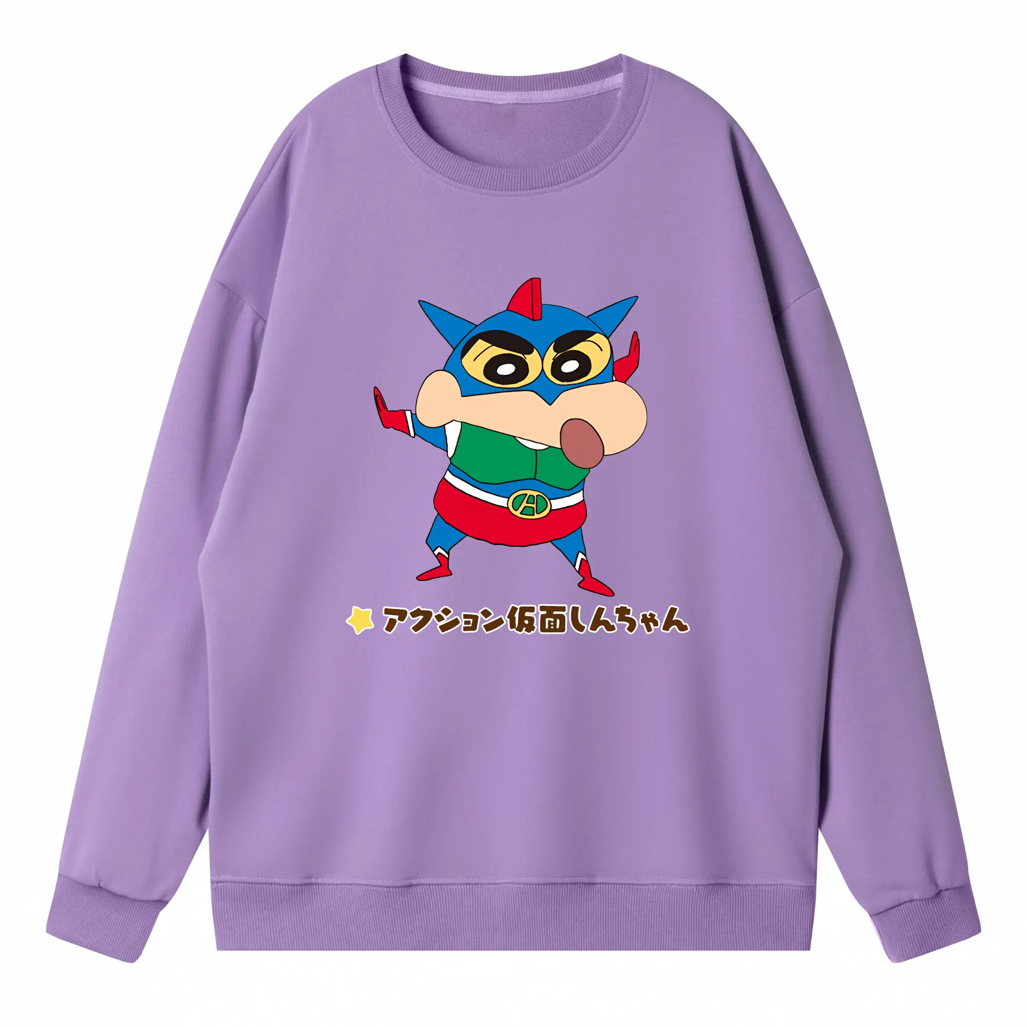 クレヨンしんちゃん グッズ アクション仮面 - 高品質 クルーネック スウェット ・ コットン59% ポリエステル41% ・ ユニセックス 長袖 トレーナー ・ カジュアル デイリー スポーツ 散歩用