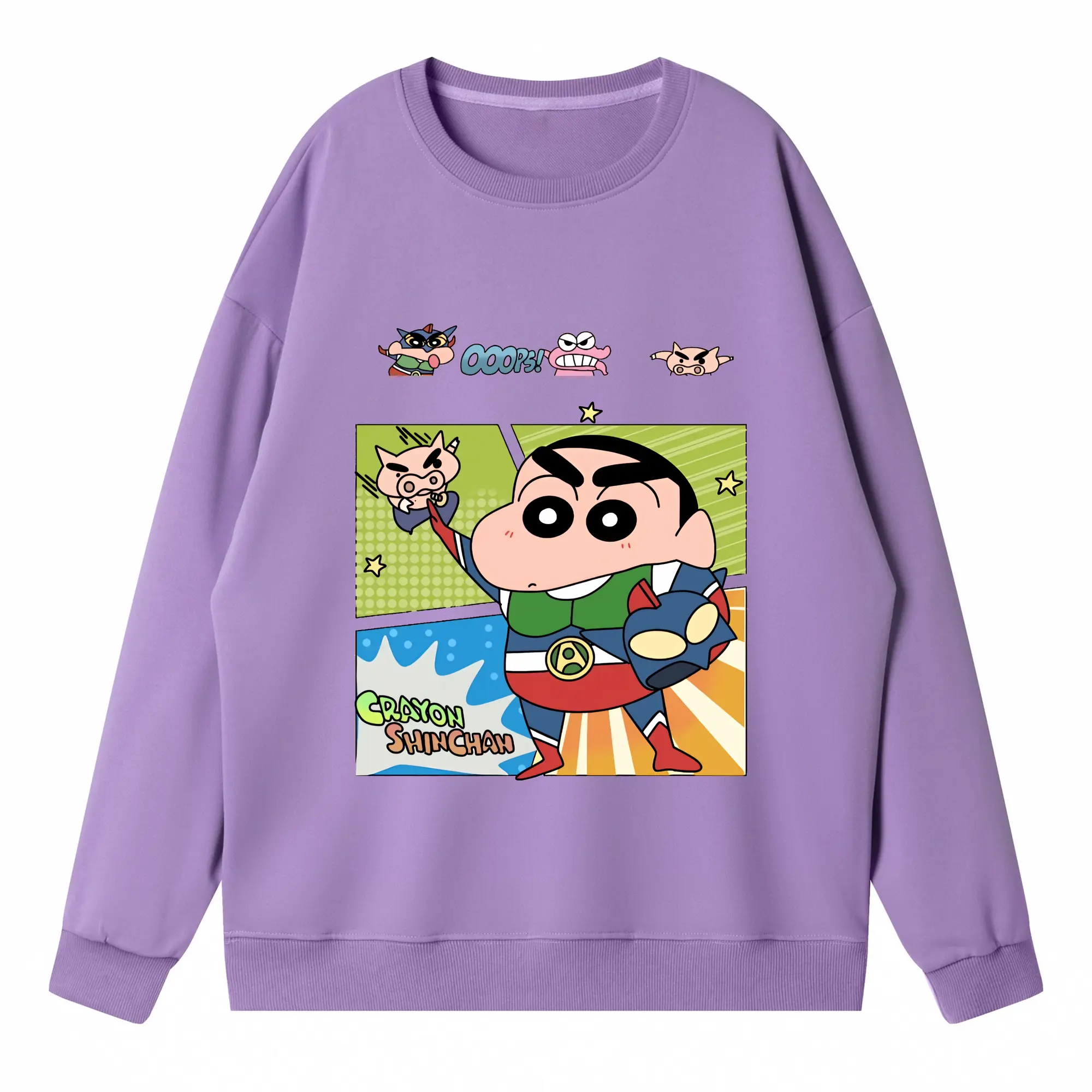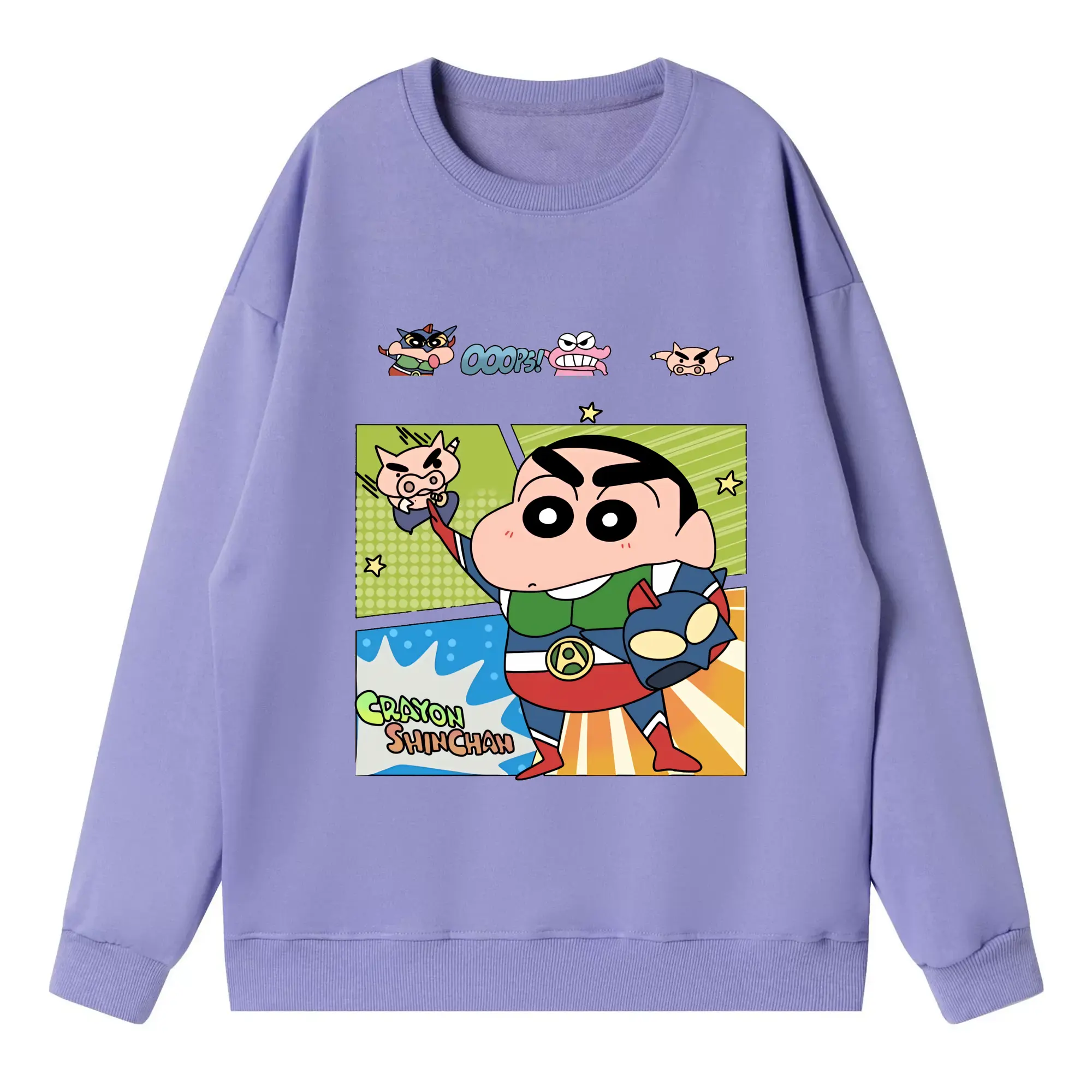 クレヨンしんちゃん グッズ 野原 しんのすけ - 薄手 クルーネック スウェット 裏毛260g · ポリエステル 春秋向け カジュアル 男女兼用 · トレーナー デイリー スポーツ 散歩に最適