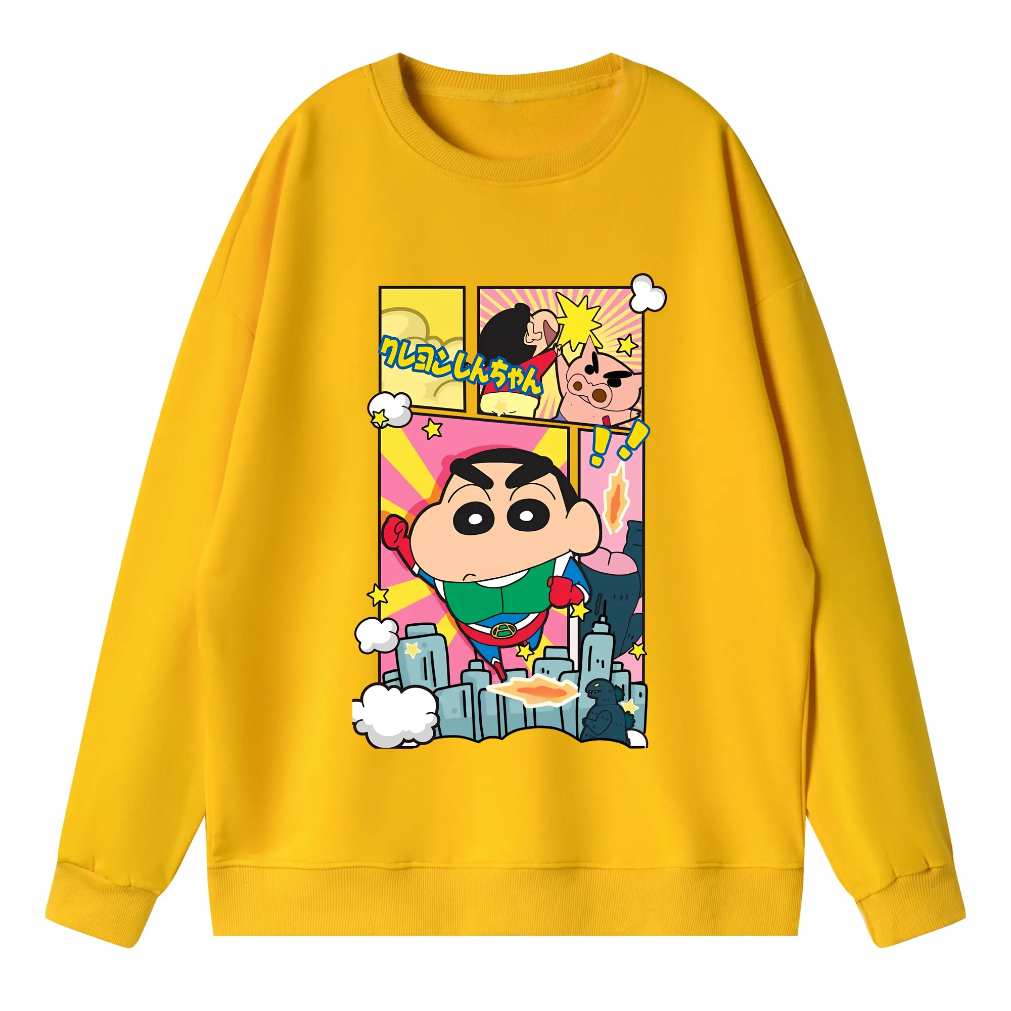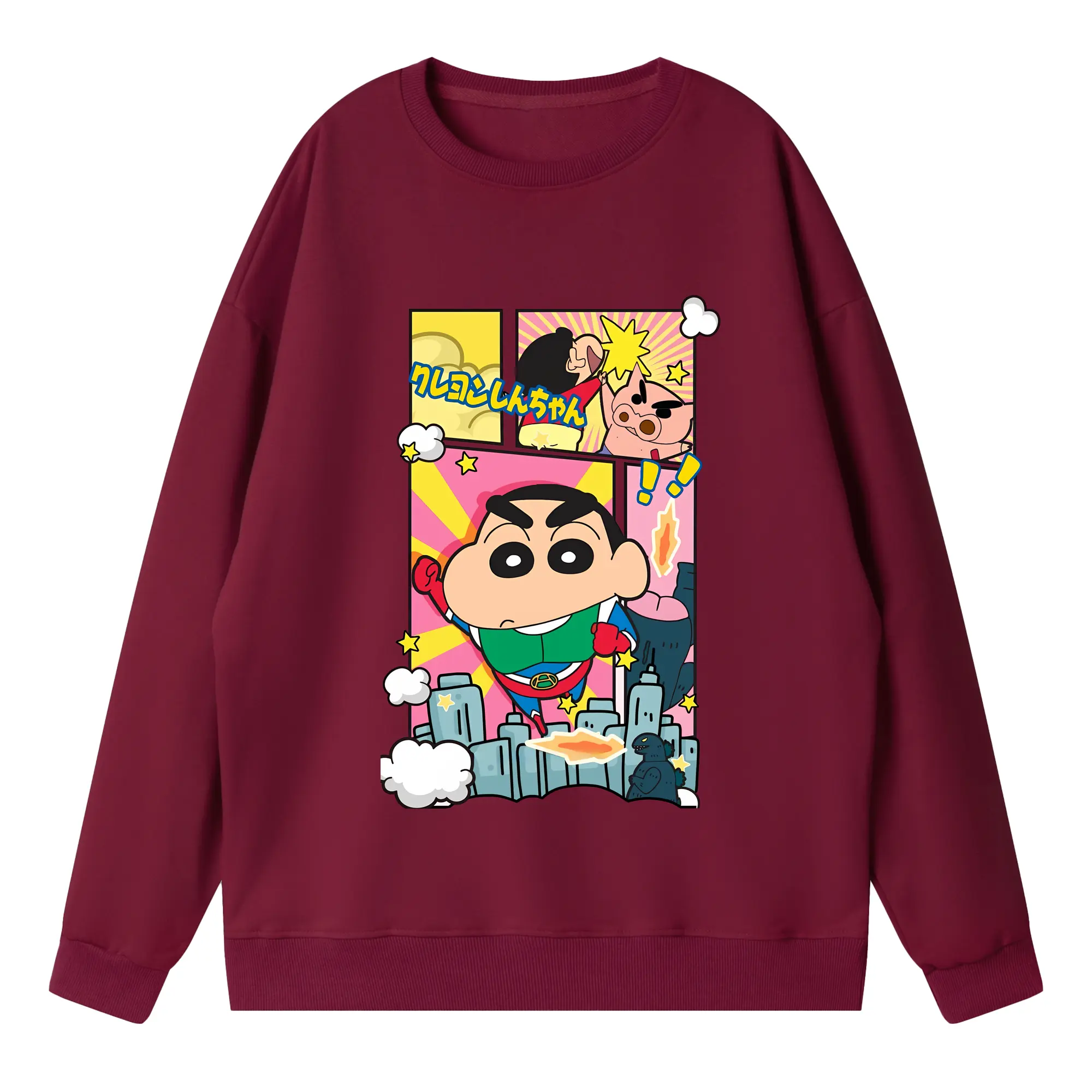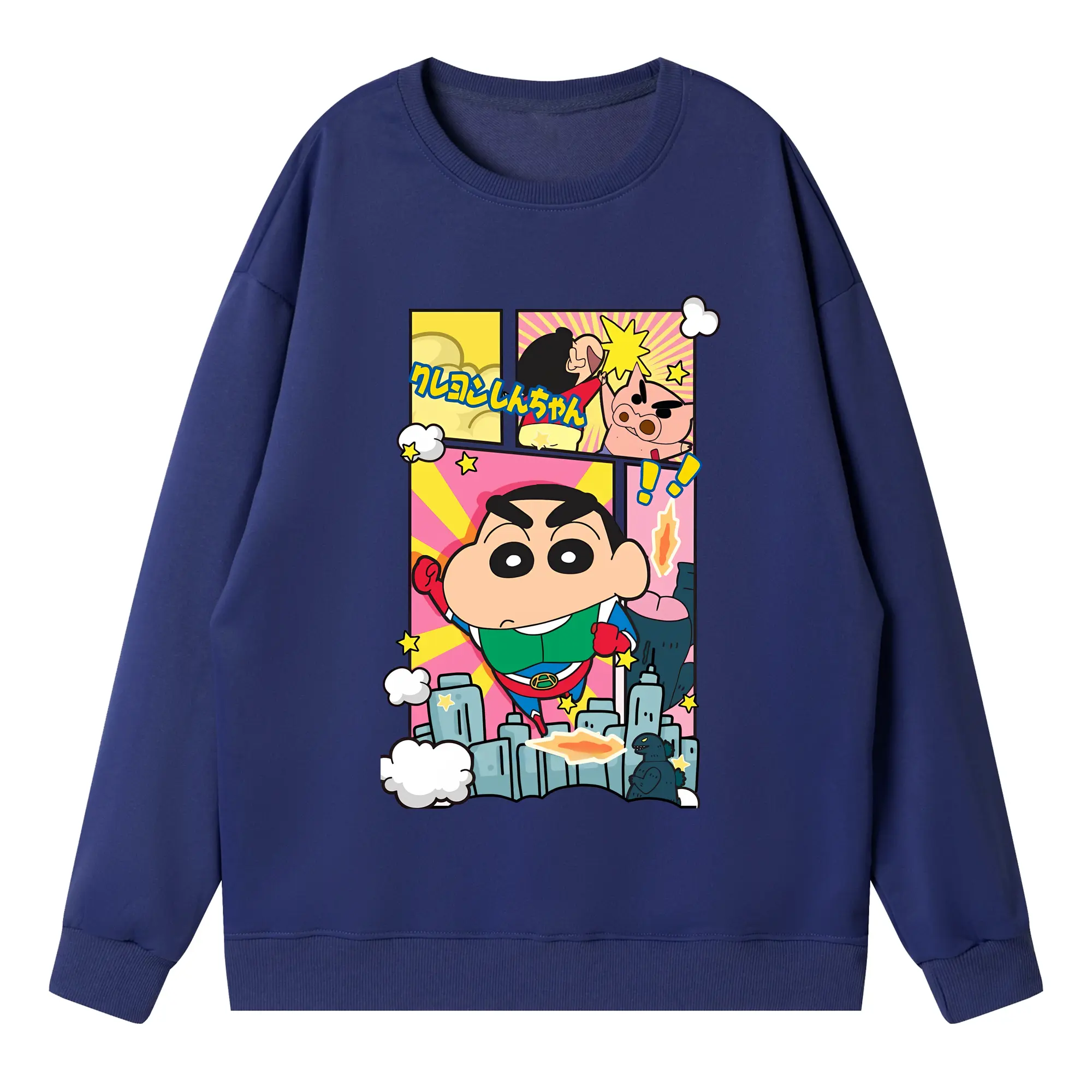 クレヨンしんちゃん グッズ アクション仮面 - 高品質 クルーネック スウェット ・ コットン59% ポリエステル41% ・ ユニセックス 長袖 トレーナー ・ カジュアル デイリー スポーツ 散歩用