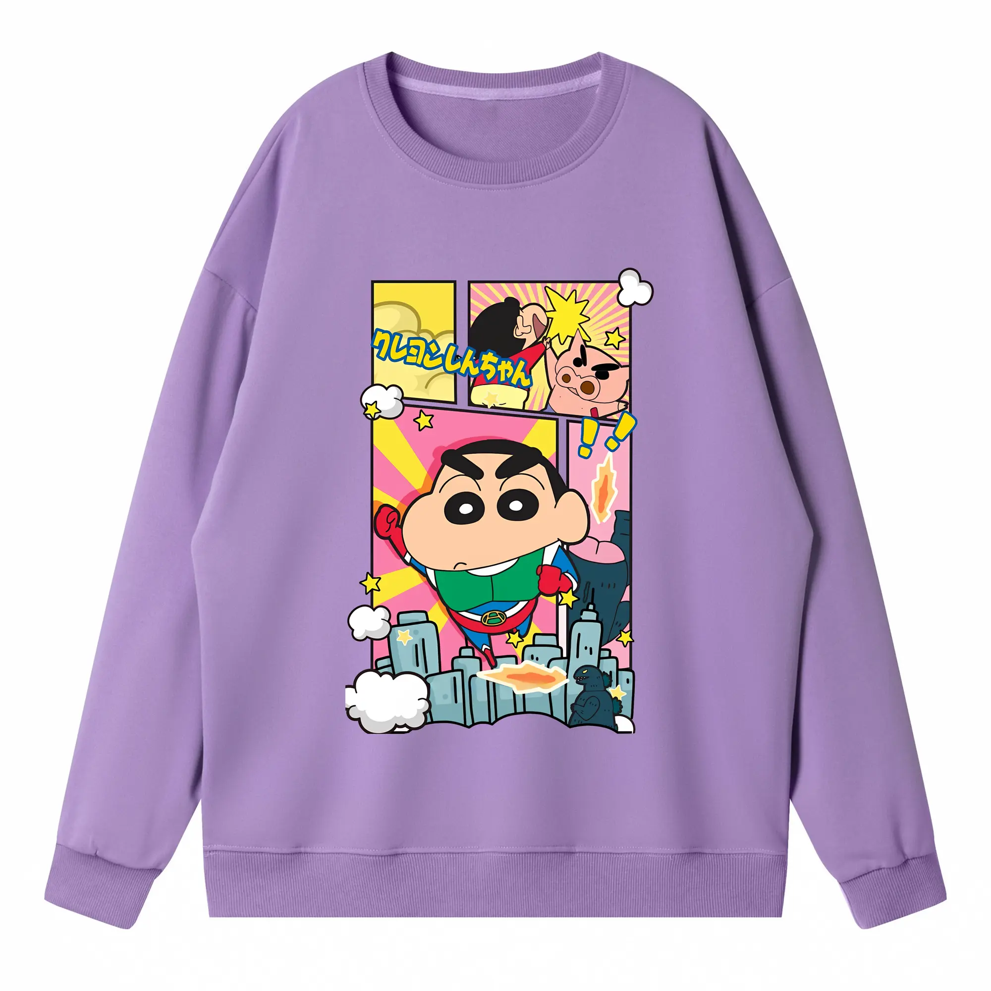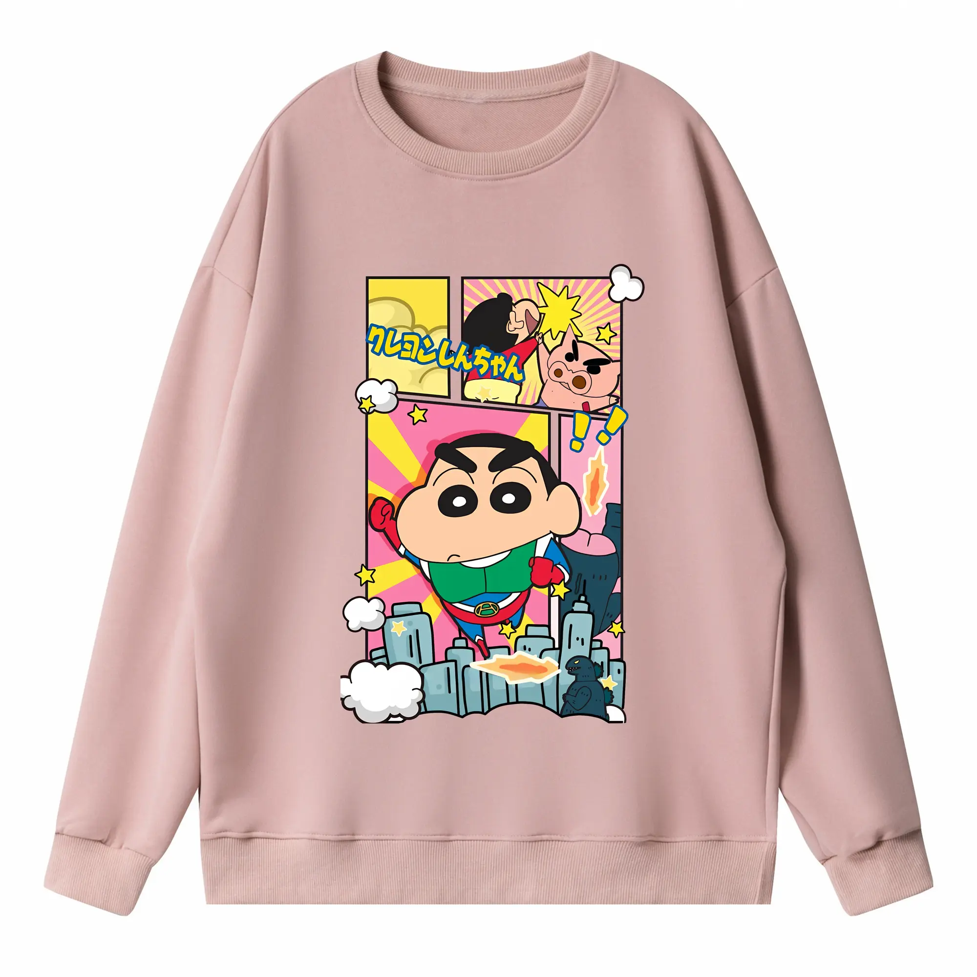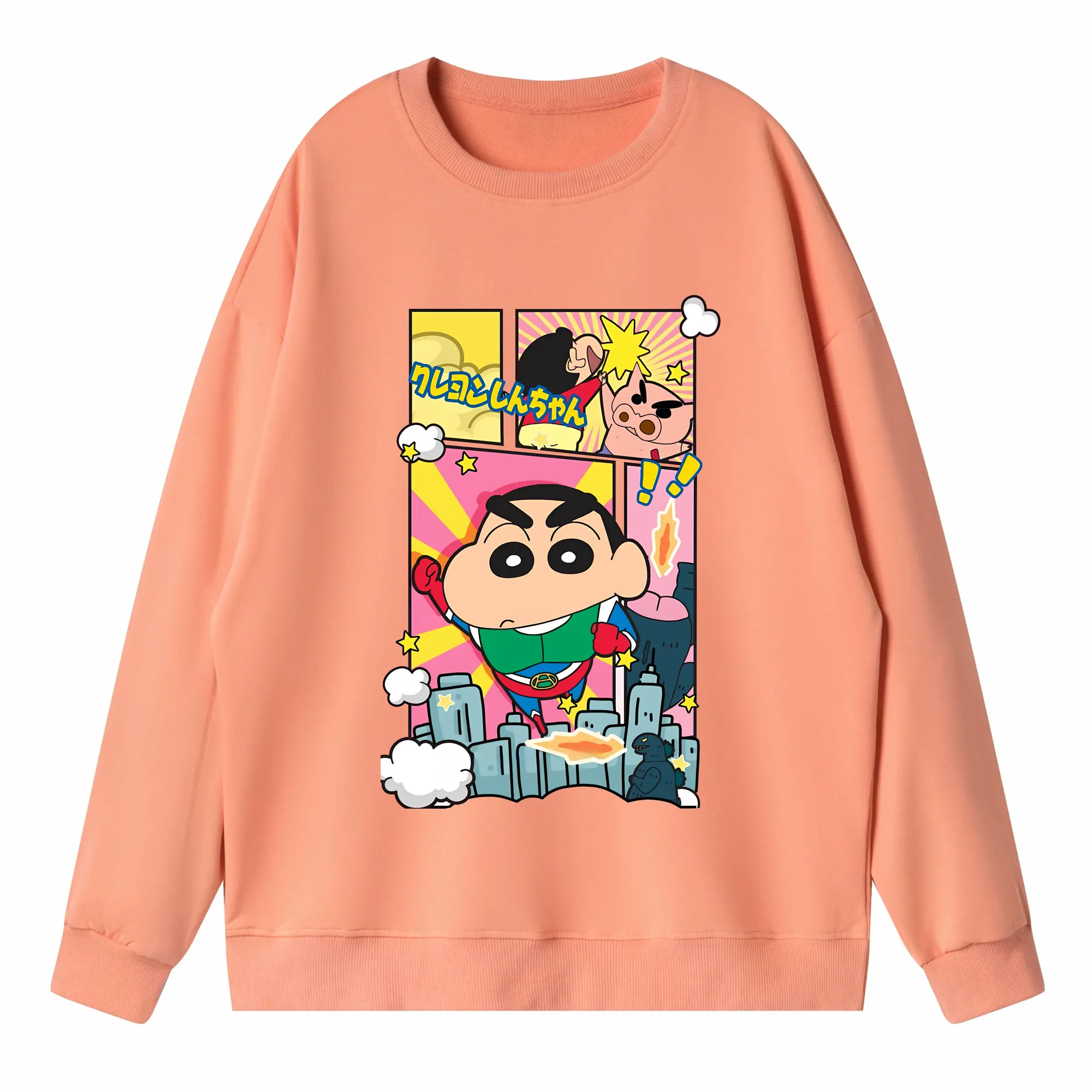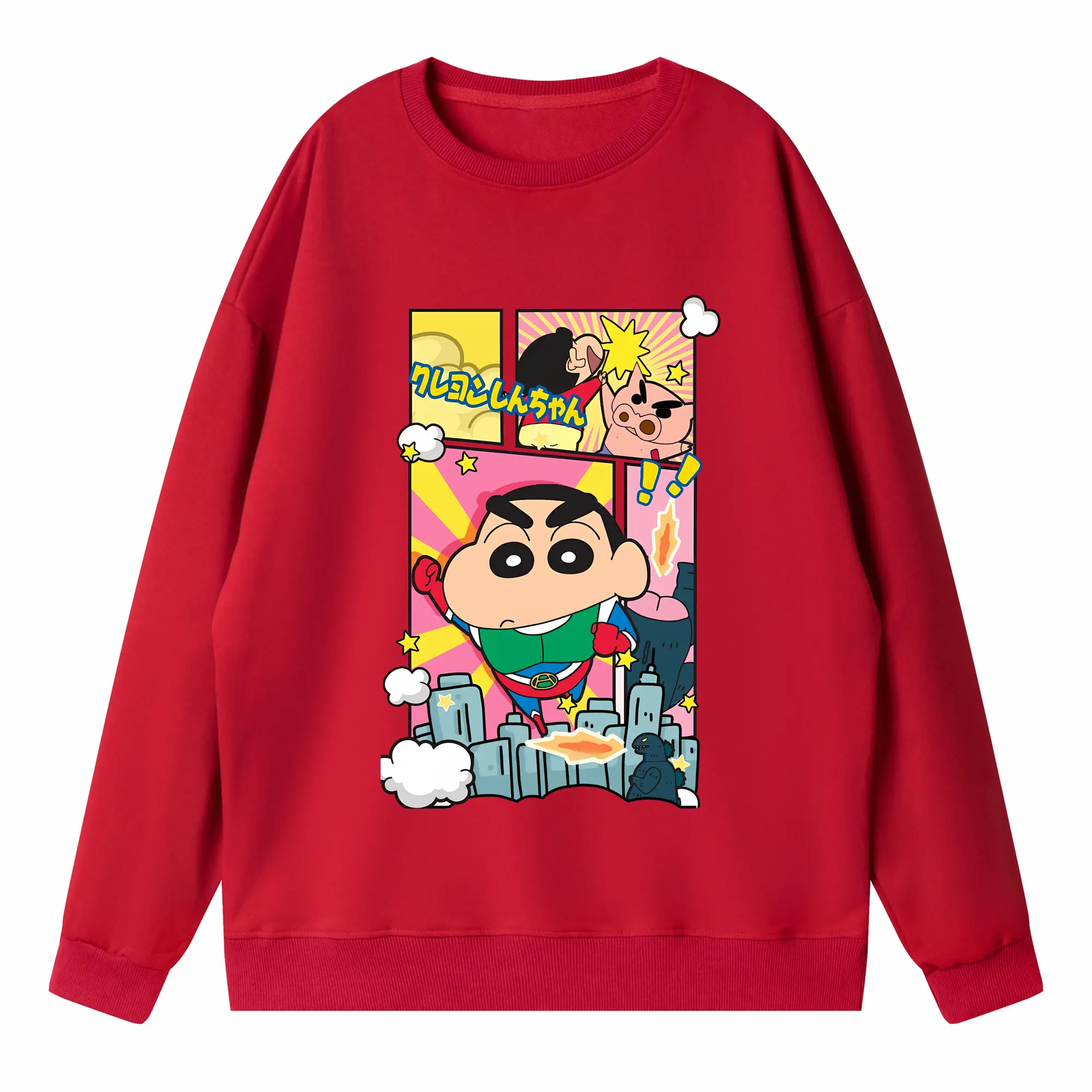 クレヨンしんちゃん グッズ 野原 しんのすけ - 薄手 クルーネック スウェット 裏毛260g · ポリエステル 春秋向け カジュアル 男女兼用 · トレーナー デイリー スポーツ 散歩に最適