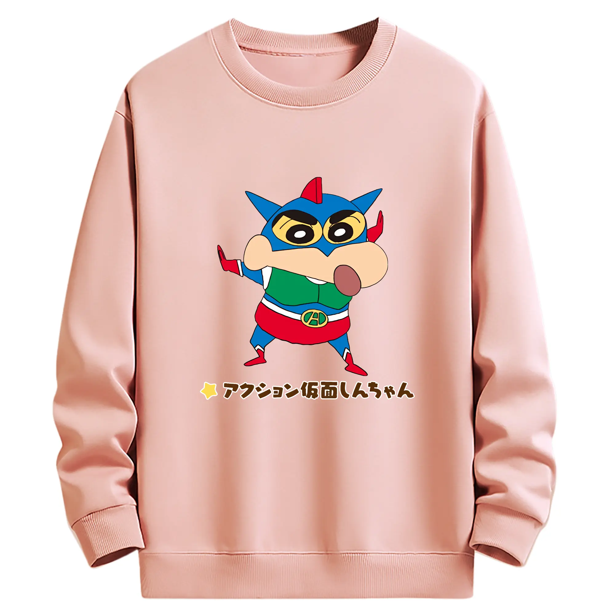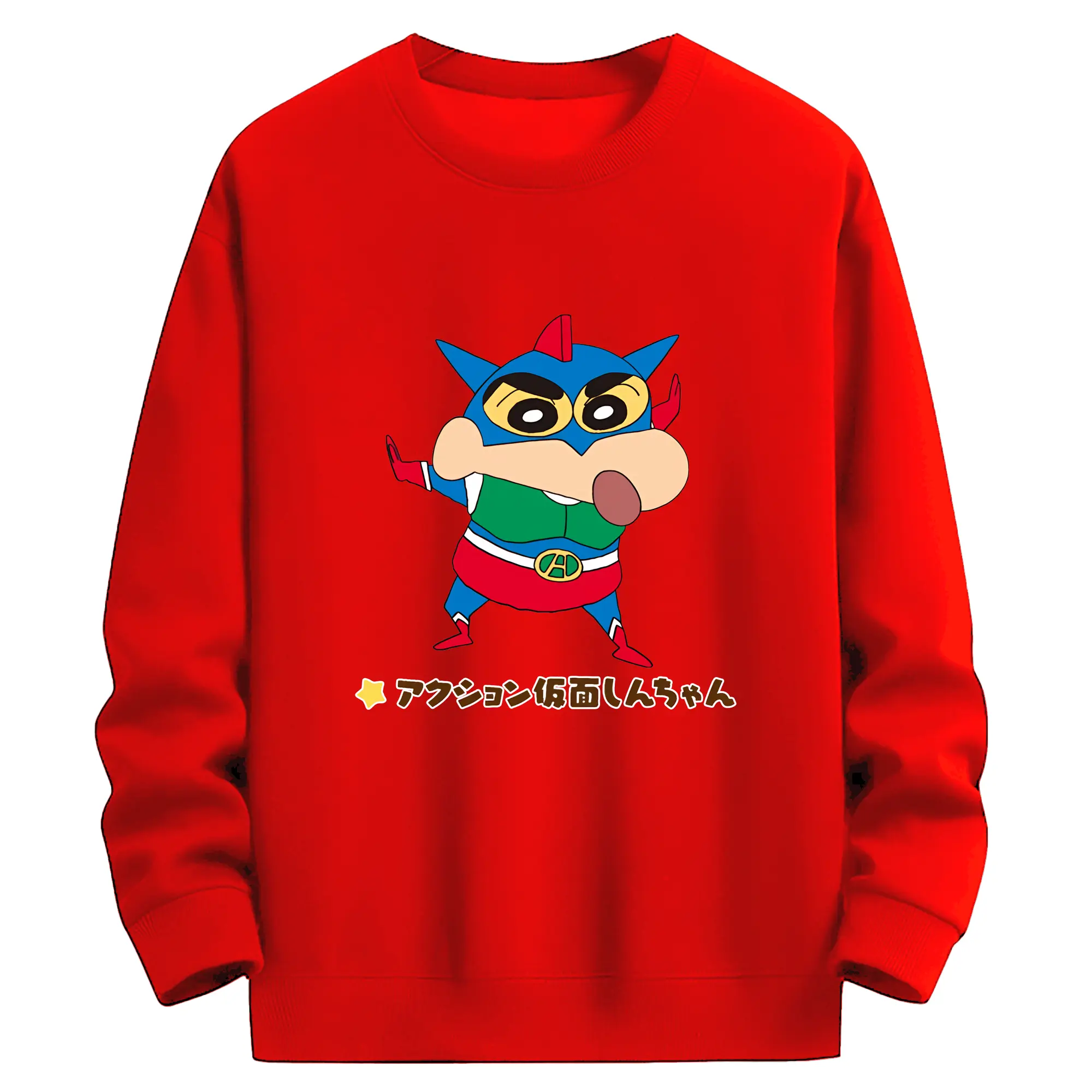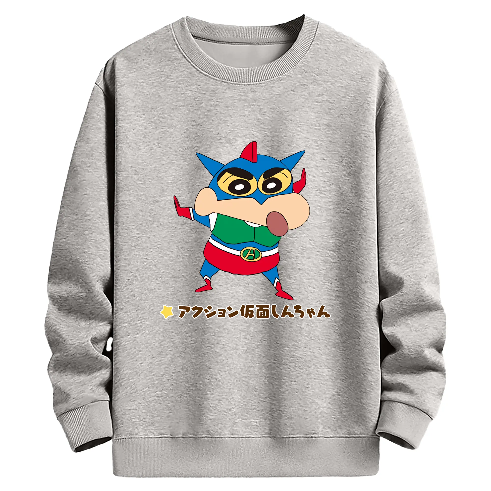 クレヨンしんちゃん グッズ アクション仮面 - 薄手 クルーネック スウェット 裏毛260g · ポリエステル 春秋向け カジュアル 男女兼用 · トレーナー デイリー スポーツ 散歩に最適