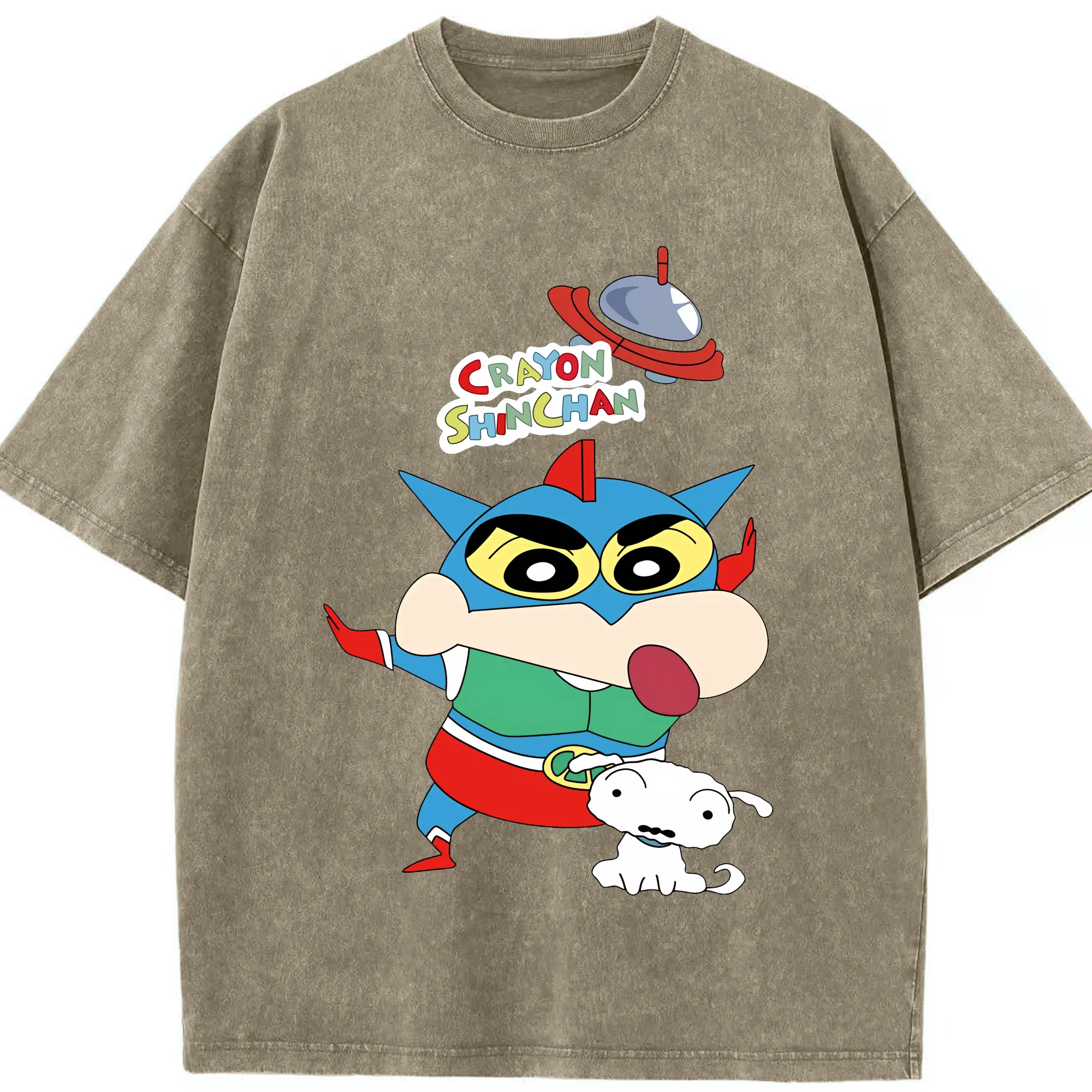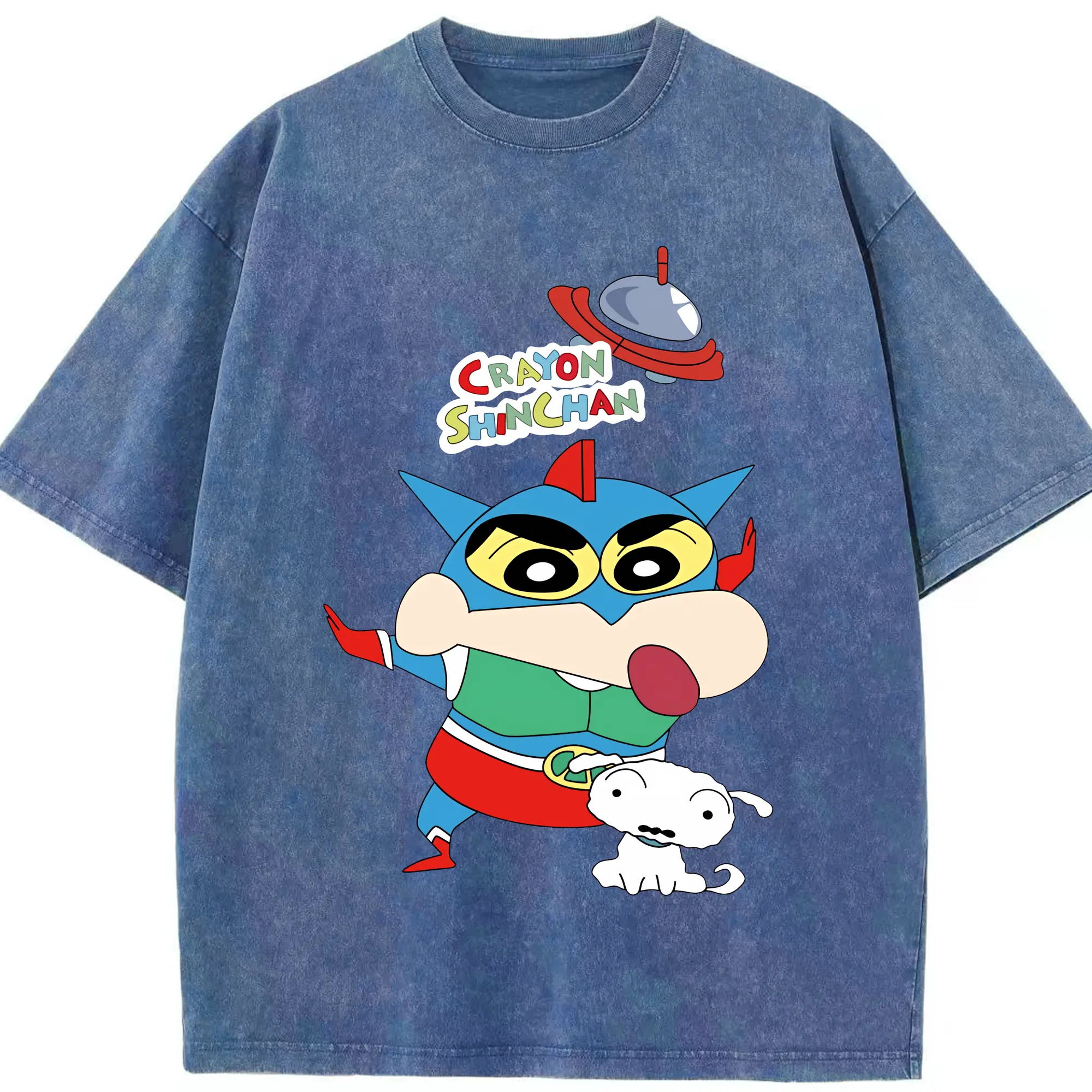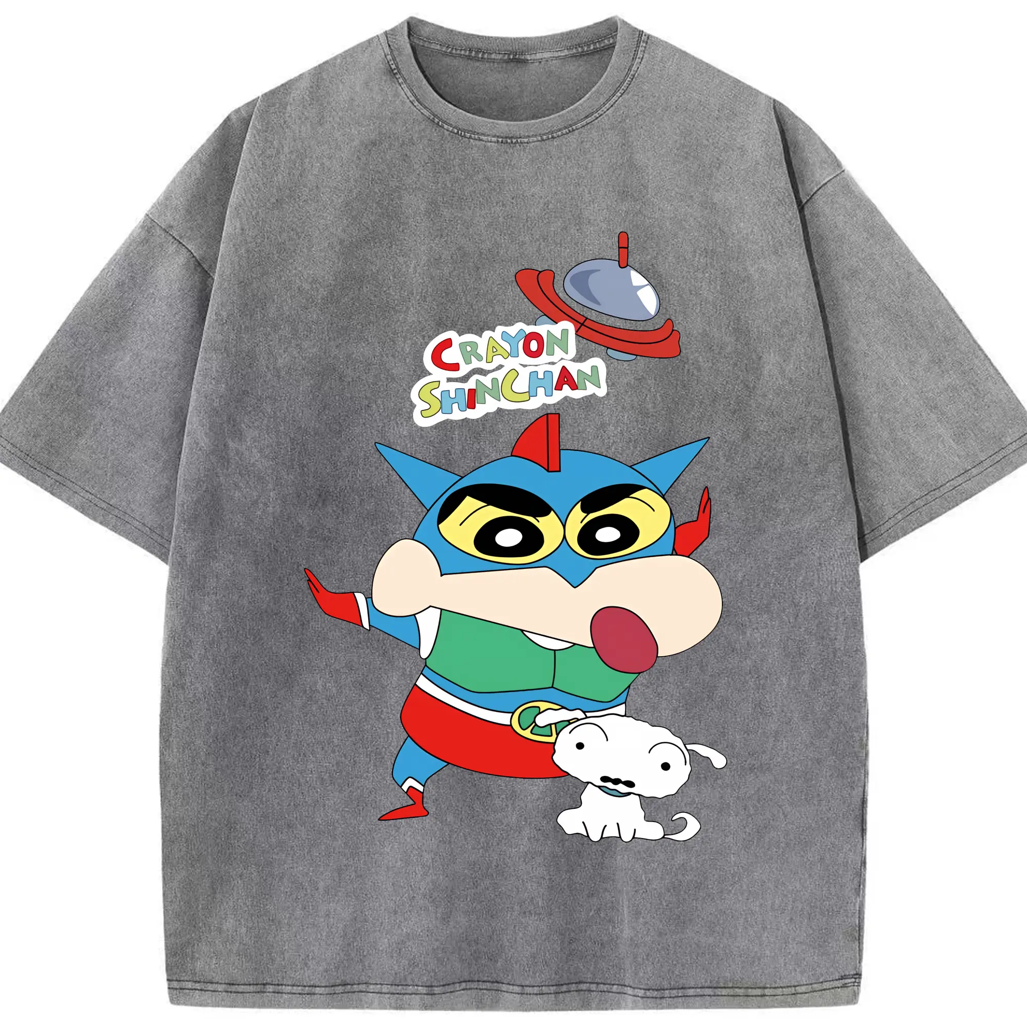 クレヨンしんちゃん グッズ アクション仮面 - 綿100% ヴィンテージ風 半袖Tシャツ ・ 背面プリント ・ 柔らか肌触り ・ 通気性 快適 ・ スポーツ カジュアル 外出用