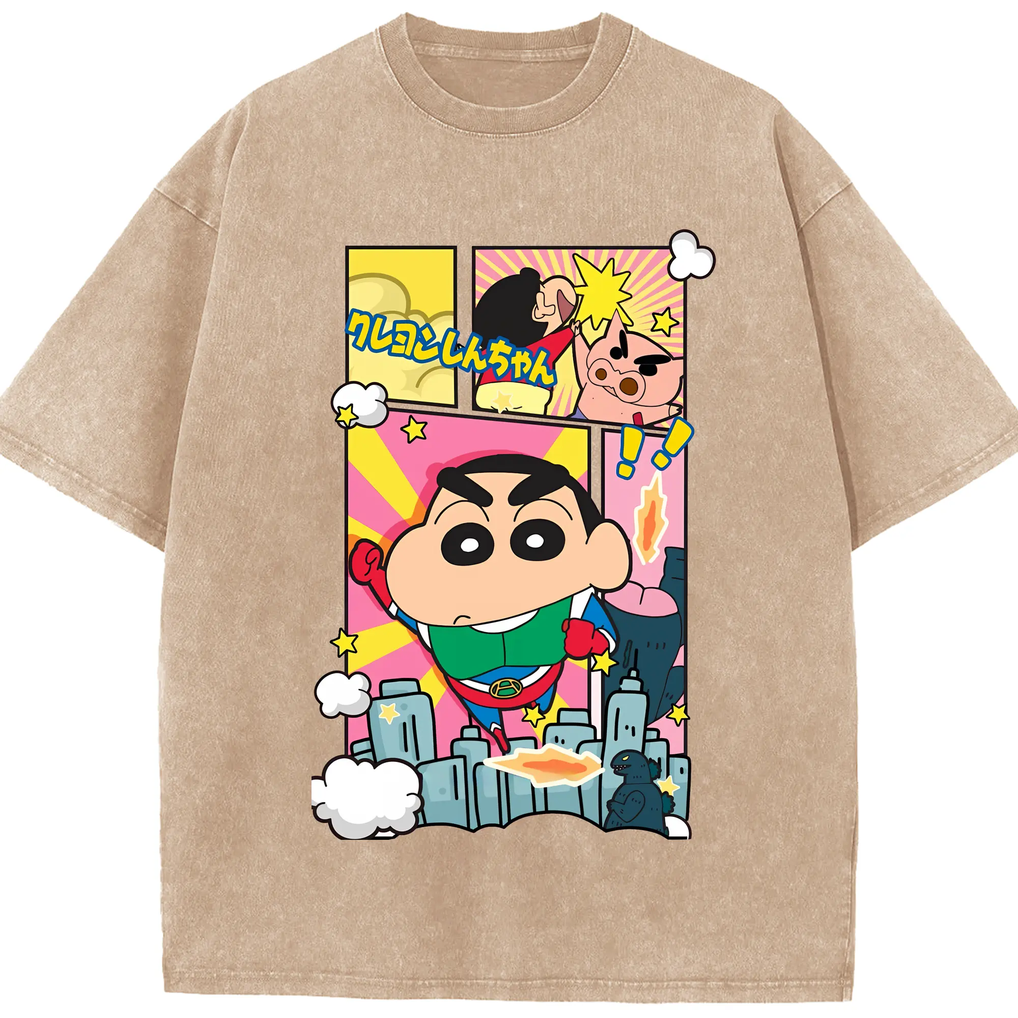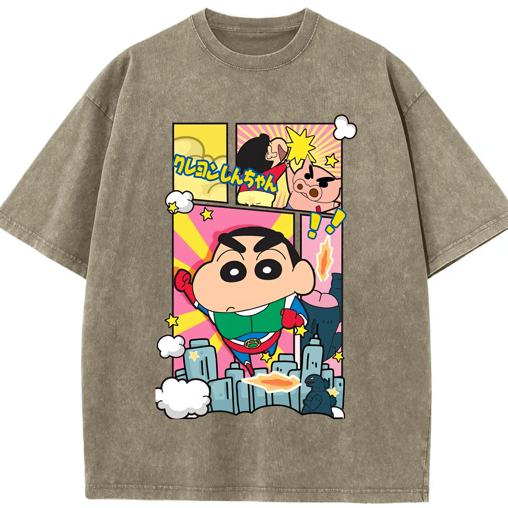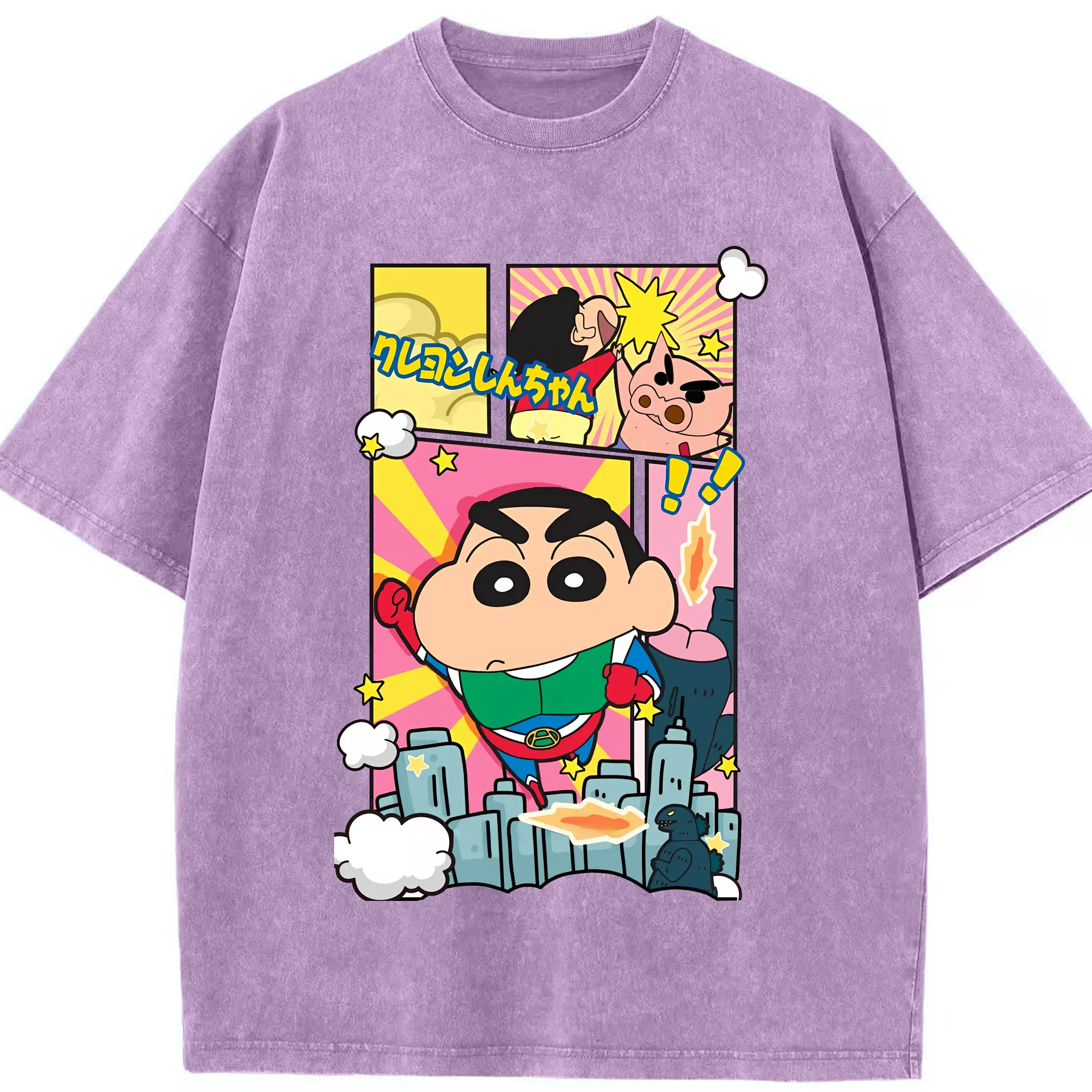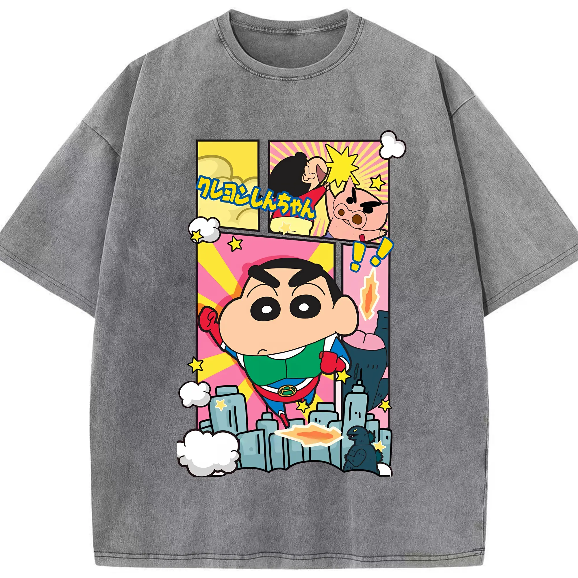 クレヨンしんちゃん グッズ アクション仮面 - 綿100% ヴィンテージ風 半袖Tシャツ ・ 背面プリント ・ 柔らか肌触り ・ 通気性 快適 ・ スポーツ カジュアル 外出用