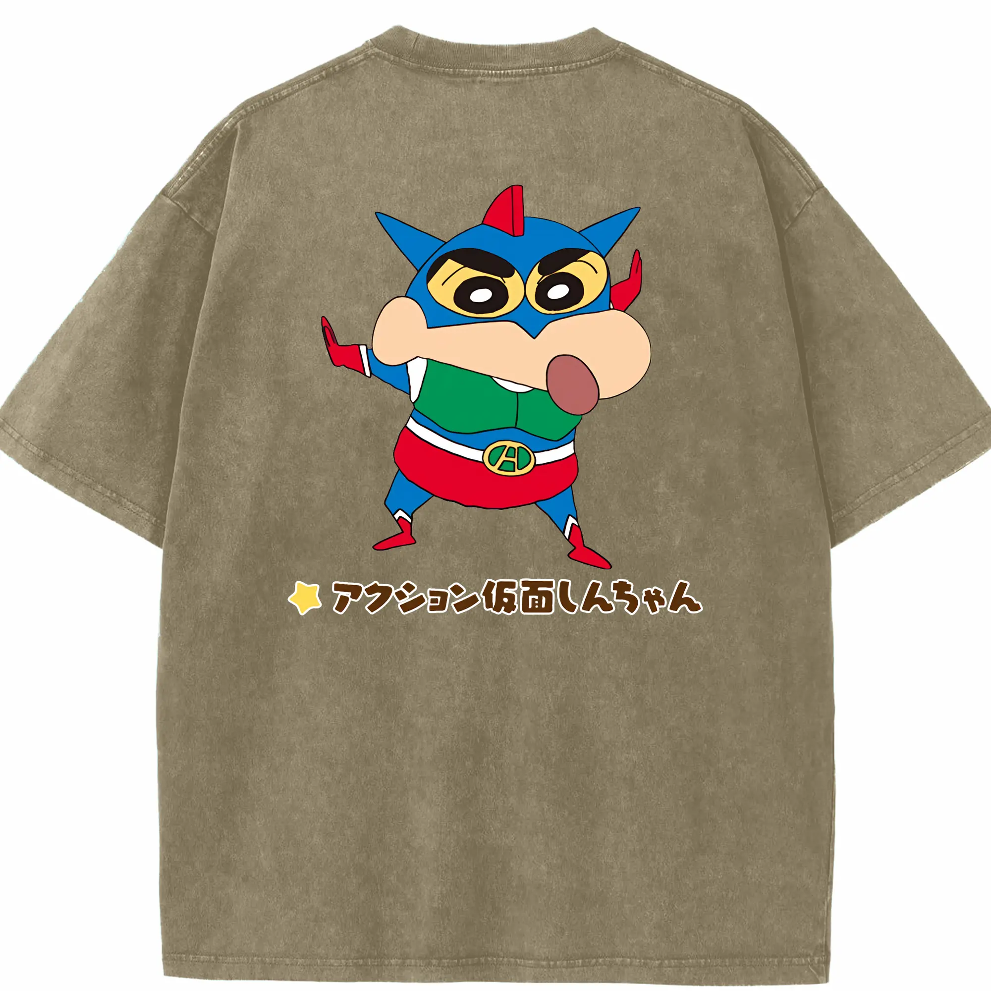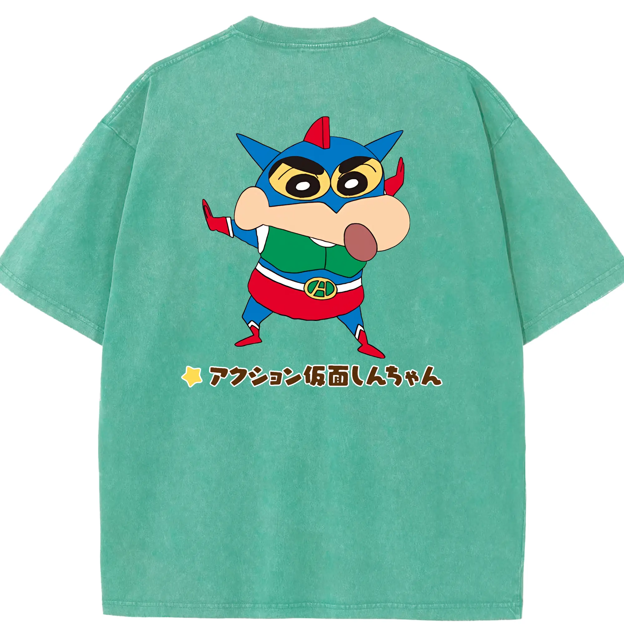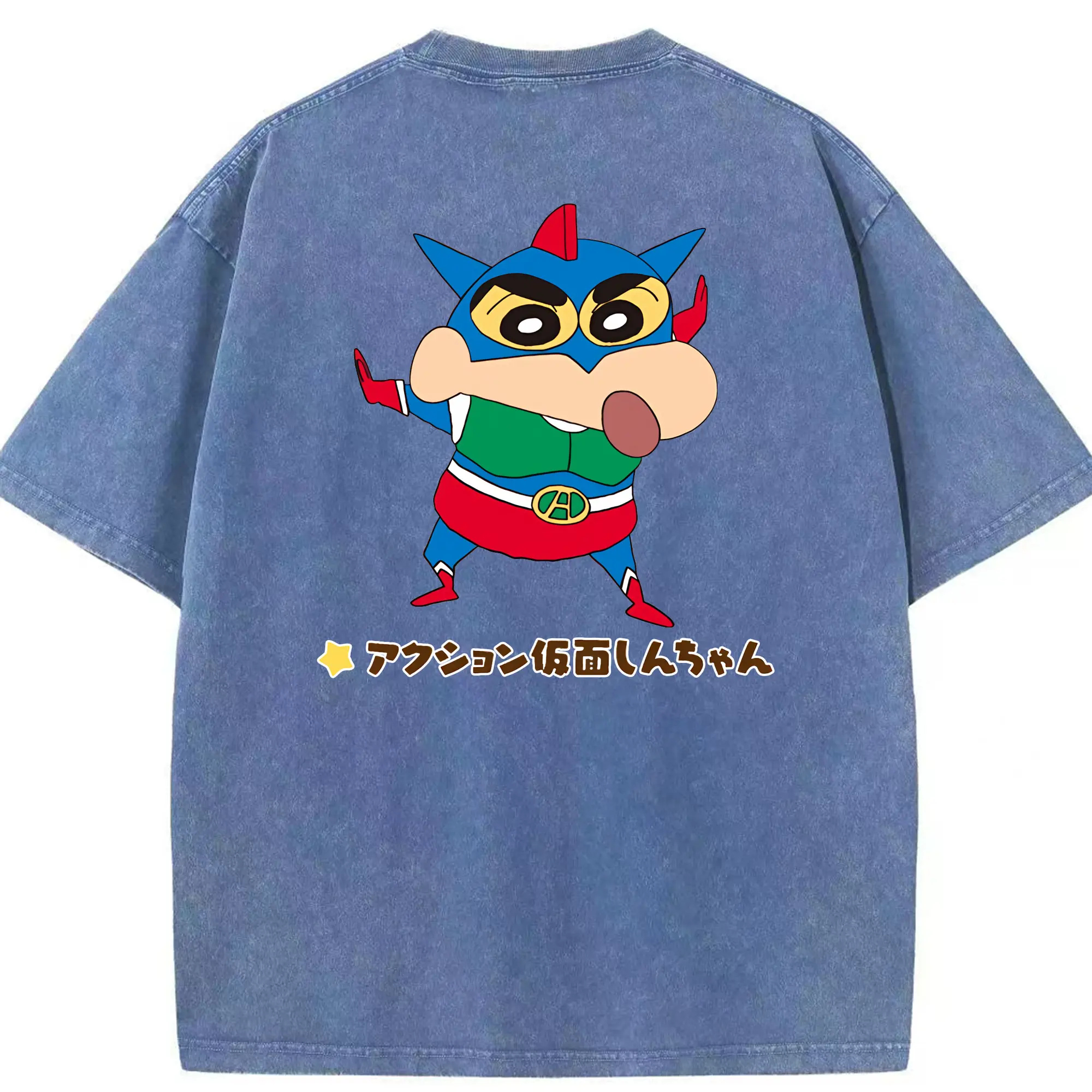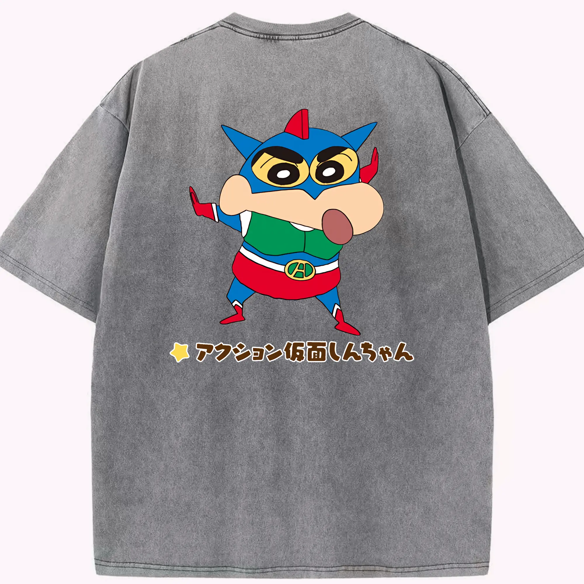 クレヨンしんちゃん グッズ アクション仮面 - 綿100% ヴィンテージ風 半袖Tシャツ ・ フロントプリント ・ 柔らか肌触り ・ 通気性 快適 ・ スポーツ カジュアル 外出用