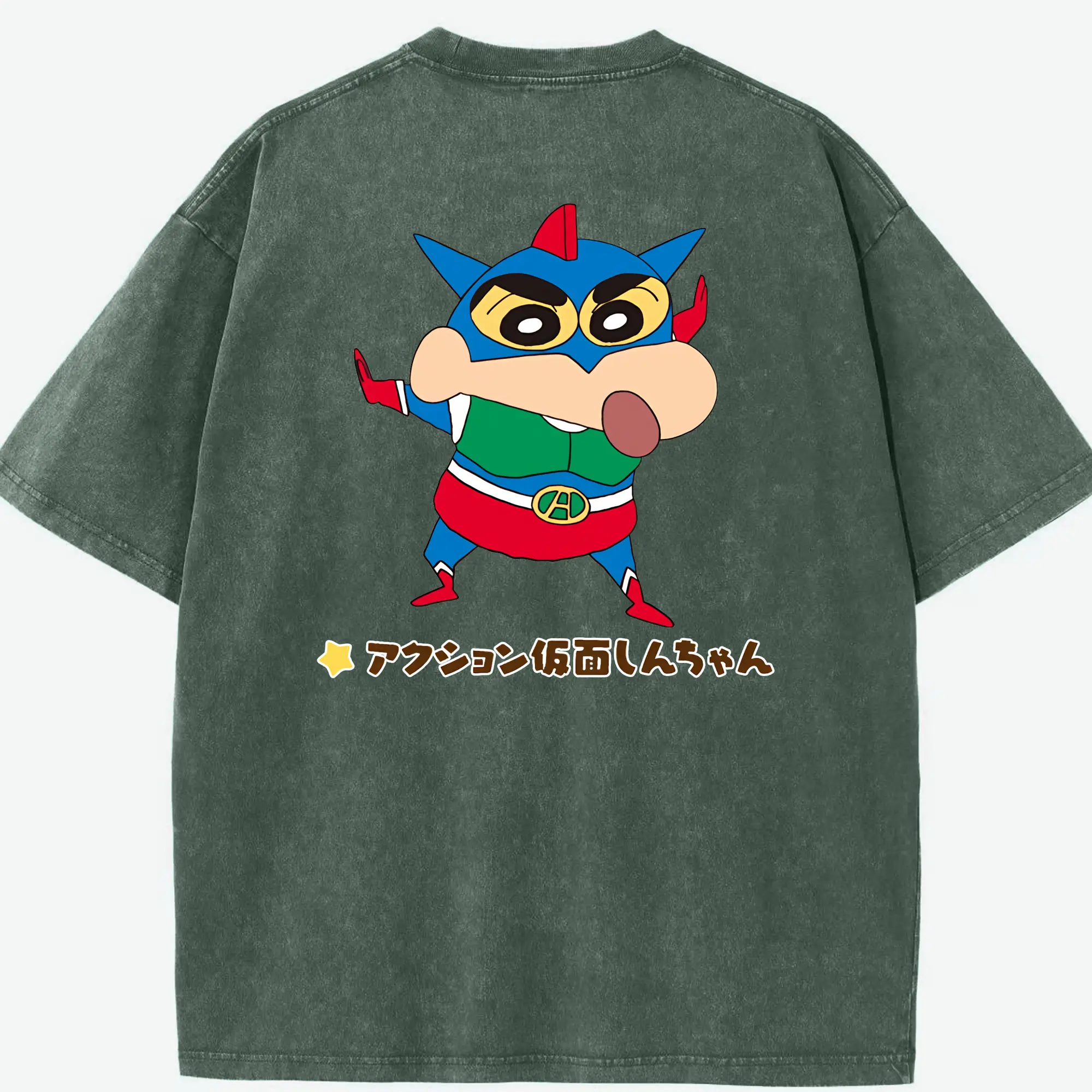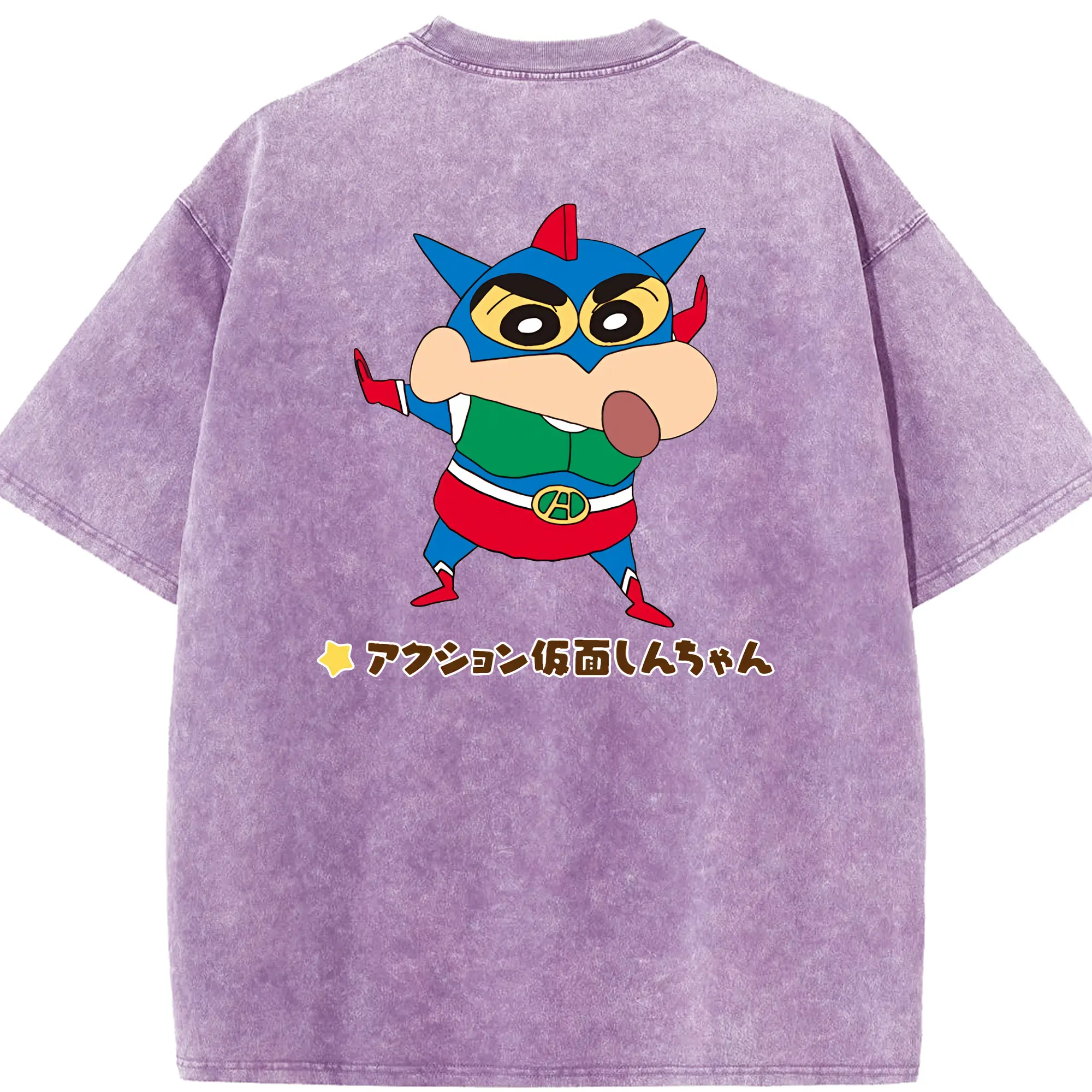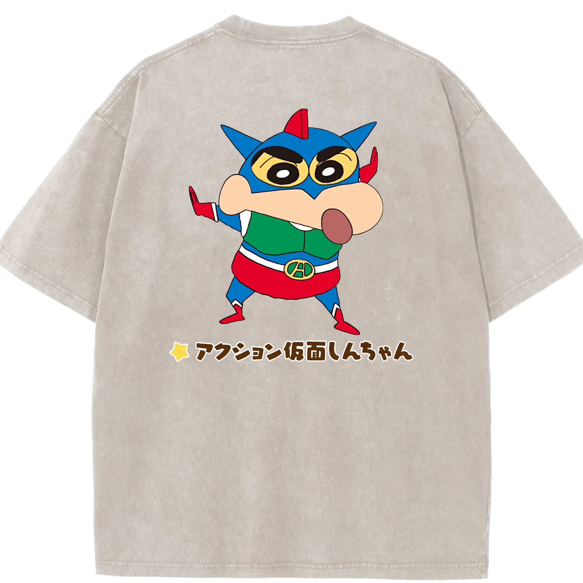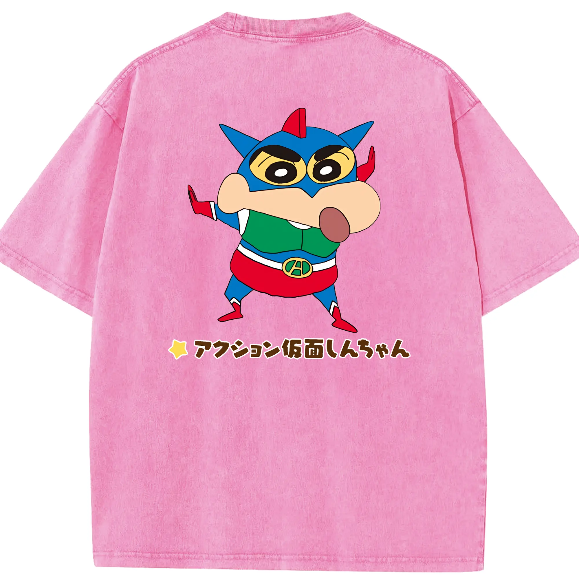 クレヨンしんちゃん グッズ アクション仮面 - 綿100% ヴィンテージ風 半袖Tシャツ ・ フロントプリント ・ 柔らか肌触り ・ 通気性 快適 ・ スポーツ カジュアル 外出用