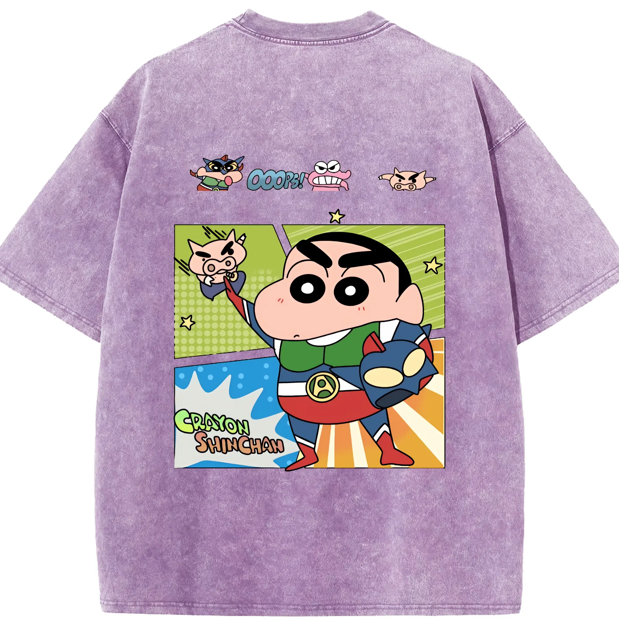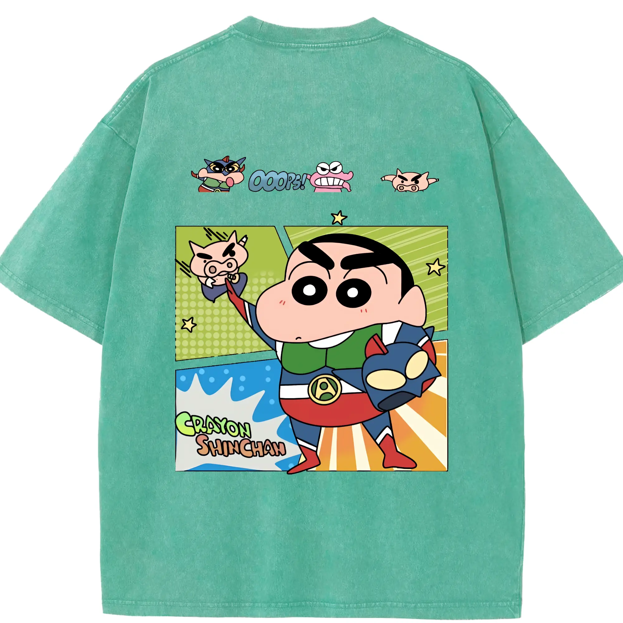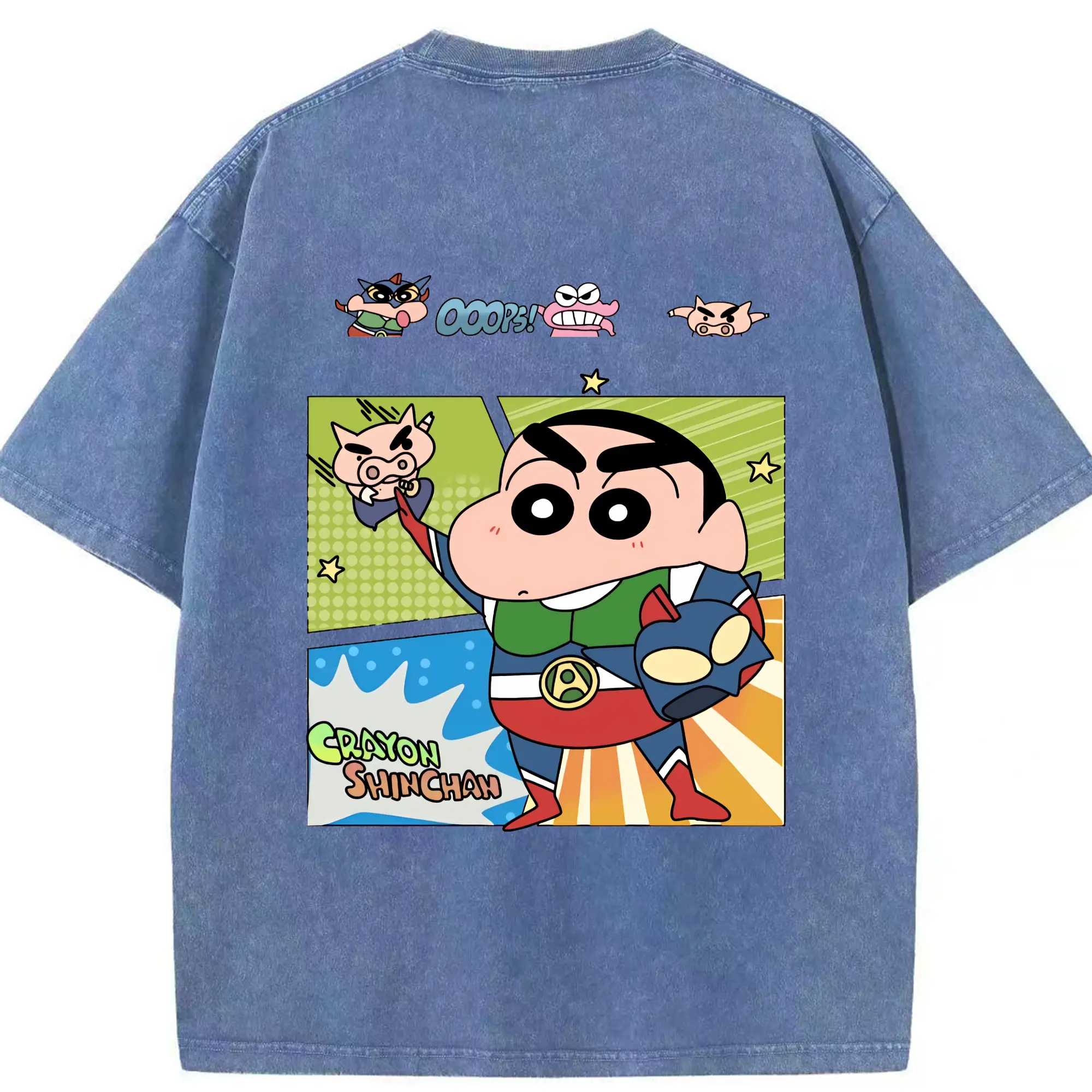 クレヨンしんちゃん グッズ アクション仮面 - 綿100% ヴィンテージ風 半袖Tシャツ ・ フロントプリント ・ 柔らか肌触り ・ 通気性 快適 ・ スポーツ カジュアル 外出用