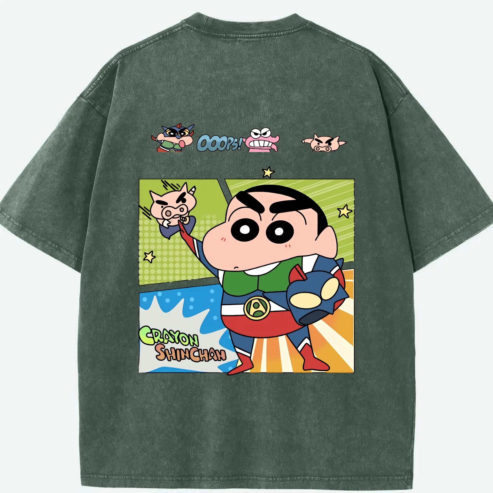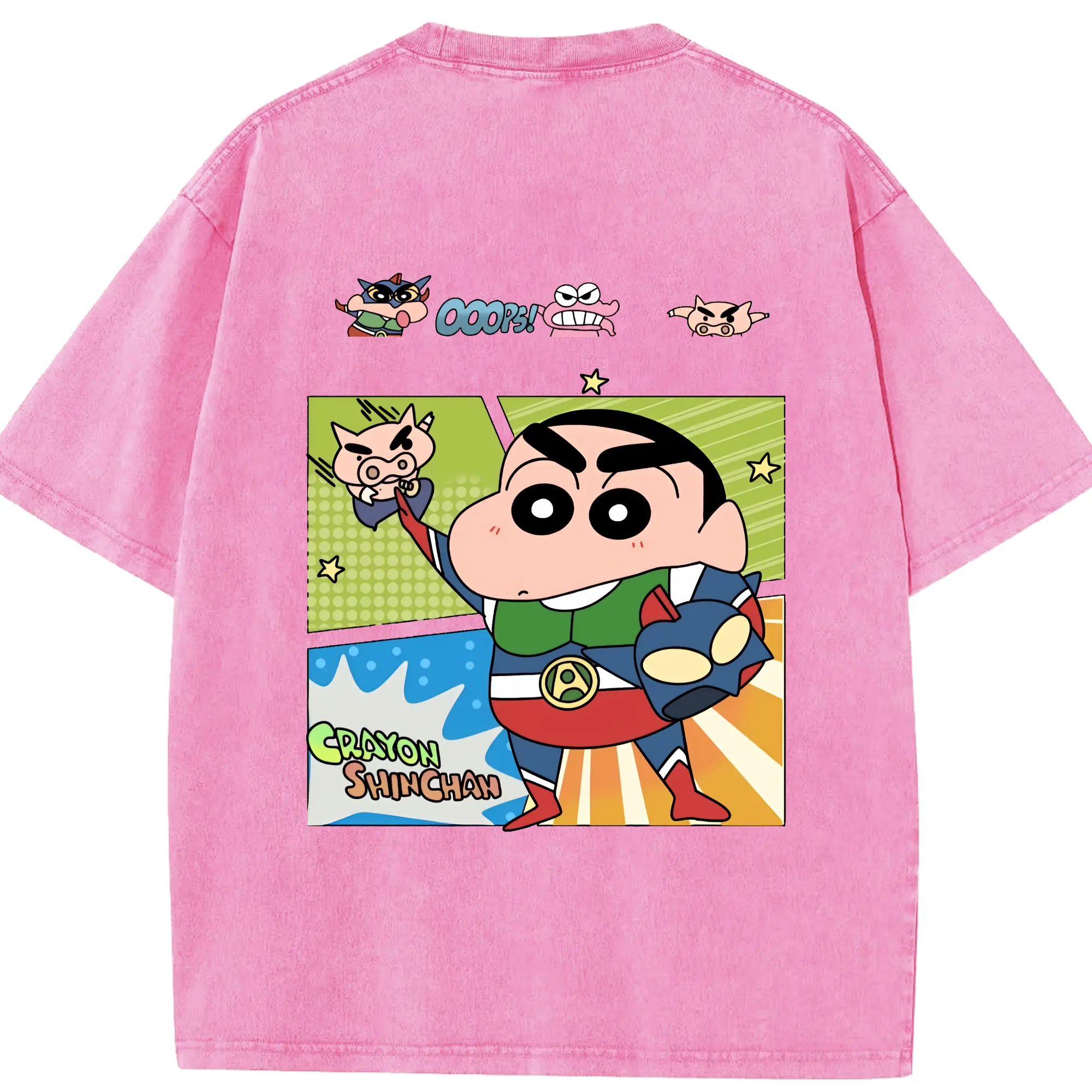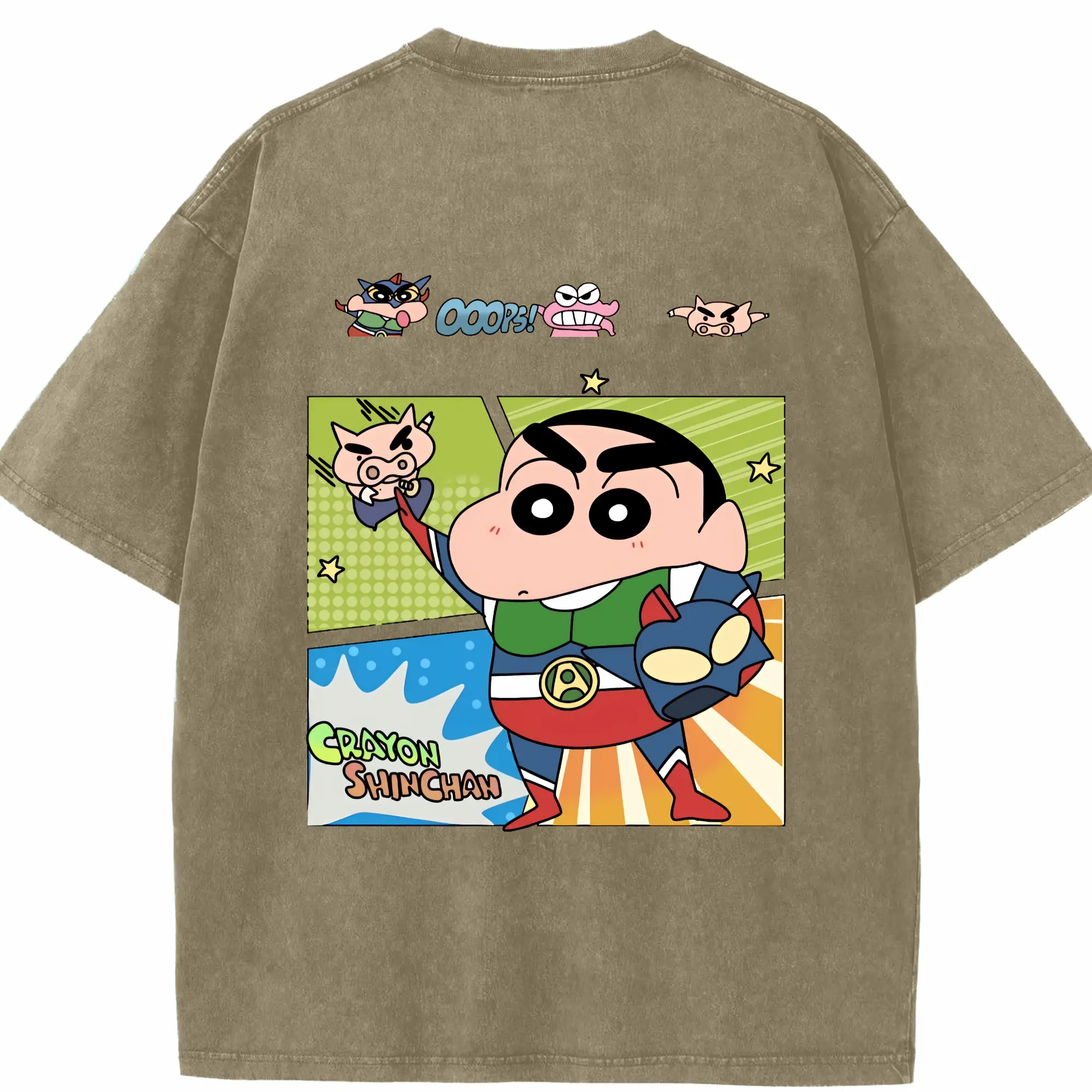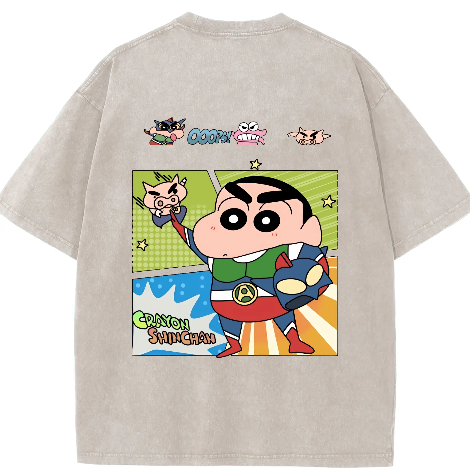 クレヨンしんちゃん グッズ アクション仮面 - 綿100% ヴィンテージ風 半袖Tシャツ ・ フロントプリント ・ 柔らか肌触り ・ 通気性 快適 ・ スポーツ カジュアル 外出用