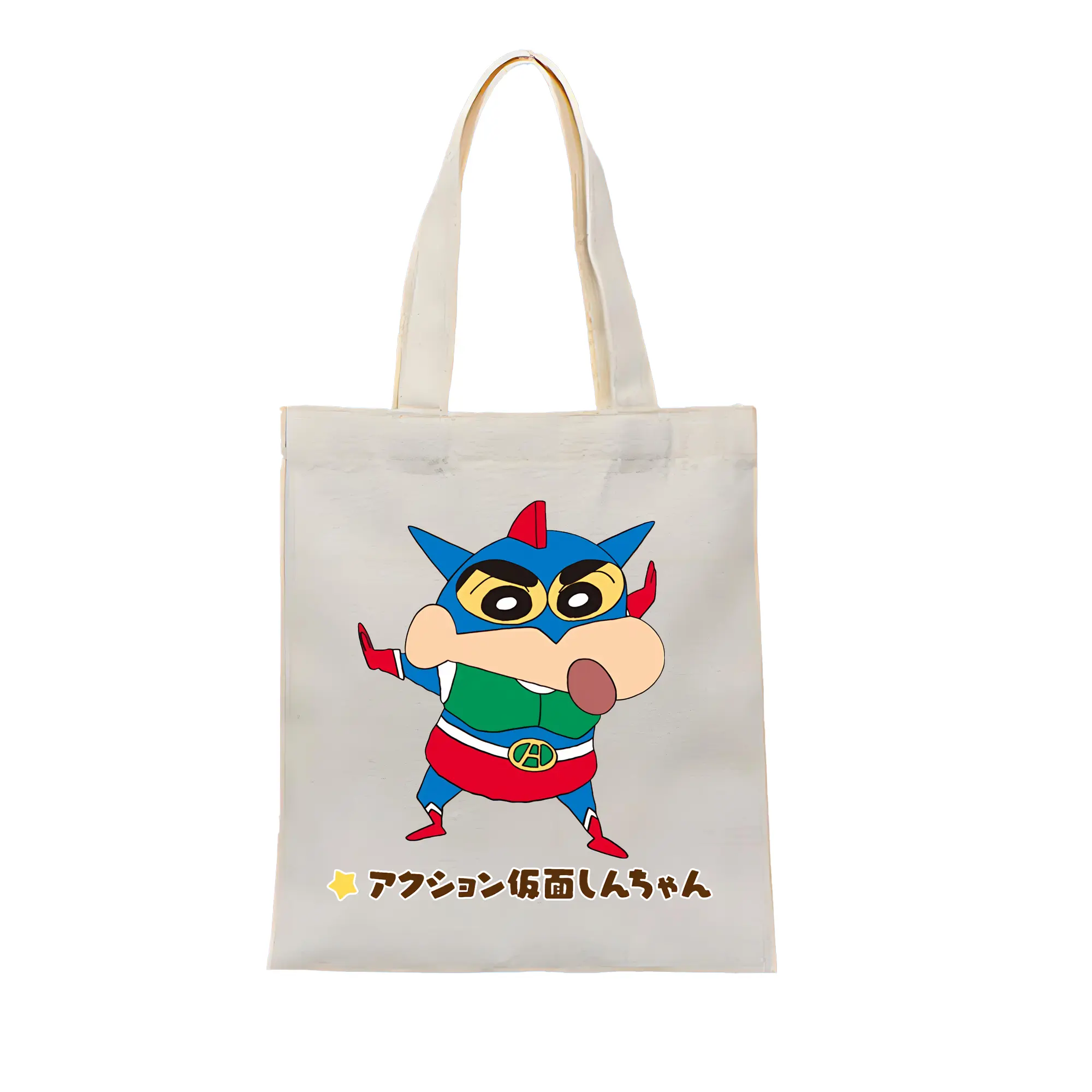 クレヨンしんちゃん グッズ アクション仮面 - 縦型キャンバス手提げバッグ(トートバッグ) ・ キャンバス素材 ・ ショッピング用 ・ 軽量 丈夫 お手入れ簡単