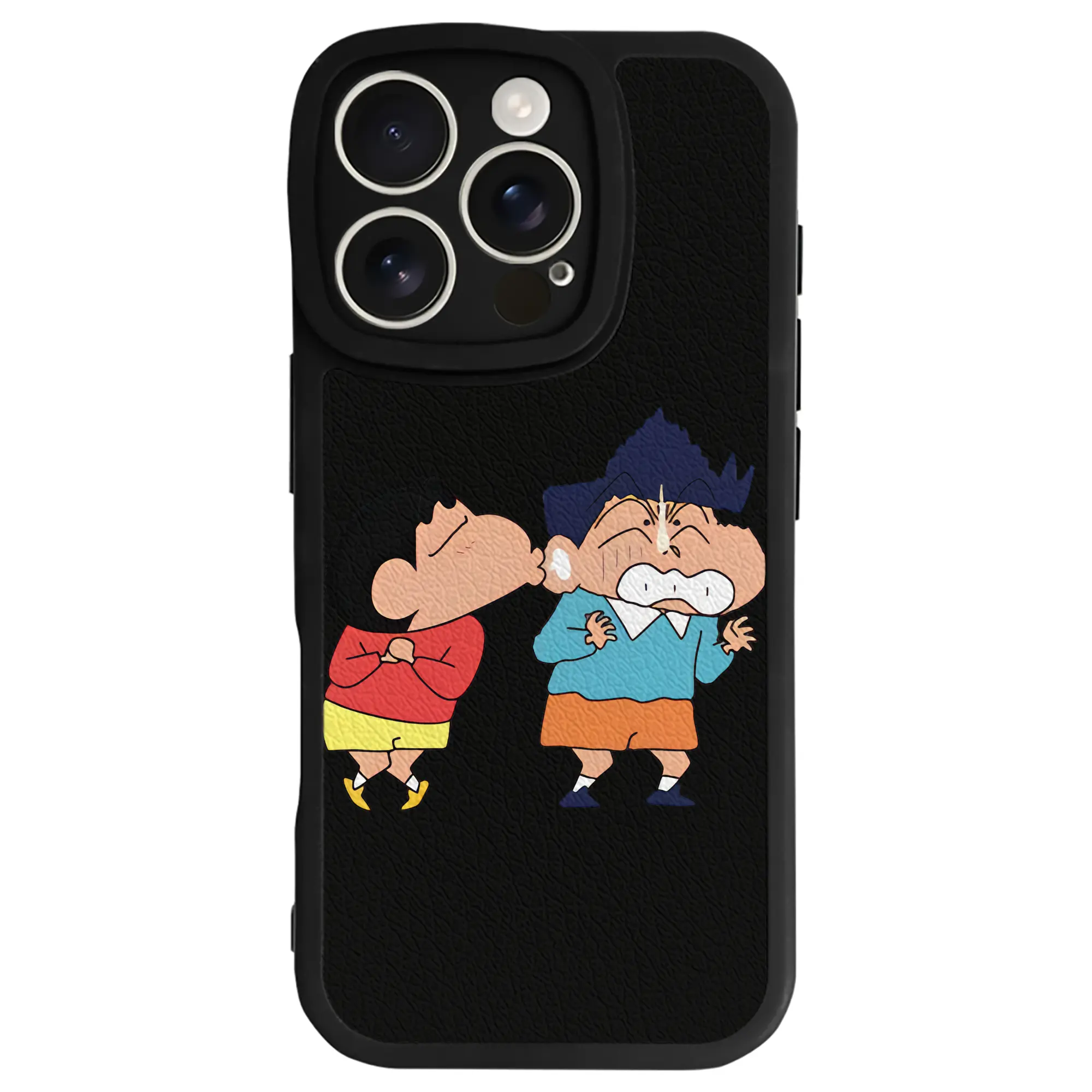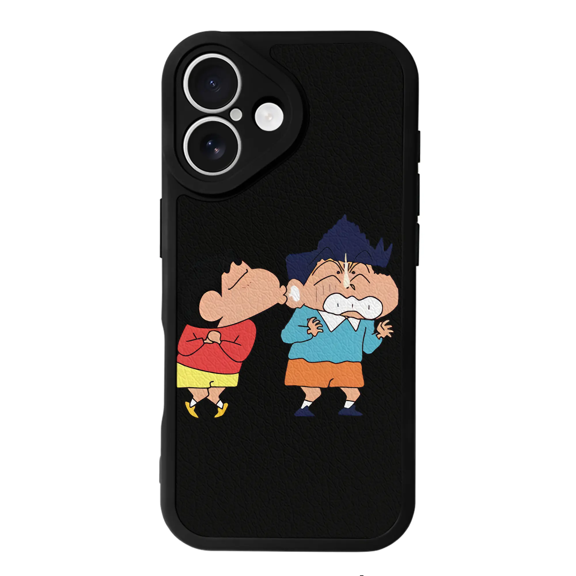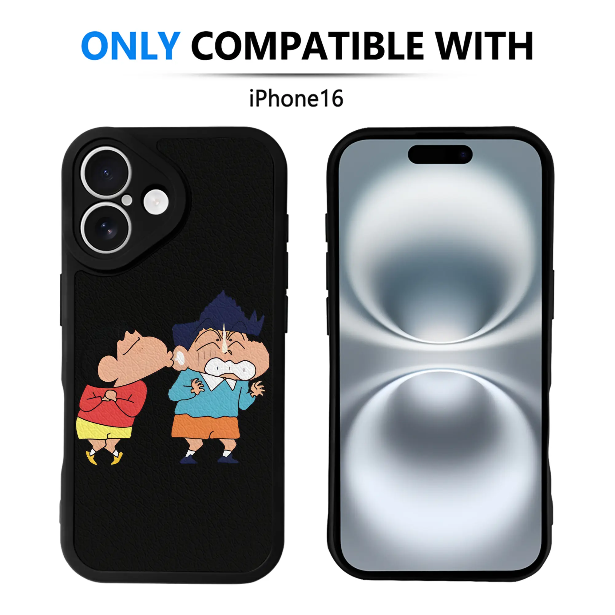 クレヨンしんちゃん グッズ 風間 とおる - IPhone 16シリーズ対応 ・ シリコンスマホケース ・ レザー調 ・ 高精度フィット ・ 耐衝撃 ・ ワイヤレス充電対応 ・ 精密カット