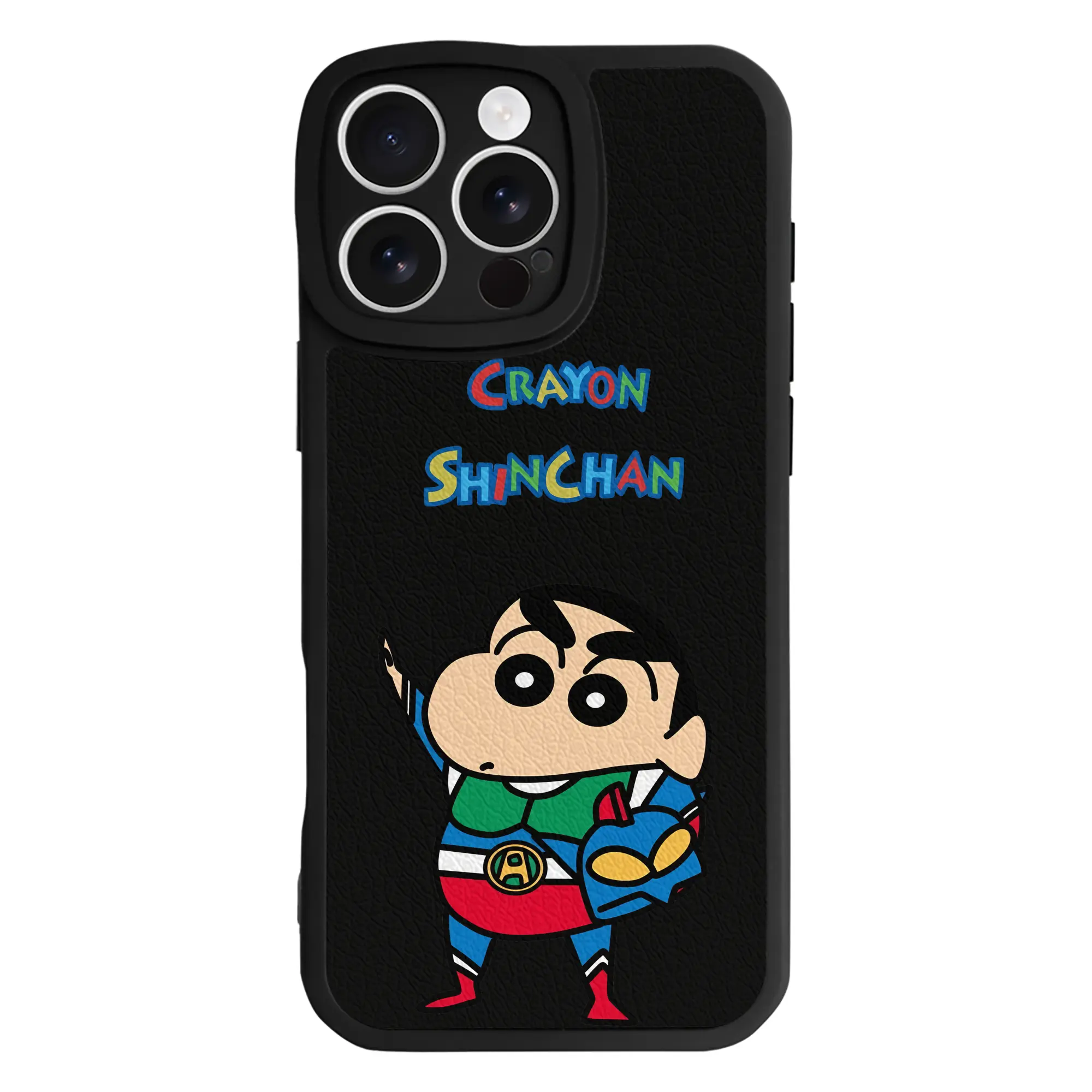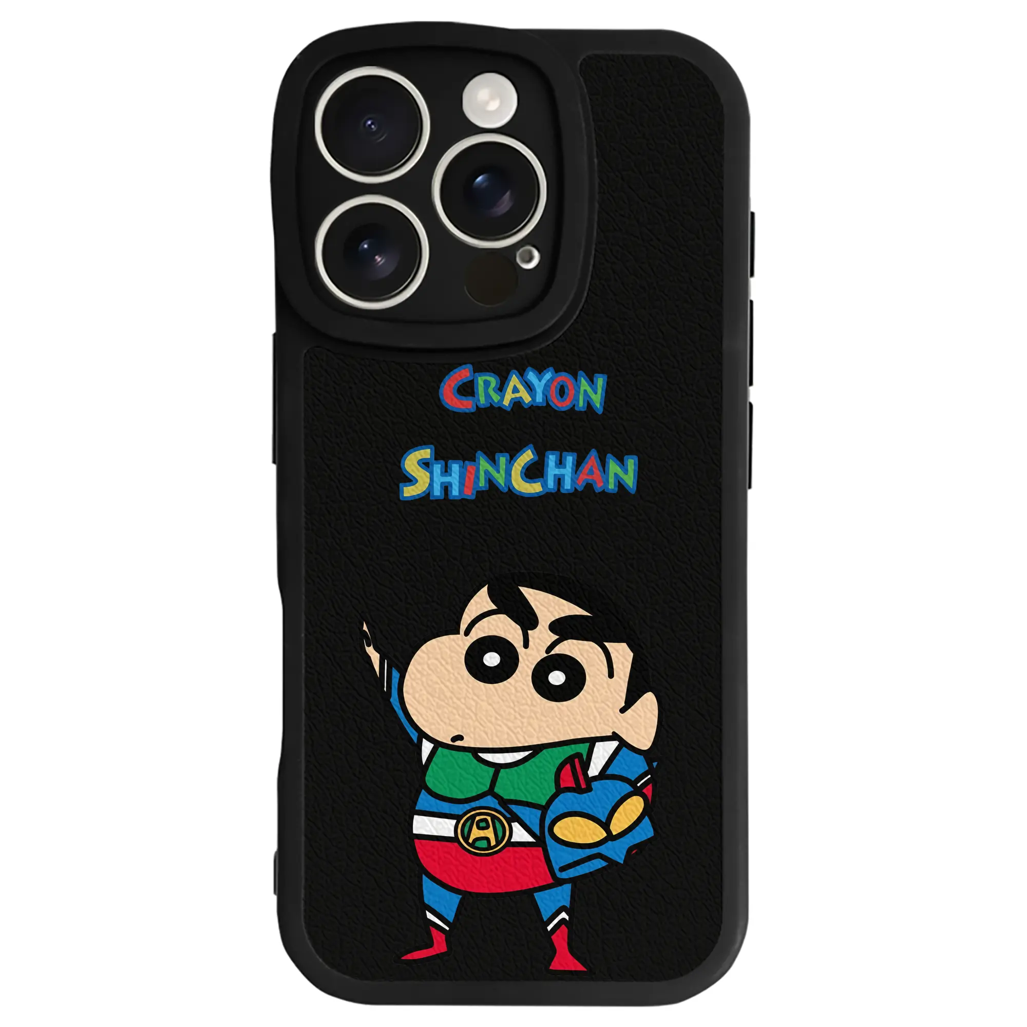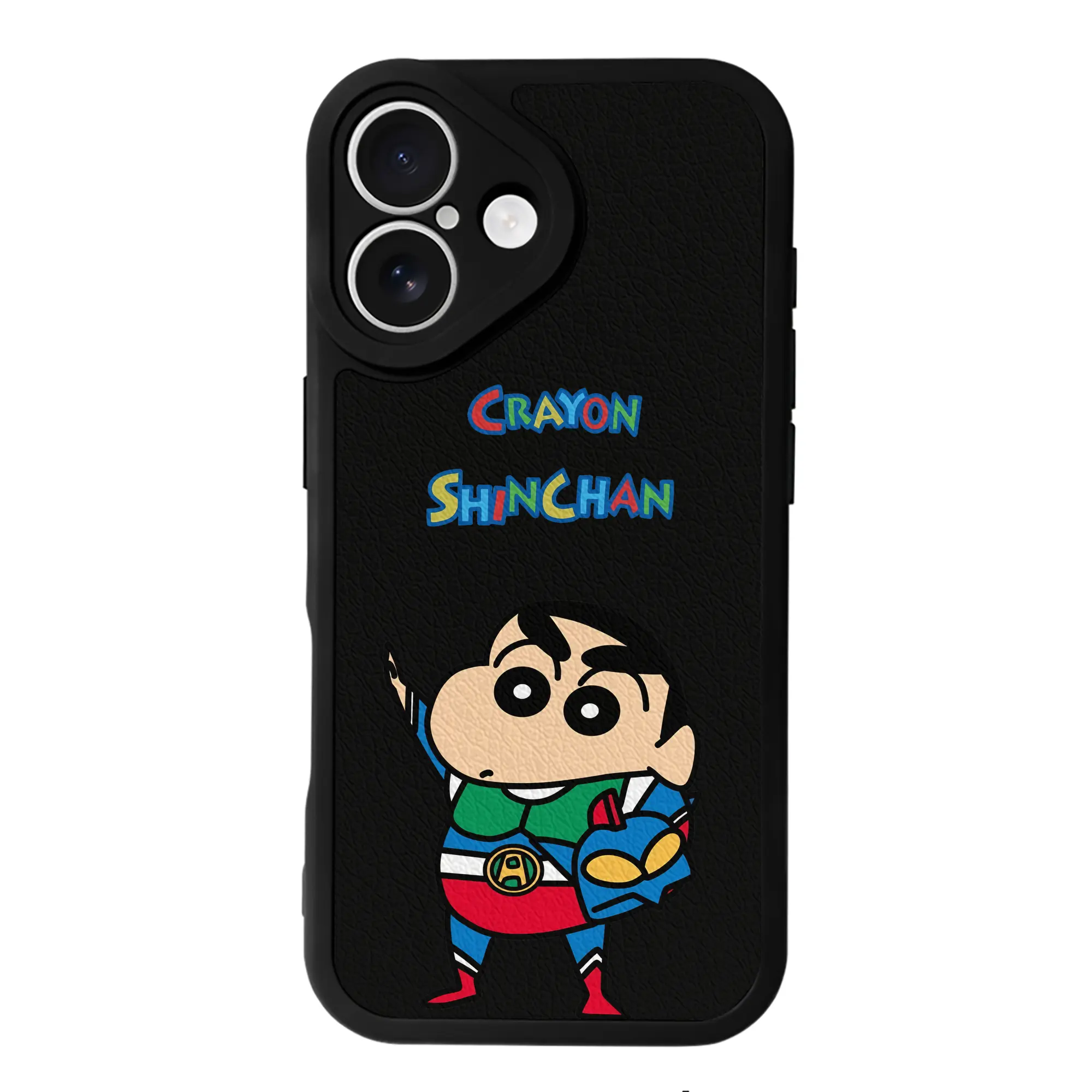 クレヨンしんちゃん グッズ アクション仮面 - IPhone 16シリーズ対応 ・ シリコンスマホケース ・ レザー調 ・ 高精度フィット ・ 耐衝撃 ・ ワイヤレス充電対応 ・ 精密カット