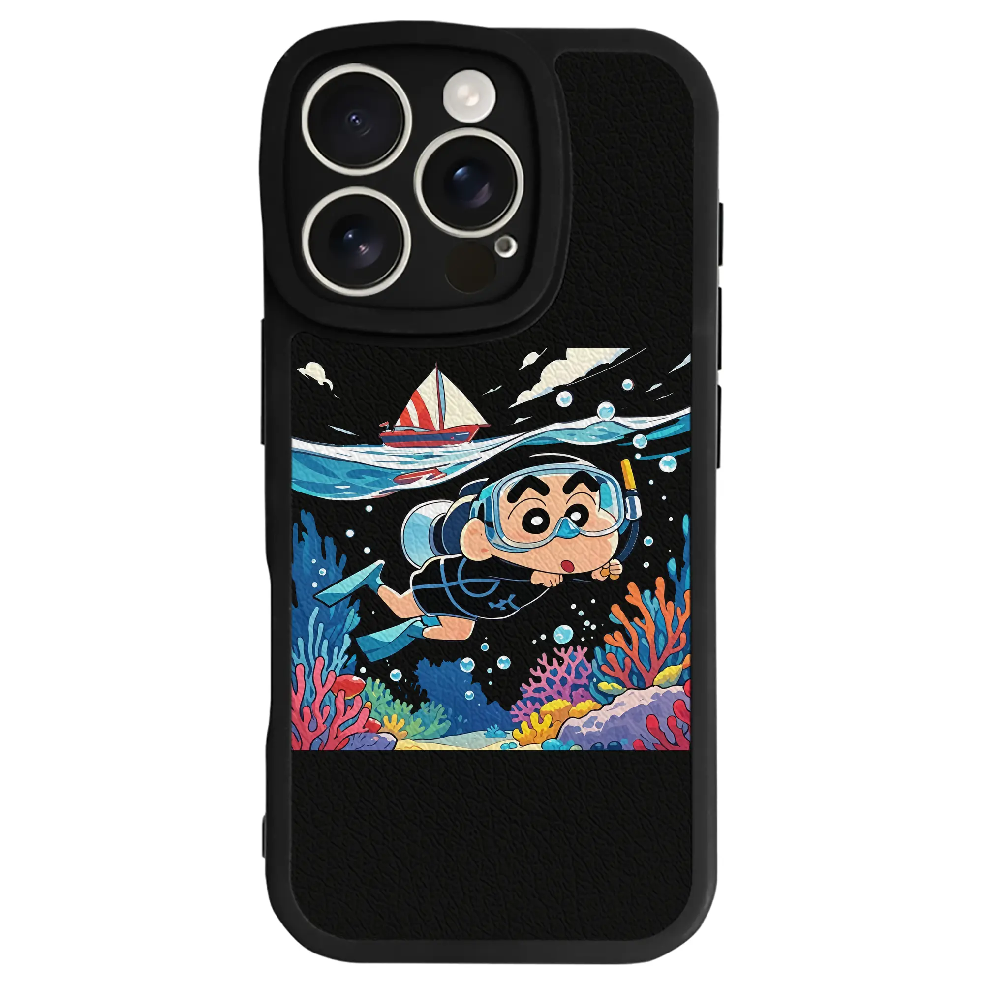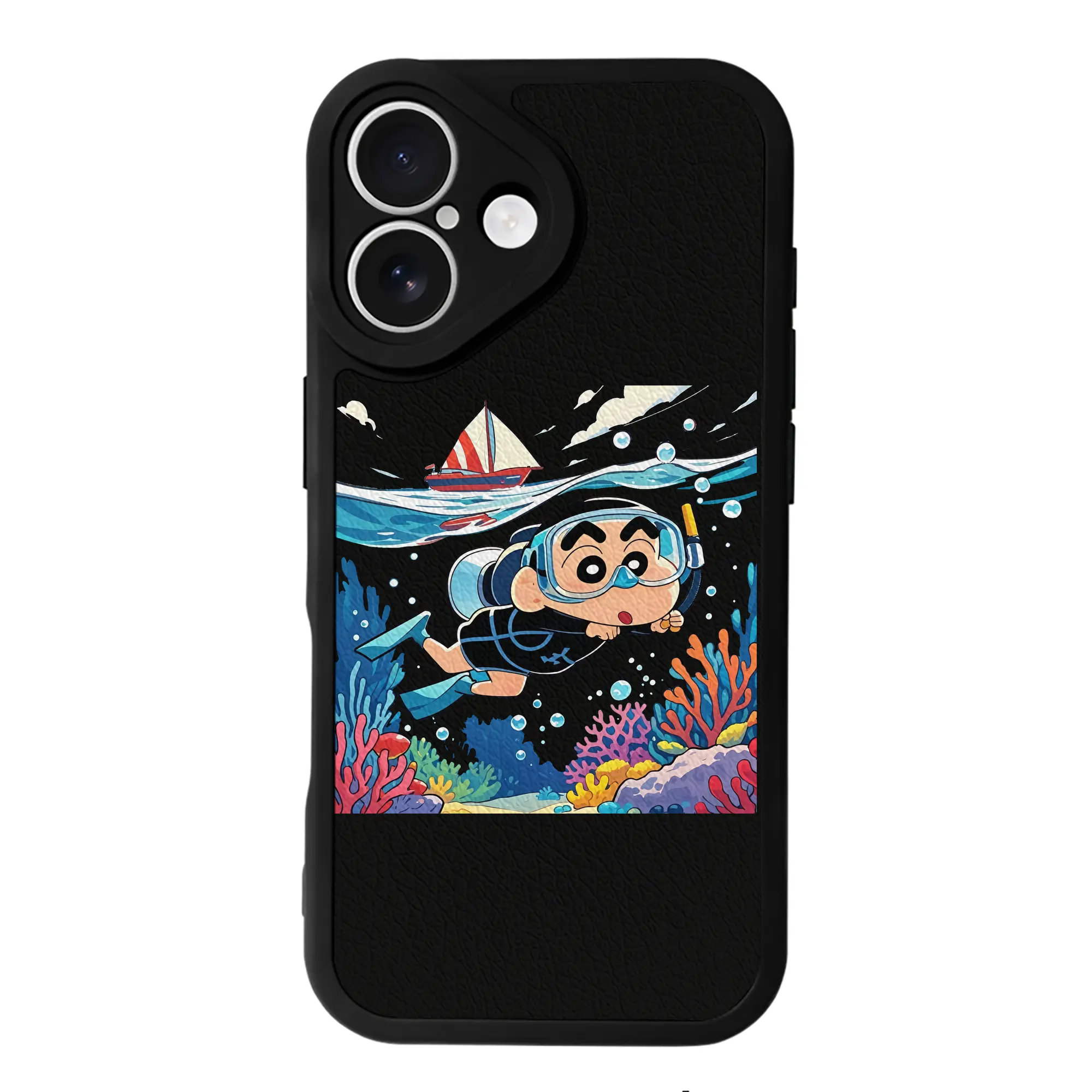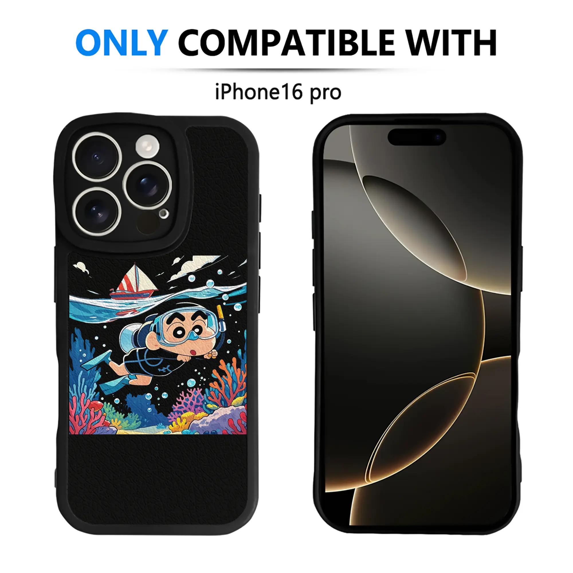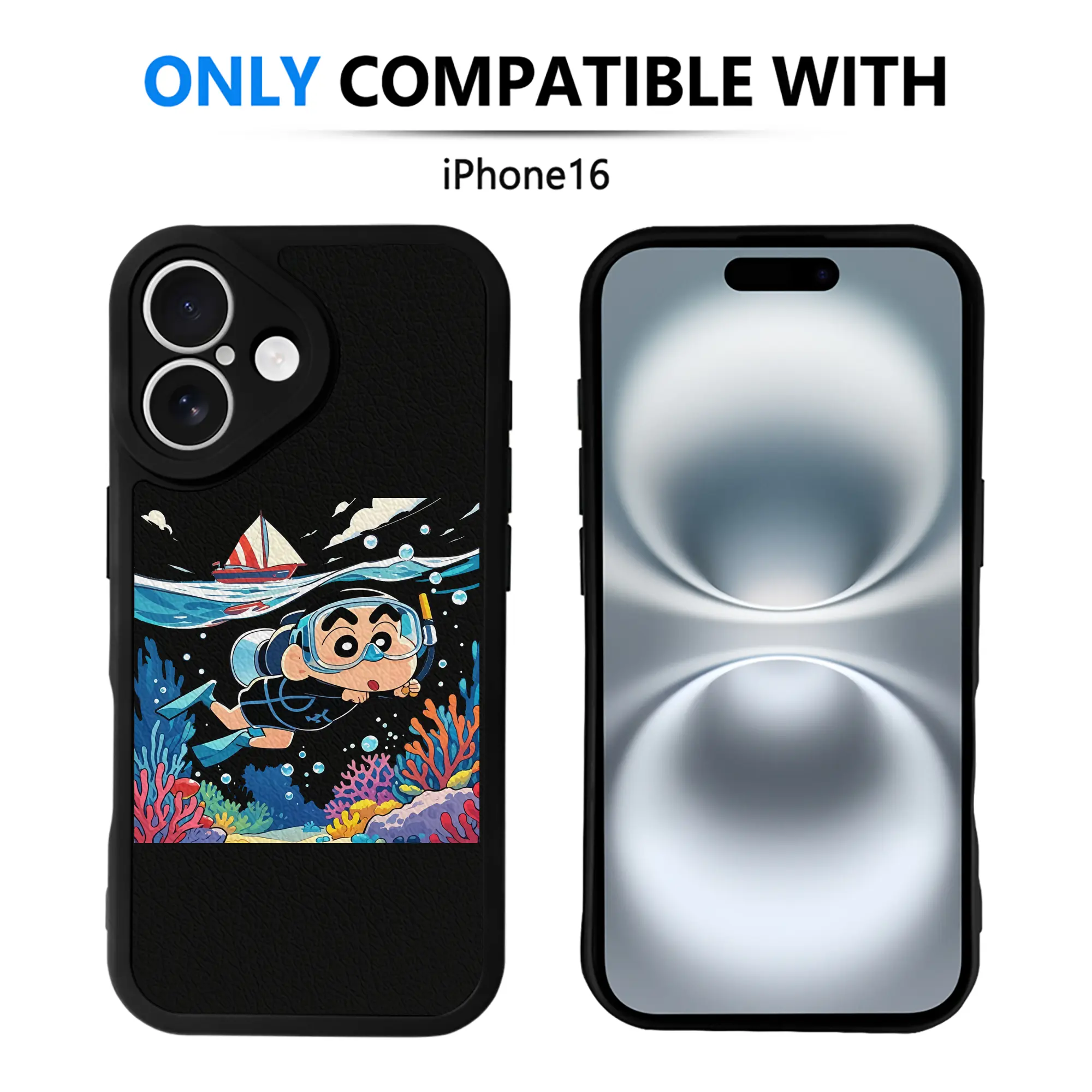 クレヨンしんちゃん グッズ 野原 しんのすけ - IPhone 16シリーズ対応 ・ シリコンスマホケース ・ レザー調 ・ 高精度フィット ・ 耐衝撃 ・ ワイヤレス充電対応 ・ 精密カット
