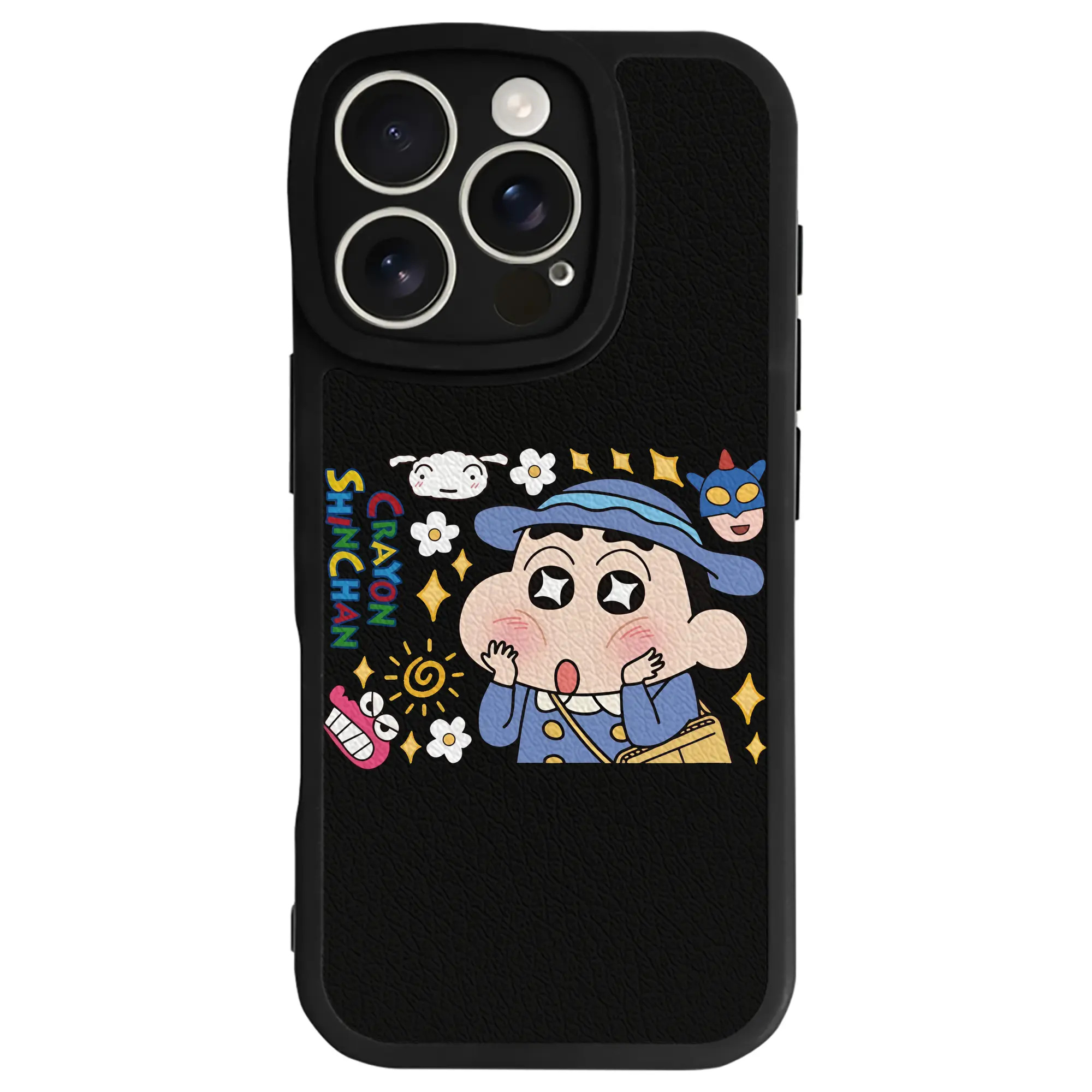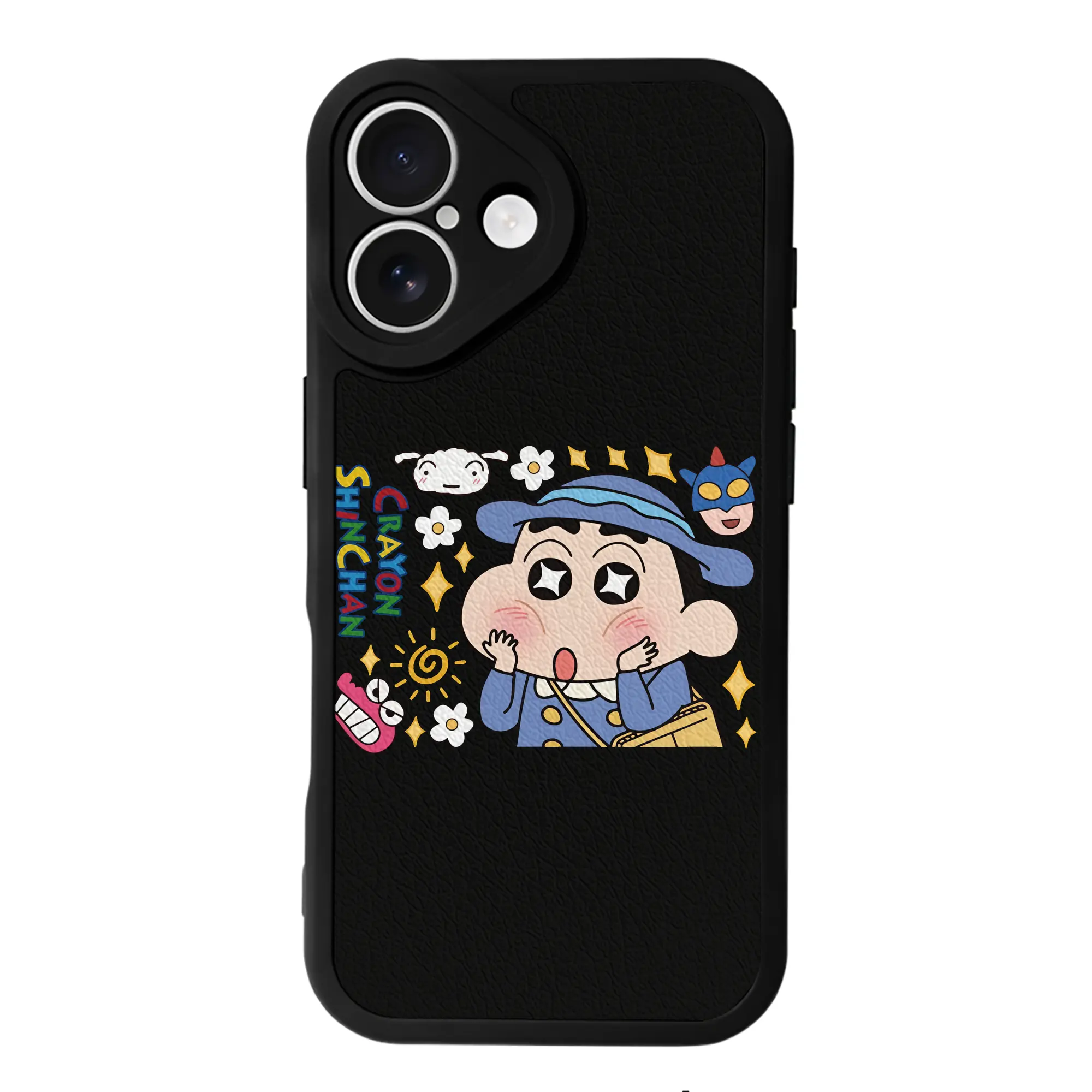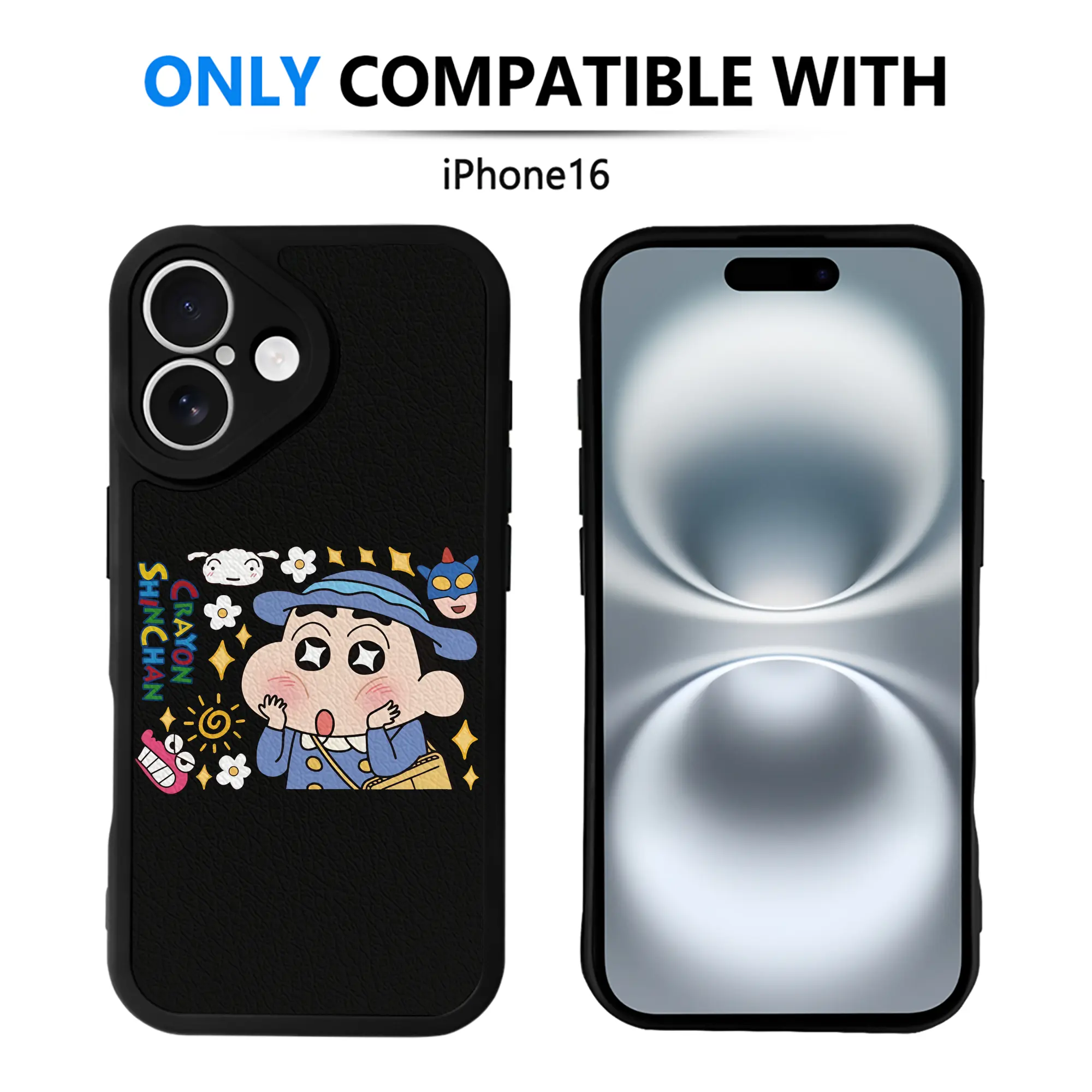 クレヨンしんちゃん グッズ 野原 しんのすけ - IPhone 16シリーズ対応 ・ シリコンスマホケース ・ レザー調 ・ 高精度フィット ・ 耐衝撃 ・ ワイヤレス充電対応 ・ 精密カット